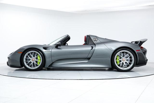 This 918 Spyder has been specified with; Weissach Package, Front Axle Lifting System ($10,500), Seatbelts with Accent Stripes in Silver ($1,800), Carbon Fiber Floor Mats with Silver Piping ($1,725), Painted Key with Leather Key Pouch ($1,400), Burmester High End Surround Sound System, Silver Seat Piping, Stone Shield, Sports Steering Wheel with Leather Rim, Automatic Air Conditioning HomeLink, Glare Reducing Interior Package.