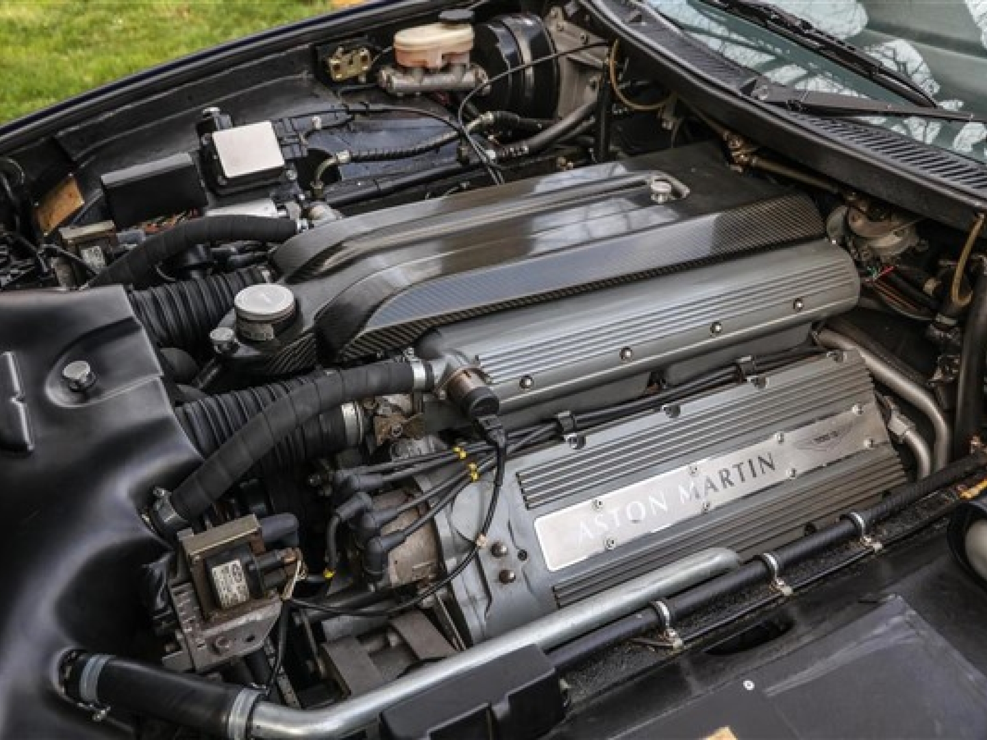 1998 Aston Martin V8 Volante LWB finished in Peacock blue with contrasting Magnolia hide interior piped in blue with best quality dark blue Wilton carpet throughout, together with an unmarked Blue mohair electric soft top. This is indeed a very rare model of Aston Martin and is chassis number 5 of a production run of just 63 cars that were built to long wheel base specification, making them even rarer than a DB4. The additional space for rear seat passengers comes from an extra 200mm of leg room, making it a very comfortable and luxurious model for four adults, even on long joourneys. This particular example comes with a large and detailed service history file with numerous invoices from Trinity Engineering and latterly from John Watson of Chicane. Very reasonably priced for one in such superb condition at £95,000