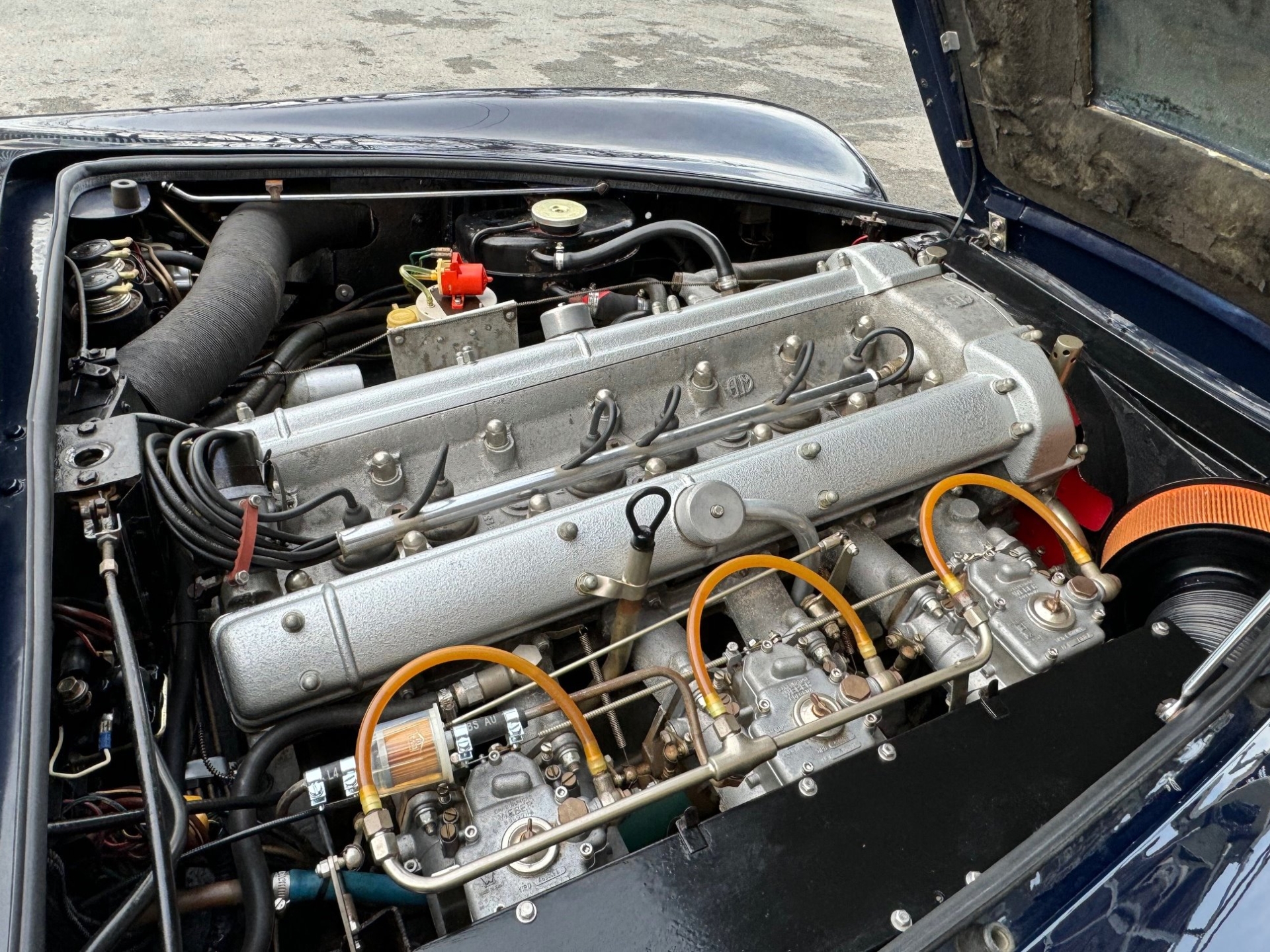 A lovely, sharp, smart and correct ‘matching numbers’ example of the desirable Vantage model, beautifully finished in deep Oxford blue, with excellent black leather interior, as per the original factory specification sheet, with carpets, headlining, instruments, etc, all in very nice condition. Also as delivered, the car is equipped with power steering, chrome wire wheels (in virtually unused condition), heated rear screen, electric aerial, three ear hub caps and three point seat belts. The chrome plating is also in excellent condition, and the whole car has a 'fresh' feel to it, including the under bonnet area, which is particularly well and correctly presented. Not 'over the top', but just as it should be! A lovely example, running and driving very nicely, (as you can see in the video) and offered newly MoT tested.