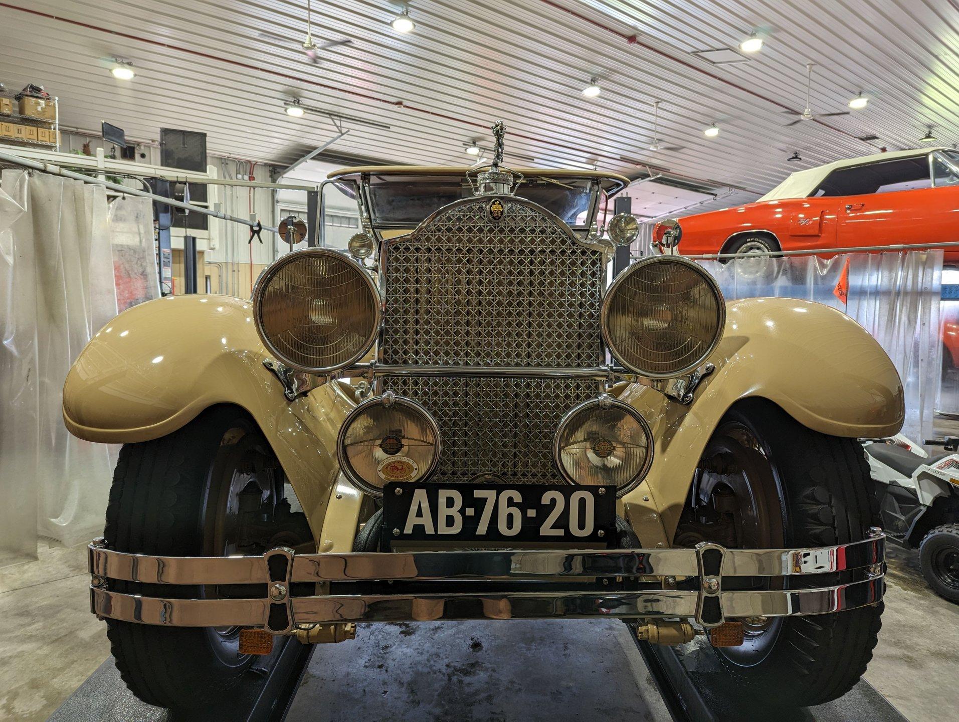 This Sport Phaeton has 19,745 actual miles since new and only a handful of miles since it's concourse restoration. It has a history including aristocrats, a high profile criminal and "barn find" intrigue. It is a genuine CCCA full classic. Awards: 2010 Geneva Concourse 1st place in class 2012 Amelia Island Concourse Best in Class 2nd 2012 Naples Car Show Best of Show 2014 Naples Car Show Best in Class 1st 2018 AACA National 1st place, Best in Class, designated Senior Award Classification 2023 Naples Car Show People's Choice History: This Packard has a very colorful history. It was special ordered by the Count and Countess of Cacem Portugal. It was also tied to one of the greatest frauds in history! Alvis de Reis, the infamous criminal was photographed and even interviewed in this car, he perpetrated the Portugal Bank Note Crisis. It was then stored in a palace in Lisbon until the late 1960s when a Navy officer bought it. News Flash: The Navy officer found the car on our site and just contacted me! It came back to the US in 1980, the current owner bought it 14 years ago from a man that owned it 35 years. It has gone through 3 restorations. The last restoration cost $188,000 and they started with a very nice car. EXTERIOR: It certainly has an impressive presence; it is an example of rolling artwork. Up front stands a tall chrome grill with a long hood behind it. The low cut doors and open cockpit give it the sporty feel. The rolling fenders are home to dual sidemount wheels. The body is in outstanding condition, professionally restored. The paint is polished like glass. The chrome all sparkles. Features include authentic Trippe lights up front, a stone guard protecting the radiator and the Goddess of Speed ornament perched on top. It also has cowl lights and a spotlight. The chrome windshield folds flat, swings open and has a set of wing windows. There is also an optional folding dual windshield for the rear passengers. It has 6 restored wire wheels with reproduction white wall tires. The spares have optional painted metal covers and chrome bands. In back is a luggage rack and a fully restored trunk. The convertible top was restored and is wearing Haartz cloth. A full set of new side curtains are included too. To make it a bit for user friendly turn signals were carefully added front and back. An extension was also put on the tail pipe to prevent exhaust from staining the trunk. INTERIOR: Professionally upholstered in glove soft red leather. In back it has refinished burl wood locking compartments and premium carpet. In front is a beautiful wood trimmed dash, the gauges and controls are in excellent shape. Correct laminate and aluminum floor. ENGINE COMPARTMENT: The smooth running straight 8 motor was rebuilt. It's 354 ci and makes 105 hp. It's properly dated to this car, believed to be the original. All the components were restored and beautifully detailed. TRUNK COMPARTMENT: The trunk was restored inside and out. Upholstered in matching Haartz cloth. UNDERSIDE: The underside was carefully prepped and painted. Correct exhaust, semi elliptic leaf springs and lever shocks. Bottom of the motor looks clean. Rebuilt 3-speed transmission. SERVICE: We inspected the car and had the starter rebuilt. CONCLUSION: This is a genuine Classic recognized by the Classic Car Club of America which entitles it to participate in their events including caravans. I said this car is rolling artwork. That's not just because of its beauty but it's also an investment! I, Jay Grams, take pride in personally writing the descriptions for virtually every car for about the last 30 years now. A significant amount of effort goes into fact checking. What I am offering is my professional impression of the vehicle. Our salesmen are happy to assist with descriptions and making sure your questions are answered. One great suggestion is letting us do a walk around video that explains the car's condition in detail. **These cars are displayed in a museum. If interested in a particular car, make an appointment with a salesman to see that car. Without an appointment there is an admission fee to enter the showroom. If you buy a car, your admission will be refunded, and you will be given a 1 year membership. 815 385 3644 9-5 central Sales@volocars.com Answered ASAP Dual windshield Side curtains Luggage rack Trunk Wire wheels Side mounts Metal tire covers White wall tires Stone guard Pilot Ray lamps Leather upholstery Turn signals