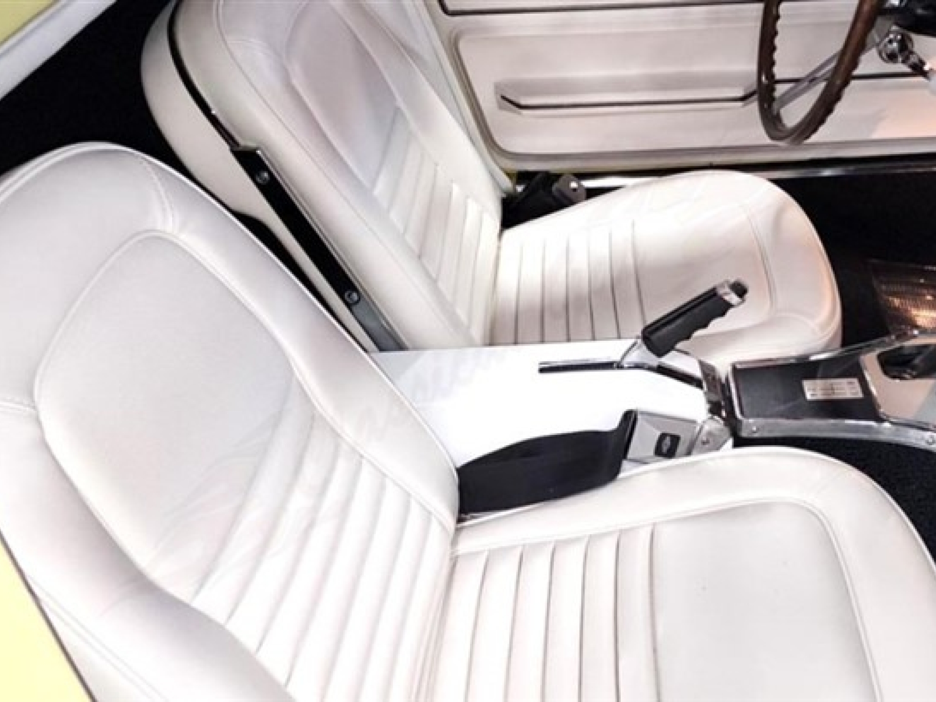 The exterior is a mirror finish Sunflower Yellow paint with Tuxedo Black stripe big block hood is spotless. The body gaps on this car are absolutely perfect. The stunning paint pops with the DC Corvette Rally wheels that are date coded. The RPO code N14 C2 side mount exhaust (side pipes) is as all-American as it gets. The correct look and perfect sound for a big block. Stunning white and black combination with all new carpet, bucket seat covers & foam, and door panels. Even the sun vires is in plastic sleeves to save from smudges or fingerprints. It just doesn’t get any nicer! This is a fantastic opportunity.