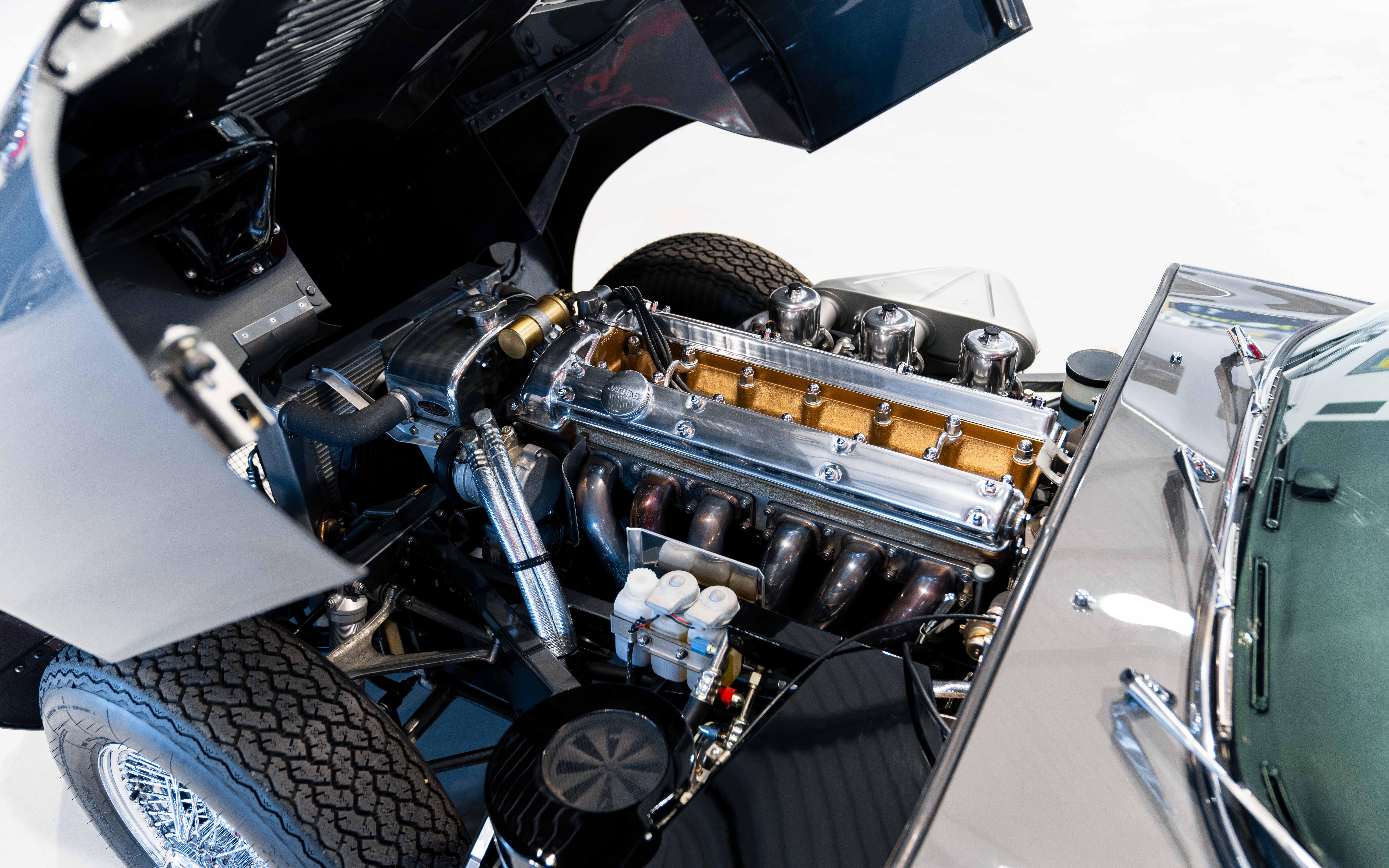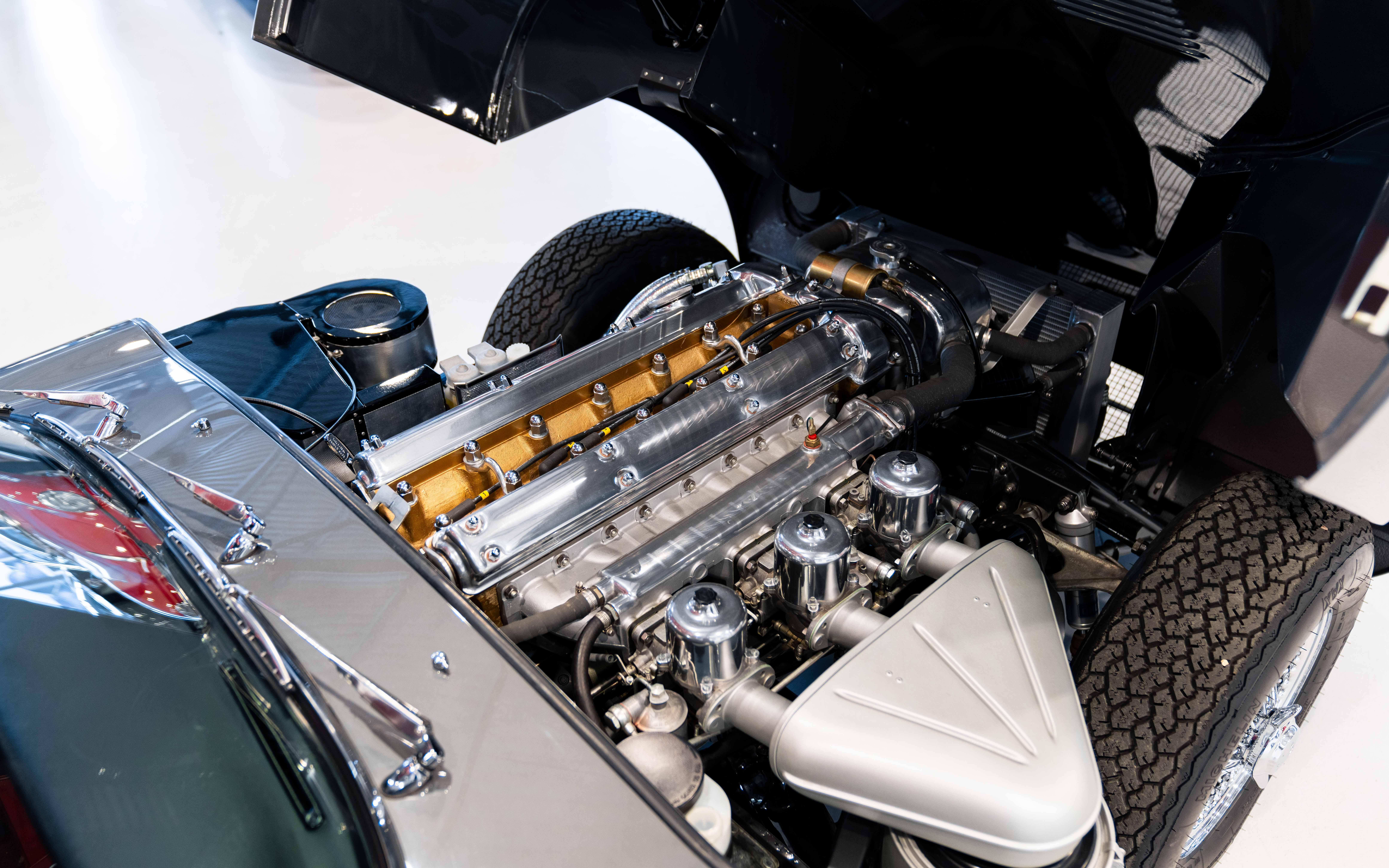 Upgrades include; modern electronic fuel pump conversion, more powerful cooling fans, stainless steel braided brake hoses, performance Ohlins shock absorbers, 3 pot calliper and larger uprated disc brakes, Halogen headlamps, more powerful ventilation and heater blower and a full stainless steel exhaust system. This car also features polished aluminium water header tank, fully modernised wiper system, additional heat resistant material fitted to inside the bodyshell and around the gearbox tunnel, drilled aluminium throttle pedal and an upgraded sound system with Becker Mexico radio. The Classic upgrade package offers enhanced reliability, durability and usability whilst adhering as faithfully as possible to the specification & feel of the original E-Type.