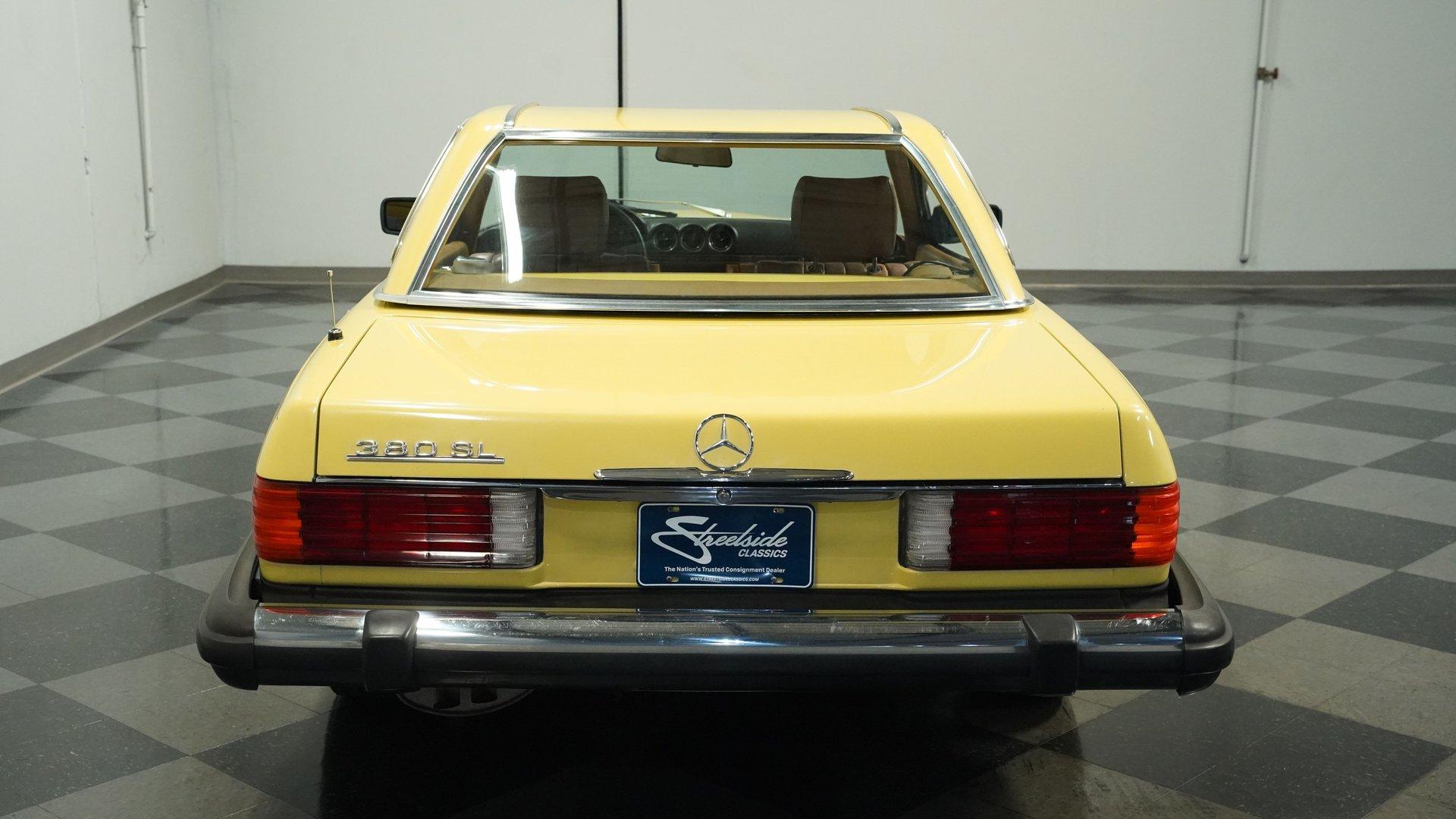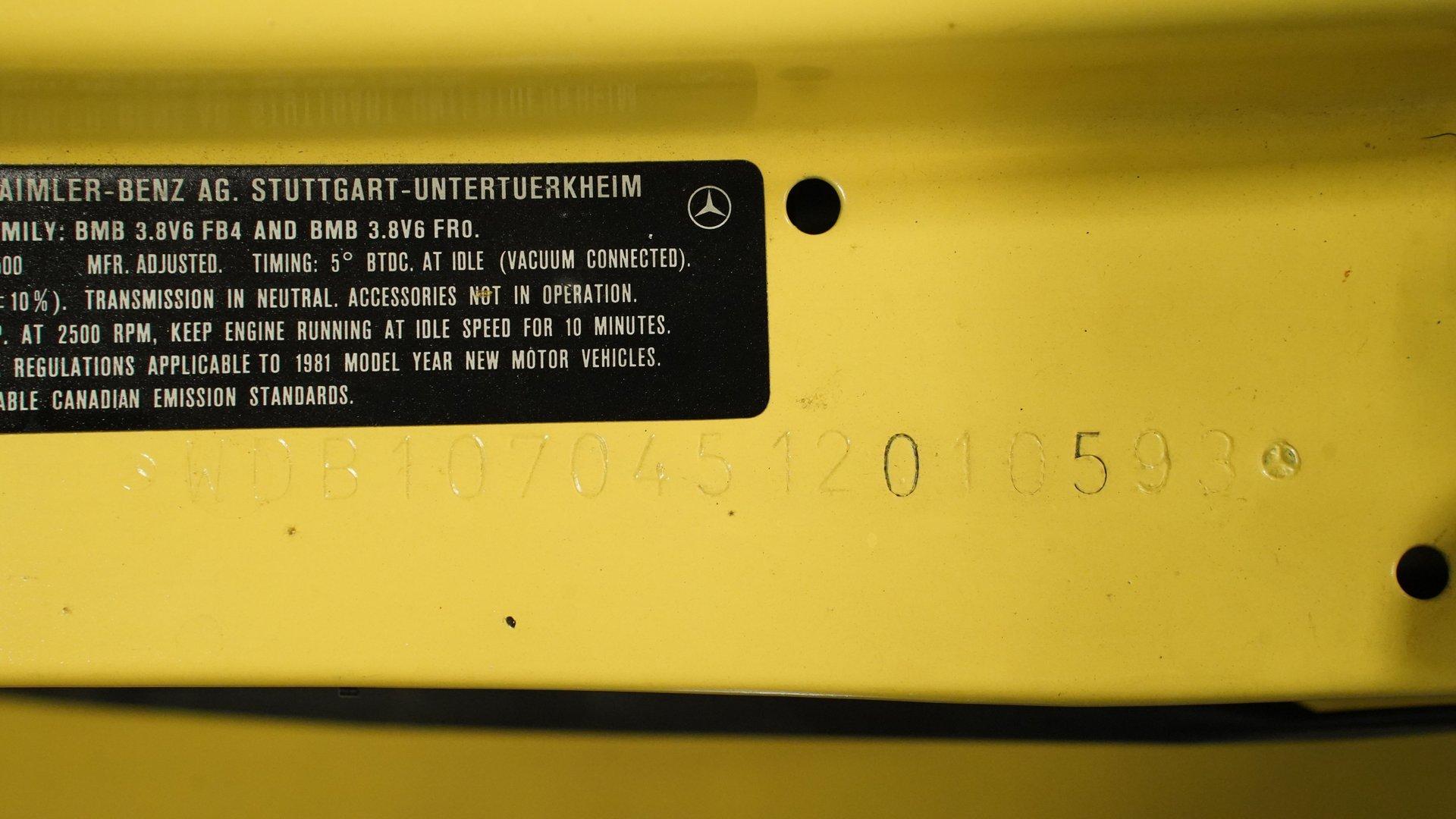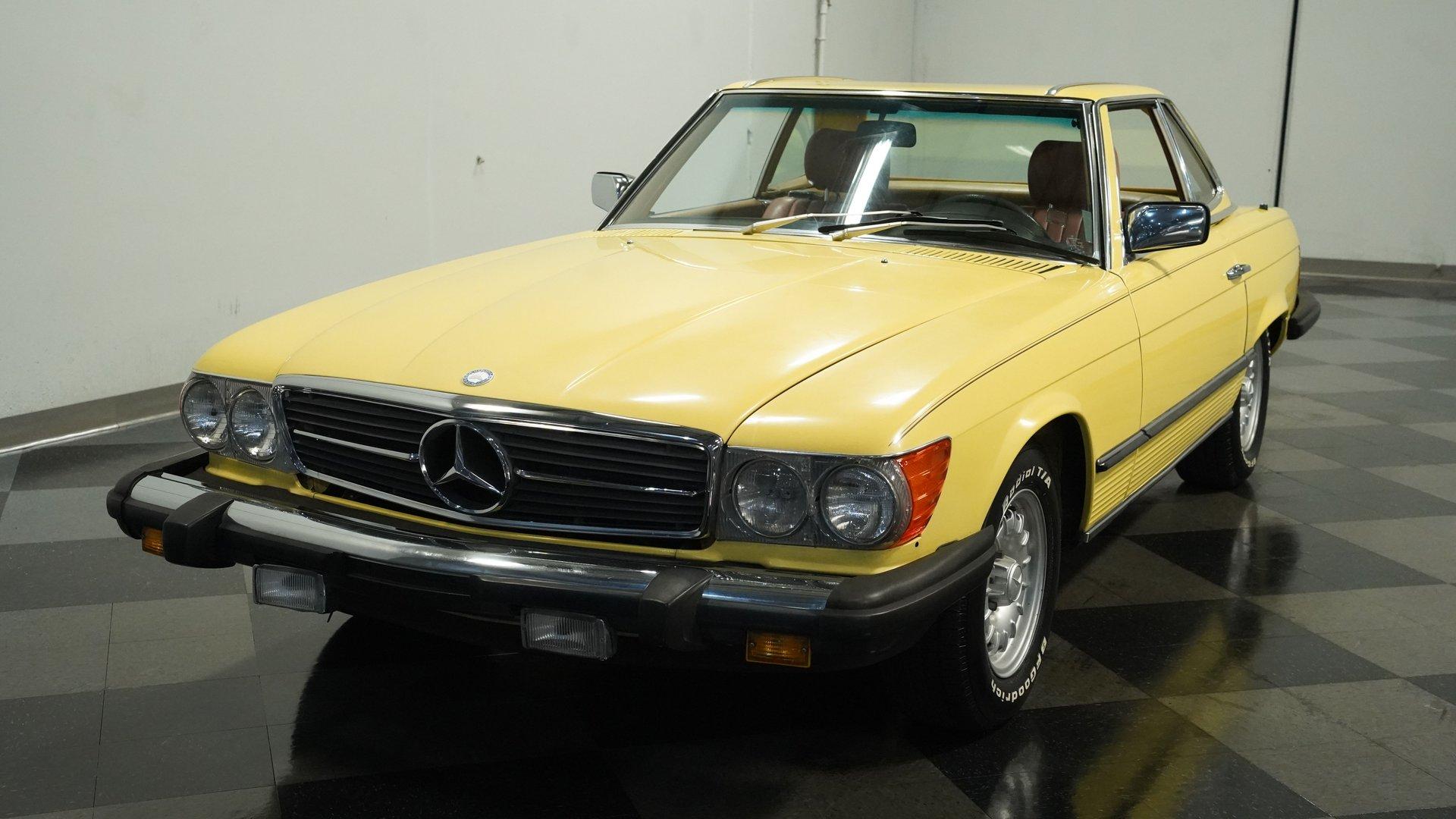 The 1982 Mercedes-Benz 380SL radiates luxury and performance in its Sunlight Yellow finish. This German roadster showcases the pinnacle of automotive engineering from the early 80s. Its sleek profile is accentuated by chrome accents and the iconic Mercedes grille. The power-operated beige canvas top provides open-air thrills, while the matching removable hardtop offers year-round versatility. Rolling on 14-inch wheels wrapped in 205/70R14 tires, this 380SL strikes an impressive stance on the road. Inside, the Sand Beige leather interior exudes sophistication. The cabin features supportive bucket seats and a console-mounted shifter for the 4-speed automatic transmission. Power steering and brakes offer effortless control, while the AM/FM/AUX stereo with single CD player provides entertainment. The leather-wrapped steering wheel and wood trim accents reinforce the car's premium feel. The overall interior maintains its classic Mercedes charm. Powering this 380SL is a fuel-injected 3.8L V8 engine, paired with a smooth-shifting 4-speed automatic transmission. This powertrain delivers a balanced mix of performance and refinement. The four-wheel disc brakes provide confident stopping power. Recent maintenance includes a new fuel system and general upkeep, ensuring this classic Mercedes is ready for the road. With its combination of style, comfort, and engineering, this 380SL represents the best of its era. HIGHLIGHTS: 3.8L V8 engine Fuel injection system 4-speed automatic transmission Power steering Four-wheel disc brakes New fuel system Single exhaust with aftermarket muffler Sunlight Yellow paint (Code 680) Beige canvas convertible top Removable yellow hardtop 14-inch wheels in 205/70R14 tires Chrome accents Sand Beige leather interior Bucket seats with center console Power windows AM/FM/AUX stereo with single CD player Wood trim accents Hardtop storage rack Hardtop dust cover Service records This 1982 Mercedes-Benz 380SL combines German engineering with timeless style. With its potent V8, luxurious interior, and dual-top configuration, it's a classic that's equally at home cruising the boulevard or tackling winding roads. Experience open-top motoring at its finest. Call today!
