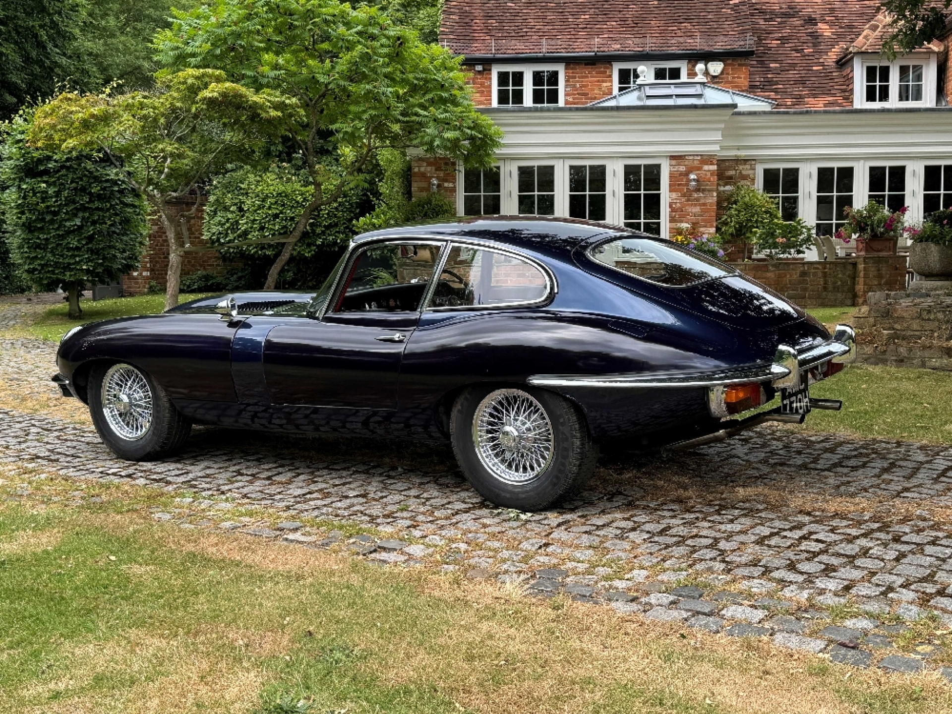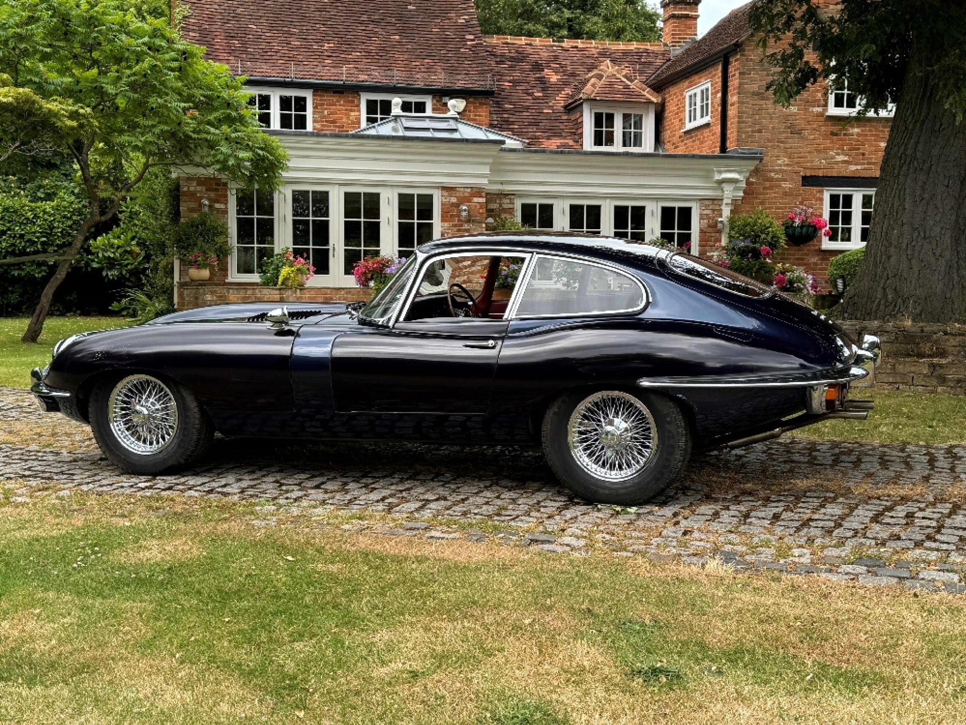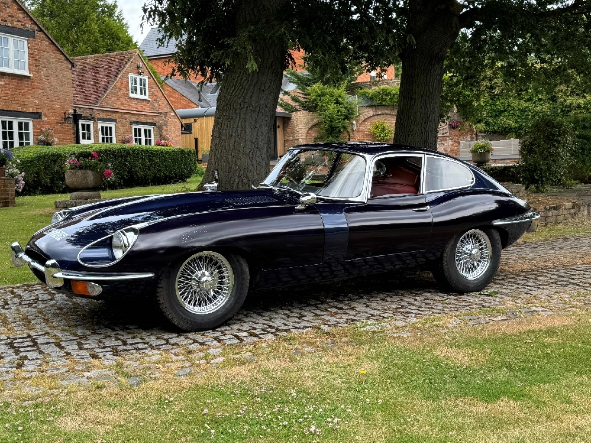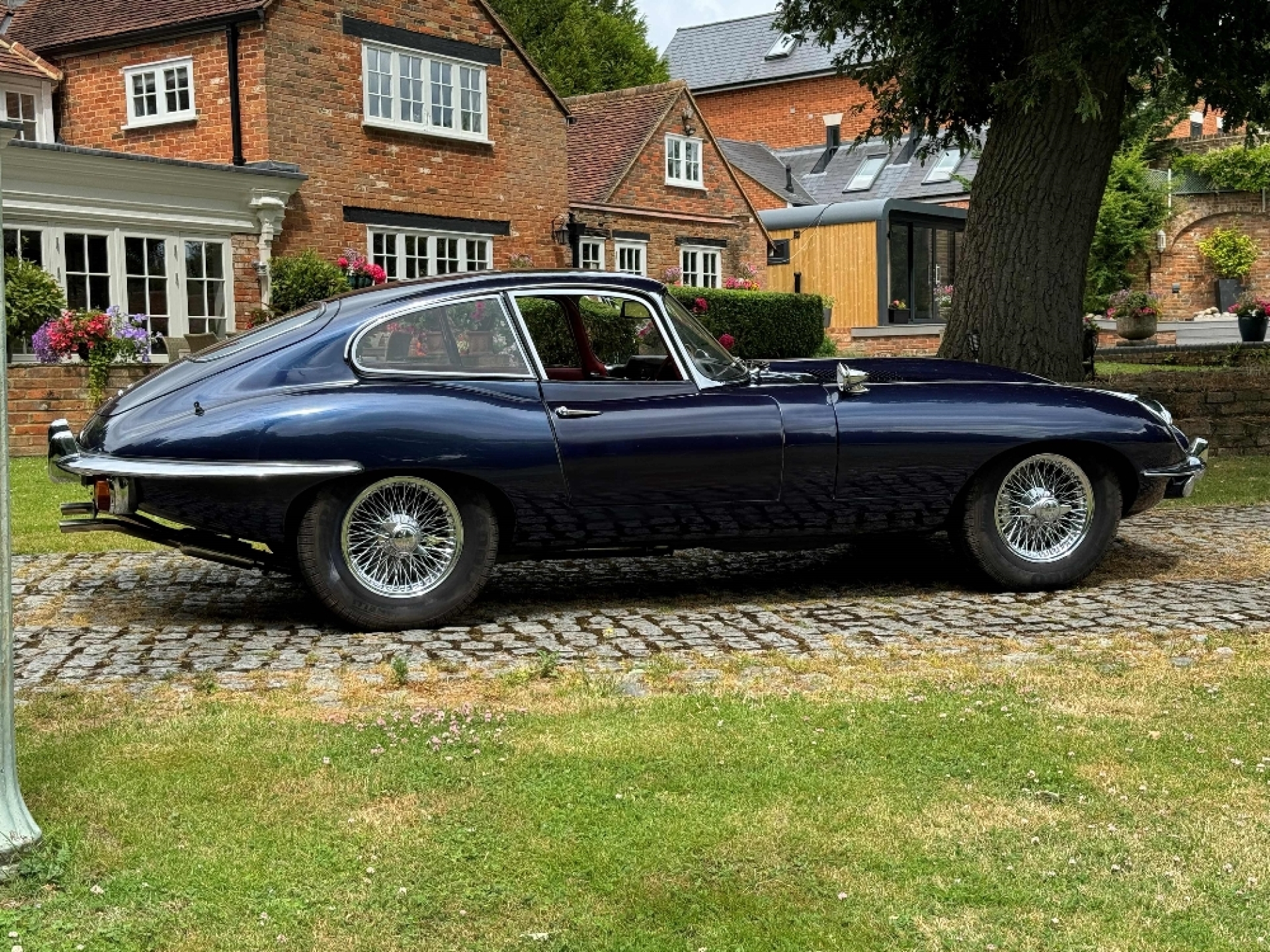 1969 Jaguar E Type Series II 4.2 Fixed Head Coupe, requiring some refurbishment after a 12-year period of being unused due to ill health. It is finished in Dark Blue with contrasting red hide interior and is a matching numbers, UK car, originally supplied by main Jaguar dealers Clarke and Simpson in Sloane Square, London SW1. It comes with its original Jaguar book pack in the original wallet, including the service booklet and proof that the recorded mileage of 53,928 is correct. Purchased by the most recent owner 20 years ago back in December 2003 from Castle Motors in Cornwall with a recorded mileage at the time of 47,000 miles. With this car are invoices dating back to the early 70’s and 80’s for some servicing work and the purchase of various parts. There is also a handwritten list of various works carried out on the car between 1976 and 2002, together with its original green logbook and numerous MOT certificates clearly showing the progression of mileage. We consider this car to be a very straight forward and rewarding refurbishment project, which from a safety point of view, we have already had the brake callipers rebuilt with new pistons and pads and have had the differential out and re-sealed together with new rear wheel bearings. Viewing is highly recommended. Very sensibly priced at £42,500