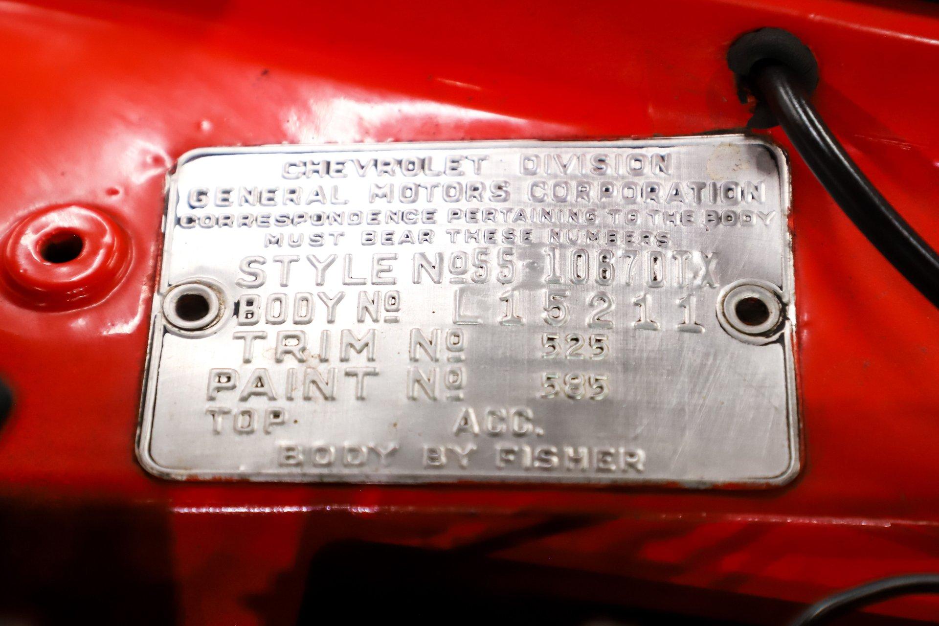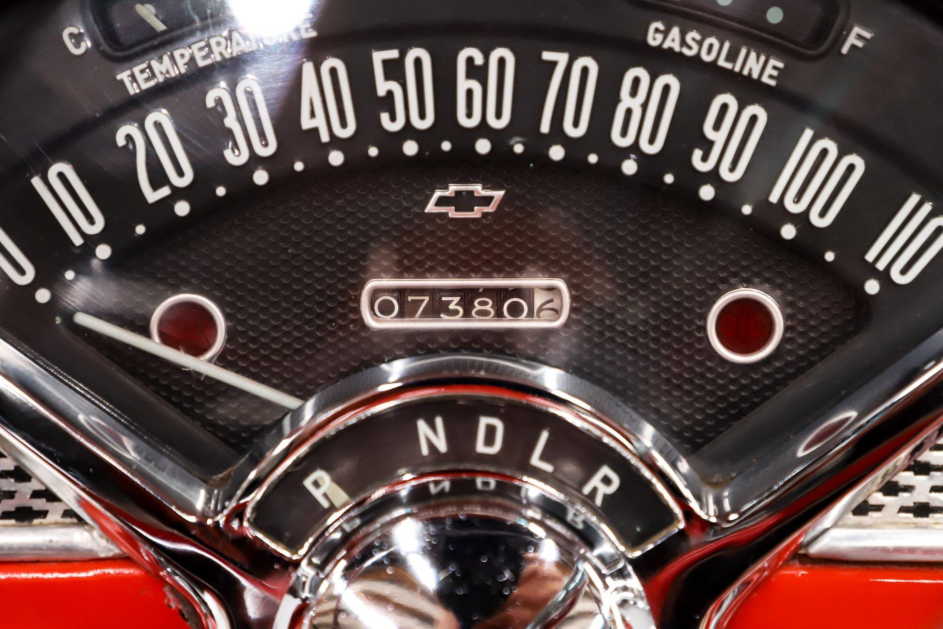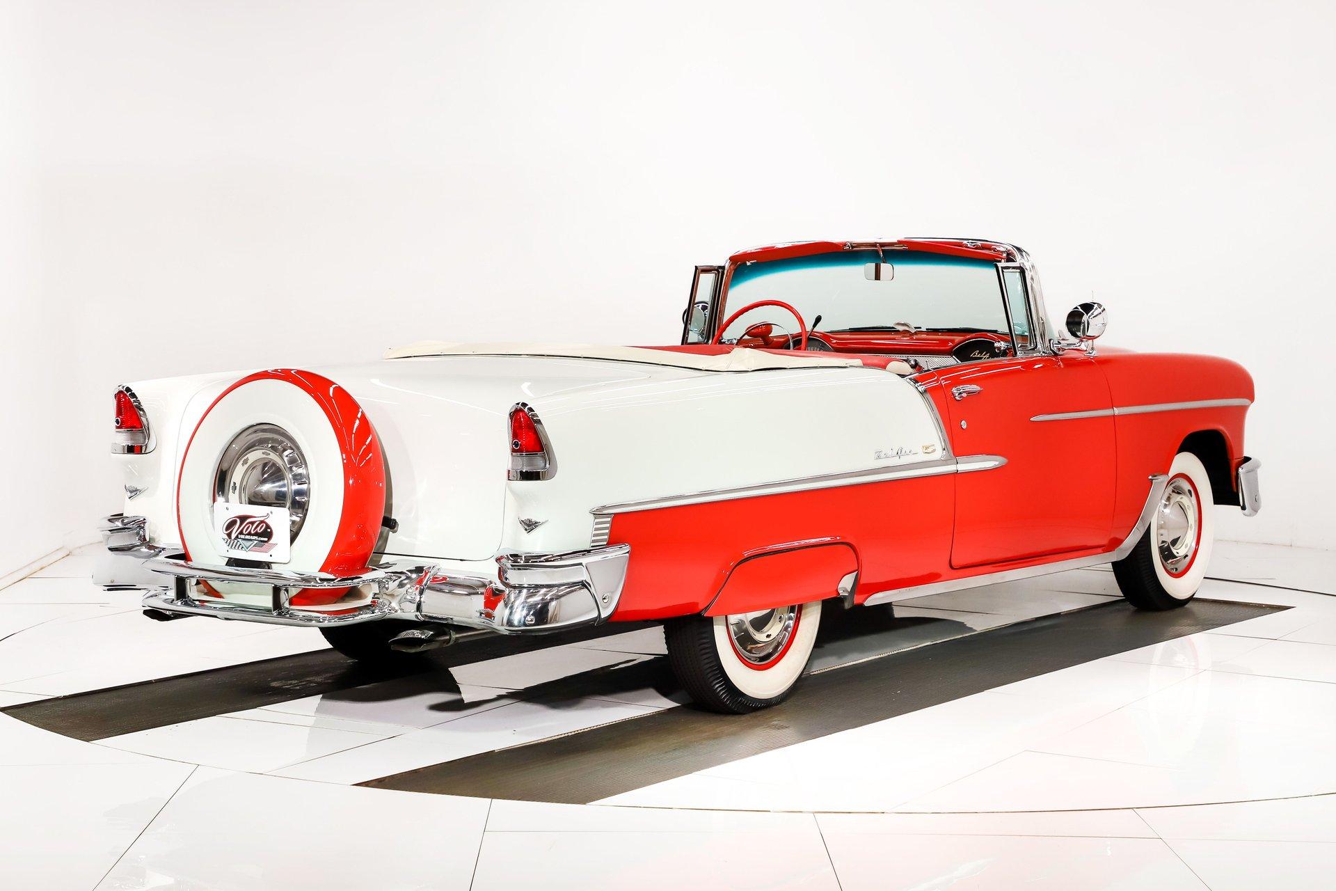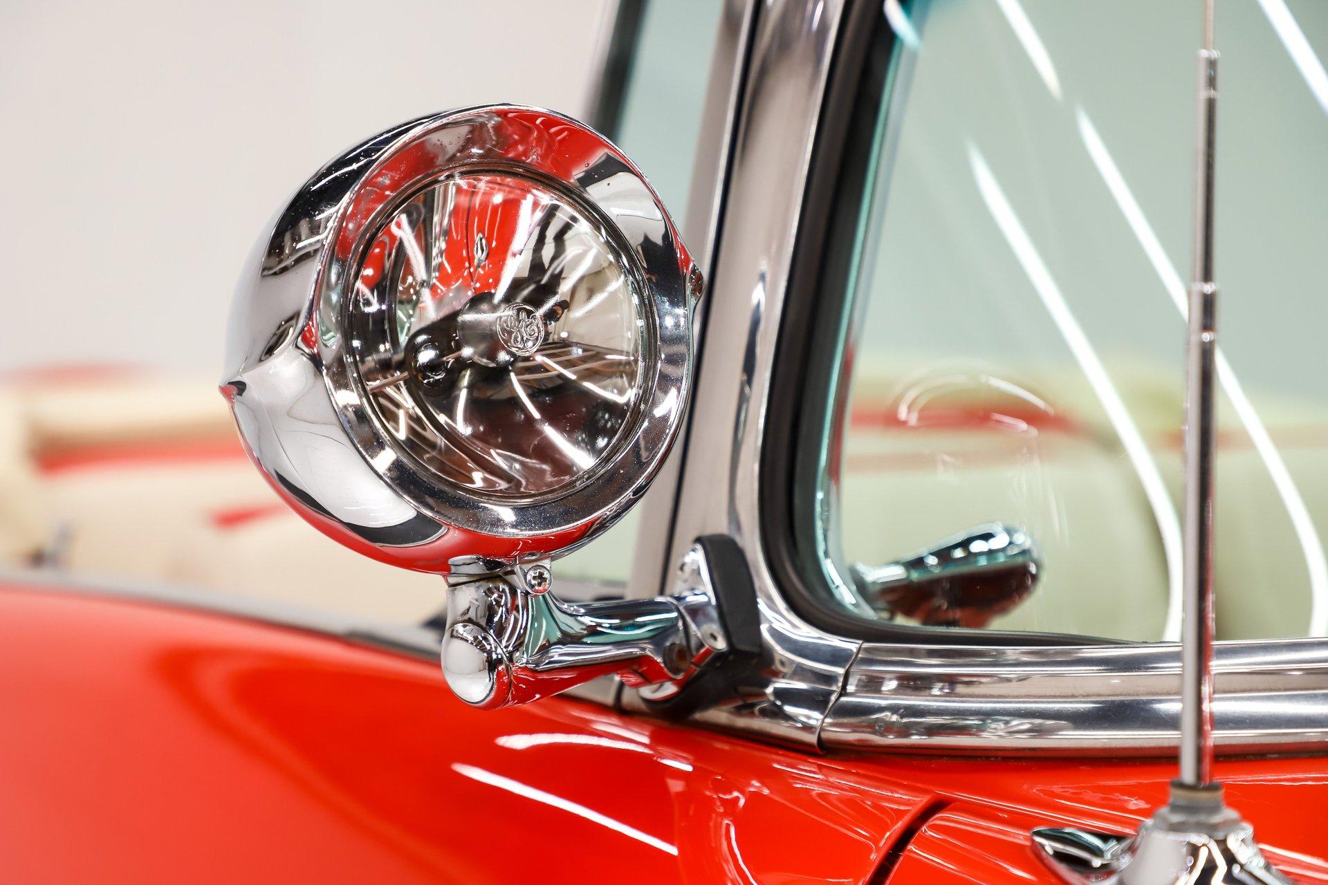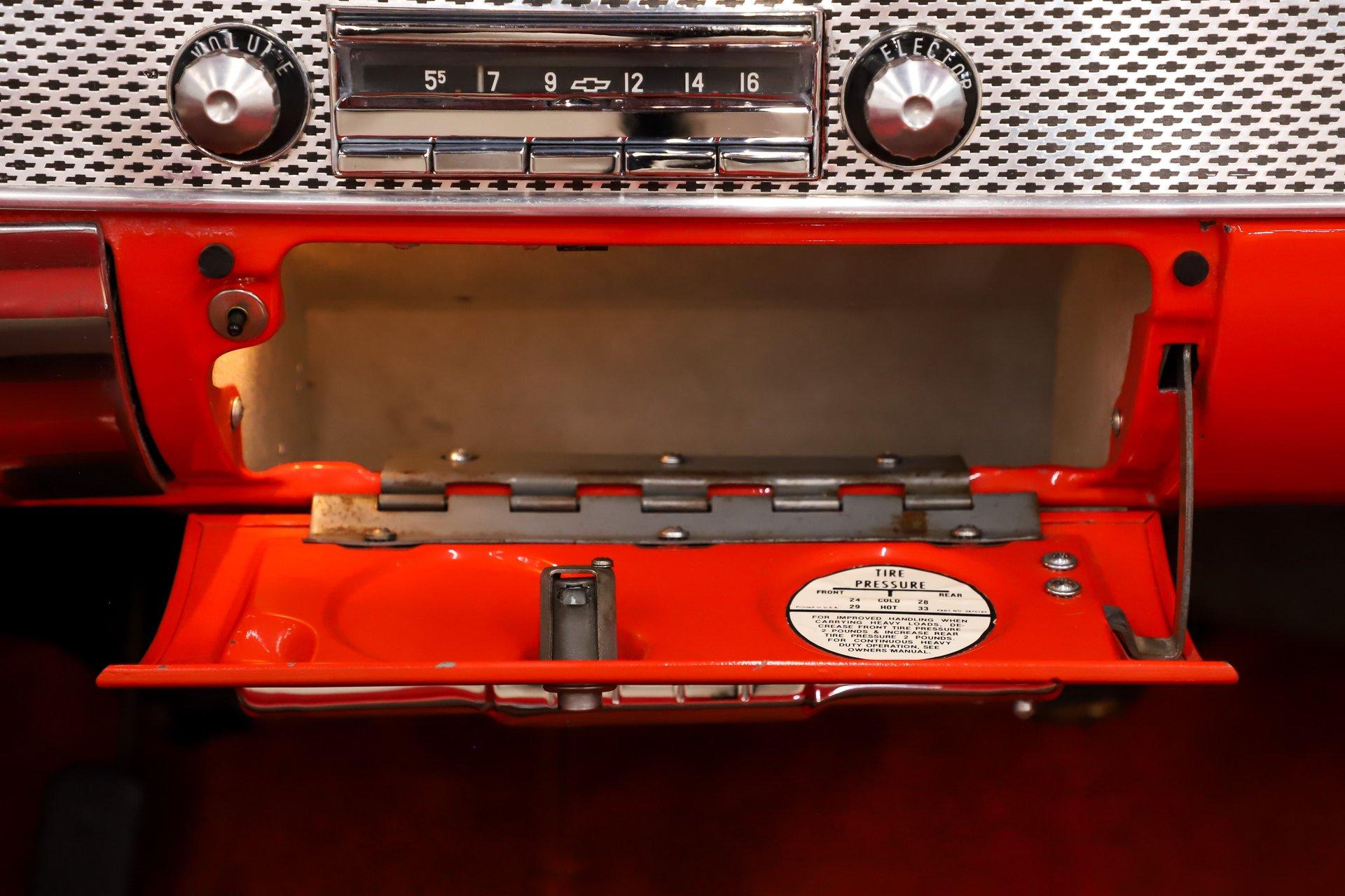 This 55 is loaded! Everything from dual spotlights and a continental kit to power steering and brakes. It has all the accessory trim they offered. A mini me version of itself is even included. It was body off frame restored about 20 years ago. It has been driven 7,300 miles and been very well cared for since. EXTERIOR: It's been painted at least 20 years and the body has held up really well. It's straight and clean with no rust or damage. Painted the signature Gypsy Red and Shoreline Beige colors. It's very smooth and glossy. It looks awesome when you walk up to it, if you inspect closely, you'll find some minor imperfections. Overall, the chrome and trim look great and there's plenty of it! It has optional bumper guards, wing tips on the bumpers, side moldings, rocker moldings, stone shields, door handle guards and fuel door trim. It also has painted metal fender skirts and a continental kit on back. The dual spotlights with mirrors are really cool too. The reverse lights were optional, and they work. It rolls on painted rims with correct hubcaps and Firestone white wall tires. It's a white power top in nice shape. INTERIOR: Also restored 20 years ago back to factory condition and it still looks great. All the metal trim is painted Gypsy red, smooth and glossy. It has the automatic headlight dimmer on the dash along with a viewfinder to see the stoplights. Chrome and trim across the dash looks really nice. Other features include a wonder bar radio, a tissue dispenser, reproduction mats and clock. The seat cushions are nice and firm, the upholstery fits really nice without wrinkles. They've added seat belts front and back. ENGINE COMPARTMENT: It has a date correct 265 V8 built to power pack specs including a correct 4 barrel carb. All stock manifolds, Chevrolet script valve covers, air cleaner, cloth wrapped choke tube etc. Factory options include correct power steering and brakes, an oil filter, upgraded electric wipers and windshield washers. It was upgraded with an electric fan too. Overall, it's clean and painted neatly. It has a Delco battery topper with a disconnect switch. TRUNK COMPARTMENT: The continental kit easily swings out of the way. Under the trunk lid and the compartment is clean metal painted white. It has a reproduction mat and weather strip. It also has a white wall spare with a painted rim and jack assembly. It includes a car cover and some shop manuals. UNDERSIDE: It was completely restored several years ago. There are some items that look fresh including the four shocks, power steering hoses, front brake hoses and fuel tank. We inspected the car and replaced the lower control arm bushings, a rear bearing and gave it an alignment. It's a new dual exhaust system with glasspack mufflers and the correct stainless tips. Rust free all metal floors, braces and rockers. SERVICE: We inspected the car and adjusted the reverse light switch, repaired the turn signals, tightened the visors, replaced the lower control arm bushings gave it a front end alignment, replaced passenger window and track, replaced rear axle bearing. Here is a classic 55 Chevrolet Bel Air in the signature colors and it is loaded like a Chili's baked potato! I, Jay Grams, take pride in personally writing the descriptions for virtually every car for about the last 30 years now. A significant amount of effort goes into fact checking. What I am offering is my professional impression of the vehicle. Our salesmen are happy to assist with descriptions and making sure your questions are answered. One great suggestion is letting us do a walk around video that explains the car's condition in detail. **These cars are displayed in a museum. If interested in a particular car, make an appointment with a salesman to see that car. Without an appointment there is an admission fee to enter the showroom. If you buy a car, your admission will be refunded, and you will be given a 1 year membership. 815 385 3644 9-5 central Sales@volocars.com Answered ASAP Power steering Power brakes Power Pac Oil filter Windshield washers Electric wipers Headlight dimmer Wonder bar radio View finder Reproduction Floormats Seat belts Tissue dispenser Clock Dual spotlights Continental kit Bumper guards Rocker trim Stone shields Fender skirts Fuel door trim Door handle guards Reverse lights Exhaust tips Pedal car