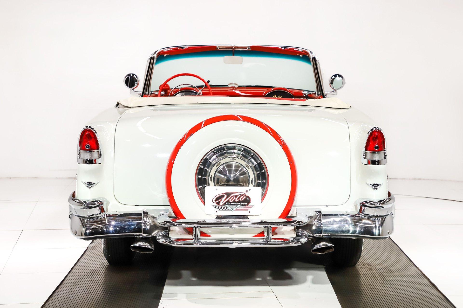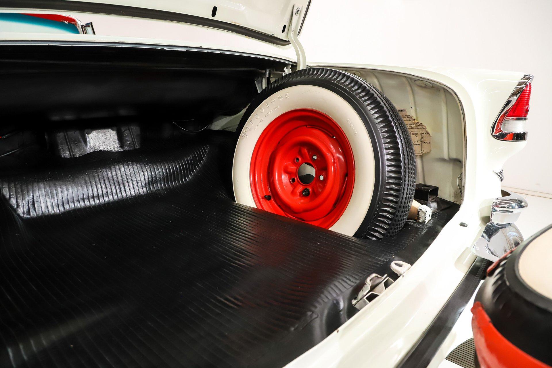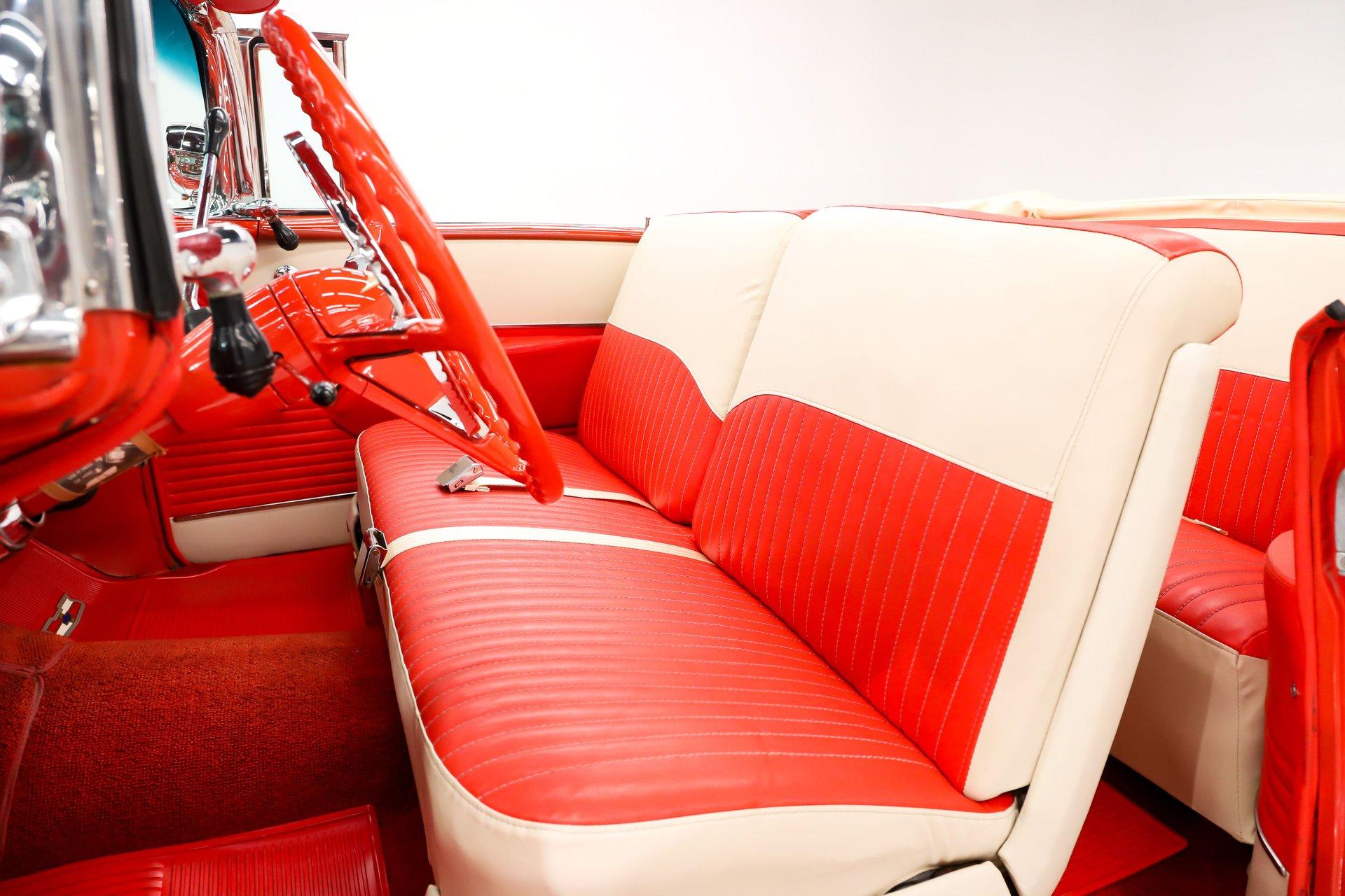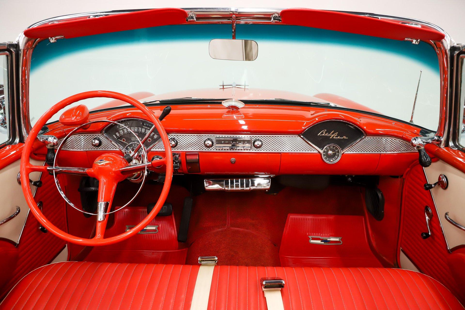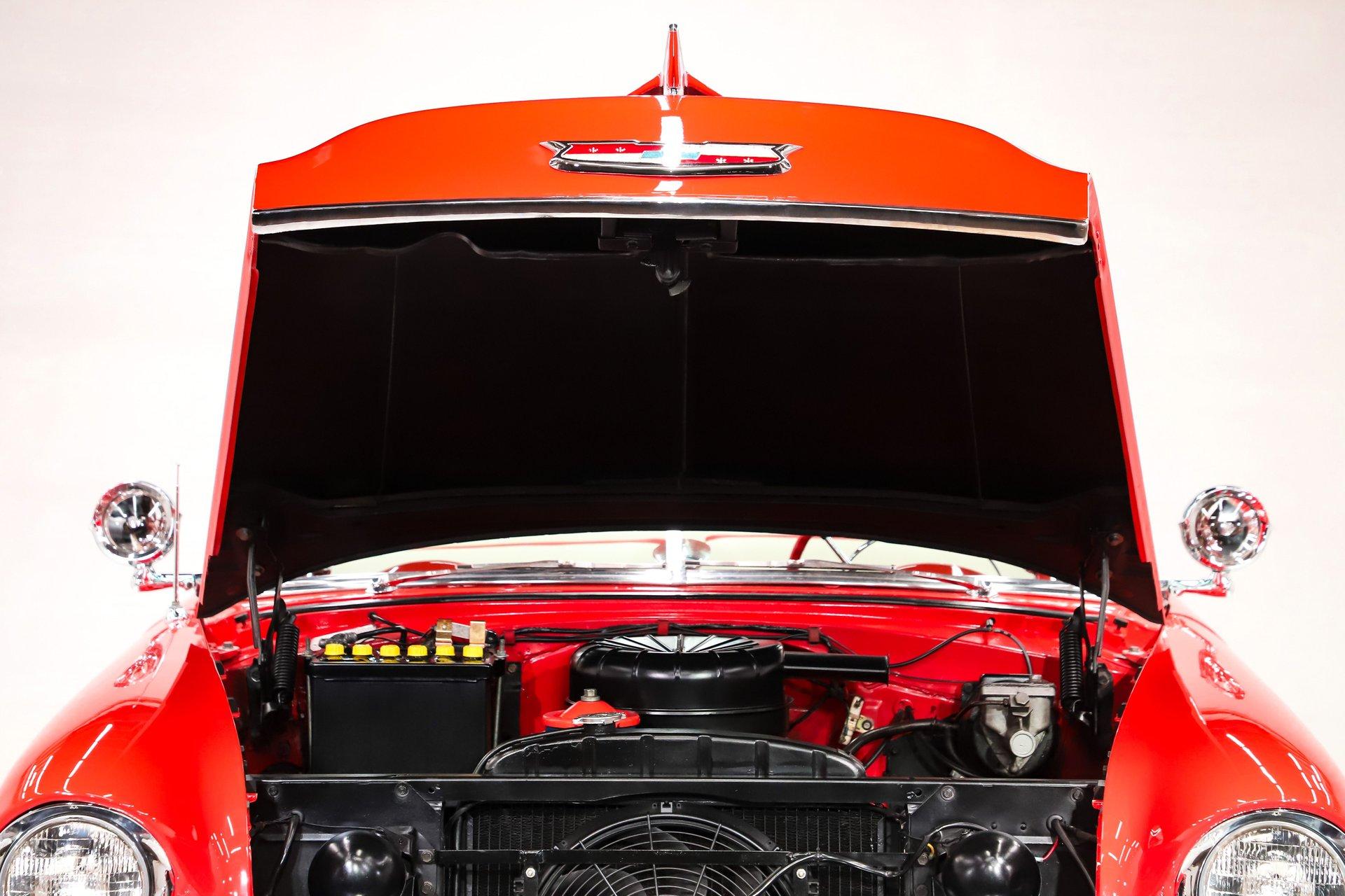 This 55 is loaded! Everything from dual spotlights and a continental kit to power steering and brakes. It has all the accessory trim they offered. A mini me version of itself is even included. It was body off frame restored about 20 years ago. It has been driven 7,300 miles and been very well cared for since. EXTERIOR: It's been painted at least 20 years and the body has held up really well. It's straight and clean with no rust or damage. Painted the signature Gypsy Red and Shoreline Beige colors. It's very smooth and glossy. It looks awesome when you walk up to it, if you inspect closely, you'll find some minor imperfections. Overall, the chrome and trim look great and there's plenty of it! It has optional bumper guards, wing tips on the bumpers, side moldings, rocker moldings, stone shields, door handle guards and fuel door trim. It also has painted metal fender skirts and a continental kit on back. The dual spotlights with mirrors are really cool too. The reverse lights were optional, and they work. It rolls on painted rims with correct hubcaps and Firestone white wall tires. It's a white power top in nice shape. INTERIOR: Also restored 20 years ago back to factory condition and it still looks great. All the metal trim is painted Gypsy red, smooth and glossy. It has the automatic headlight dimmer on the dash along with a viewfinder to see the stoplights. Chrome and trim across the dash looks really nice. Other features include a wonder bar radio, a tissue dispenser, reproduction mats and clock. The seat cushions are nice and firm, the upholstery fits really nice without wrinkles. They've added seat belts front and back. ENGINE COMPARTMENT: It has a date correct 265 V8 built to power pack specs including a correct 4 barrel carb. All stock manifolds, Chevrolet script valve covers, air cleaner, cloth wrapped choke tube etc. Factory options include correct power steering and brakes, an oil filter, upgraded electric wipers and windshield washers. It was upgraded with an electric fan too. Overall, it's clean and painted neatly. It has a Delco battery topper with a disconnect switch. TRUNK COMPARTMENT: The continental kit easily swings out of the way. Under the trunk lid and the compartment is clean metal painted white. It has a reproduction mat and weather strip. It also has a white wall spare with a painted rim and jack assembly. It includes a car cover and some shop manuals. UNDERSIDE: It was completely restored several years ago. There are some items that look fresh including the four shocks, power steering hoses, front brake hoses and fuel tank. We inspected the car and replaced the lower control arm bushings, a rear bearing and gave it an alignment. It's a new dual exhaust system with glasspack mufflers and the correct stainless tips. Rust free all metal floors, braces and rockers. SERVICE: We inspected the car and adjusted the reverse light switch, repaired the turn signals, tightened the visors, replaced the lower control arm bushings gave it a front end alignment, replaced passenger window and track, replaced rear axle bearing. Here is a classic 55 Chevrolet Bel Air in the signature colors and it is loaded like a Chili's baked potato! I, Jay Grams, take pride in personally writing the descriptions for virtually every car for about the last 30 years now. A significant amount of effort goes into fact checking. What I am offering is my professional impression of the vehicle. Our salesmen are happy to assist with descriptions and making sure your questions are answered. One great suggestion is letting us do a walk around video that explains the car's condition in detail. **These cars are displayed in a museum. If interested in a particular car, make an appointment with a salesman to see that car. Without an appointment there is an admission fee to enter the showroom. If you buy a car, your admission will be refunded, and you will be given a 1 year membership. 815 385 3644 9-5 central Sales@volocars.com Answered ASAP Power steering Power brakes Power Pac Oil filter Windshield washers Electric wipers Headlight dimmer Wonder bar radio View finder Reproduction Floormats Seat belts Tissue dispenser Clock Dual spotlights Continental kit Bumper guards Rocker trim Stone shields Fender skirts Fuel door trim Door handle guards Reverse lights Exhaust tips Pedal car