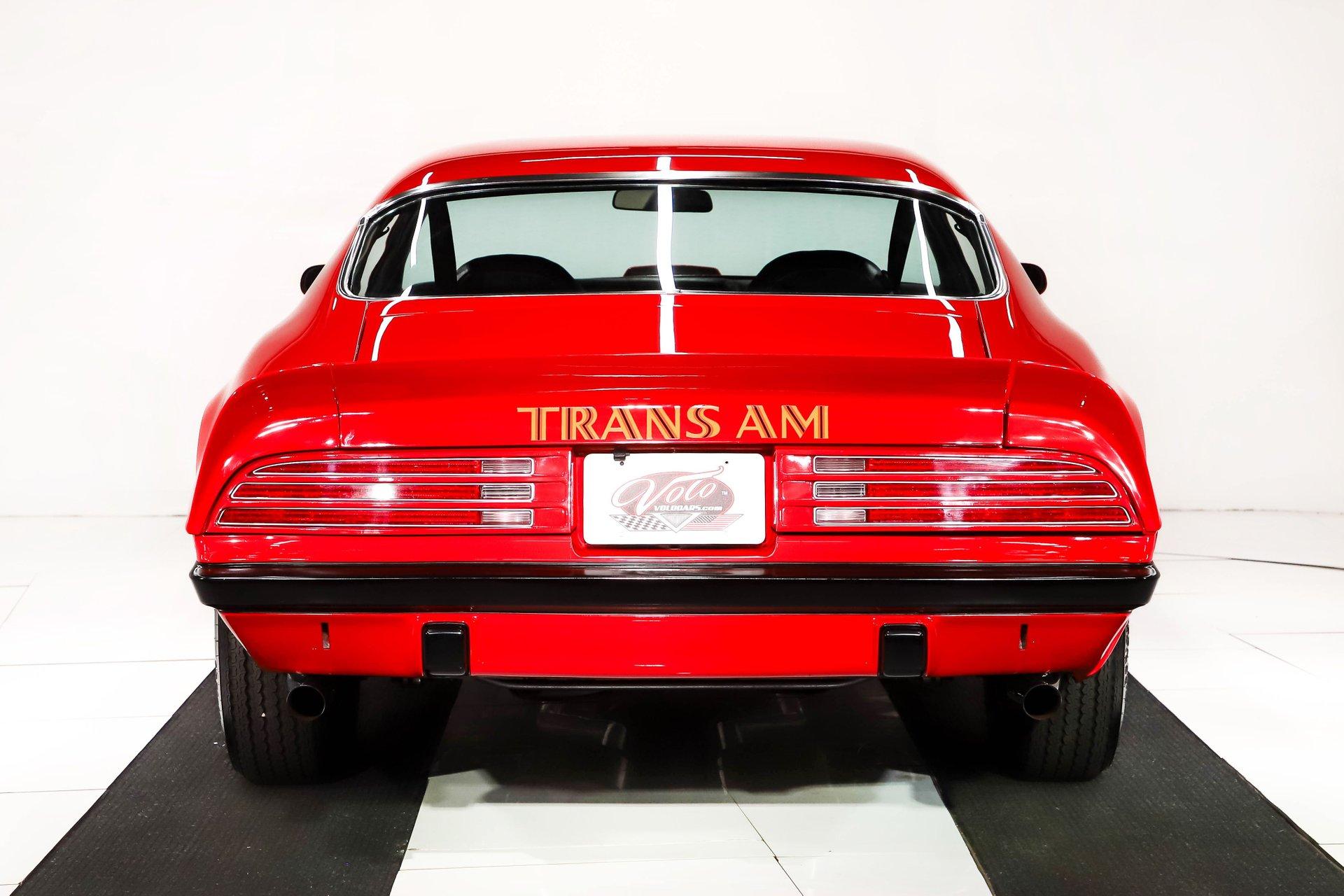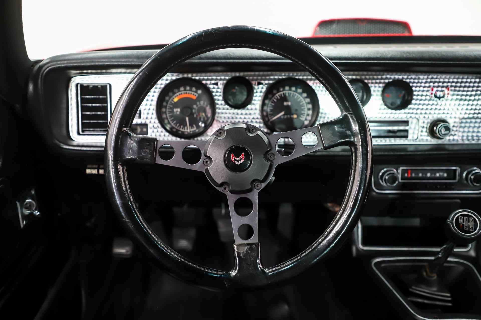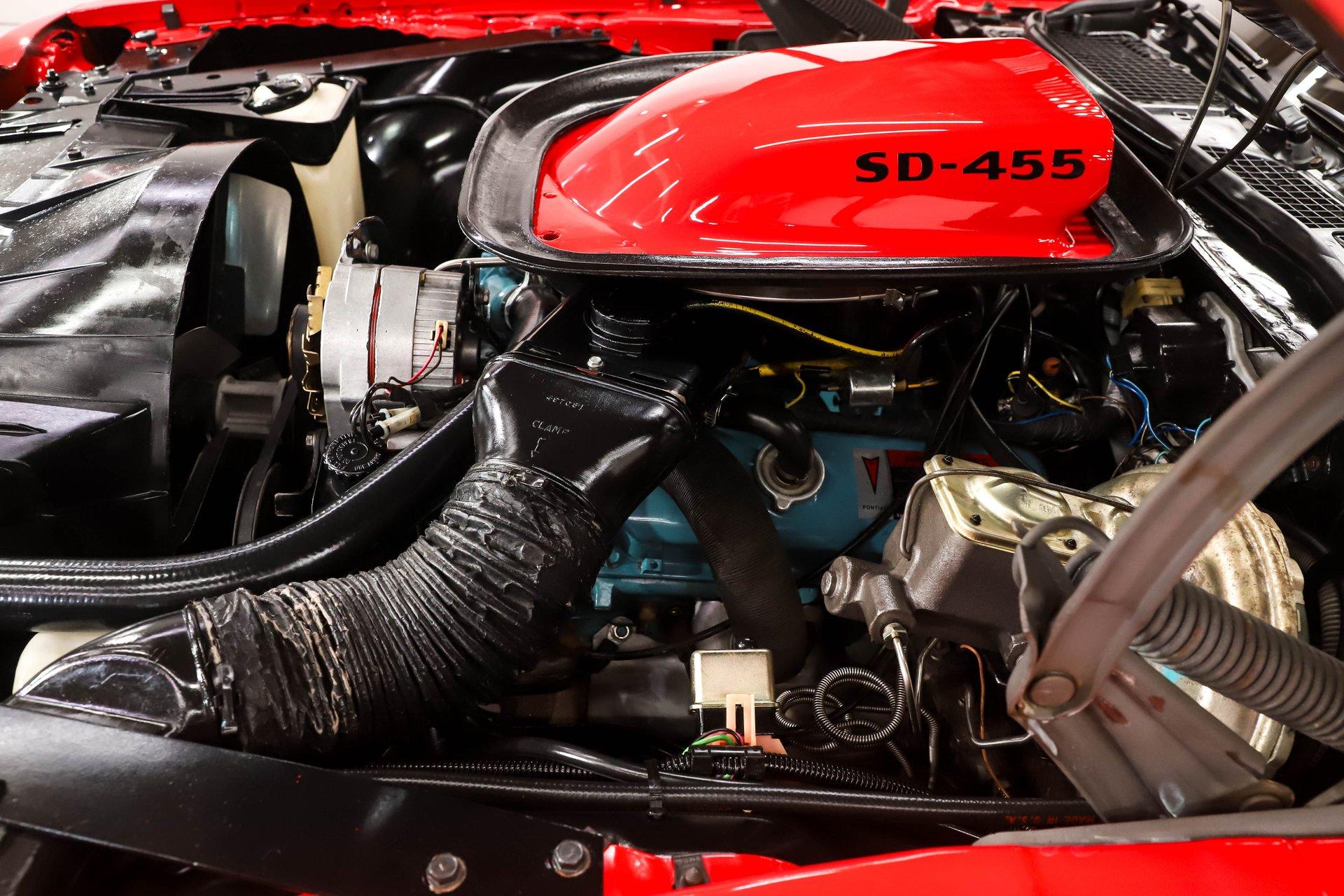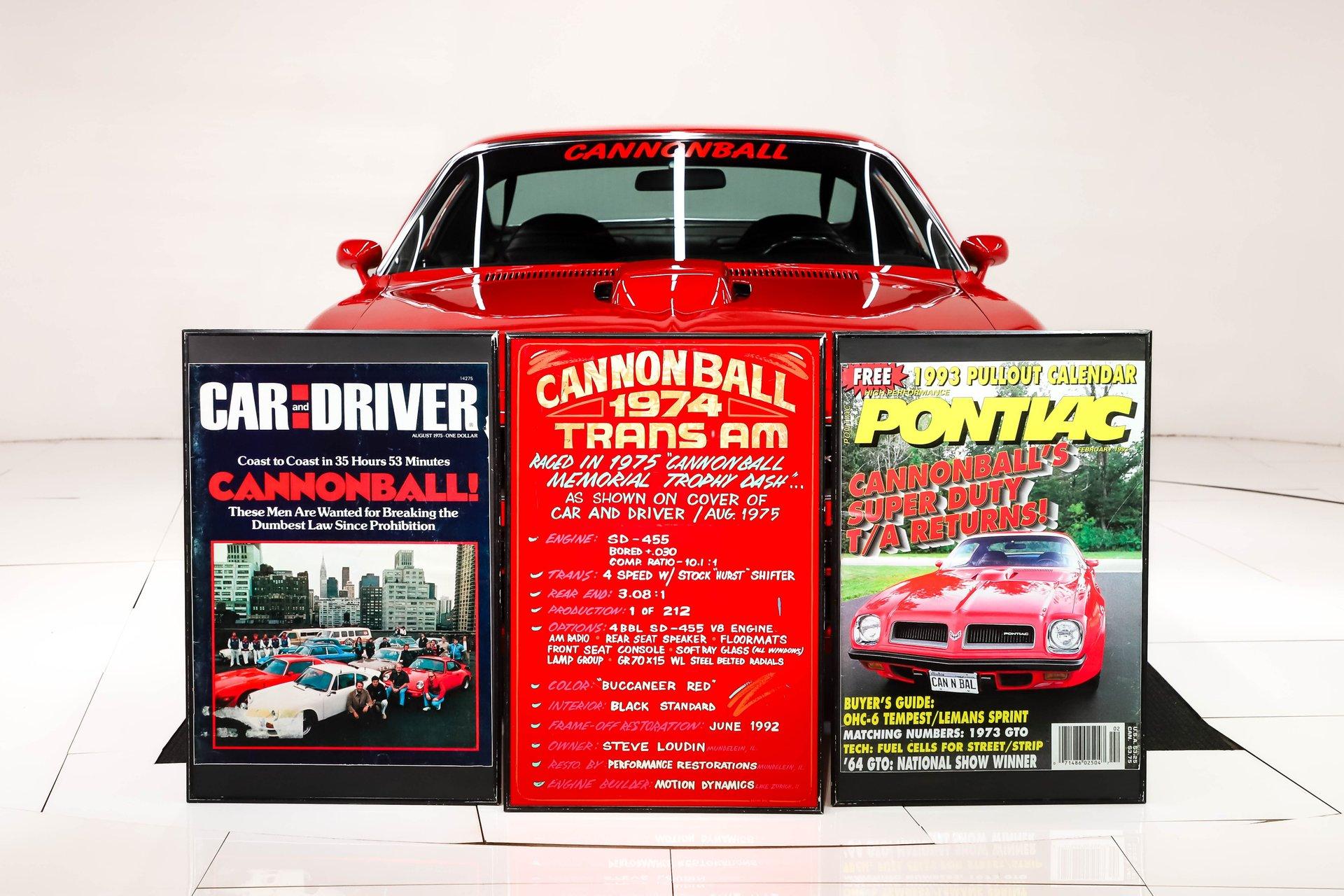 Ultra rare and desirable 4-speed Super Duty! 1 of 212 produced! #'s matching and Pontiac Historic documented! This one is also extra special because it was actually raced in the 1975 Cannonball Run! It was very well documented appearing on the cover of Car and Driver magazine and Pontiac magazine plus it was featured in many other publications! Many cool vintage pictures to document the build and extensive history! Same owner for the past 35 years! Has won numerous awards! Frame off restored by Brent Jarvis of Performance Restorations 32 years ago and it looks like it was finished last month! The legendary Super Duty: Early 1970s was a time where cars were heavily regulated, emissions and gas mileage were far more important than horsepower. A few engineers at Pontiac still had the need for speed. The Super Duty was built under the radar from the top brass. It may look like the standard 455, but that's all they have in common. These were special cast blocks that were hand assembled with upgraded performance parts. This is considered the last muscle car of that era. The 1975 Cannonball Memorial Trophy Dash was a notable event in the world of American motorsports. It was an event organized to honor the memory of Cannonball Baker, a legendary figure in long distance racing. The 1975 event was especially significant due to its competitive field, challenging conditions and demanding course which tested both the skill of the driver and the durability of their machines. This car completed the race in 12th place with an elapsed time of 40 hrs 43 mins and an average speed of 71.3 mph. EXTERIOR: Stunning! The paint was expertly applied with extreme attention to detail. It was then polished to a show quality finish and looks like a piece of red glass. Looking down the side of the body it is 100% laser beam straight. All the panels are properly aligned with gaps that are spot on. The long and heavy doors close with minimal effort. The functioning shaker hood and fender scoops give it an aggressive look. All the glass is crystal clear, even the rubber seals and fuzzy strips were replaced. It's sitting on a set of stock Pontiac Rally II rims wrapped in reproduction Goodyear Steelgard tires. INTERIOR: Gorgeous and virtually like new! From carpet to headliner it is fresh looking. The optional console is home to the star of the show: a Hurst 4-speed!. I love looking in front of me at the formula wheel and the machine turned trim with a full set of rally gauges. It has reproduction GM mats and the lamp group, all the lights are working. ENGINE COMPARTMENT: #'s matching 455 cubic inch engine! The super duty engine was hand built from the factory with a heavy-duty block, forged aluminum flattop pistons, and a Rochester 800 cfm 4 barrel carburetor. Rated at 310 horsepower and a whopping 395 foot pounds of torque. It was professionally rebuilt by Motion Dynamics and bored .030 over with a 10.1:1 compression ratio. Equipped with power steering and power brakes. The battery is properly secured and the squirters are hooked up. It looks totally clean and stock in appearance. TRUNK COMPARTMENT: The underside of the trunk lid and jamb are painted slick just like the body. It has a reproduction sticker and the weatherstrip was replaced. The trunk pan metal is all solid with a factory style spatter finish paint. It is complete with a space saver spare tire, air bottle and jack assembly with lug wrench. It is currently storing all the original magazines and publications the car was featured in and has a very nice display board too. UNDERSIDE: Professional frame off restoration to new condition in 1992 then maintained as needed. Everything still looks fresh and clean. It has the sport suspension with front and rear swaybars. It has front disc brakes, the lines look new, and the e-brake is hooked up. The fuel tank still looks new. The exhaust has Dynomax mufflers and correct chrome tailpipes. Looking up the #'s matching engine it appears stock and spotless. It has a correct T-10 4-speed manual transmission. Correct rear end with 3.08 gear ratio. The frame and floors are solid and rust free. They have both been prepped and neatly painted semi-gloss black. SERVICE: Our lead mechanic thoroughly inspected this car and we replaced the reverse light bulbs, repaired the headlight connection, wired the radio and speaker, replaced the fuel sending unit, replaced the right header gasket, and tightened the exhaust. A super Duty with a 4-speed is one of the most sought after muscle cars, a true collector's item. This is a prime example and the fantastic history that comes with it is priceless. What a great story! This is a once in a lifetime opportunity to own a true relic of automotive and race history! I, Jay Grams, take pride in personally writing the descriptions for virtually every car for about the last 30 years now. A significant amount of effort goes into fact checking. What I am offering is my professional impression of the vehicle. Our salesmen are happy to assist with descriptions and making sure your questions are answered. One great suggestion is letting us do a walk around video that explains the car's condition in detail. **These cars are displayed in a museum. If interested in a particular car, make an appointment with a salesman to see that car. Without an appointment there is an admission fee to enter the showroom. If you buy a car, your admission will be refunded, and you will be given a 1 year membership. 815 385 3644 9-5 central Sales@volocars.com Answered ASAP Super Duty Power steering Power disc brakes Bucket seats Center console Lamp group Rally gauges 160 mph speedometer Formula wheel Sport mirrors Space saver spare Spoilers Shaker hood Fender scoops Rally II wheels