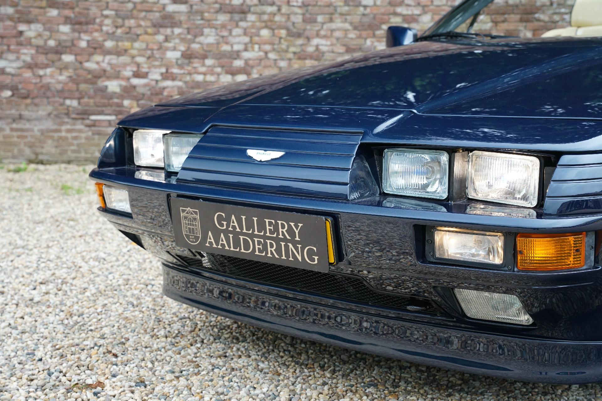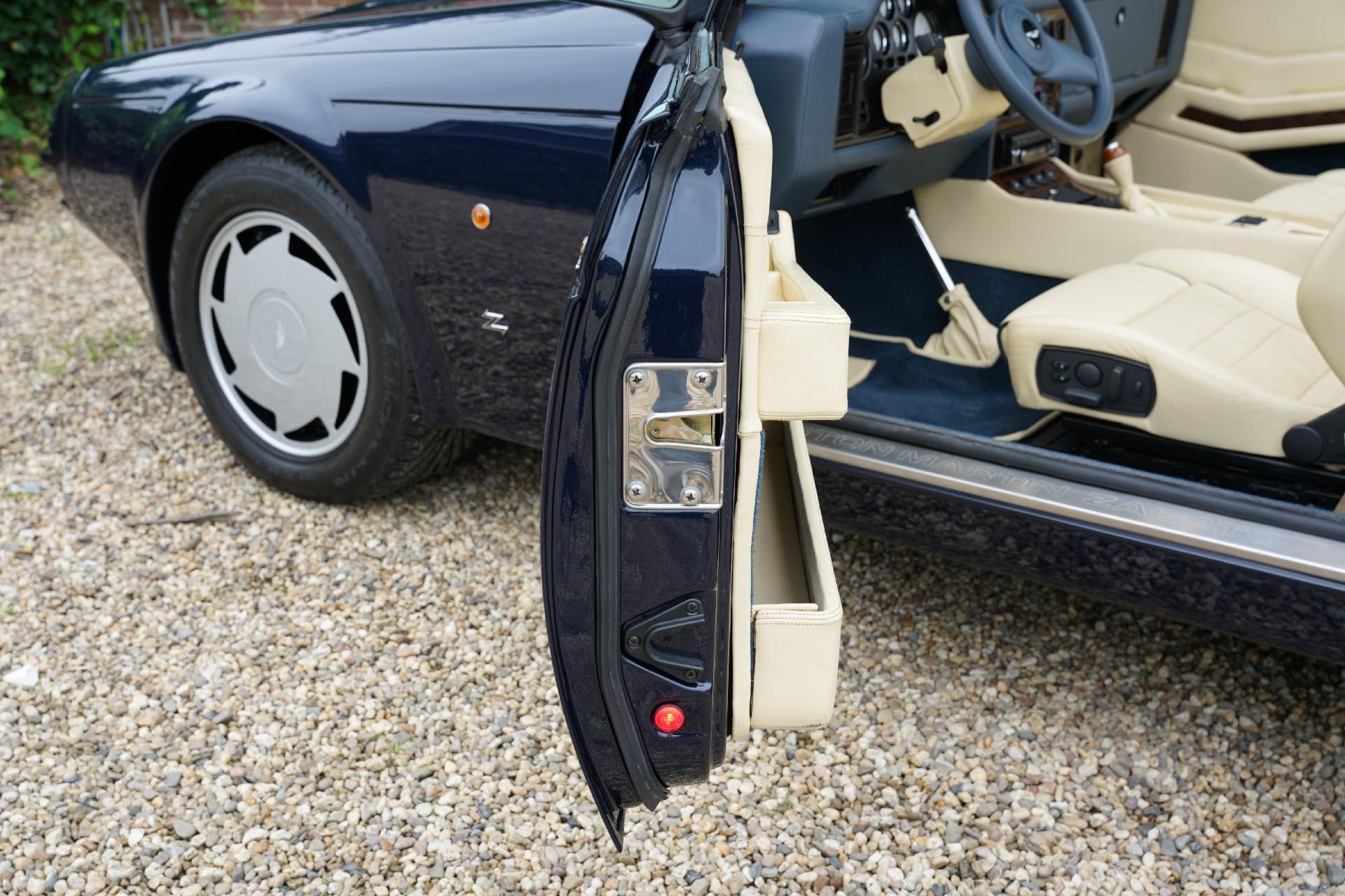 The car was supplied to Mr Philips by the Stratford Aston Martin dealership in the UK on the 12th November 1989. Mr Philips appeared to be an important customer going by the accompanying paperwork in which it is clear that the factory had direct talks with said customer. The car was ordered in a Rolls-Royce Royal Blue finish with a blue piped Magnolia leather interior trim and blue mohair hood. As any proper red-blooded Aston Martin aficionado would do, he bought both the coupe as well as the Volante version of the new Aston Martin Zagato. He collected the car from Stratford, kept it in his heated garage for a few months after which he took it back to Stratford requesting they look after it and regularly turn the engine over. Until 2011 virtually nothing happened to the car, although it did change hands, none of the subsequent owners actually drove the car with the mileometer staying at 200 miles.