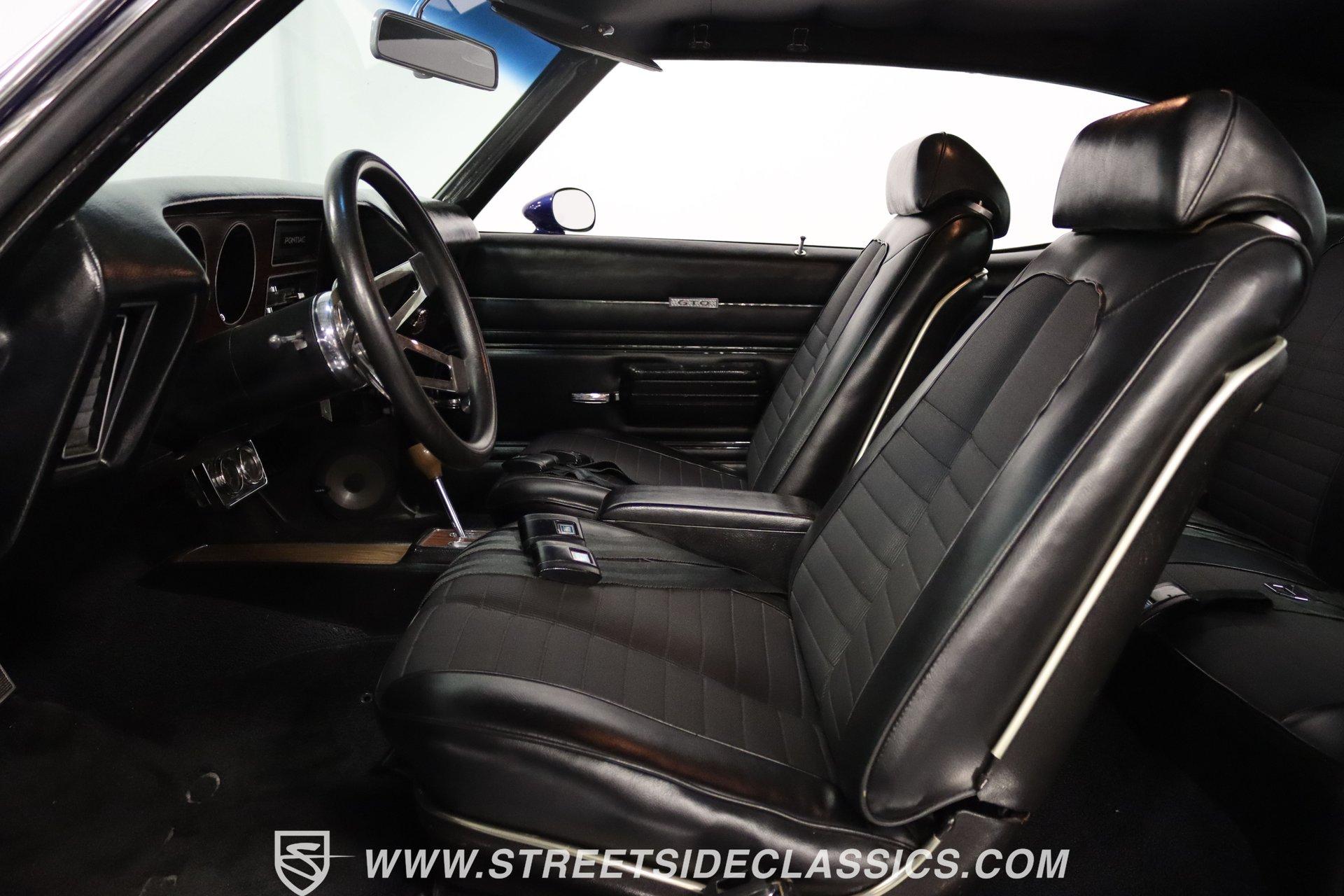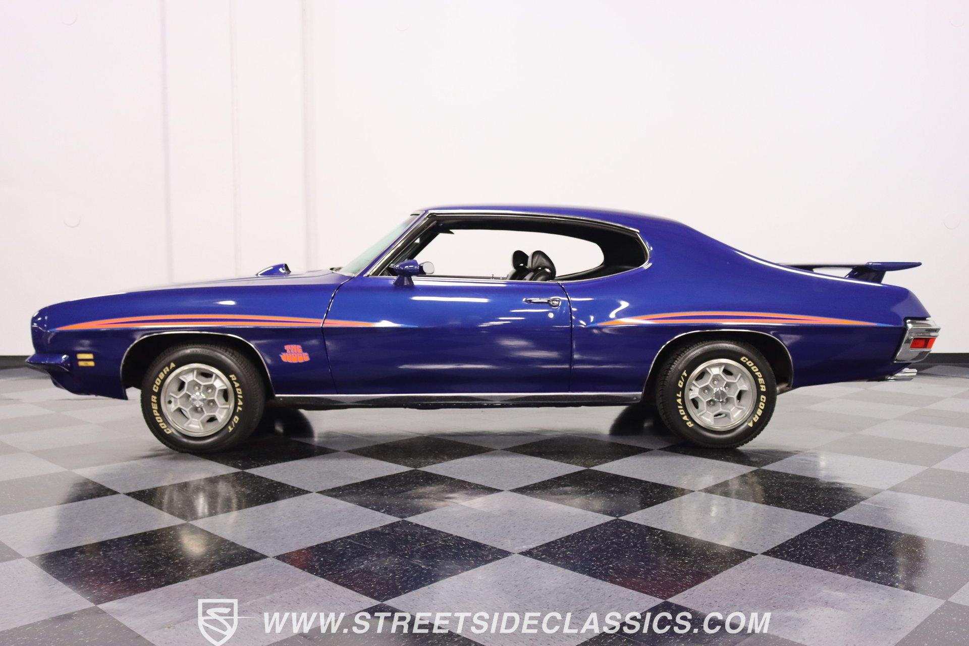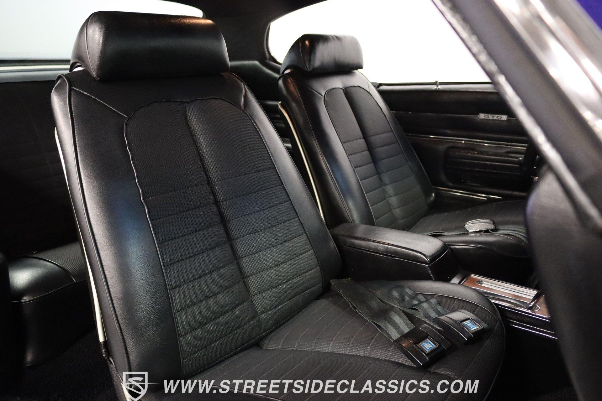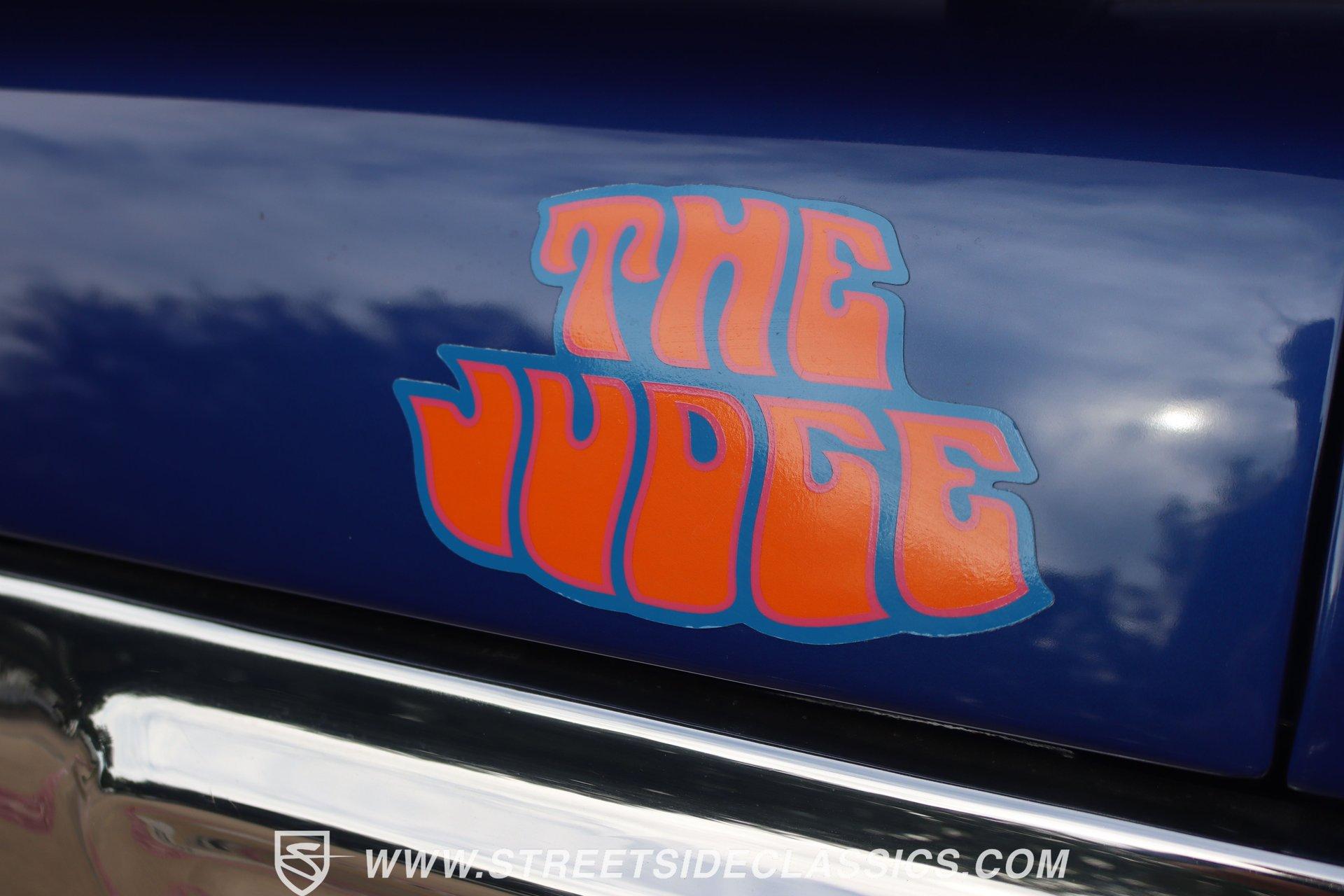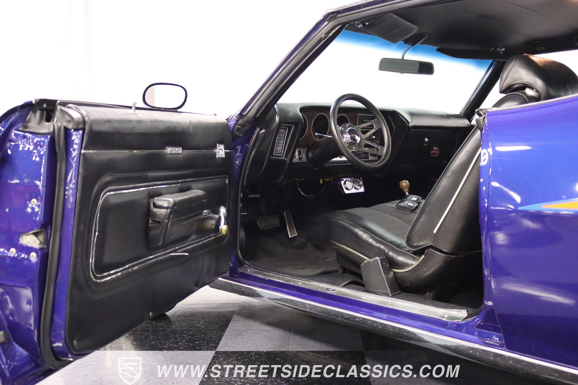 This 1971 Pontiac is a real-deal GTO that has been upgraded to the proper look for The Judge. In fact, as you look through the full package, it's like getting the best of everything Pontiac had to offer in the early 1970s. For example, the color holds close to Regency Blue, which is a hue that was exclusive to 1971. But there's a modern gloss and shine today that makes it even more radiant. Plus, The Judge's sunrise streaks were arguably the best stripe package of the era in the way they highlight the flare of the fenders. The color-matched bumper, big rear spoiler, hood tach, quad exhaust tips, and honeycomb alloys are all the best parts from the one that launched the muscle car. And because this one is so powerful looking inside and out, it's also awesome to have a throaty version of the 400 cubic-inch V8 under the hood. So take some extra time checking out a car that's extra sleek, extra means, and absolutely awesome. HIGHLIGHTS *Awesome shine to the upgraded blue metallic paint *Real-deal GTO upgraded to The Judge -Ram Air hood scoops -Blackout grille -Full-width rear spoiler -Iconic sunrise stripe and graphics package *Desirable hood-mounted tach *Honeycomb alloy wheels *Color-matched front bumper and form-hugging rear chrome bumper *Tasteful and clean black interior goes with The Judge stripes *AM/FM/cassette stereo *Driver-oriented: bucket seats, center console, and sporty round gauges *Classic machine-turned dash panel *Well-placed upgrades: sports steering wheel and aux readouts *400 cubic-inch V8 -Holley four-barrel carburetor -Edelbrock intake -Dual exhaust with Flowmaster mufflers *Three-speed automatic transmission *12-bolt rear end *Boxed rear trailing arms with sway bar *Power steering, power brakes, and front discs A real-deal GTO has an instant pedigree, but this one elevates the full package to deliver the best of the muscle car era. That's no small feat, and thus, it also makes this one of the most distinct ways to bring power to the streets. So if you love a GTO with a true GR-RRR you know this bold blue bad boy is the one. Call today!!!