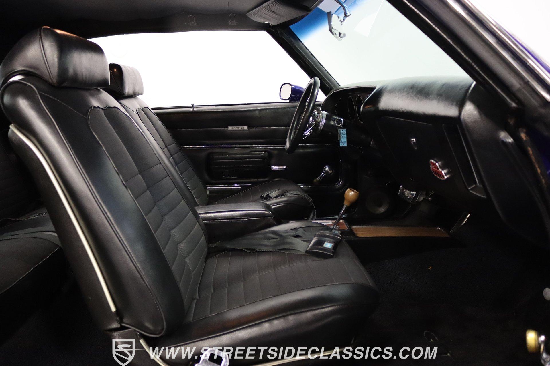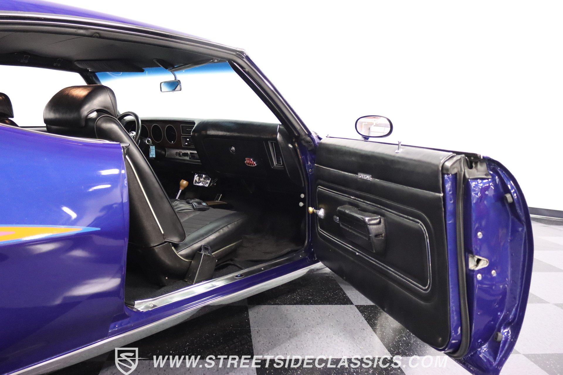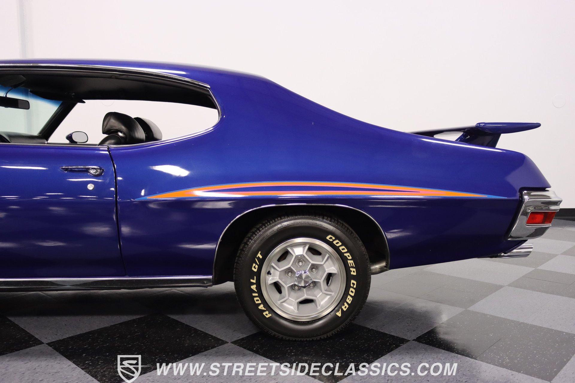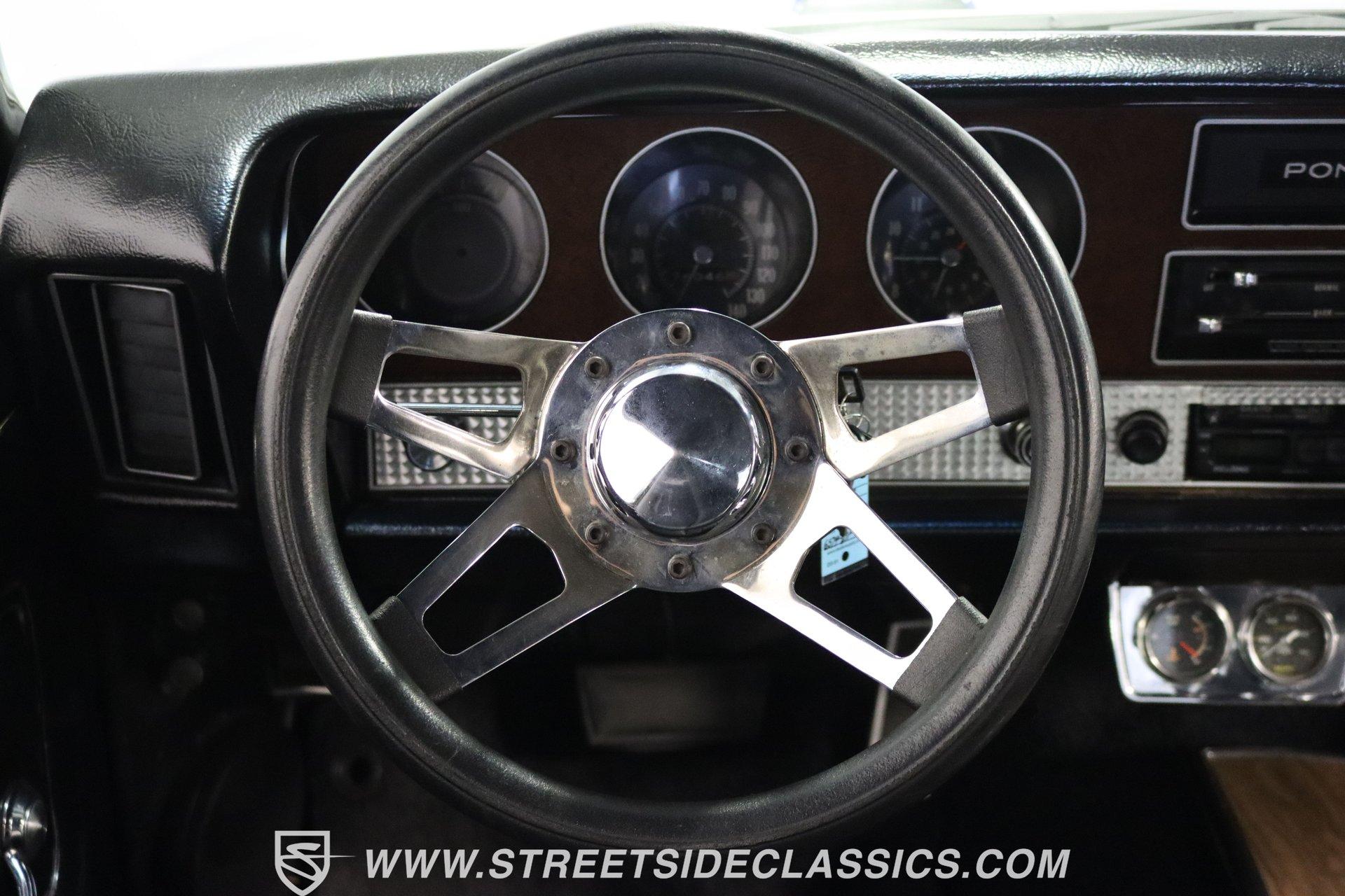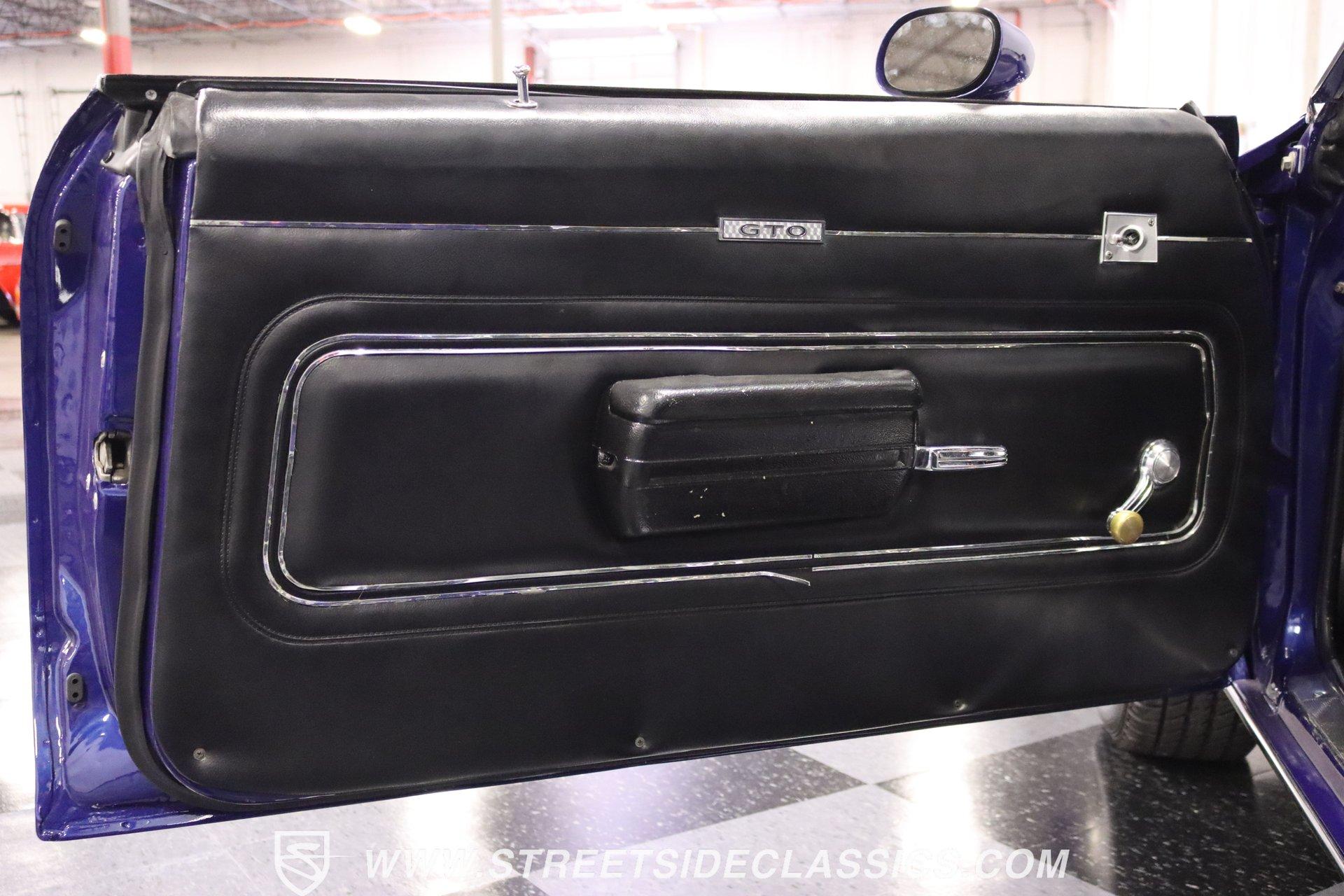 This 1971 Pontiac is a real-deal GTO that has been upgraded to the proper look for The Judge. In fact, as you look through the full package, it's like getting the best of everything Pontiac had to offer in the early 1970s. For example, the color holds close to Regency Blue, which is a hue that was exclusive to 1971. But there's a modern gloss and shine today that makes it even more radiant. Plus, The Judge's sunrise streaks were arguably the best stripe package of the era in the way they highlight the flare of the fenders. The color-matched bumper, big rear spoiler, hood tach, quad exhaust tips, and honeycomb alloys are all the best parts from the one that launched the muscle car. And because this one is so powerful looking inside and out, it's also awesome to have a throaty version of the 400 cubic-inch V8 under the hood. So take some extra time checking out a car that's extra sleek, extra means, and absolutely awesome. HIGHLIGHTS *Awesome shine to the upgraded blue metallic paint *Real-deal GTO upgraded to The Judge -Ram Air hood scoops -Blackout grille -Full-width rear spoiler -Iconic sunrise stripe and graphics package *Desirable hood-mounted tach *Honeycomb alloy wheels *Color-matched front bumper and form-hugging rear chrome bumper *Tasteful and clean black interior goes with The Judge stripes *AM/FM/cassette stereo *Driver-oriented: bucket seats, center console, and sporty round gauges *Classic machine-turned dash panel *Well-placed upgrades: sports steering wheel and aux readouts *400 cubic-inch V8 -Holley four-barrel carburetor -Edelbrock intake -Dual exhaust with Flowmaster mufflers *Three-speed automatic transmission *12-bolt rear end *Boxed rear trailing arms with sway bar *Power steering, power brakes, and front discs A real-deal GTO has an instant pedigree, but this one elevates the full package to deliver the best of the muscle car era. That's no small feat, and thus, it also makes this one of the most distinct ways to bring power to the streets. So if you love a GTO with a true GR-RRR you know this bold blue bad boy is the one. Call today!!!