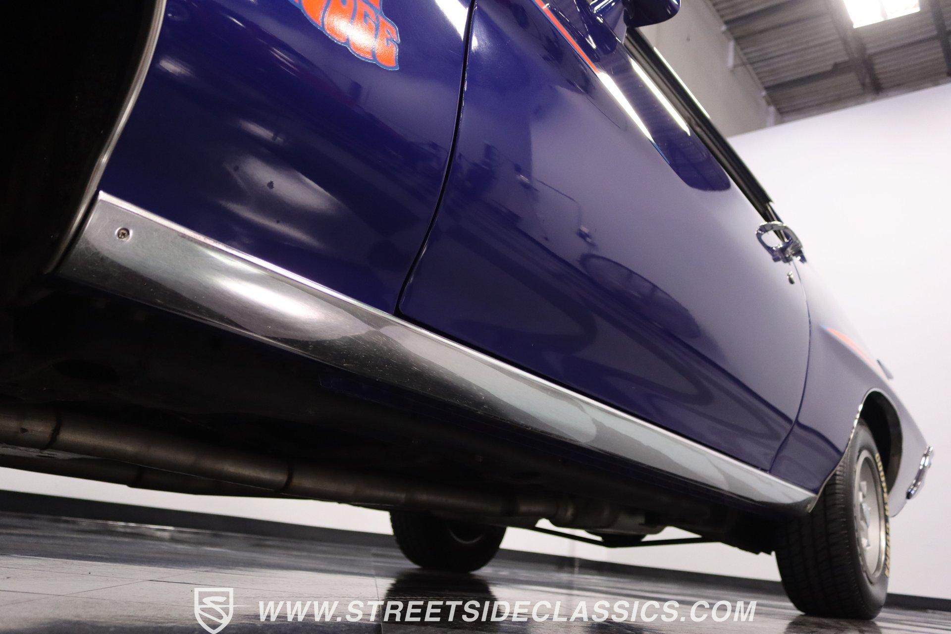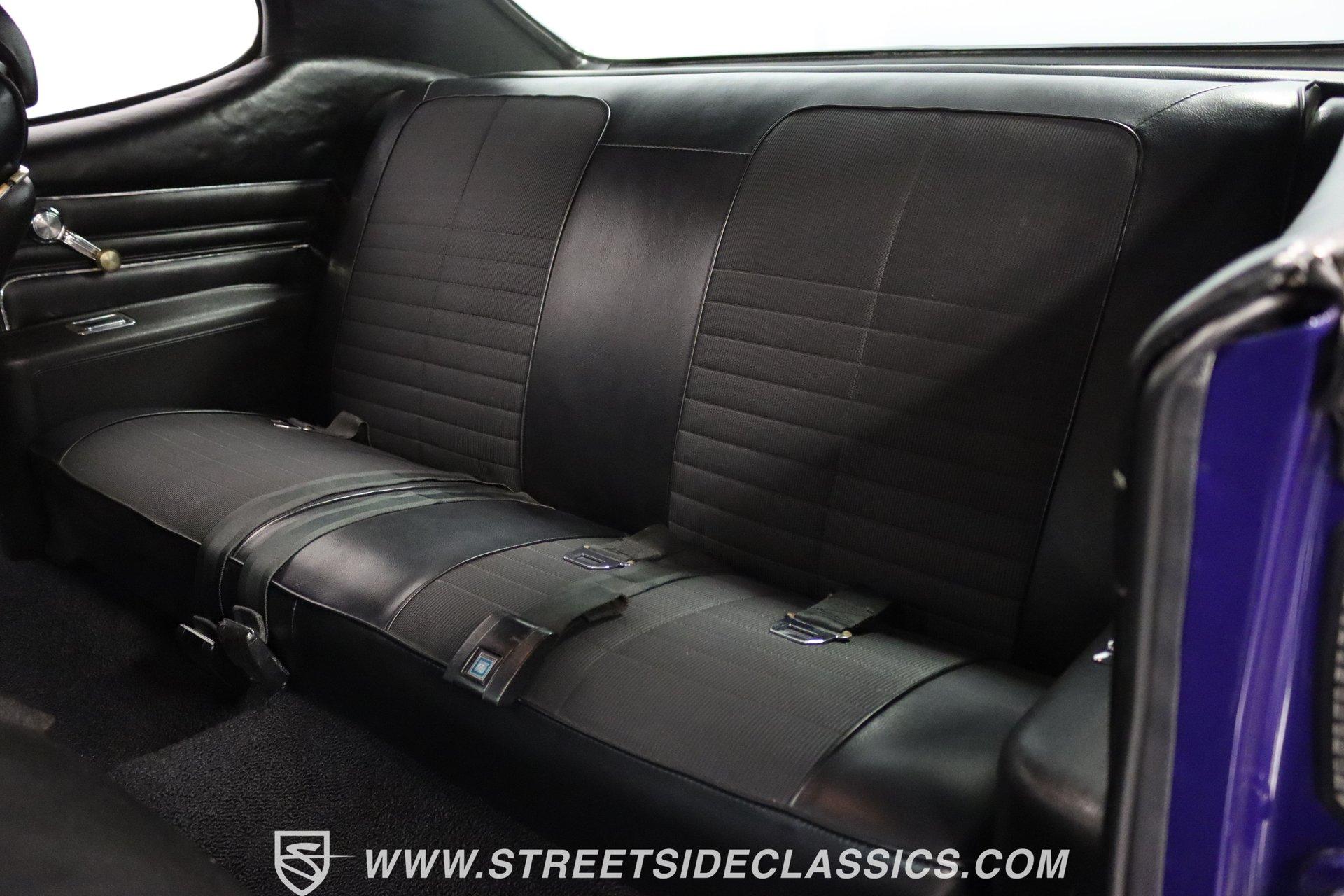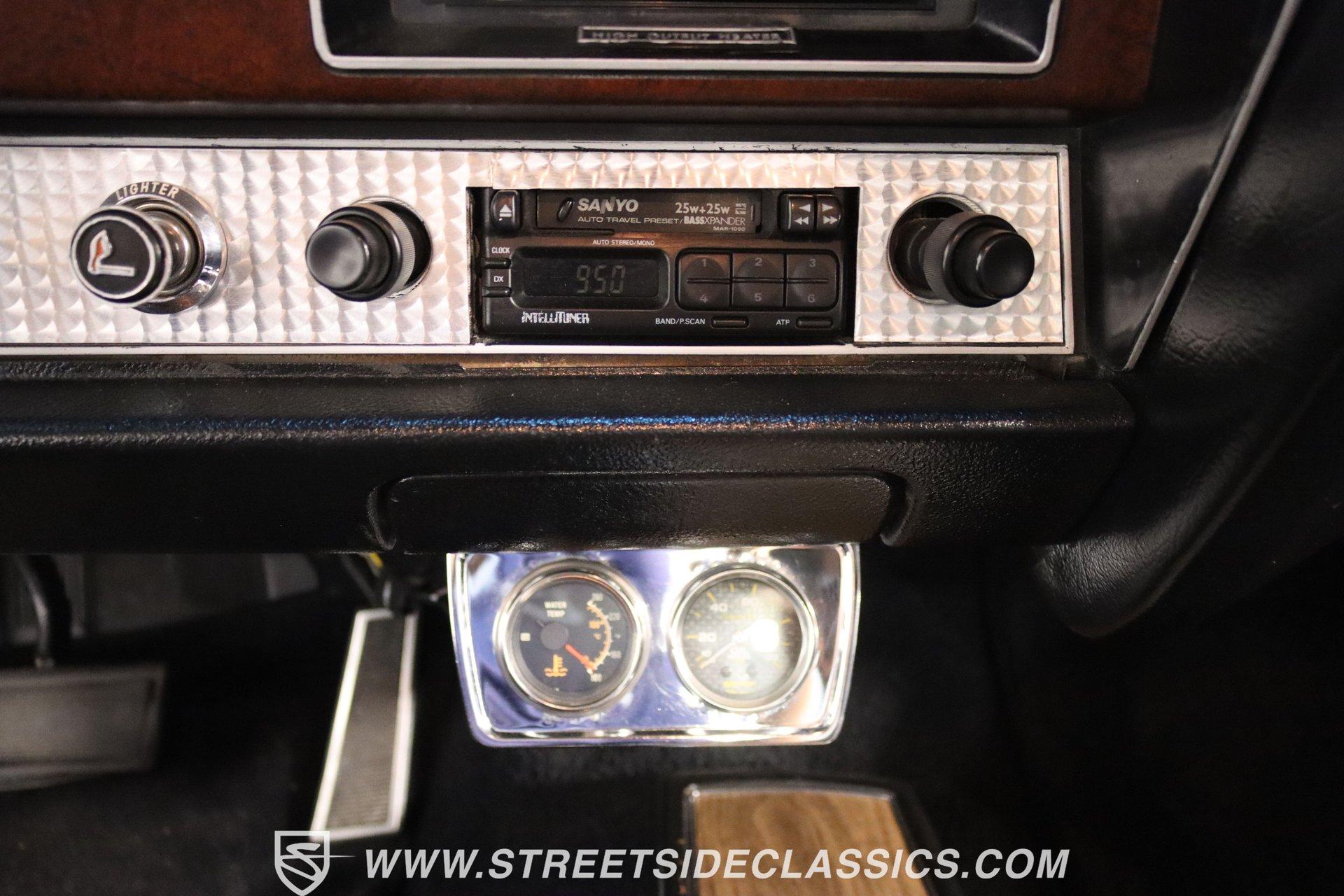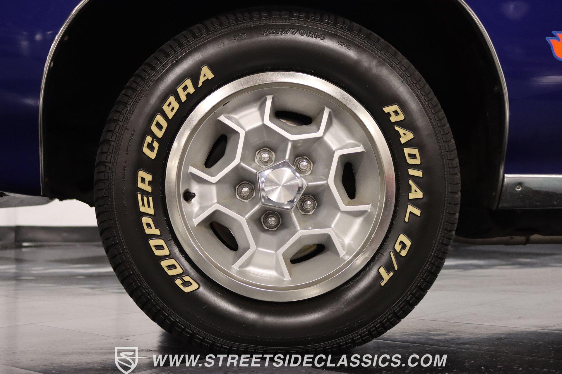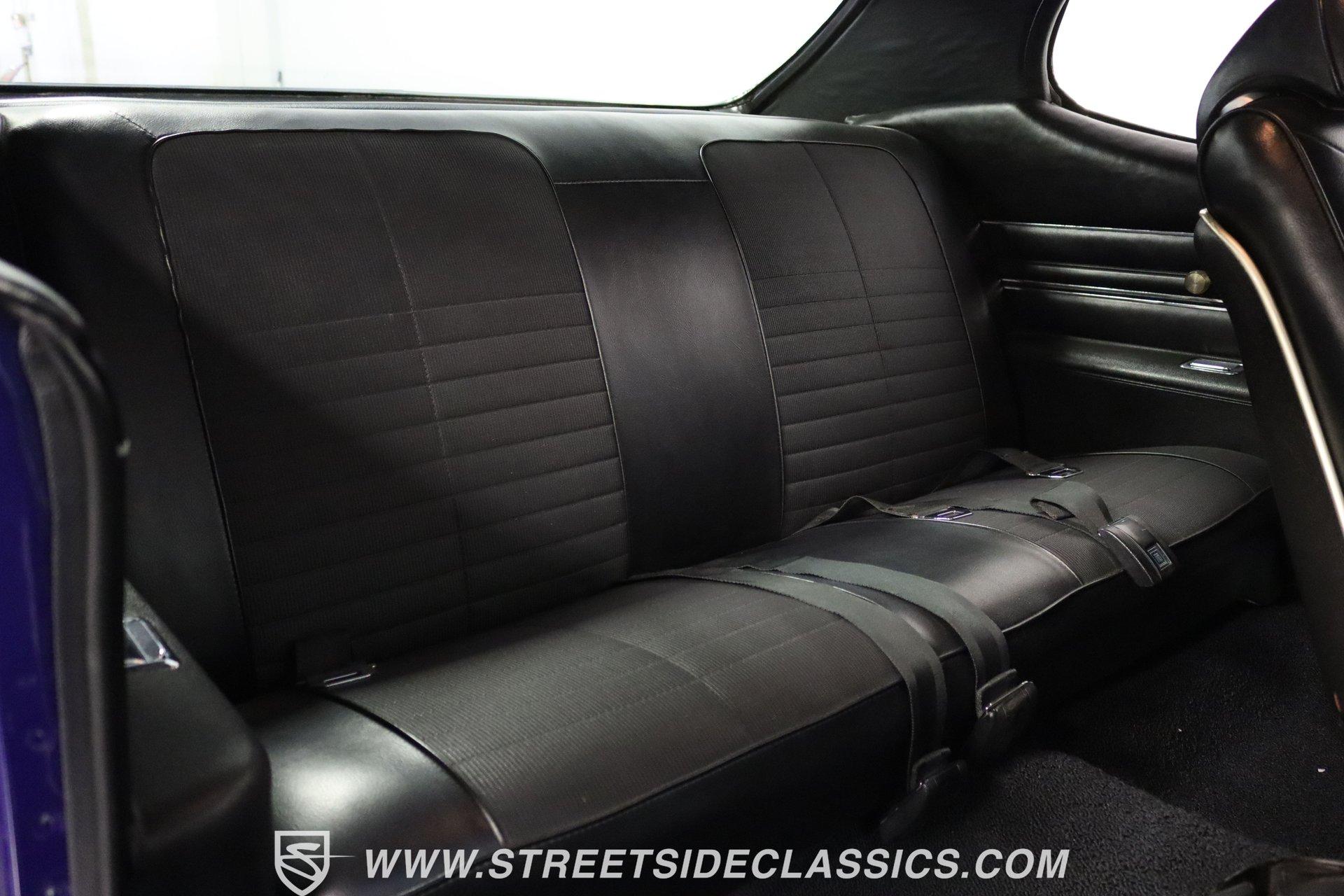 This 1971 Pontiac is a real-deal GTO that has been upgraded to the proper look for The Judge. In fact, as you look through the full package, it's like getting the best of everything Pontiac had to offer in the early 1970s. For example, the color holds close to Regency Blue, which is a hue that was exclusive to 1971. But there's a modern gloss and shine today that makes it even more radiant. Plus, The Judge's sunrise streaks were arguably the best stripe package of the era in the way they highlight the flare of the fenders. The color-matched bumper, big rear spoiler, hood tach, quad exhaust tips, and honeycomb alloys are all the best parts from the one that launched the muscle car. And because this one is so powerful looking inside and out, it's also awesome to have a throaty version of the 400 cubic-inch V8 under the hood. So take some extra time checking out a car that's extra sleek, extra means, and absolutely awesome. HIGHLIGHTS *Awesome shine to the upgraded blue metallic paint *Real-deal GTO upgraded to The Judge -Ram Air hood scoops -Blackout grille -Full-width rear spoiler -Iconic sunrise stripe and graphics package *Desirable hood-mounted tach *Honeycomb alloy wheels *Color-matched front bumper and form-hugging rear chrome bumper *Tasteful and clean black interior goes with The Judge stripes *AM/FM/cassette stereo *Driver-oriented: bucket seats, center console, and sporty round gauges *Classic machine-turned dash panel *Well-placed upgrades: sports steering wheel and aux readouts *400 cubic-inch V8 -Holley four-barrel carburetor -Edelbrock intake -Dual exhaust with Flowmaster mufflers *Three-speed automatic transmission *12-bolt rear end *Boxed rear trailing arms with sway bar *Power steering, power brakes, and front discs A real-deal GTO has an instant pedigree, but this one elevates the full package to deliver the best of the muscle car era. That's no small feat, and thus, it also makes this one of the most distinct ways to bring power to the streets. So if you love a GTO with a true GR-RRR you know this bold blue bad boy is the one. Call today!!!