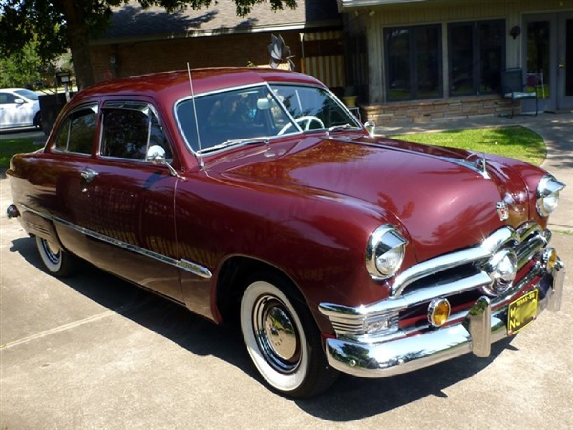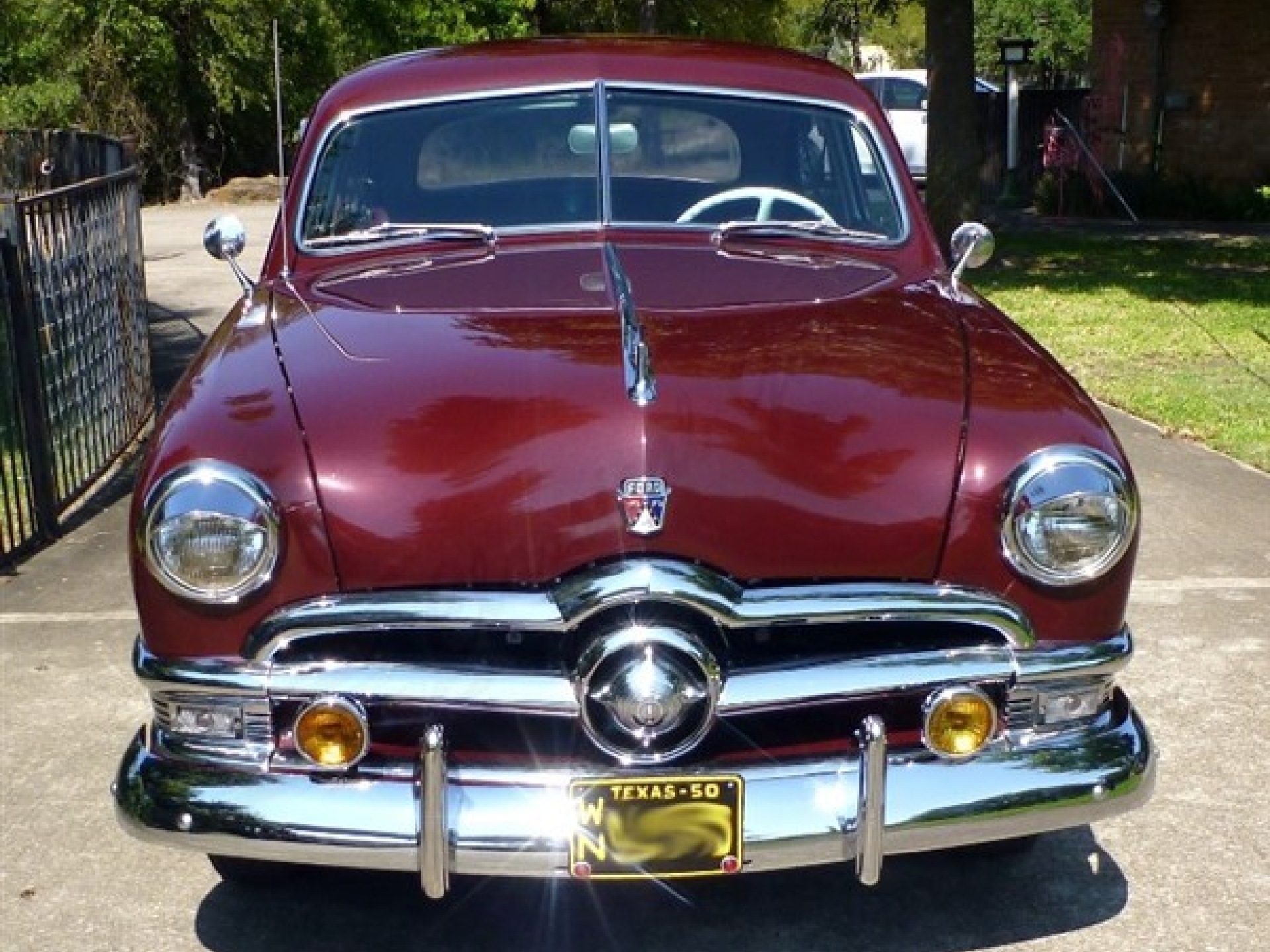 The late 40's was an interesting time for car manufacturers as production stopped due to the war. Even after WWII the production process was slowly starting back up so builders had to focus on offering updated versions of their prewar designs. However, that all changed in 1949 with the shoebox Ford. This would be the first major redesign and Ford would beat the others in the Big Three to the market and Americans were hungry for something new. This saw the end of running boards and the integration of fenders into a single body form. The Custom line was offered as the top trim level and was met with great success. This 1950 is a very nice Custom Shoebox and has been completely restored. It is painted in a very nice dark Burgundy metallic that has a nice finish. It has all of it's shining stainless and chrome nicely mounted in place including that iconic bullet nose grill. Fender skirts are in place on the rear which look perfect on a car of this vintage. All of the electrical works properly and in addition to the cool old school blue dot taillights it has a custom 3rd brake light for added visibility. The glass is all good including that front 2 piece windshield. Under all four corners are painted to match steel wheels with beauty rings, Ford center caps and Goodyear wide white wall radials (P205/75R15).