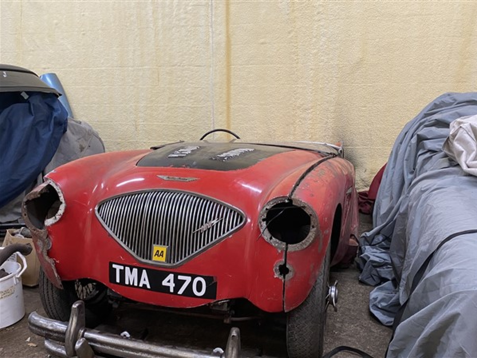 Built on 16th July 1954 and delivered new to W.H. Hyde Limited of Macclesfield, Cheshire this early 100 model is now requiring full restoration and a new chassis. The car retains its original boot, bonnet, cockpit trims, windscreen frame, grille, gauges, engine, gearbox, rear axle and all critical components ready for rebuild.