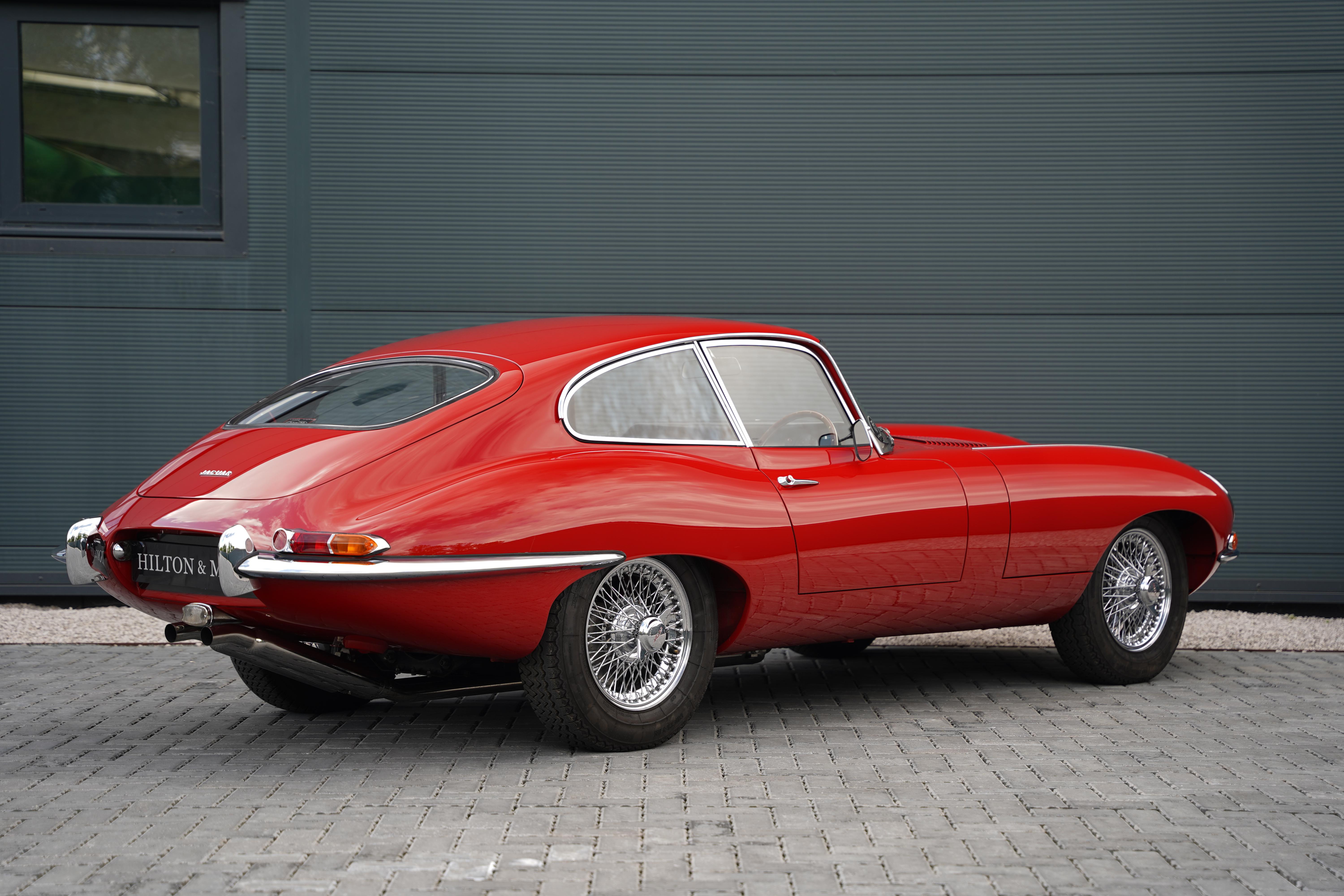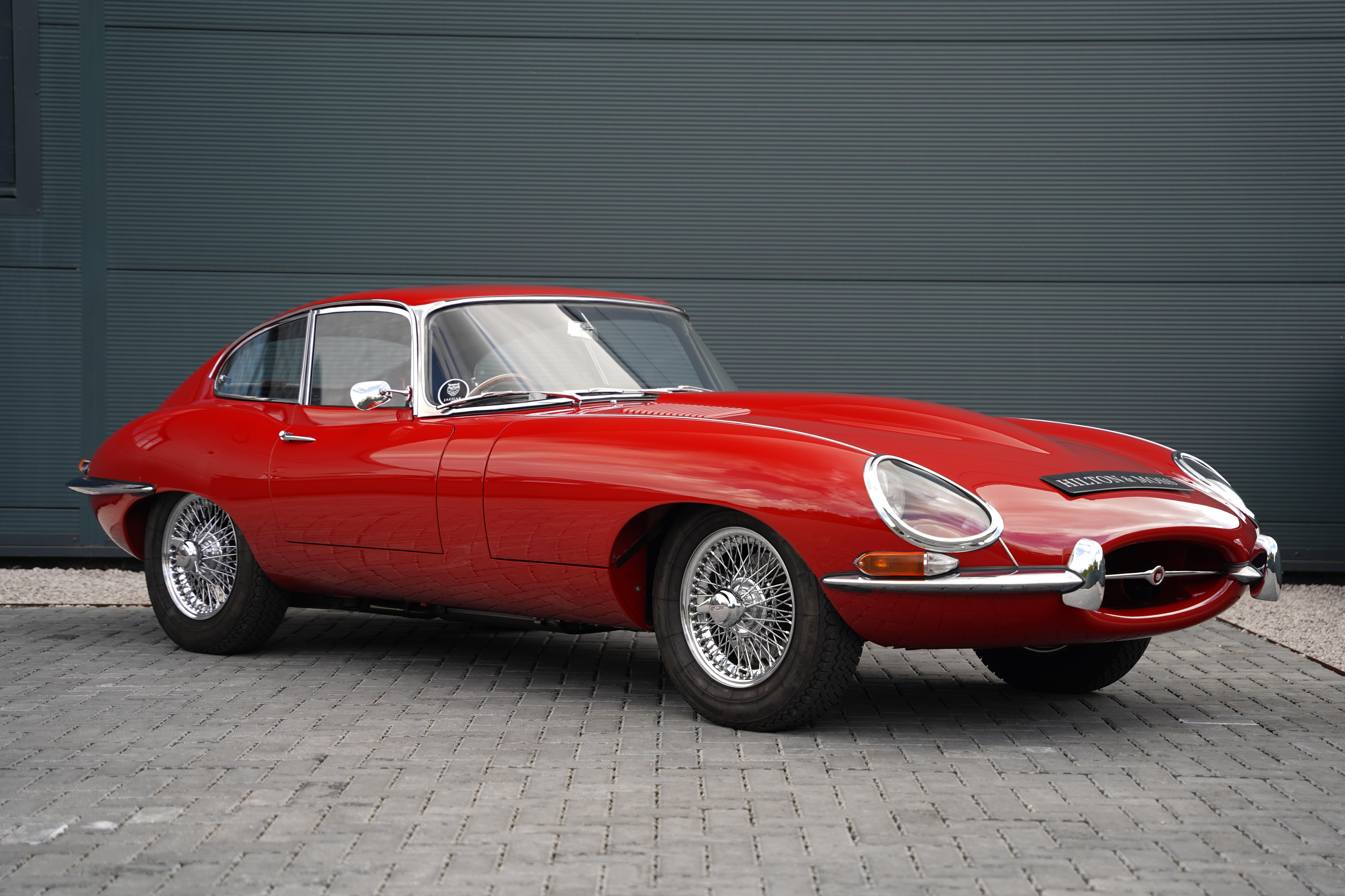 This 1962 Jaguar E-Type Series 1 3.8 Fixed-head Coupe is available for purchase at Hilton & Moss, finished in its stunning original shade of Carmen Red with a Black leather interior.