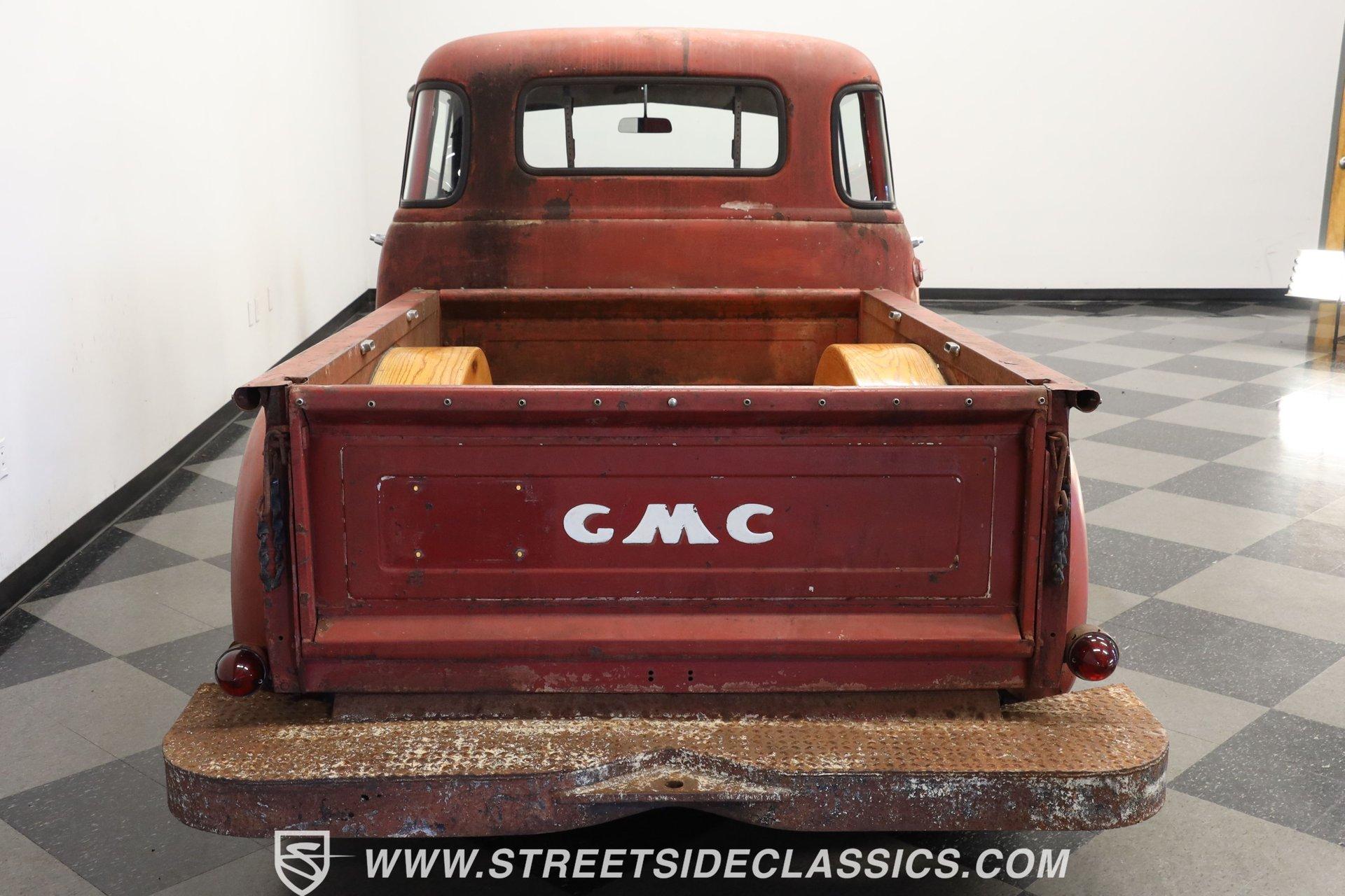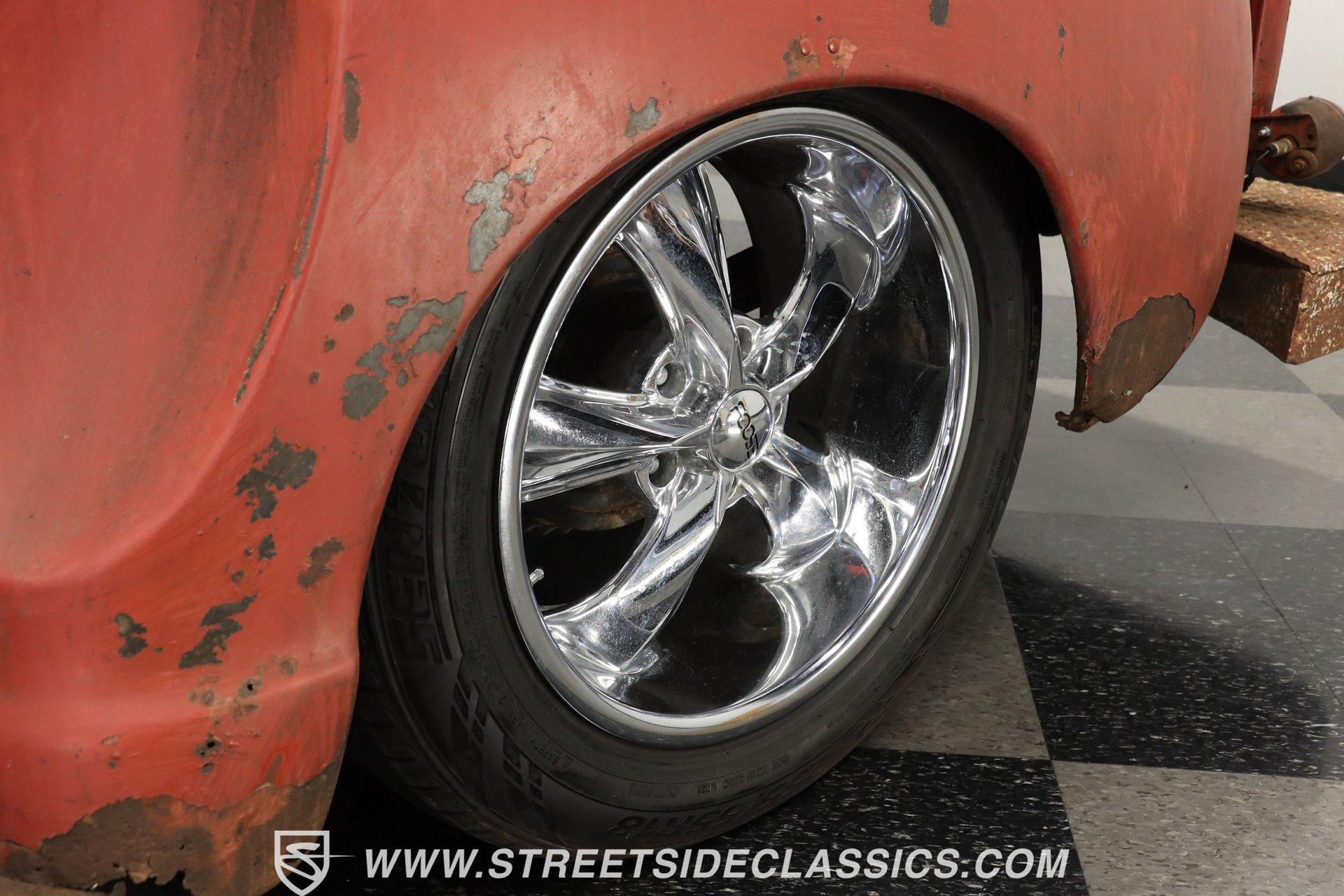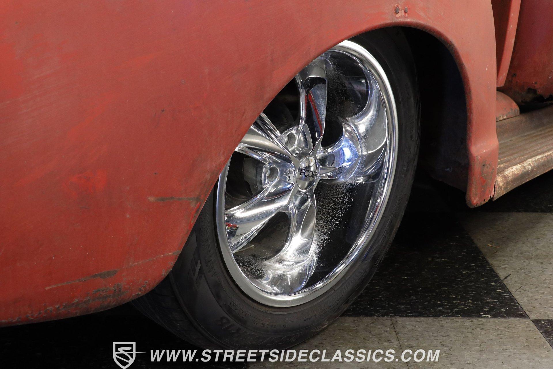 4993-TPA 1954 CHEVROLET 3100 5 WINDOW PATINA This 1954 Chevrolet 3100 5 Window pickup shows off a unique combination of original Chevy and GMC components, creating a one-of-a-kind custom build. The patina exterior reflects decades of natural aging, while chrome bumpers and grille add contrasting brilliance. The classic stepside bed features quality wood planking. Custom 17-inch Foose wheels up front and 18-inch Foose wheels in the rear, wrapped in 225/55ZR17 and 255/55ZR18 tires respectively, give this truck an athletic stance. Metal sunshade and clear glass complete the vintage aesthetic. The interior showcases a cream ultraleather split bench seat surrounded by classic GMC dashboard styling. A Grant GT steering wheel mounted on a tilt column puts control at your fingertips, while Equus gauges keep tabs on vital stats. Modern amenities include power steering, air conditioning, and an AM/FM/Sirius/DVD receiver pushing tunes through 6x9 door speakers. The floor's creative license plate coverage adds unique personality, complemented by a classic gun rack. A modern 5.3L LM7 fuel-injected Vortec V8 engine paired with a 3-speed automatic transmission delivers reliable power. The aluminum radiator with electric fan maintains optimal operating temperature. The front suspension features A-arms with coil springs and shocks, while leaf springs handle rear duties. Front power disc brakes provide stopping power. A dual exhaust system with Cherry Bomb mufflers produces an authoritative sound. HIGHLIGHTS: 5.3L LM7 Fuel-Injected Vortec V8 Engine 3-Speed Automatic Transmission Front Power Disc Brakes A-Arm Front Suspension with Coil Springs Leaf Spring Rear Suspension Aluminum Radiator with Electric Fan Dual Exhaust with Cherry Bomb Mufflers Serpentine Belt System Natural Patina Finish Wood Bed Floor Cream Vinyl Tonneau Cover Chrome Bumpers and Grille 17" Front, 18" Rear Foose Wheels 225/55ZR17 Front, 255/55ZR18 Rear Tires Metal Sunshade GMC Tailgate Cream Ultraleather Split Bench Seat Grant GT Steering Wheel Tilt Steering Column Power Steering Air Conditioning AM/FM/Sirius/DVD Receiver 6x9 Door Speakers Equus Gauges Floor Shifter Gun Rack License Plate Floor Coverage This 1954 Chevrolet 3100 5 Window combines classic truck style with modern performance upgrades. The 5.3L Vortec V8 provides plenty of power, while custom touches make it uniquely yours. Call today! We can assist you with getting an Extended Vehicle Service Plan from Freedom Warranty, which provides comprehensive coverage that can save thousands of dollars on unexpected repairs. Inquire for more details and pricing!