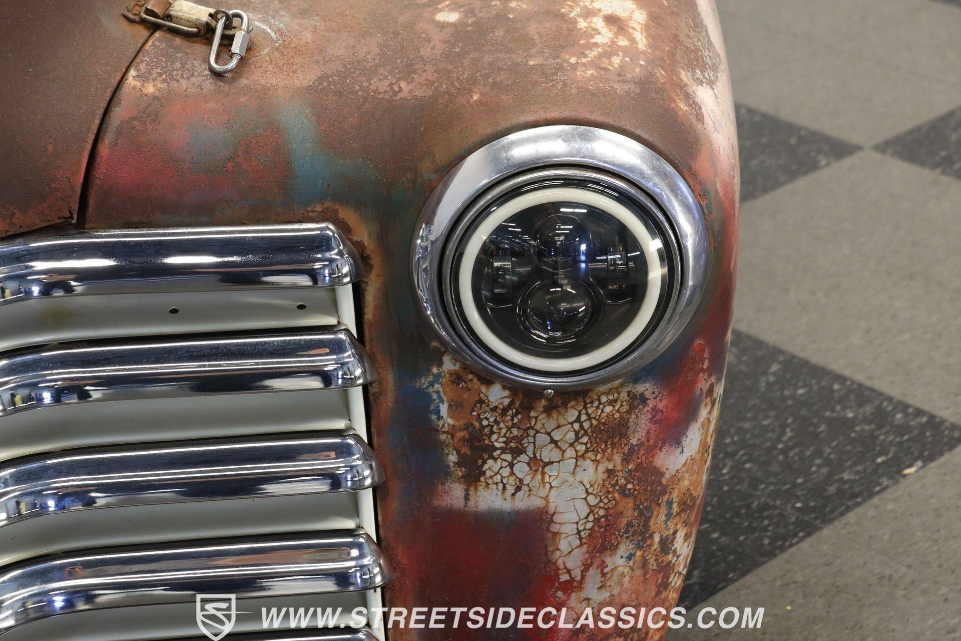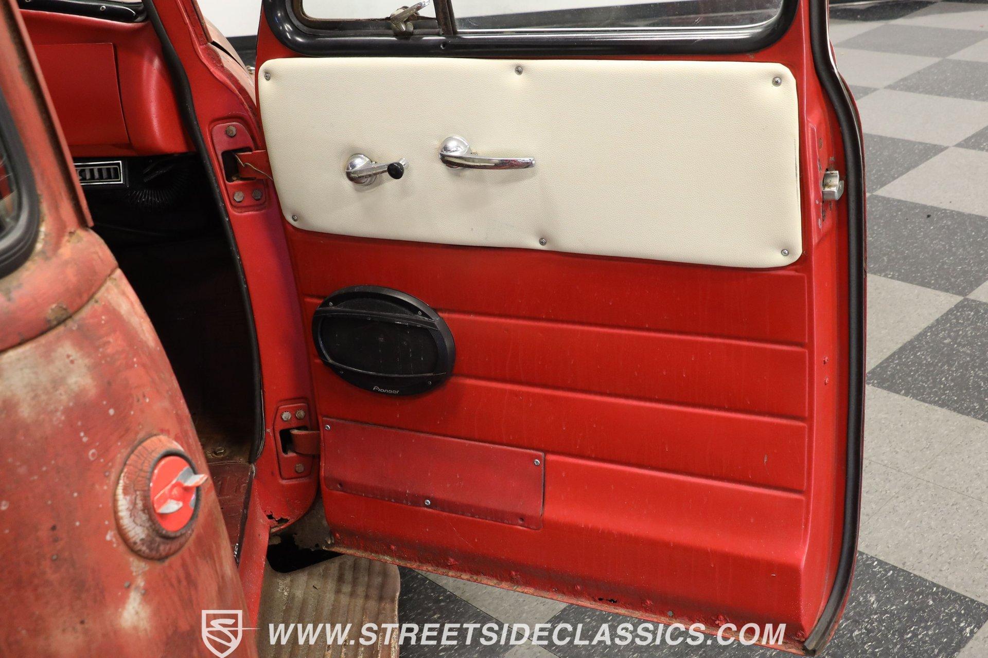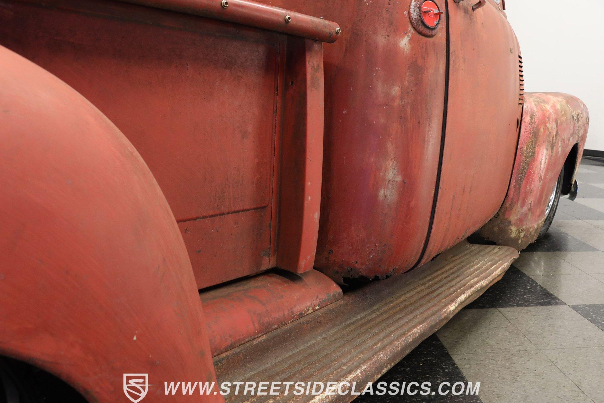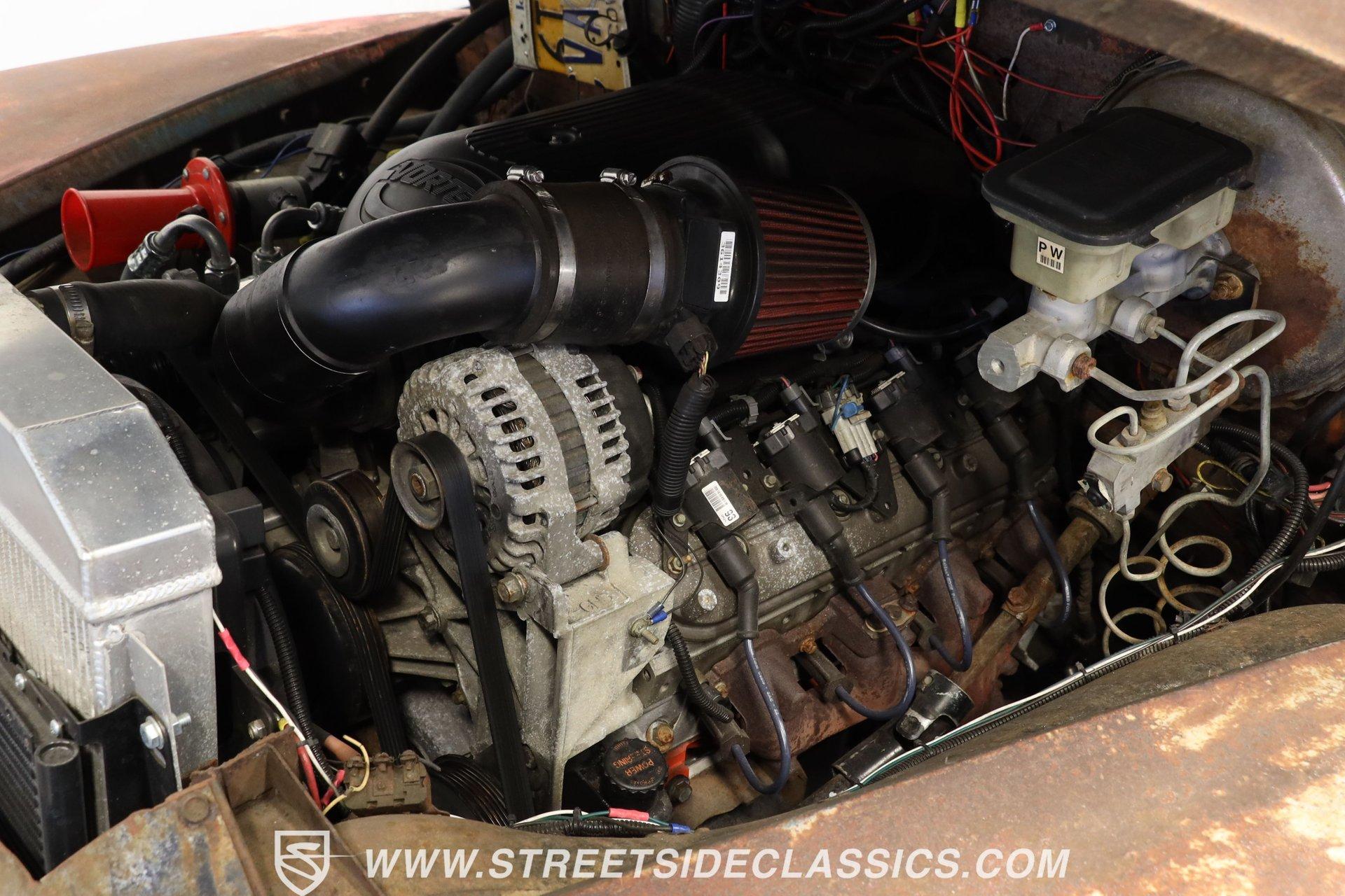 4993-TPA 1954 CHEVROLET 3100 5 WINDOW PATINA This 1954 Chevrolet 3100 5 Window pickup shows off a unique combination of original Chevy and GMC components, creating a one-of-a-kind custom build. The patina exterior reflects decades of natural aging, while chrome bumpers and grille add contrasting brilliance. The classic stepside bed features quality wood planking. Custom 17-inch Foose wheels up front and 18-inch Foose wheels in the rear, wrapped in 225/55ZR17 and 255/55ZR18 tires respectively, give this truck an athletic stance. Metal sunshade and clear glass complete the vintage aesthetic. The interior showcases a cream ultraleather split bench seat surrounded by classic GMC dashboard styling. A Grant GT steering wheel mounted on a tilt column puts control at your fingertips, while Equus gauges keep tabs on vital stats. Modern amenities include power steering, air conditioning, and an AM/FM/Sirius/DVD receiver pushing tunes through 6x9 door speakers. The floor's creative license plate coverage adds unique personality, complemented by a classic gun rack. A modern 5.3L LM7 fuel-injected Vortec V8 engine paired with a 3-speed automatic transmission delivers reliable power. The aluminum radiator with electric fan maintains optimal operating temperature. The front suspension features A-arms with coil springs and shocks, while leaf springs handle rear duties. Front power disc brakes provide stopping power. A dual exhaust system with Cherry Bomb mufflers produces an authoritative sound. HIGHLIGHTS: 5.3L LM7 Fuel-Injected Vortec V8 Engine 3-Speed Automatic Transmission Front Power Disc Brakes A-Arm Front Suspension with Coil Springs Leaf Spring Rear Suspension Aluminum Radiator with Electric Fan Dual Exhaust with Cherry Bomb Mufflers Serpentine Belt System Natural Patina Finish Wood Bed Floor Cream Vinyl Tonneau Cover Chrome Bumpers and Grille 17" Front, 18" Rear Foose Wheels 225/55ZR17 Front, 255/55ZR18 Rear Tires Metal Sunshade GMC Tailgate Cream Ultraleather Split Bench Seat Grant GT Steering Wheel Tilt Steering Column Power Steering Air Conditioning AM/FM/Sirius/DVD Receiver 6x9 Door Speakers Equus Gauges Floor Shifter Gun Rack License Plate Floor Coverage This 1954 Chevrolet 3100 5 Window combines classic truck style with modern performance upgrades. The 5.3L Vortec V8 provides plenty of power, while custom touches make it uniquely yours. Call today! We can assist you with getting an Extended Vehicle Service Plan from Freedom Warranty, which provides comprehensive coverage that can save thousands of dollars on unexpected repairs. Inquire for more details and pricing!