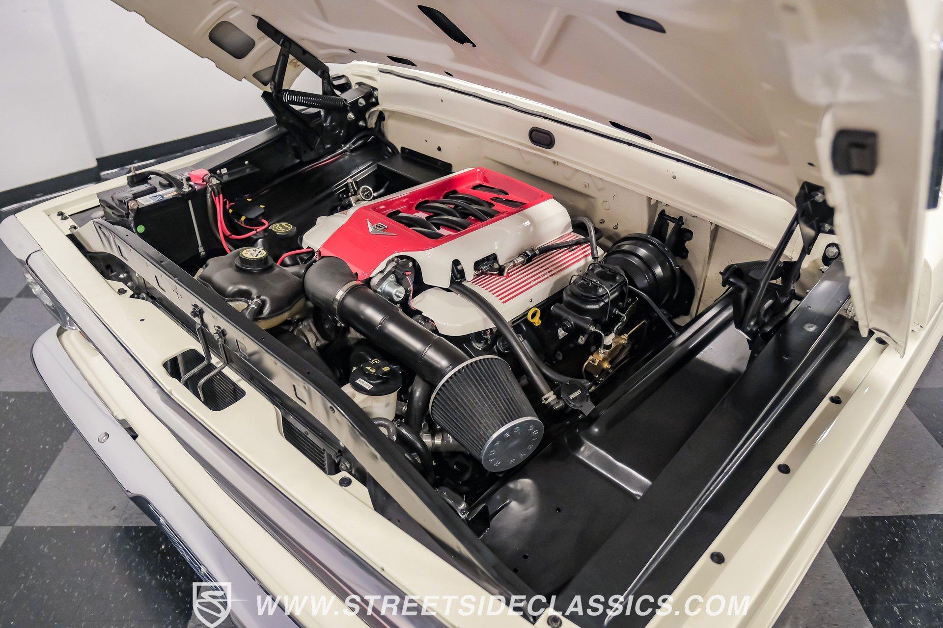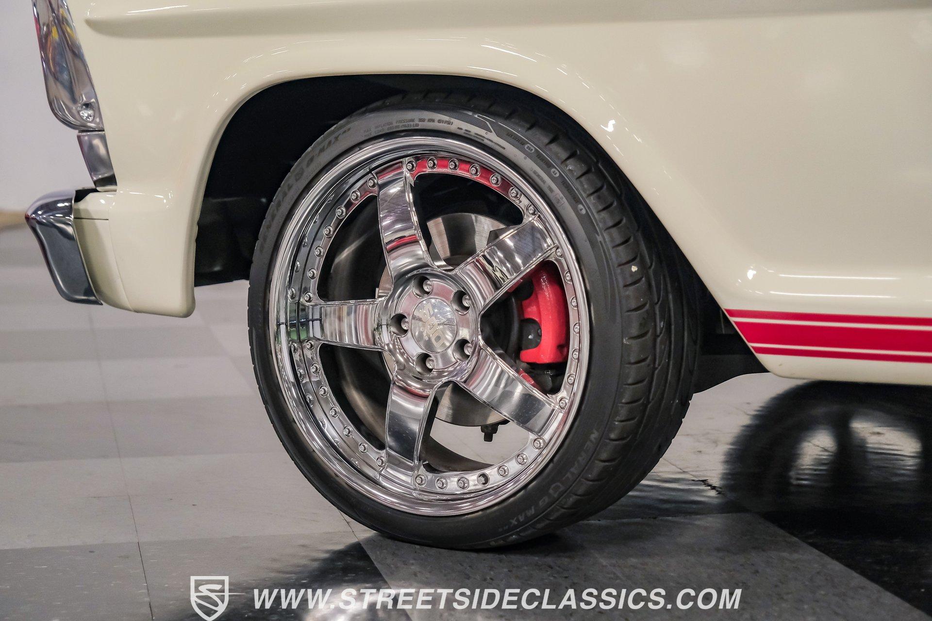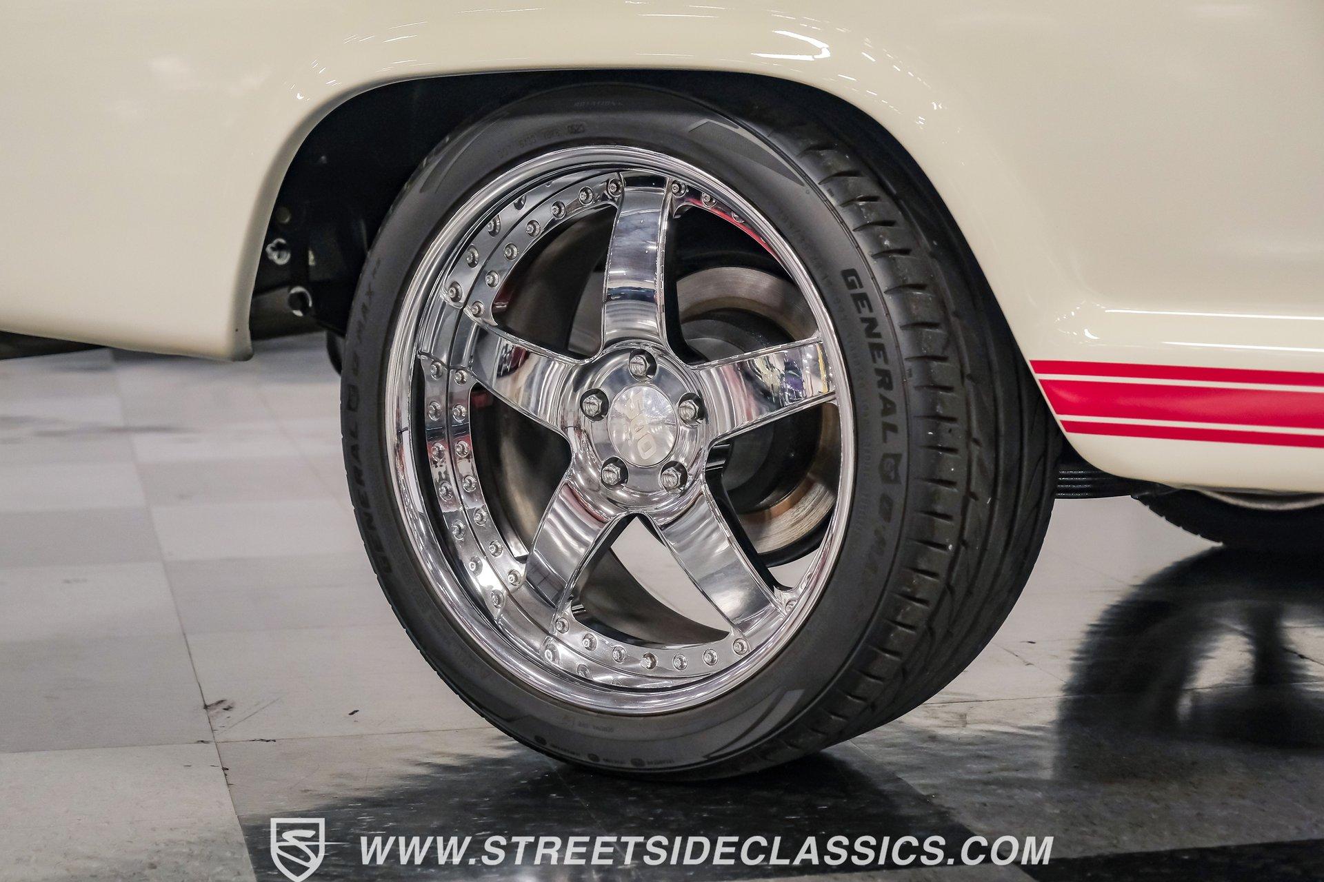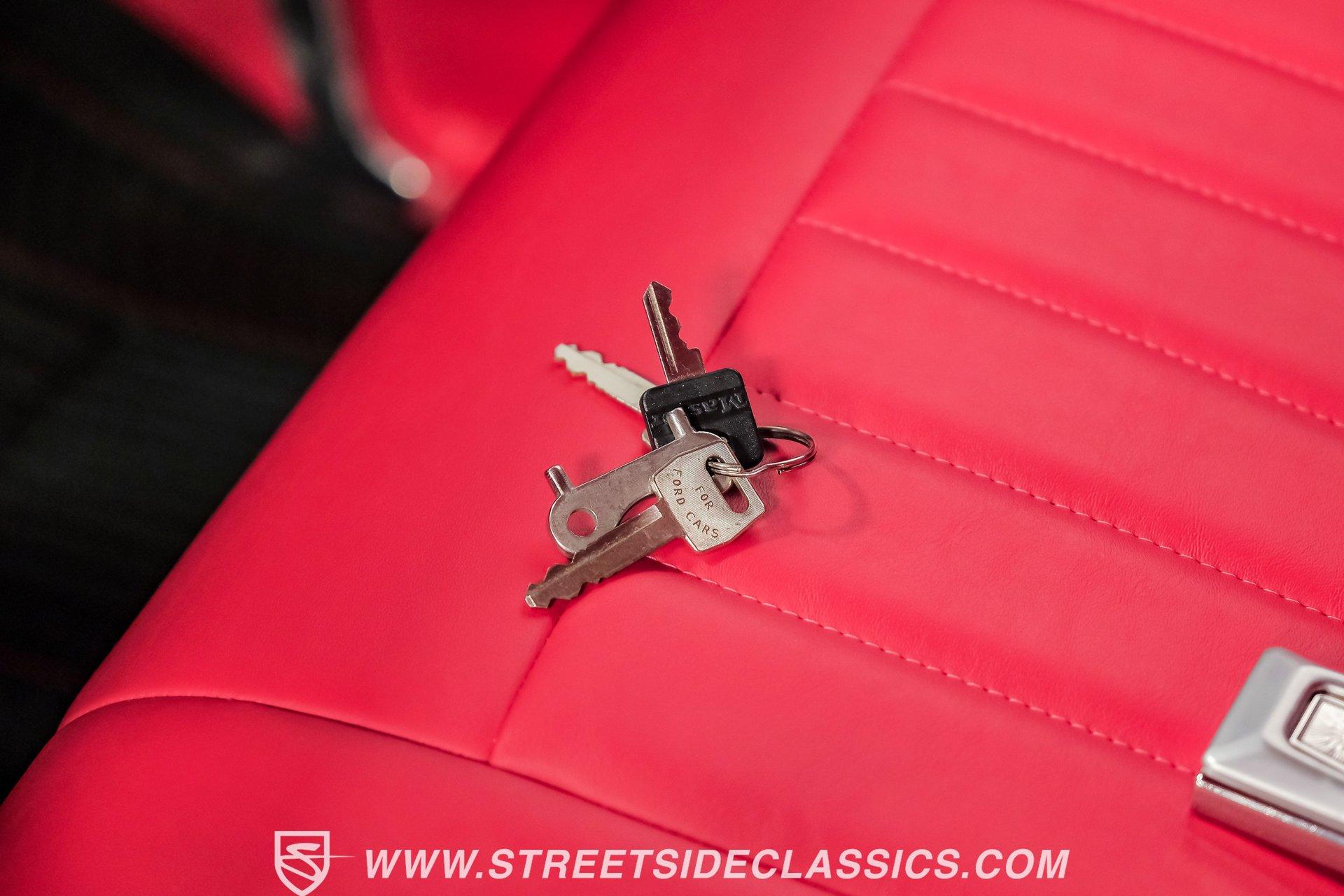 Ford chose 1967 to introduce its next generation of F-Series pickup truck. Designers squared off the body lines and accented the flat side panels with a narrow indentation. Truck interiors were also more "plush," and featured a padded dash, padded sun visors, and seat belts with shoulder anchor harnesses, all as standard equipment. This 1967 Ford F-100 restomod pickup combines Ford's classic styling with modern enhancements to create a one very special truck. This a high-quality restoration with show-quality Wimbledon White paint laid down on a laser-straight body accented by bright rim, brilliant chrome front and rear bumpers and a red lower Mustang GT-style side stripe that hints of what is under the hood of this classic. Exterior upgrades include a color coordinated Rhino-lined type spray bed finish and a relocated fuel tank with the filler located in the bed. A set of chrome 20-inch BOZE wheels wrapped with General tires staggered 245/35ZR19 front and 285/35ZR19 rear provide a confidant stance. HIGHLIGHTS: 4.6-liter fuel injected V8 5-Speed automatic transmission Vintage Air 20-inch BOZE wheels Crown Victoria front suspension 4-Wheel power disc brakes Rack and pinion power steering Dolphin gauges The interior looks amazing. Custom trimmed in red, it features a custom upholstered bench seat with integrated cup holders, Vintage Air, custom gauge cluster with Dolphin gauges, RetroSound AM/FM radio, chrome tilt steering column and a beautiful custom billet and leather steering wheel. The engine bay is highly detailed, showcasing a 4.6 Liter, fuel injected V8 engine paired with five-speed automatic transmission. A color-matched engine cover ads to the smooth and clean look under the hood. Other upgrades include an aluminum radiator, Crown Victoria front suspension with a power rack and pinion system, power disc brakes on all four corners and Belltech Nitro Drop 2 rear shocks. Restored to a very high standard, this exceptional 1967 Ford F100 truck is stunning to see and a thrill to drive. Call today!