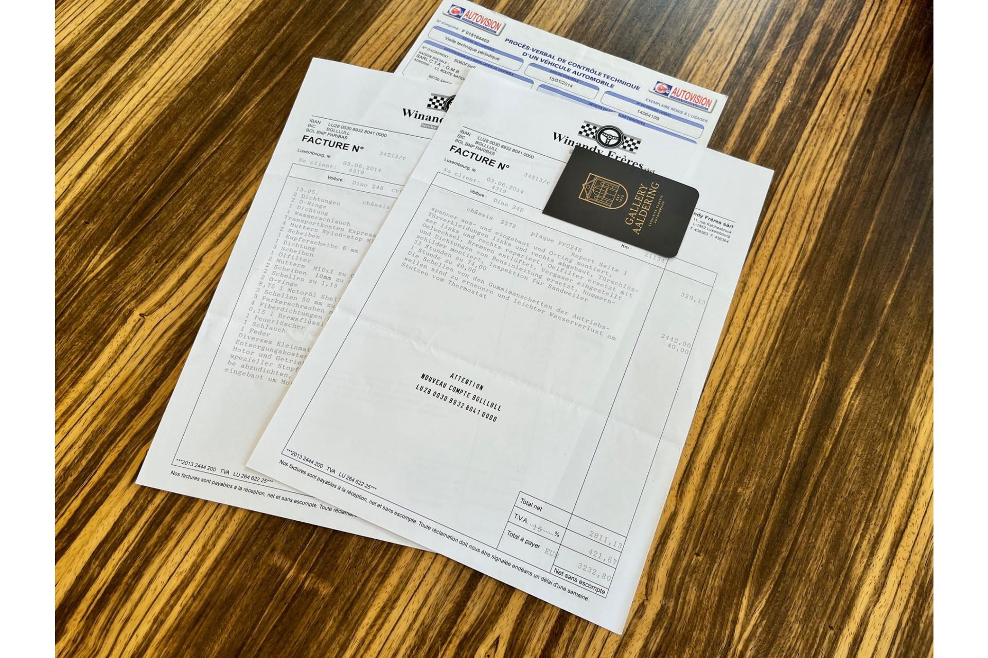 The Dino 246 GT you see here was delivered in 1971 through Charles Pozzi in Paris. It belongs to the second series of the 246, which had several upgrades compared to early examples. At 113,000 kilometers, the matching numbers engine, along with the gearbox and clutch, was completely rebuilt, and that was just a few thousand kilometers ago. As a result, the 246 GT is an exceptionally well-driving car that has always been properly maintained.