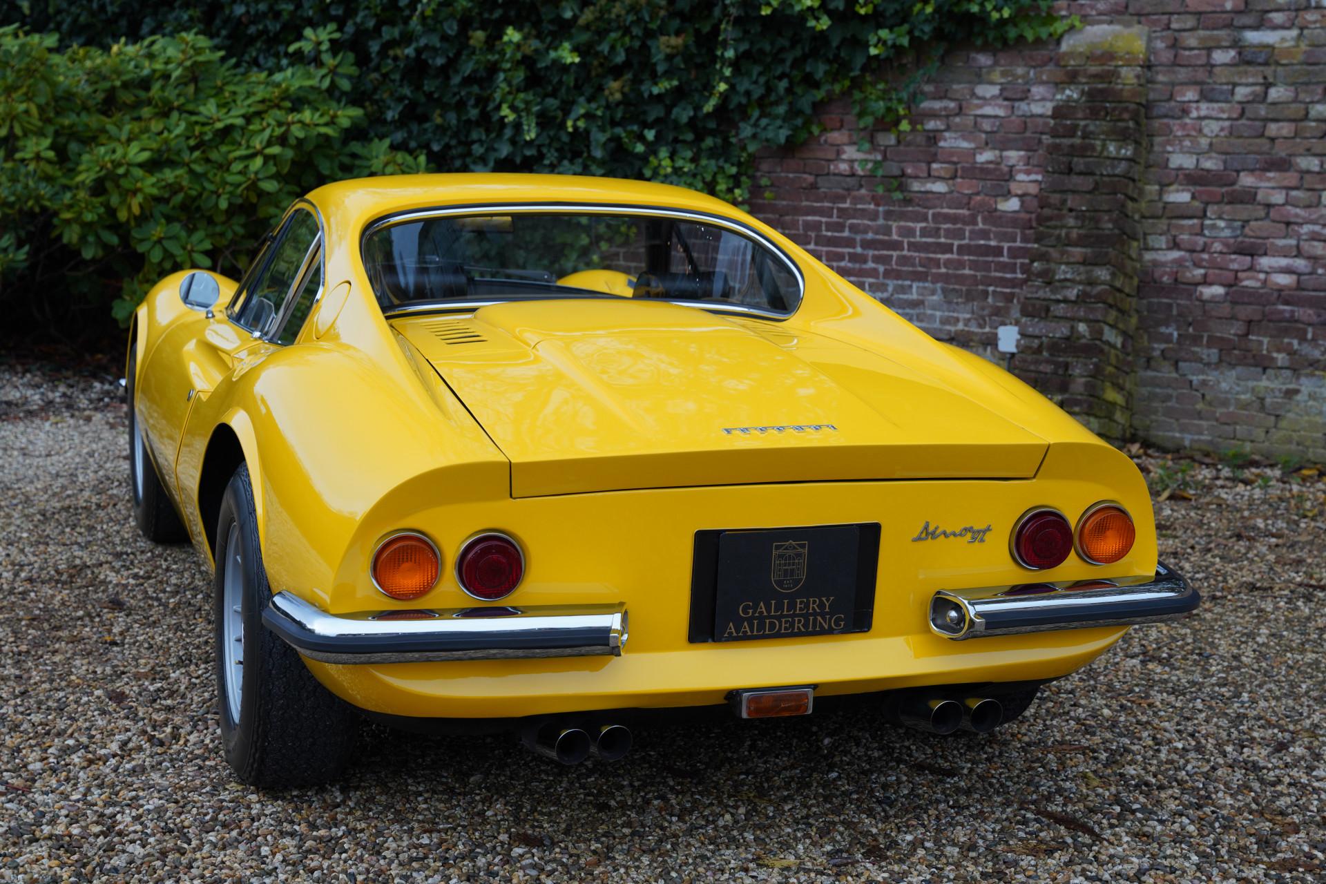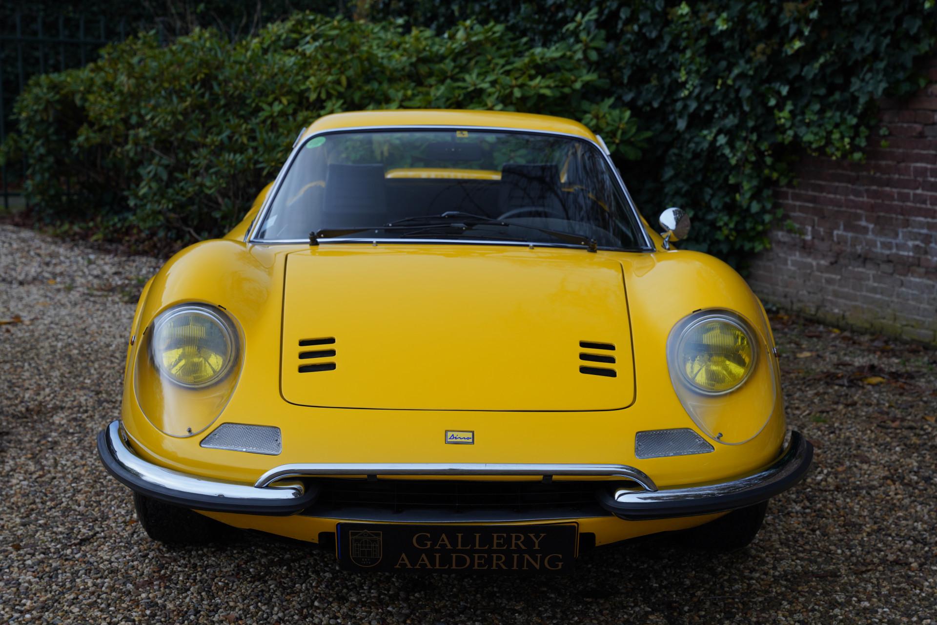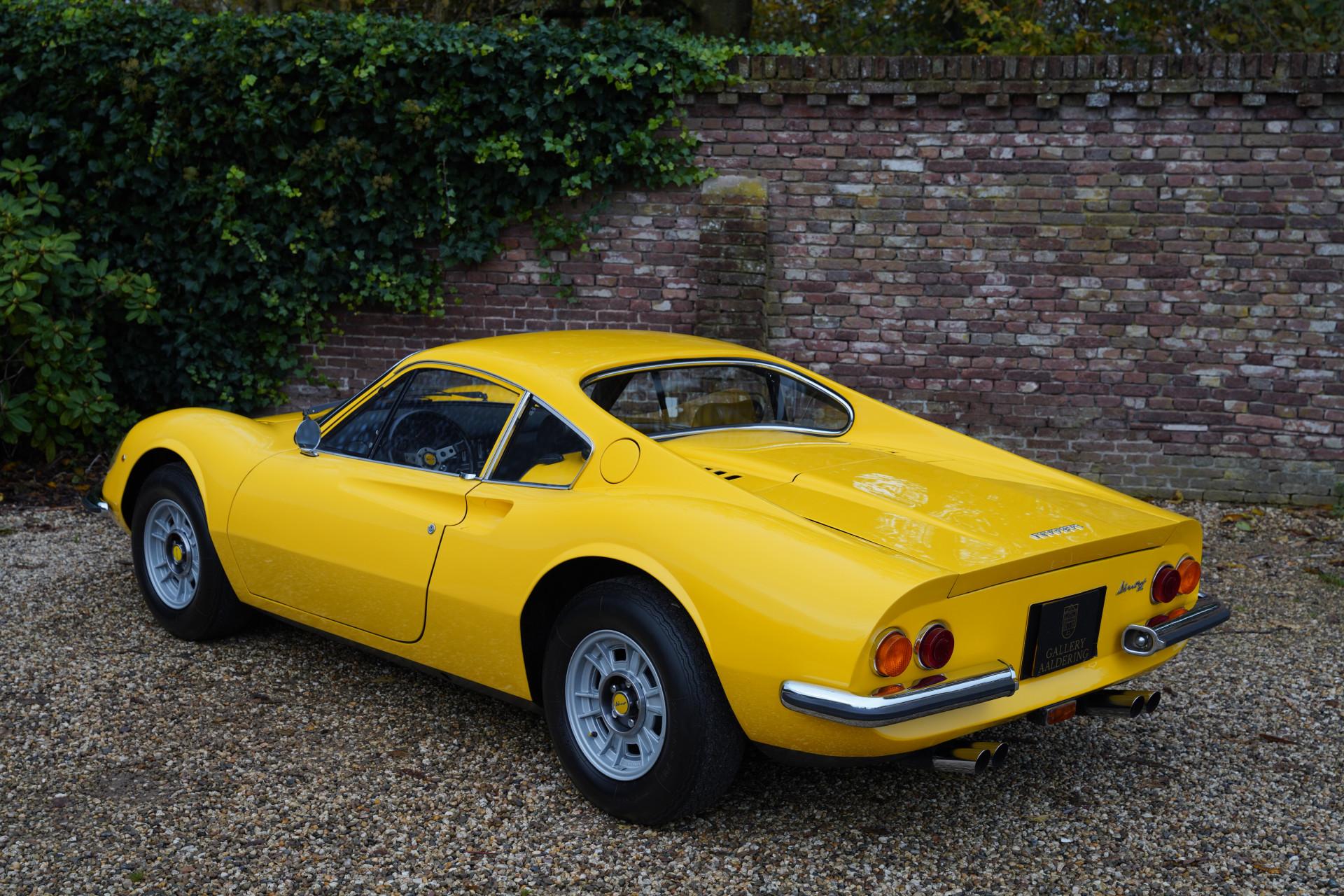 Now, every Ferrari Dino 246 GT is already exceptional, but this one is even more attractive due to original accessories, such as the Voxson radio, Campagnolo alloy wheels, and Carrello headlamp covers. Together with the overall execution, this makes it a highly sought-after version of the already highly regarded Dino 246 GT.