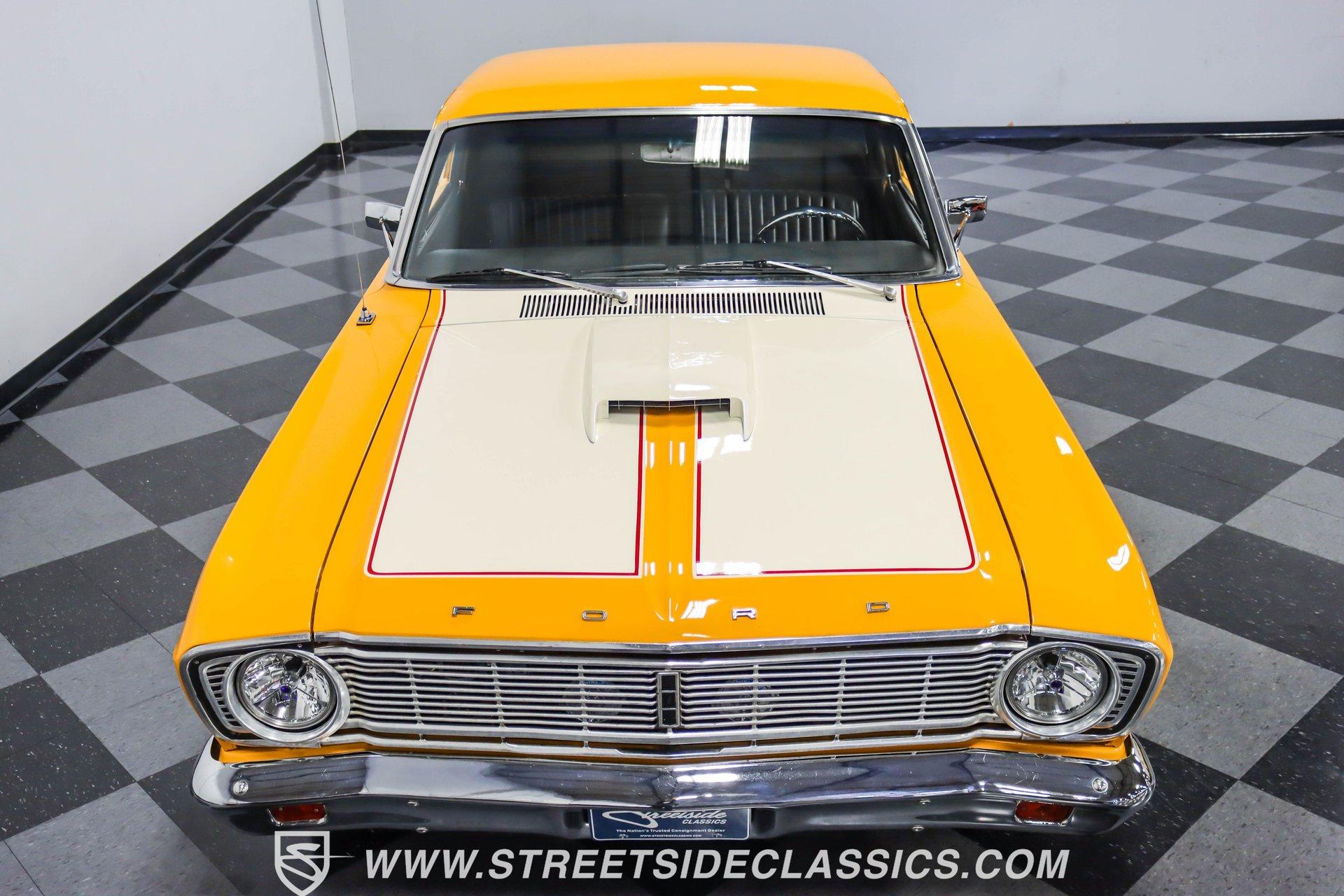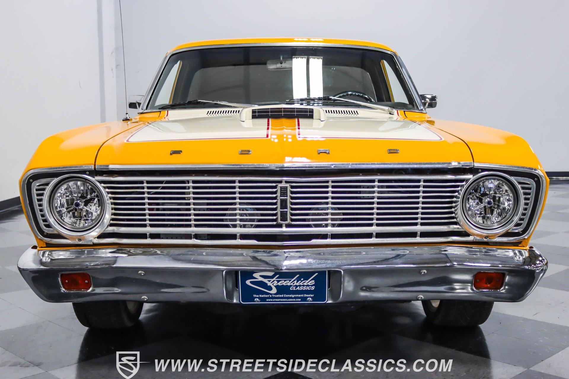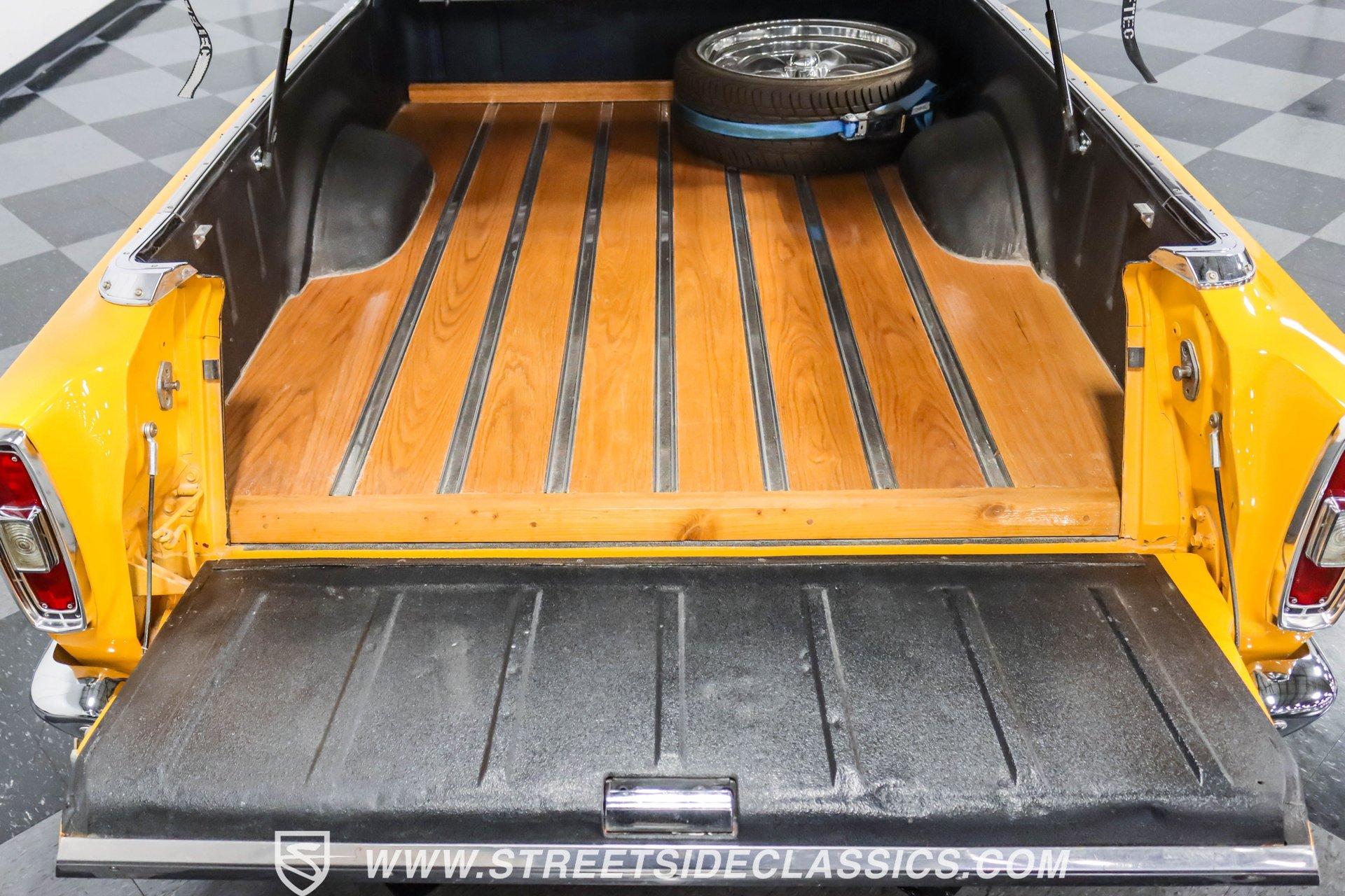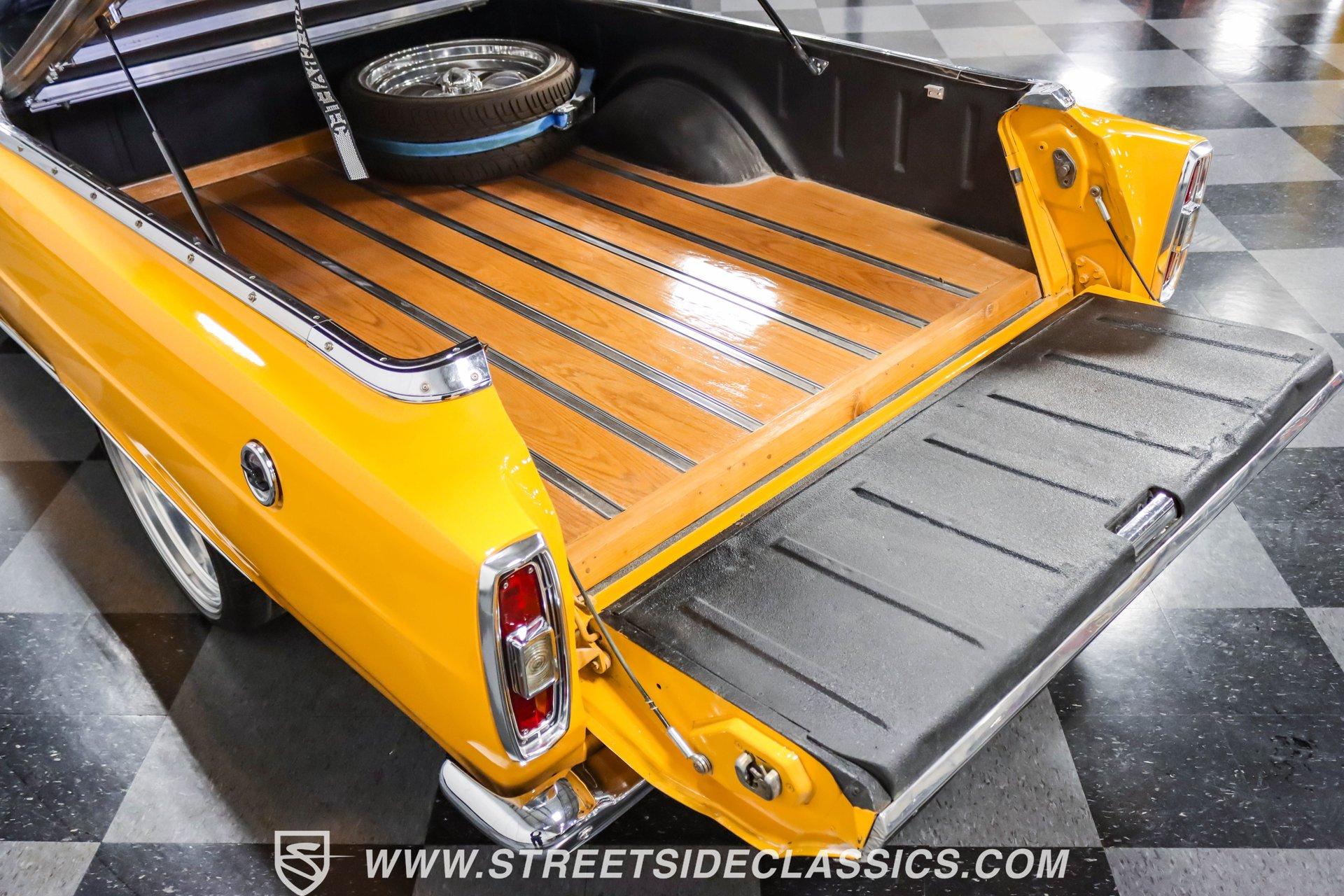 A 1966 Ford Ranchero is a rare find, and finding one in this condition is even rarer. The Ranchero was restyled for 1966 and would be the last year the Ranchero would have Falcon style front sheet metal. In 1967 Ford styled the cars to look more like a Fairlane, making the 1966 model unique and sought-after by collectors today. This sharp-looking Ranchero in finished handsomely in Wheatland Yellow with white hood stripes that showcase a custom installed non-functional hood scoop. Additionally, this classic has been enhanced with upgraded tri-bar headlights, dark tinted glass and a quality Craftec hatch-style tonneau cover with no snaps that lifts up to reveal a beautiful custom-made oakwood bed floor cover that looks amazing. A set of polished American Racing wheels with tires staggered 225/40ZR18 front and 285/30ZR20 rear give this classic Ford a great looking stance. HIGHLIGHTS: 302 V8 engine C4 automatic transmission 9-inch rear end with traction bars Front power disc brakes American Racing wheels Edelbrock intake manifold Holley carburetor Lokar shifter Air conditioning Tilt steering column The black interior features a comfortable bench seat, Lokar shifter, custom chrome tilt steering column, custom steering wheel, air conditioning, Ford logo floor mats, Equus Pro Tach and Bosch temperature, oil pressure and volt gauges to monitor engine functions. Music for cruising is provided by a Kenwood Excelon AM/FM/CD radio with AUX and Bluetooth that plays through kick panel mounted speakers with an Amp and subwoofer located behind the seat. Under the hood is a healthy 302 cubic inch engine mated to a C4 automatic transmission that sends power back to a 9-inch Ford rear end with traction bars. The engine looks as great as it runs, with an Edelbrock aluminum intake manifold topped with a Holley carburetor, Edelbrock finned aluminum valve covers with matching air cleaner, MSD ignition, aluminum radiator with electric fans and power brakes with front discs. A set of long-tube headers rumble back through gas pack style mufflers that exit just before the rear wheels on both sides. With quality upgrades in just the right places, this rare 1966 Ford Ranchero is a cool find. Call today!