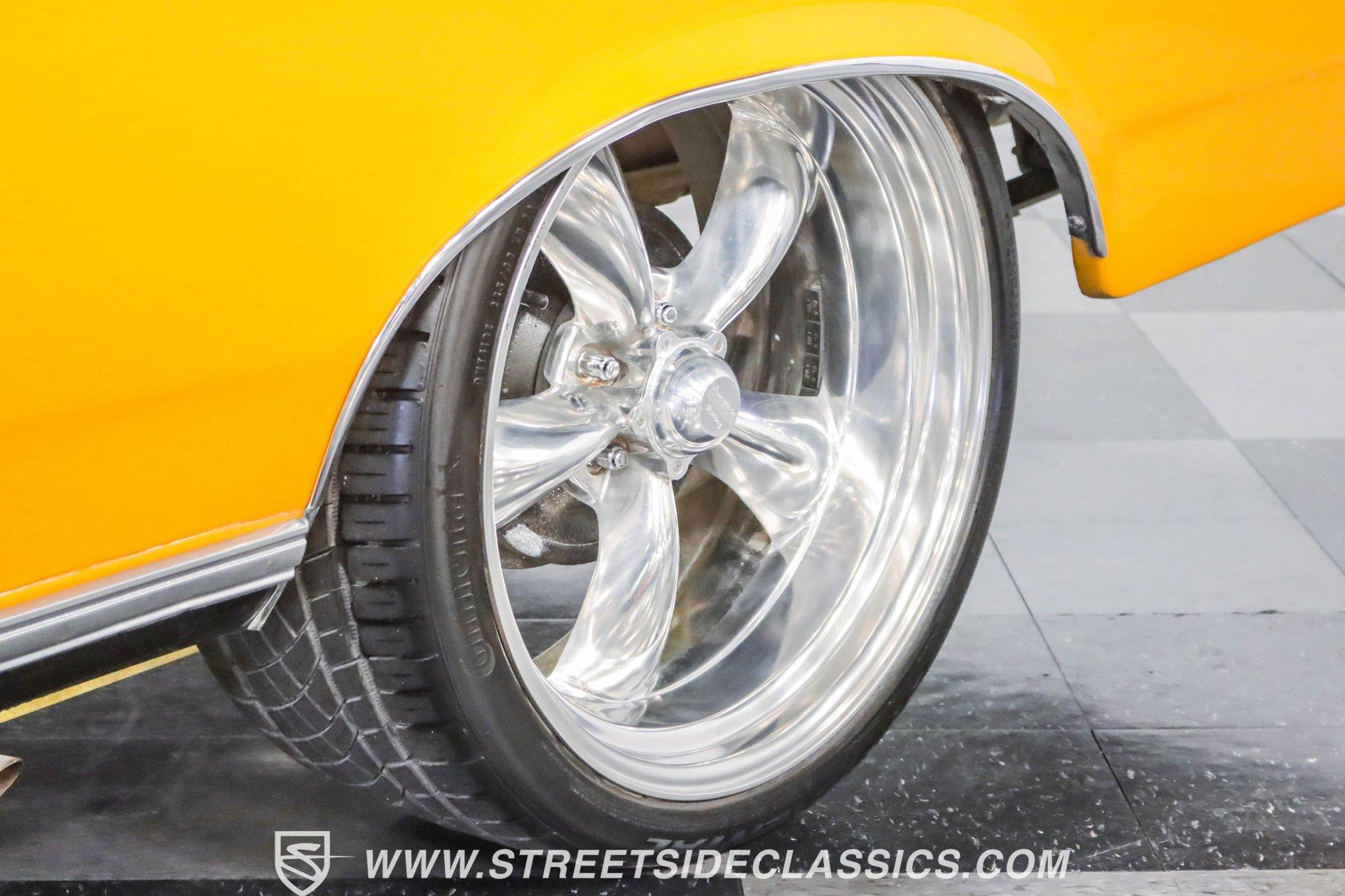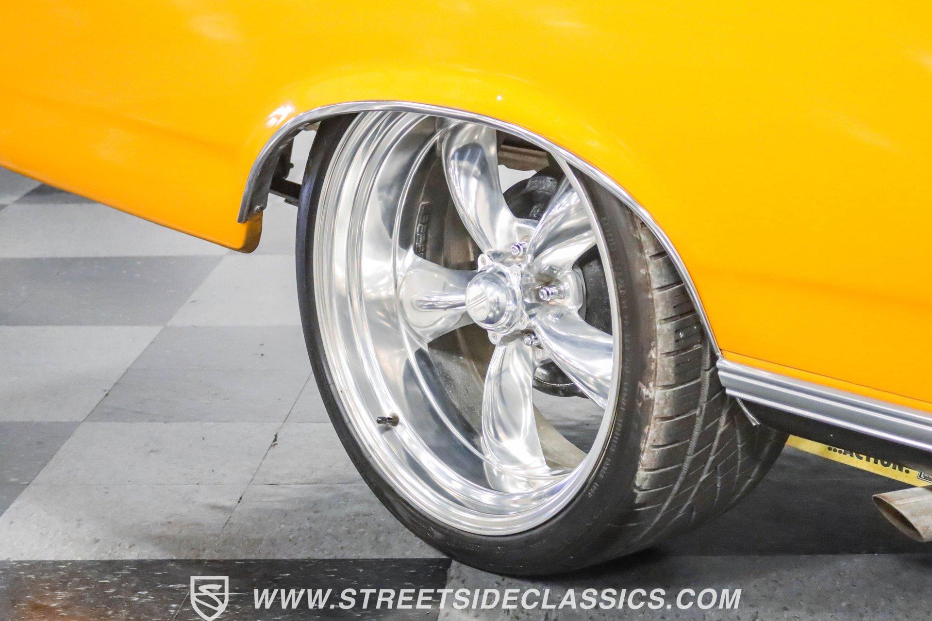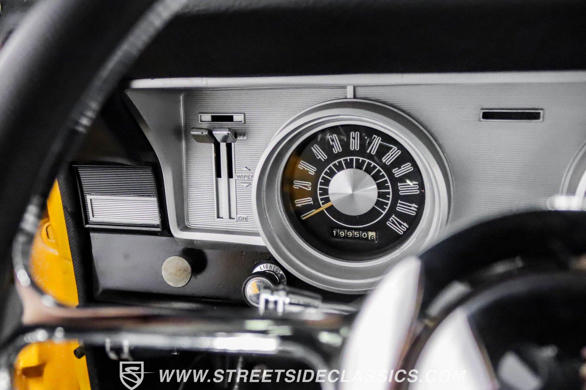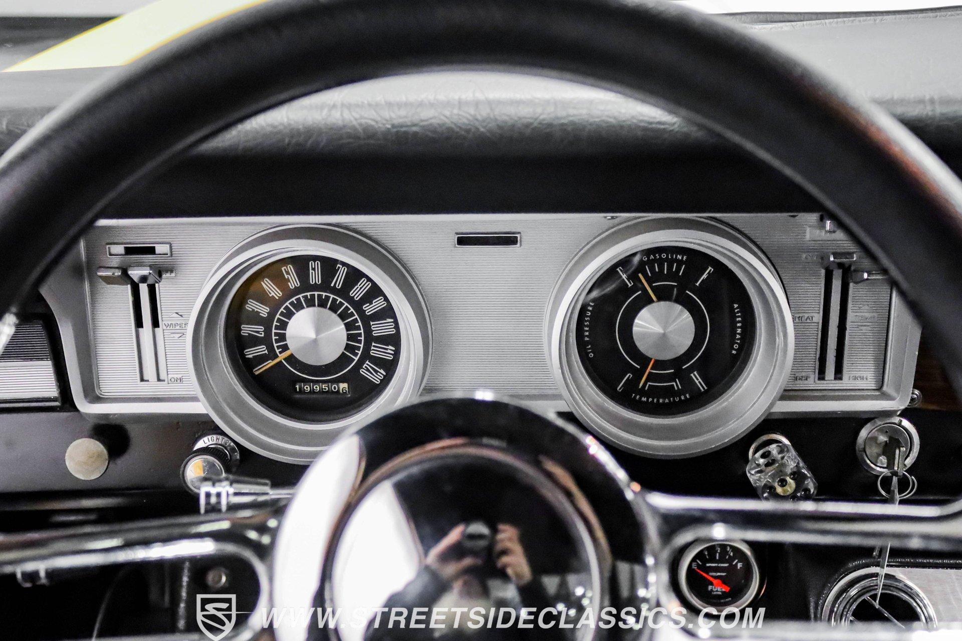 A 1966 Ford Ranchero is a rare find, and finding one in this condition is even rarer. The Ranchero was restyled for 1966 and would be the last year the Ranchero would have Falcon style front sheet metal. In 1967 Ford styled the cars to look more like a Fairlane, making the 1966 model unique and sought-after by collectors today. This sharp-looking Ranchero in finished handsomely in Wheatland Yellow with white hood stripes that showcase a custom installed non-functional hood scoop. Additionally, this classic has been enhanced with upgraded tri-bar headlights, dark tinted glass and a quality Craftec hatch-style tonneau cover with no snaps that lifts up to reveal a beautiful custom-made oakwood bed floor cover that looks amazing. A set of polished American Racing wheels with tires staggered 225/40ZR18 front and 285/30ZR20 rear give this classic Ford a great looking stance. HIGHLIGHTS: 302 V8 engine C4 automatic transmission 9-inch rear end with traction bars Front power disc brakes American Racing wheels Edelbrock intake manifold Holley carburetor Lokar shifter Air conditioning Tilt steering column The black interior features a comfortable bench seat, Lokar shifter, custom chrome tilt steering column, custom steering wheel, air conditioning, Ford logo floor mats, Equus Pro Tach and Bosch temperature, oil pressure and volt gauges to monitor engine functions. Music for cruising is provided by a Kenwood Excelon AM/FM/CD radio with AUX and Bluetooth that plays through kick panel mounted speakers with an Amp and subwoofer located behind the seat. Under the hood is a healthy 302 cubic inch engine mated to a C4 automatic transmission that sends power back to a 9-inch Ford rear end with traction bars. The engine looks as great as it runs, with an Edelbrock aluminum intake manifold topped with a Holley carburetor, Edelbrock finned aluminum valve covers with matching air cleaner, MSD ignition, aluminum radiator with electric fans and power brakes with front discs. A set of long-tube headers rumble back through gas pack style mufflers that exit just before the rear wheels on both sides. With quality upgrades in just the right places, this rare 1966 Ford Ranchero is a cool find. Call today!