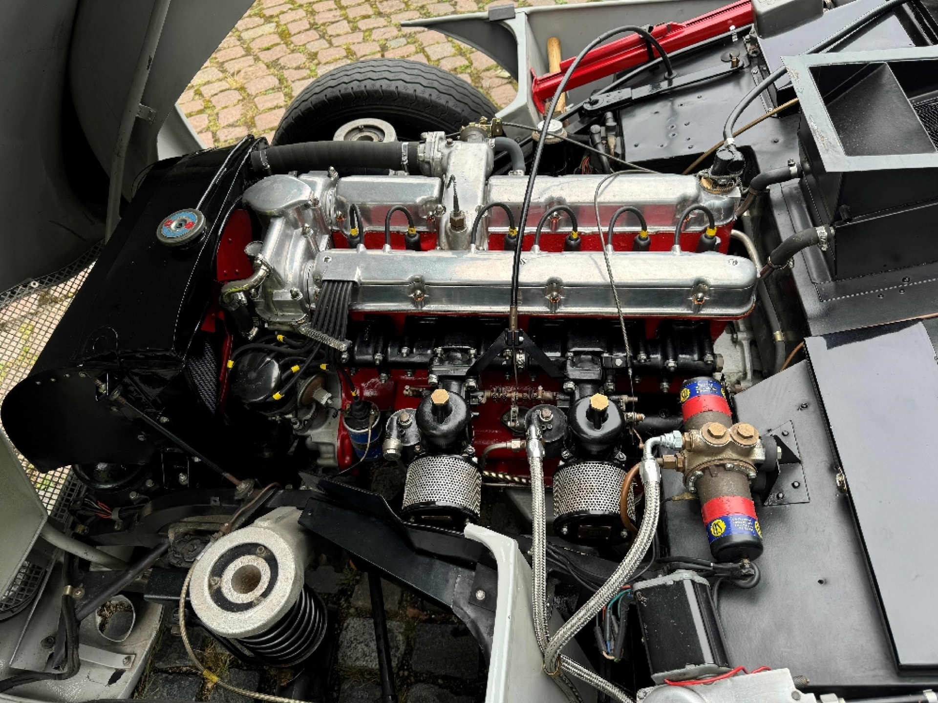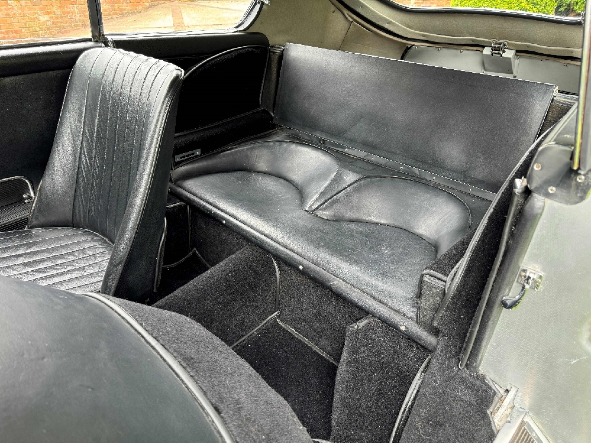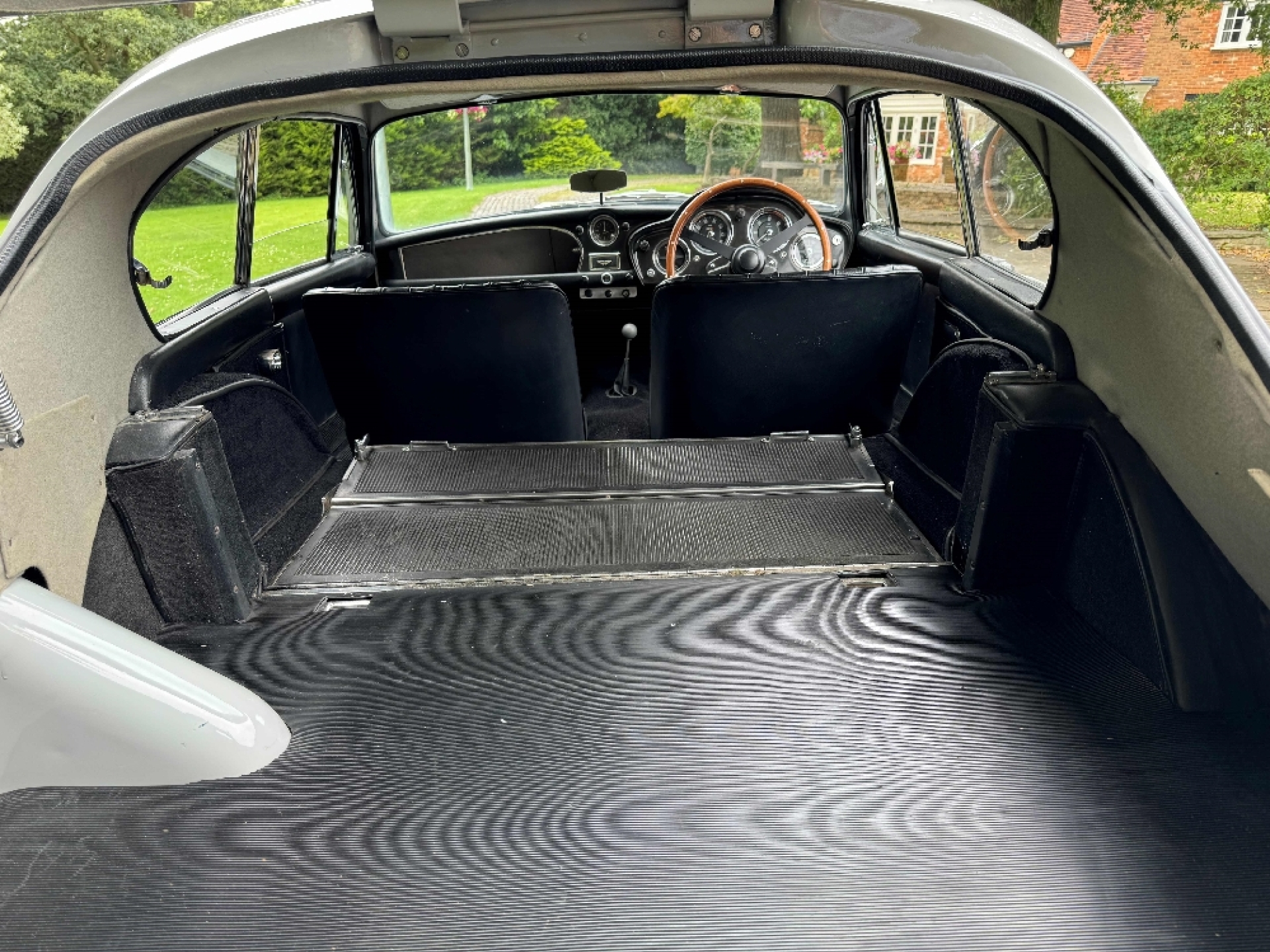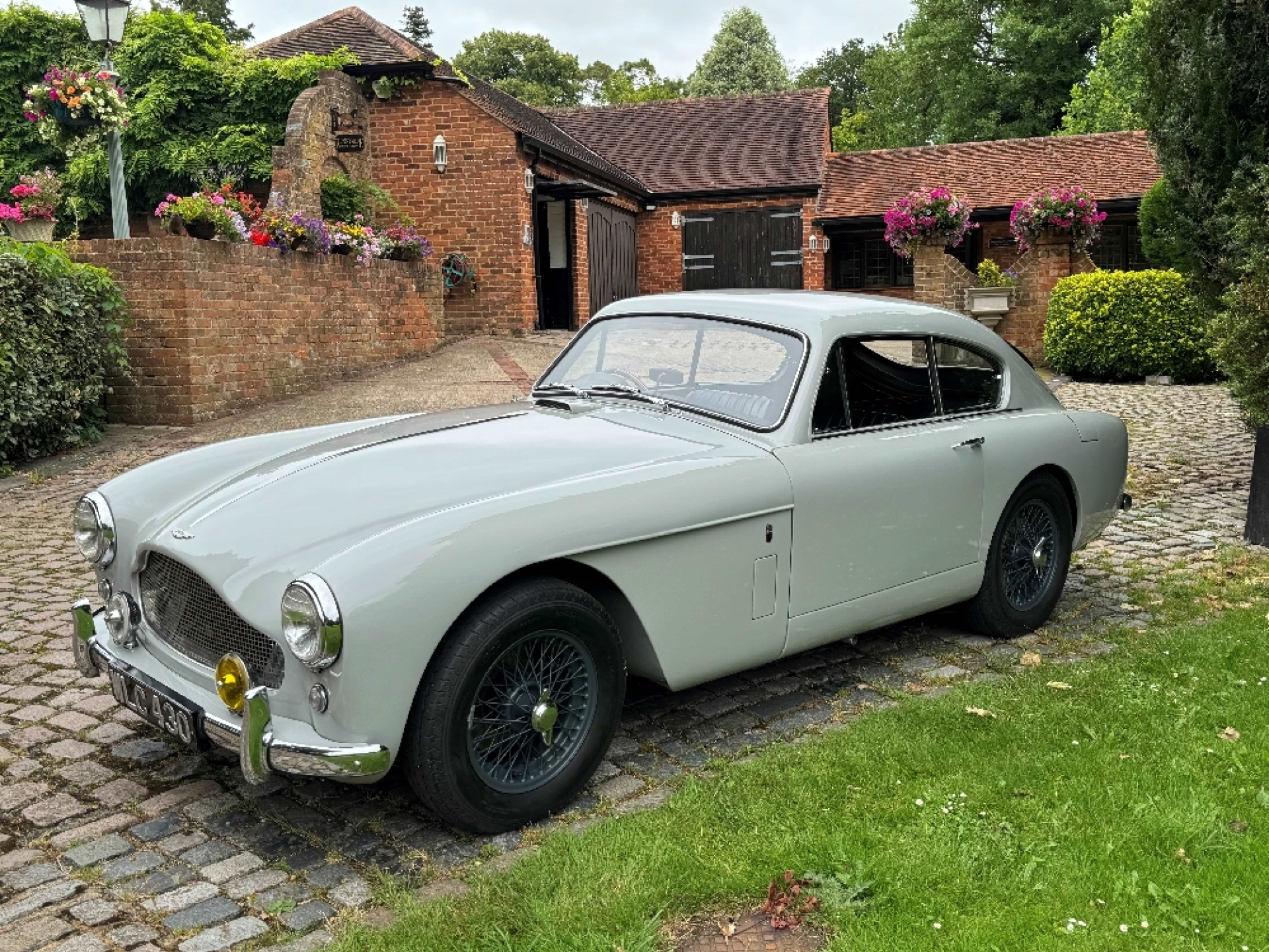 1959 Aston Martin DB MkIII finished in original Snow Shadow grey with dark blue hide interior and sitting on 72 spoke dark blue painted DB4 wire wheels. Built at the Feltham factory in the final year of production, the MkIII was a considerable advancement on the previous models with a smoother, less angular bonnet shape which was also reflected in the redesigned instrument binnacle. This model also benefited from the engine being redesigned with larger oil galleries together with an improved cylinder head increasing the horsepower to 178 BHP for a standard car with twin exhausts. This car has been the subject of huge expenditure over the years including a complete engine rebuild and bulkhead detailing with photographic evidence. Also fitted is the essential overdrive enabling the car to comfortably cruise at 80 mph whilst only revving at 3000 rpm. Super to drive with no apparent faults. Very collectable and not expensive for one in this condition at £185,000