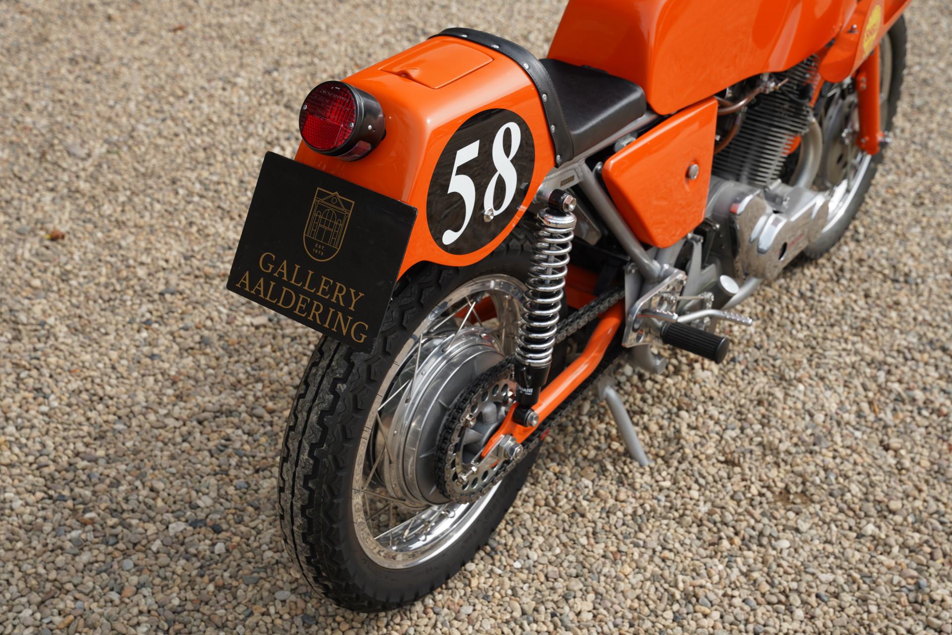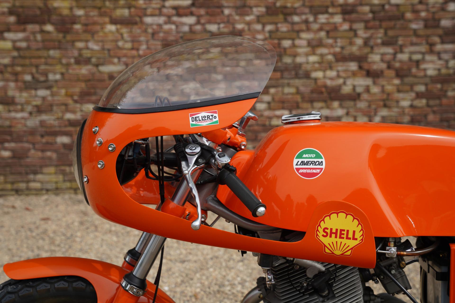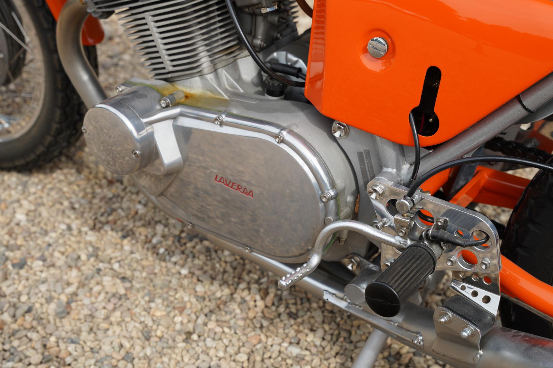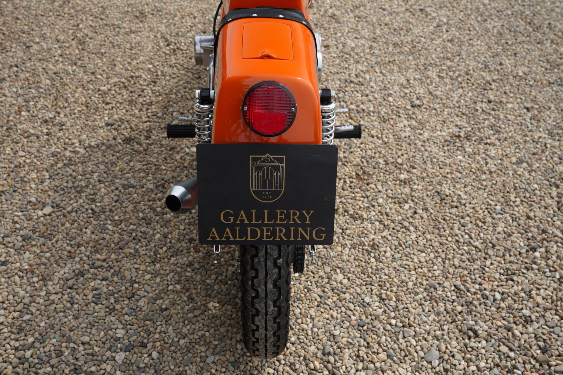 The SFC conversion has transformed this Laverda into a true racing legend on wheels. With its aggressive and sporty appearance, the motorcycle embodies the competitive spirit of the 1970s, when Laverda made its name in the world of endurance racing. The finish of this bike is top-notch, with attention to every detail—from the striking orange paint to the optimized components inspired by the original SFC racing model. Every aspect of the motorcycle exudes the performance and craftsmanship for which Laverda is so well known.