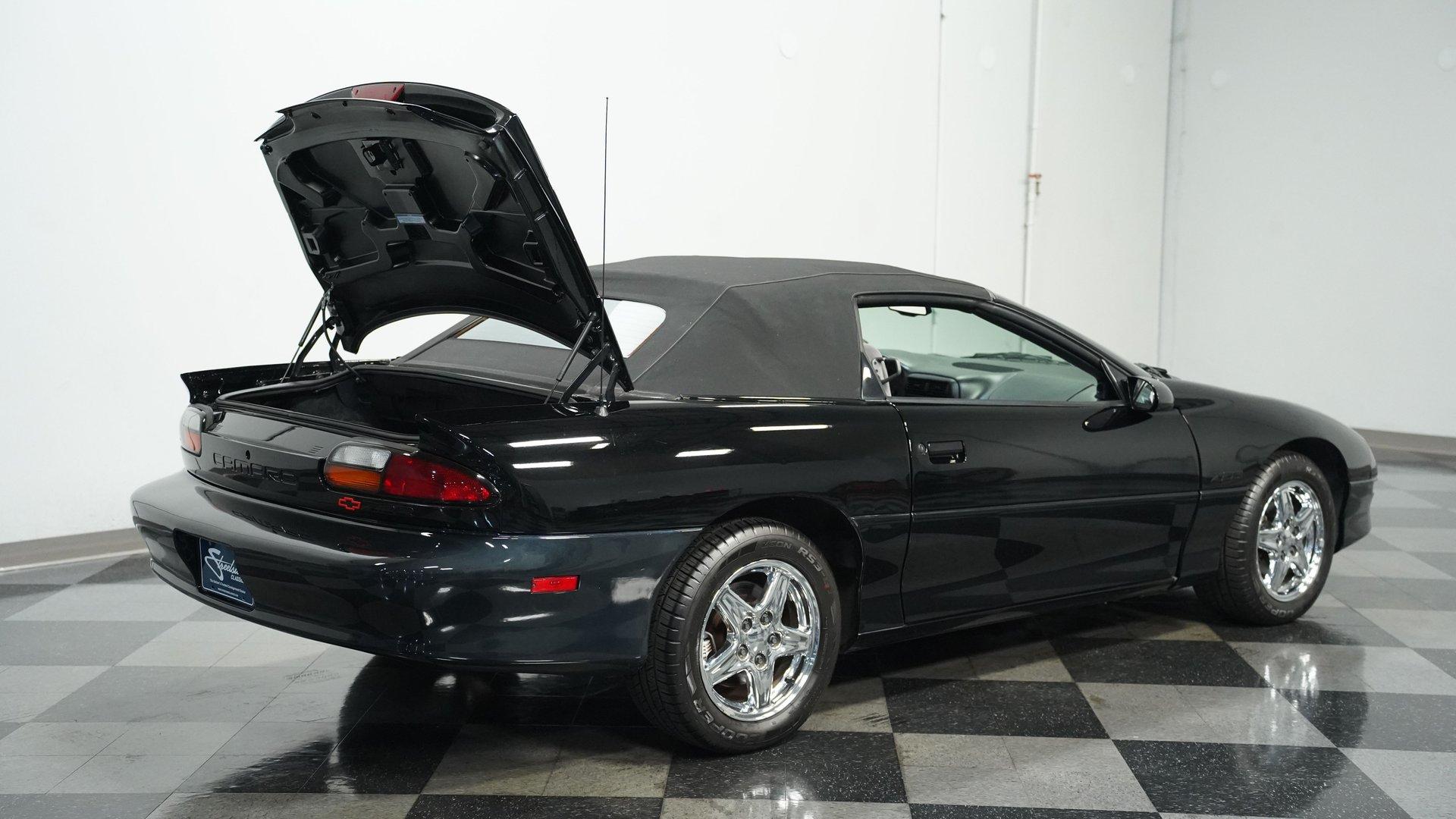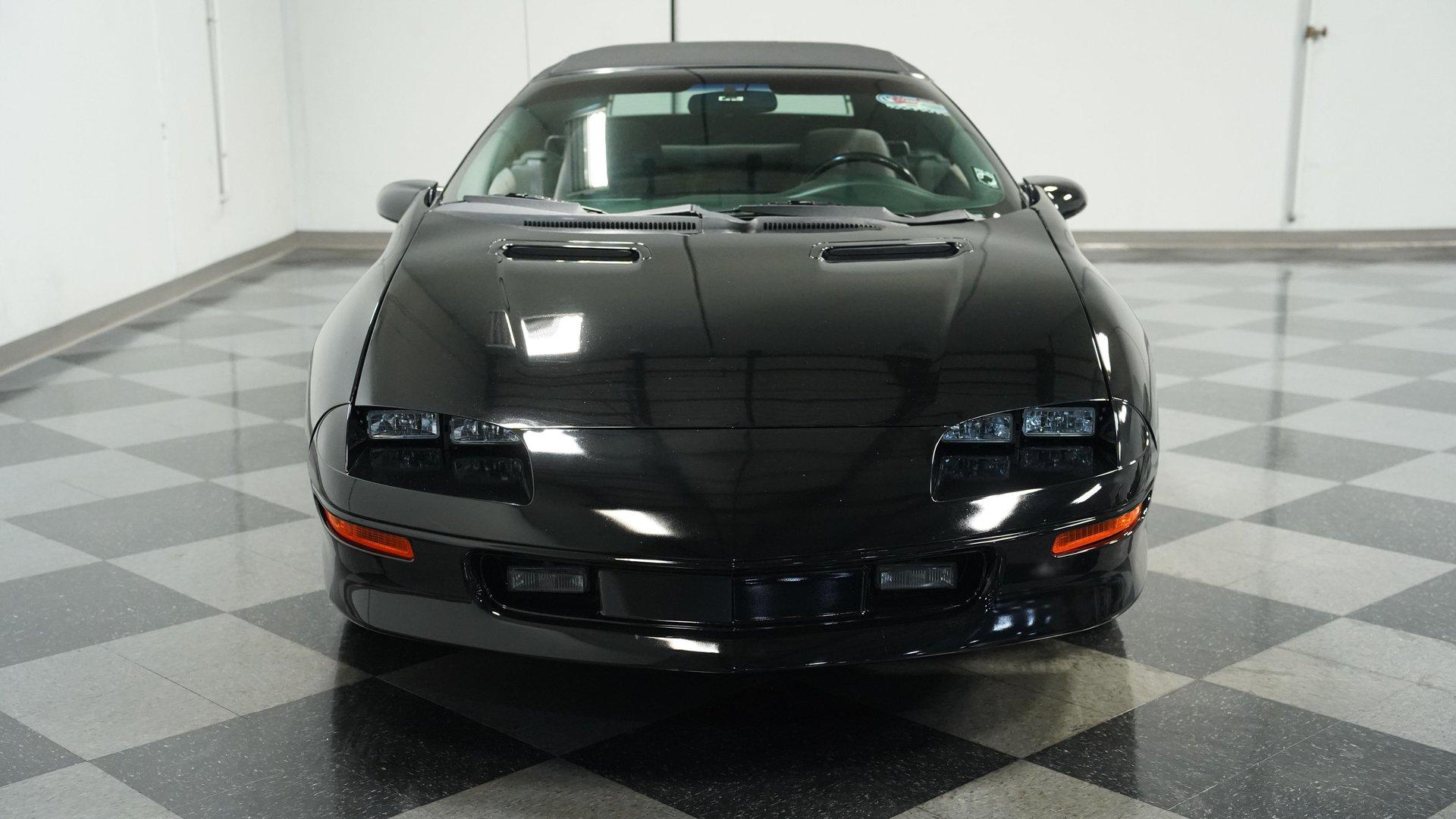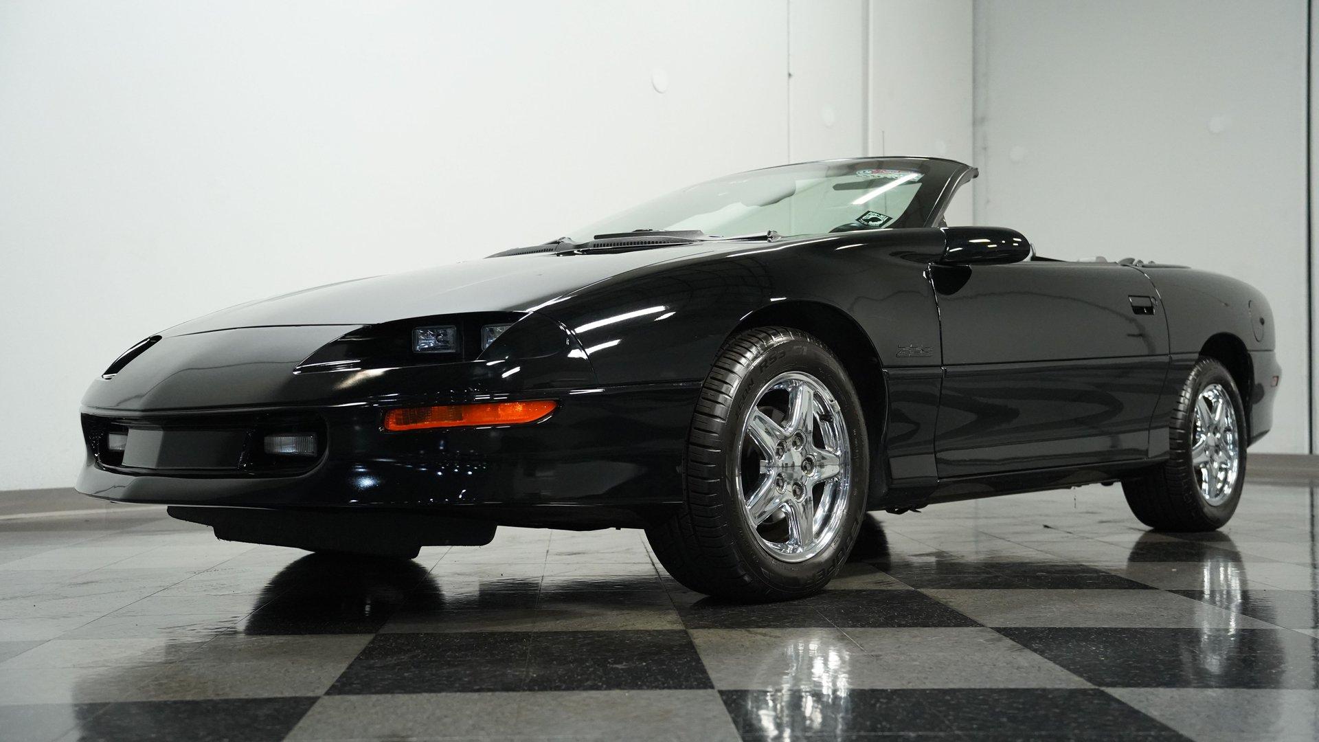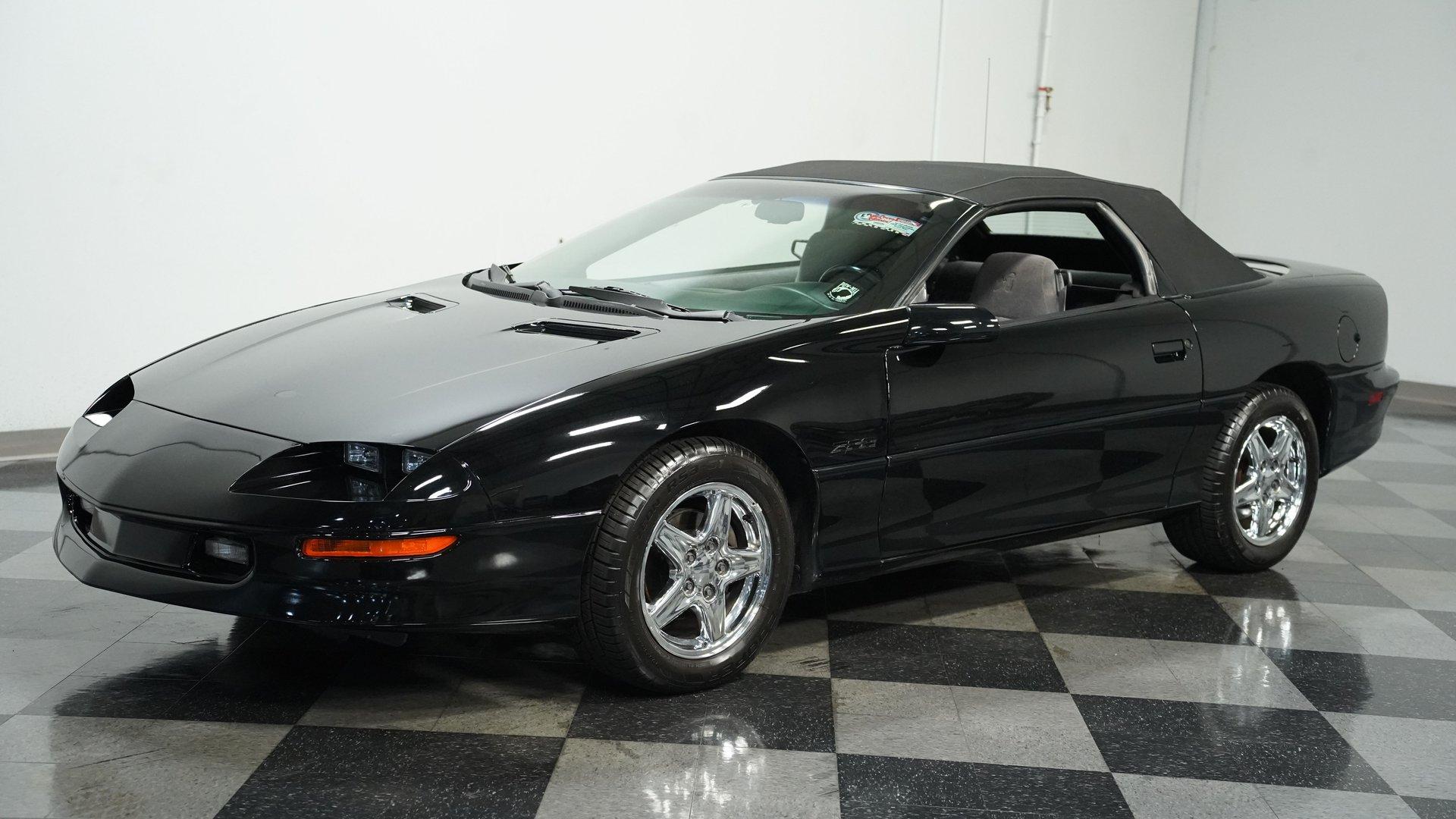 This 1997 Chevrolet Camaro Z/28 Convertible in midnight black is a classic American muscle machine with black convertible top, a true icon of '90s performance with the added exhilaration of wind-in-your-hair freedom. This 30th Anniversary model celebrates Camaro history with subtle distinction. Imagine cruising down the road in this sleek convertible, the rumble of the 5.7 Liter LT1 V8 echoing through the streets as the sunlight glints off the gleaming black paint. Rolling on 16" wheels wrapped in fresh Cooper tires, this Z/28 exudes both classic style and modern road-readiness. The gray and black cloth interior invites you into a world of sporty comfort. Sink into the bucket seats with 30th Anniversary logo in headrests and grip the wheel – with its prominent center console, this cockpit puts you firmly in command. The AM/FM cassette player is ready to blast your favorite classic tunes on open-air adventures. Air conditioning might not be a necessity with the top down, but it'll keep you cool on those scorching days. From the clean carpets to the clear gauges, this well-maintained interior adds a touch of refinement to your muscle car experience. But make no mistake, this legendary Camaro isn't just about looks and comfort. With a mere 66K actual miles on the clock, this machine is ready to rumble. Under the hood lies the iconic 5.7 Liter LT1 V8 engine, fed by precise electronic fuel injection. This powerplant delivers a thrilling surge of acceleration whenever you put your foot down. Paired with a smooth-shifting 4-speed automatic transmission, power steering, and power brakes, this Z/28 handles with both agility and confidence. And that dual exhaust lets loose the unmistakable muscle car growl. HIGHLIGHTS 5.7 Liter LT1 V8 engine 4-Speed automatic transmission Rear-wheel drive Electronic fuel injection Power steering Power brakes Dual exhaust Black paint Black convertible top 16" Wheels in New Cooper tires Gray and black cloth interior Bucket seats with 30th Anniversary logo in headrests AM/FM cassette stereo Anti-Theft System Air conditioning (Needs Service) 66K Actual Miles This 30th Anniversary 1997 Chevrolet Camaro Z/28 Convertible is your ticket to relive the excitement of the '90s muscle car era, all with the added thrill of open-air freedom. Feel the rumble of the iconic LT1 V8, and let loose on the open road. Call today!