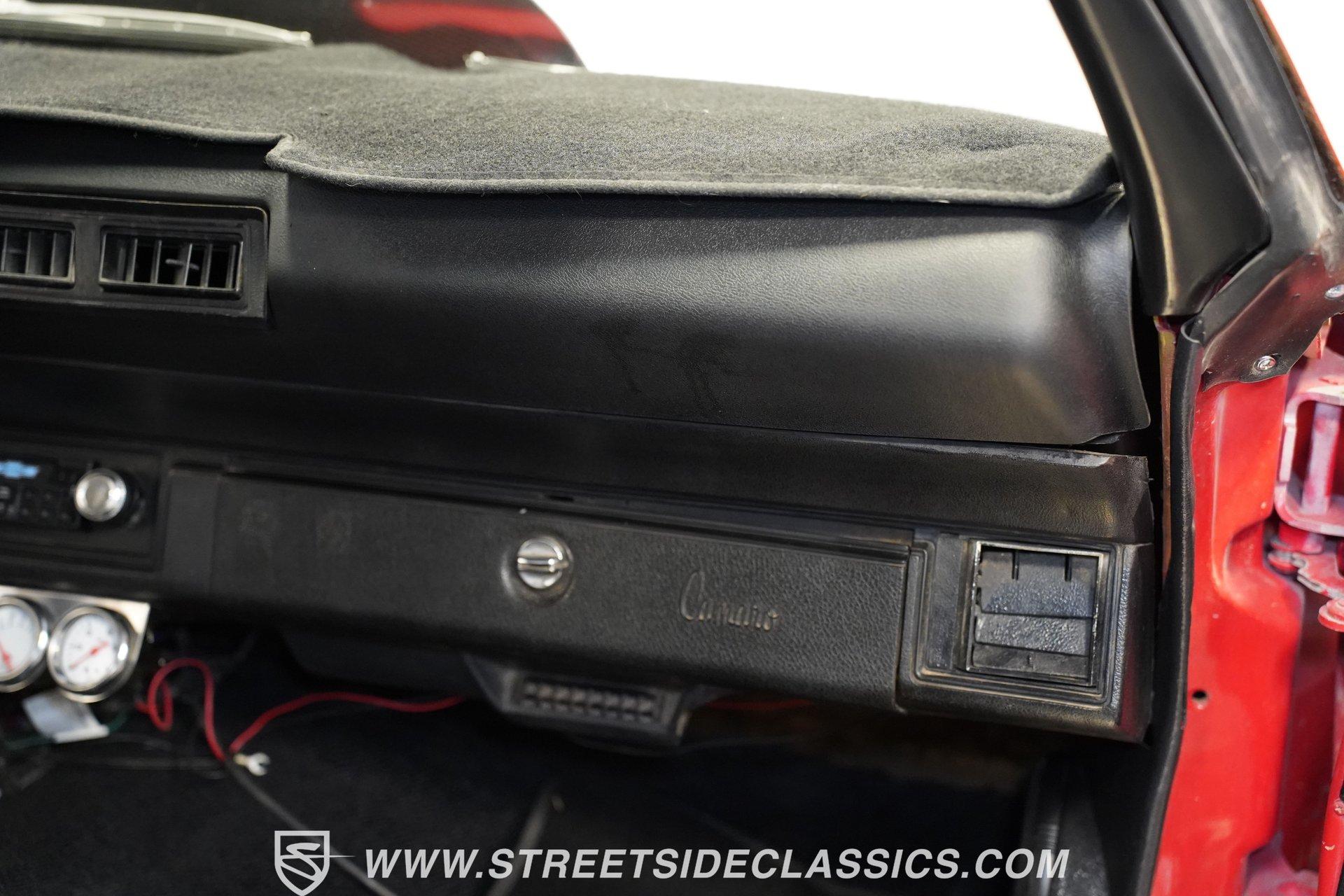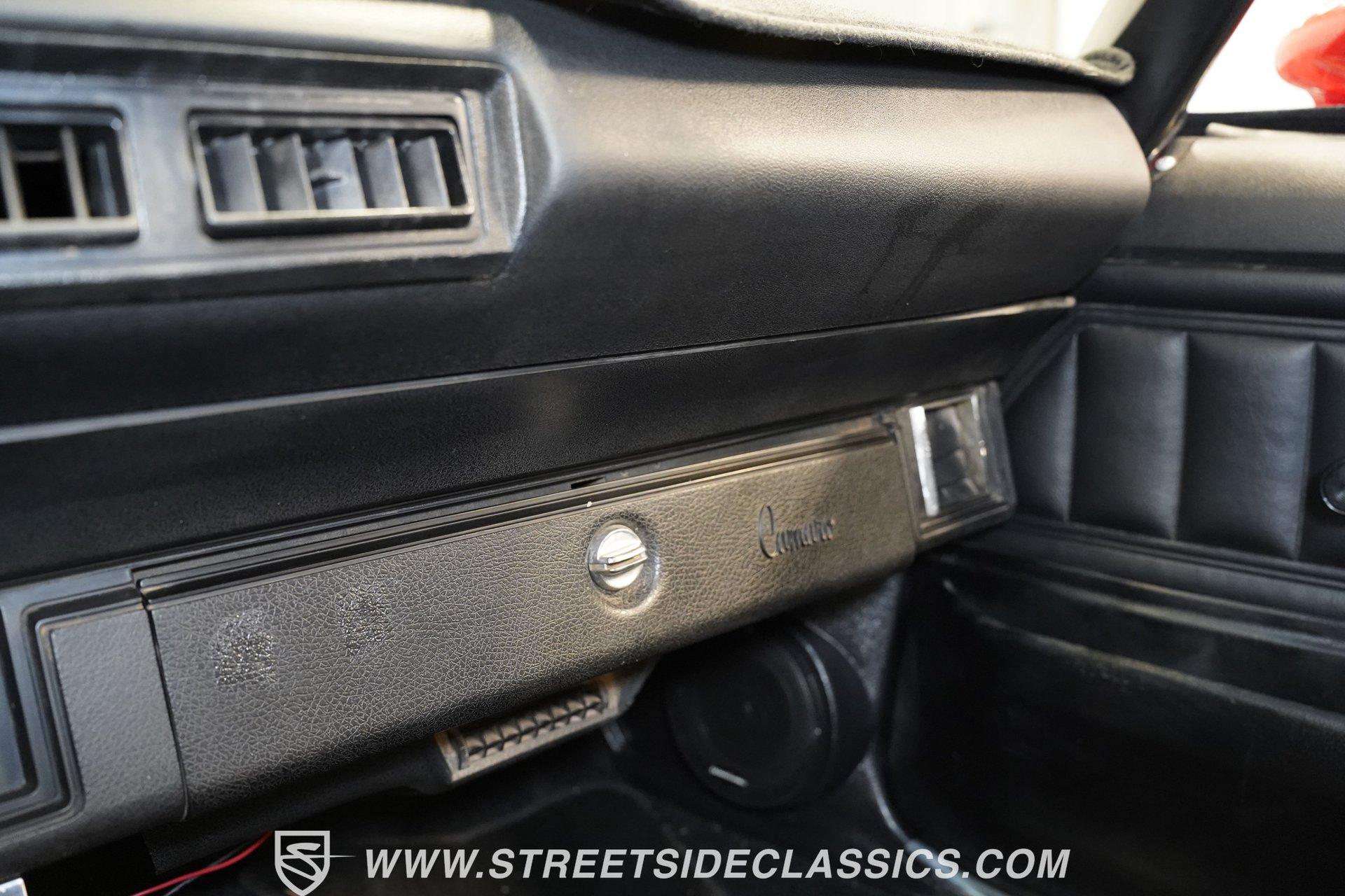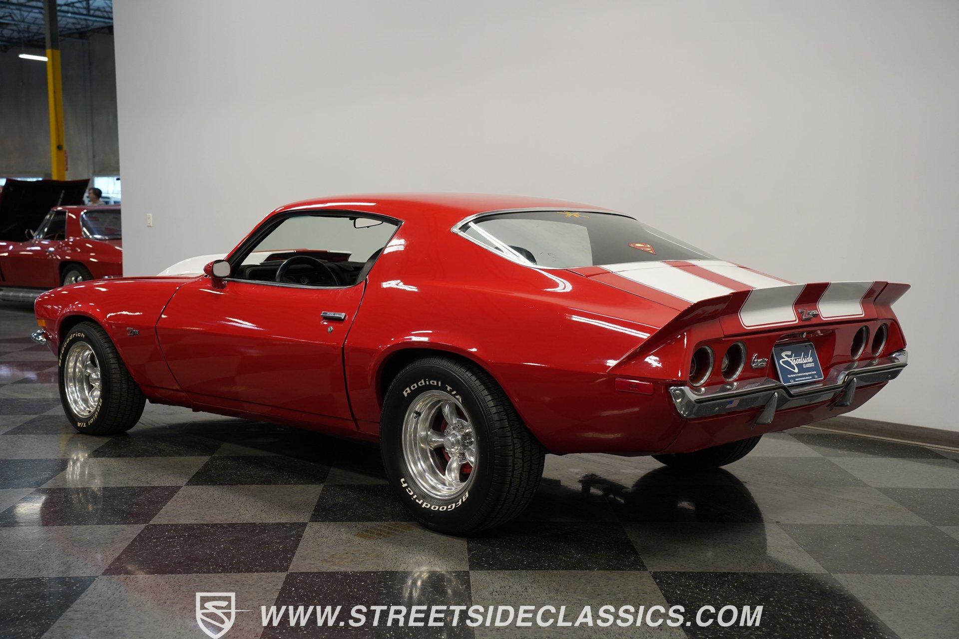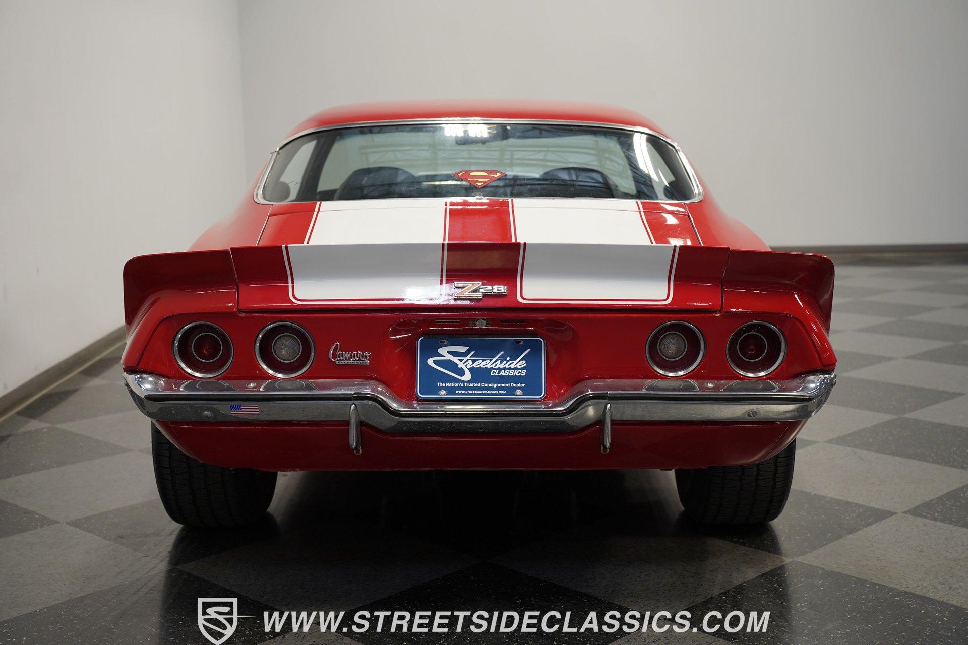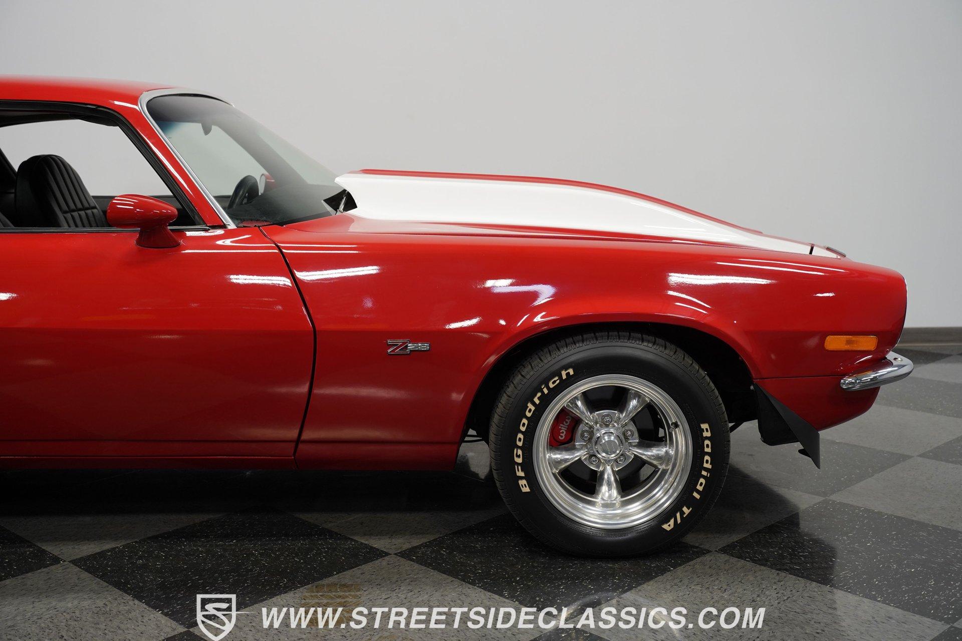 When it debuted in 1970, the second generation of Chevy's Camaro became a low-slung, swoopy speedster that looked like a European exotic from almost any angle. To prove that point, take one look at this head-turning 1972 Chevrolet Camaro Z28 RS 496 Tribute decked out in a fully repainted red with complementary dual full-length white racing stripes. Sporting a monstrous cowl-induction hood to go along with its strategically placed Z/28 badges, this F-body is one of a kind. Inside, a center console complete with cupholders separates a pair of bucket seats. A four-spoke power-assisted wheel sits just ahead of a six-pod white-faced gauge cluster. In contrast, an additional trio of auxiliary gauges is situated at the base of the console just beyond the T-Bar-style gear selector. An AM/FM cassette radio offers entertainment options, but none that will be any more fun than the monster big block under the hood. Under that aggressive cowl-induction hood, we find a massive 496 cubic-inch naturally aspirated V-8 engine. Topped with a single four-barrel Holley carburetor and an Edelbrock Performer intake manifold, this big-block does away with spent gases via a set of long tube headers and FlowMaster dual exhaust. Power is routed through a TH400 three-speed automatic transmission before reaching a ten-bolt rear. Polished fifteen-inch American Racing Torq Thrust II wheels are shod in staggered BFGoodrich Radial T/A tires. HIGHLIGHTS: Z28 RS Tribute Full Red Repaint White Racing Stripes Cowl Induction Hood 496 CID V8 Holley 4 BBL Edelbrock Performer Intake Long Tubes FlowMaster Dual Exhaust TH400 Three Speed Auto Ten Bolt Rear Subframe Connectors Traction Bars Power Brakes Front Wilwood Disc Brakes American Racing Wheels BFG Tires Power Steering Bucket Seats White Faced Gauges Auxiliary Gauges AM/FM Cassette This 1972 Chevrolet Camaro Z28 RS 496 Tribute rides on a factory-style suspension, upgraded with traction bars and subframe connectors. Power brakes featuring Wilwood front disc brakes make this car easy to drive anywhere. If you've been thinking about adding one of these beautiful second-gen Camaros to your collection, don't wait another second. This is the car for you. Call today!