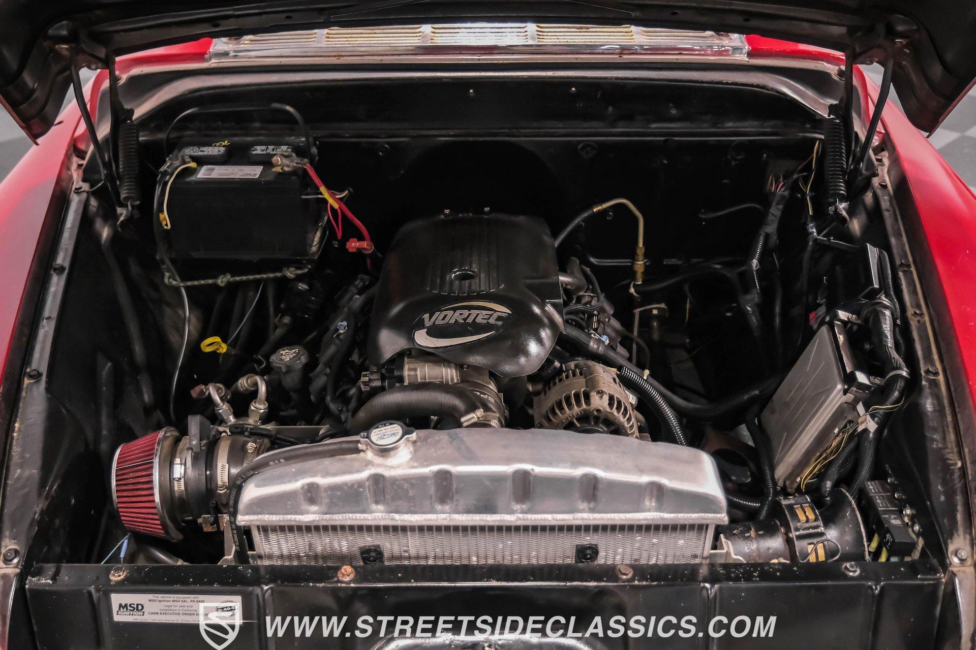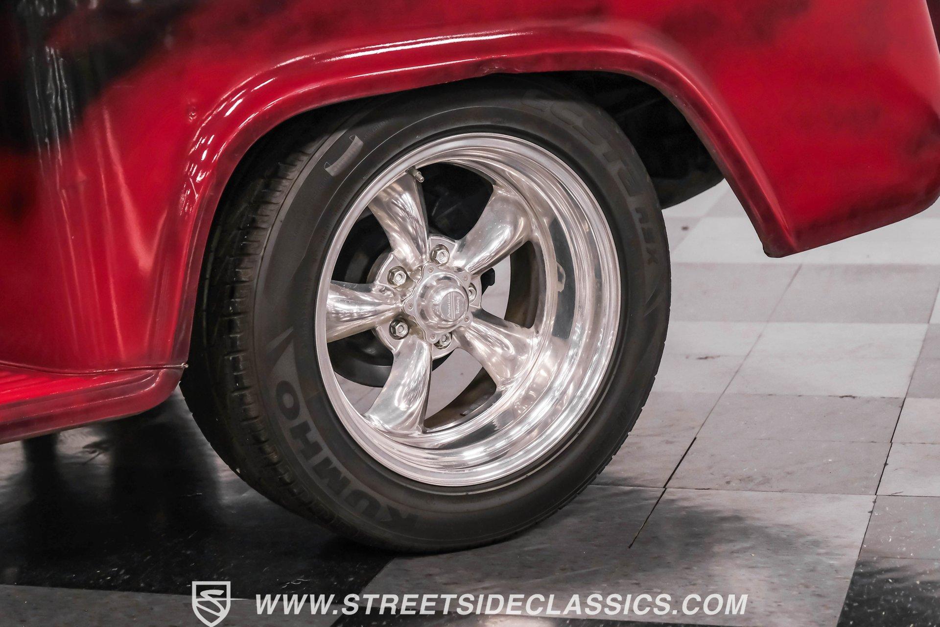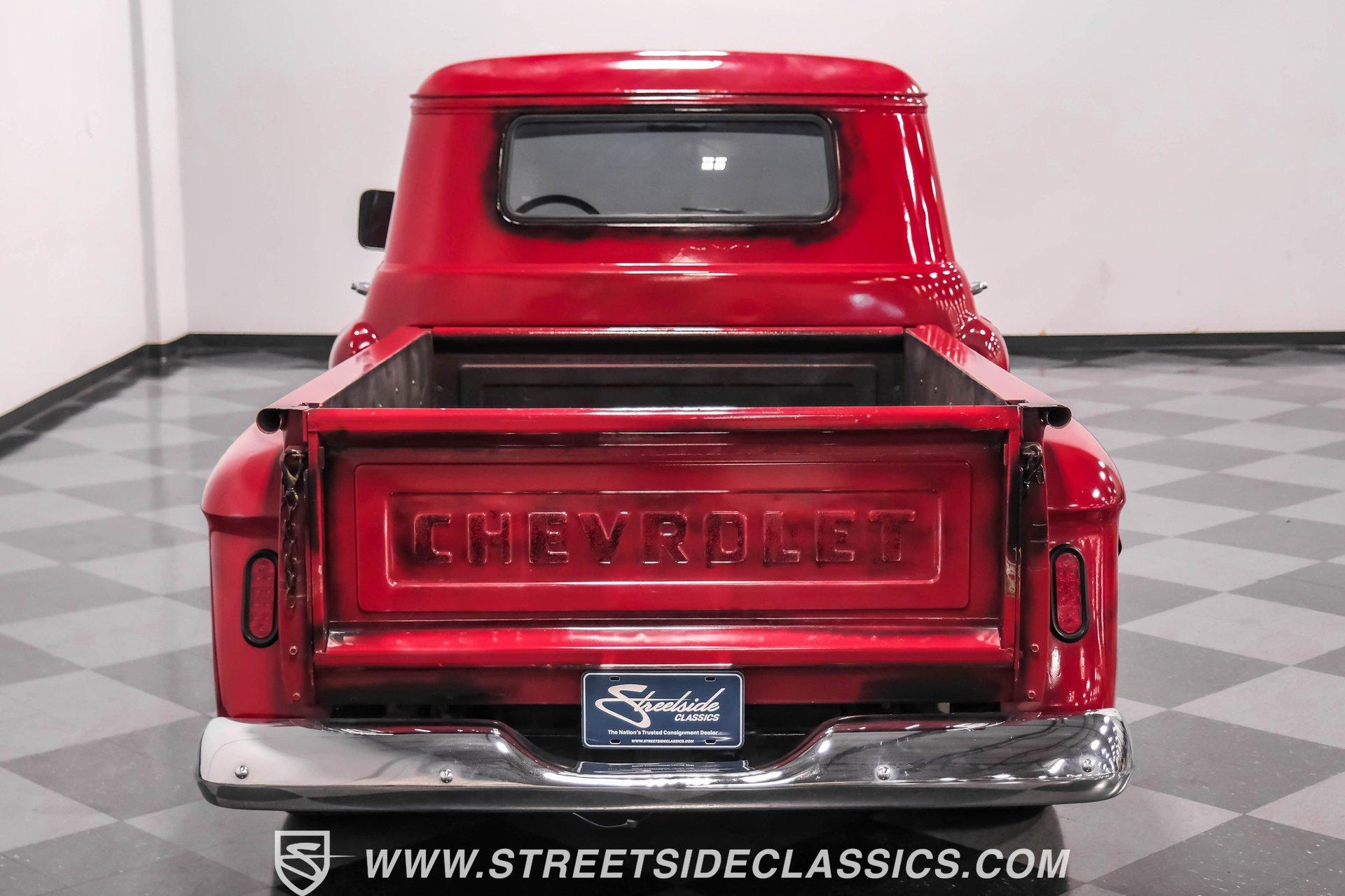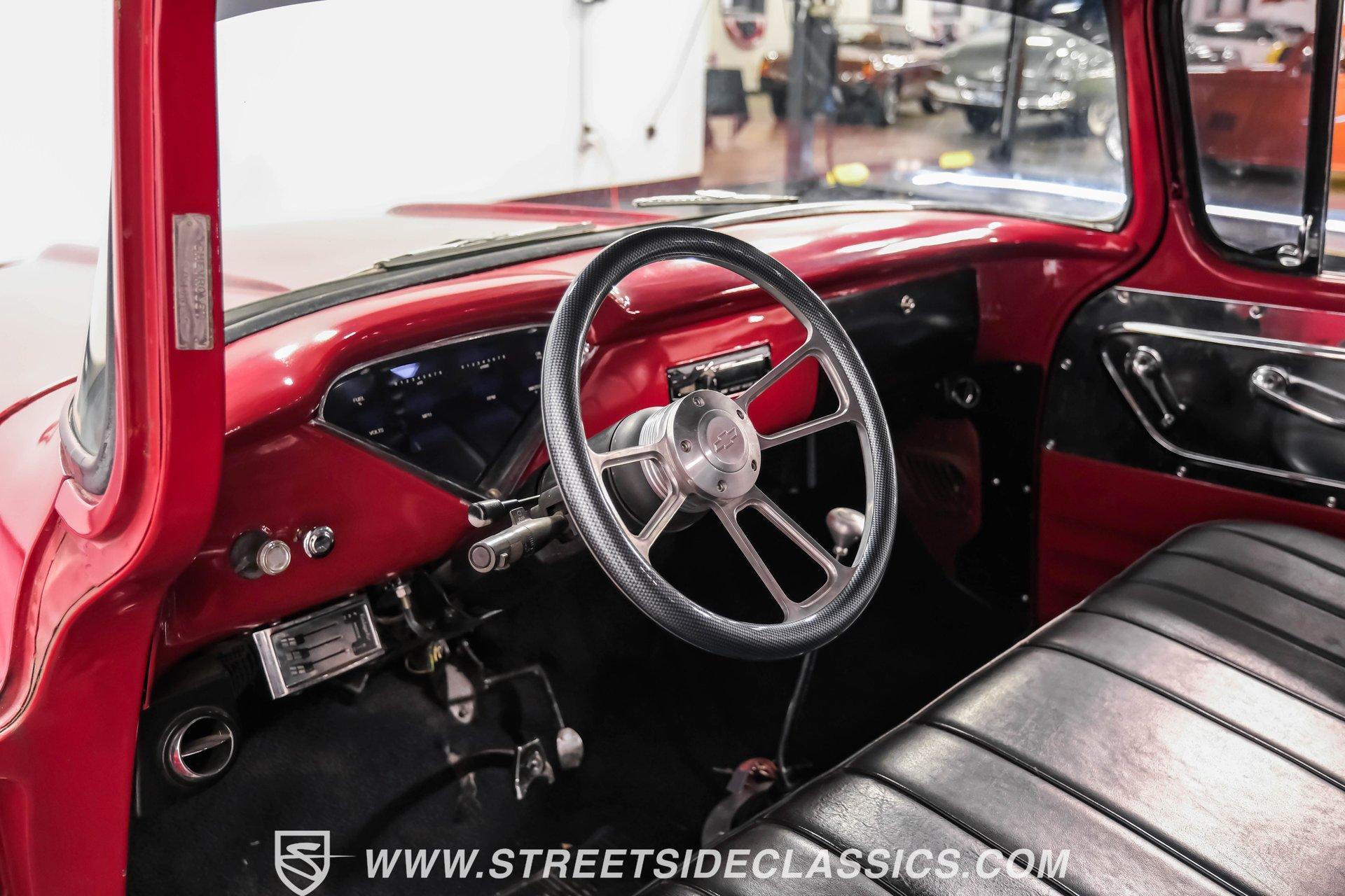 This 1957 Chevrolet 3100 brings style with its unique red patina finish sealed under a layer of clear coat, giving it an authentic aged look while protecting the metal underneath. The sleek modifications include integrated tail lights and a custom fuel filler in the fender, adding modern flair to the classic truck design. American Racing 17-inch wheels shod with 235/45R17 front and 255/50R17 rear tires anchor each corner, while the Camaro front subframe provides improved handling dynamics. The black and red interior blends classic style with modern upgrades. The vinyl bench seat offers comfortable cruising, while Dakota Digital gauges provide clear readouts of vital information. A tilt steering column topped with a billet wheel puts control at your fingertips, and the Lokar floor shifter adds a performance touch. Air conditioning keeps things cool while a Dual-brand radio with AM/FM/Bluetooth/AUX capabilities provides the soundtrack. A modern 5.3L LS V8 Vortec engine paired with a 4-speed automatic transmission delivers strong power to the 10-bolt rear end. Long tube headers feed into a dual Thrush exhaust system for an awesome sound. The power disc brakes at all four corners provide excellent stopping ability, while power steering makes maneuvering effortless. An electronic cooling fan maintains optimal operating temperatures. HIGHLIGHTS: 5.3L LS V8 Vortec Engine 4-Speed Automatic Transmission Electronic Fuel Injection Long Tube Headers Dual Thrush Exhaust Power Disc Brakes Front and Rear 10-Bolt Rear Axle Camaro Front Subframe Power Steering Red Patina with Clear Coat 17" American Racing Wheels 235/45R17 Front, 255/50R17 Rear Tires Custom Fuel Filler Location Black and Red Interior with Bench Seat Air Conditioning Dakota Digital Gauges Tilt Steering Column AM/FM/Bluetooth/AUX Radio This 1957 Chevrolet 3100 combines classic truck style with modern performance upgrades. The LS V8 power, upgraded suspension, and custom touches make this pickup a perfect blend of old and new. Call today!