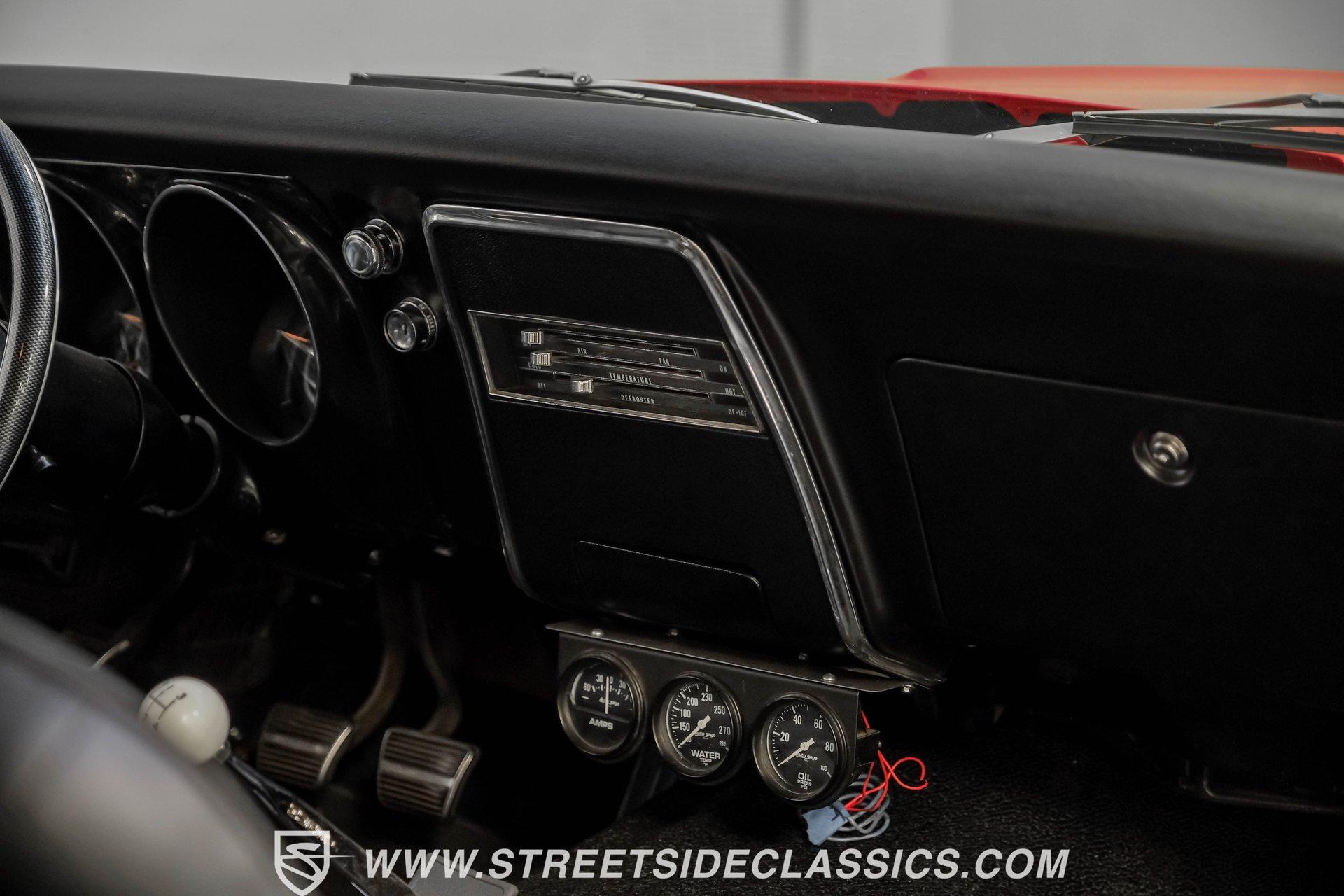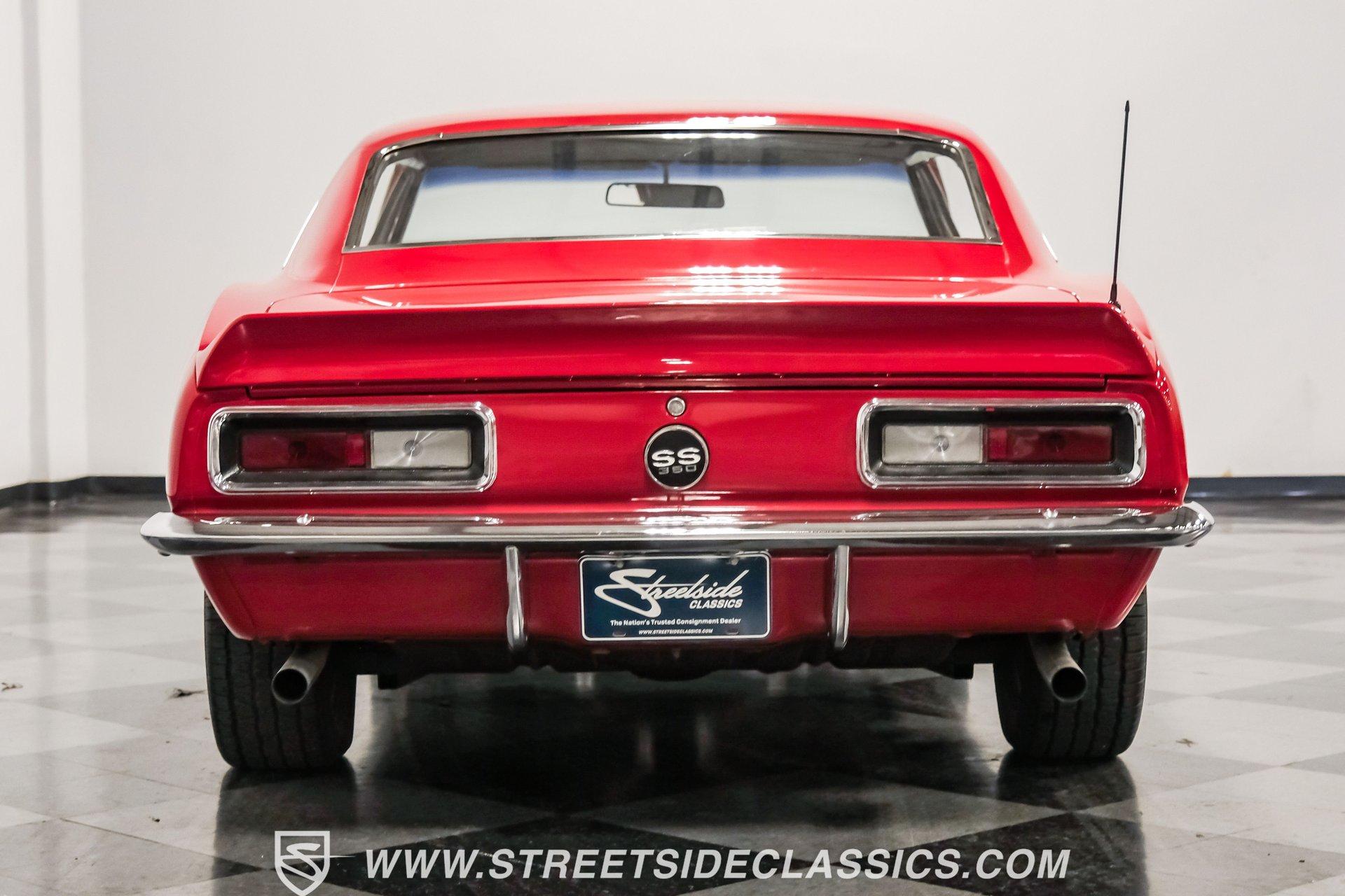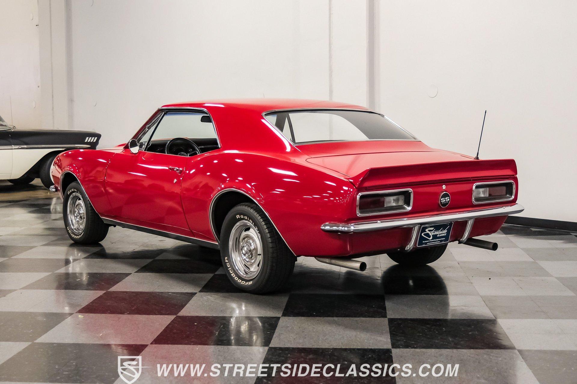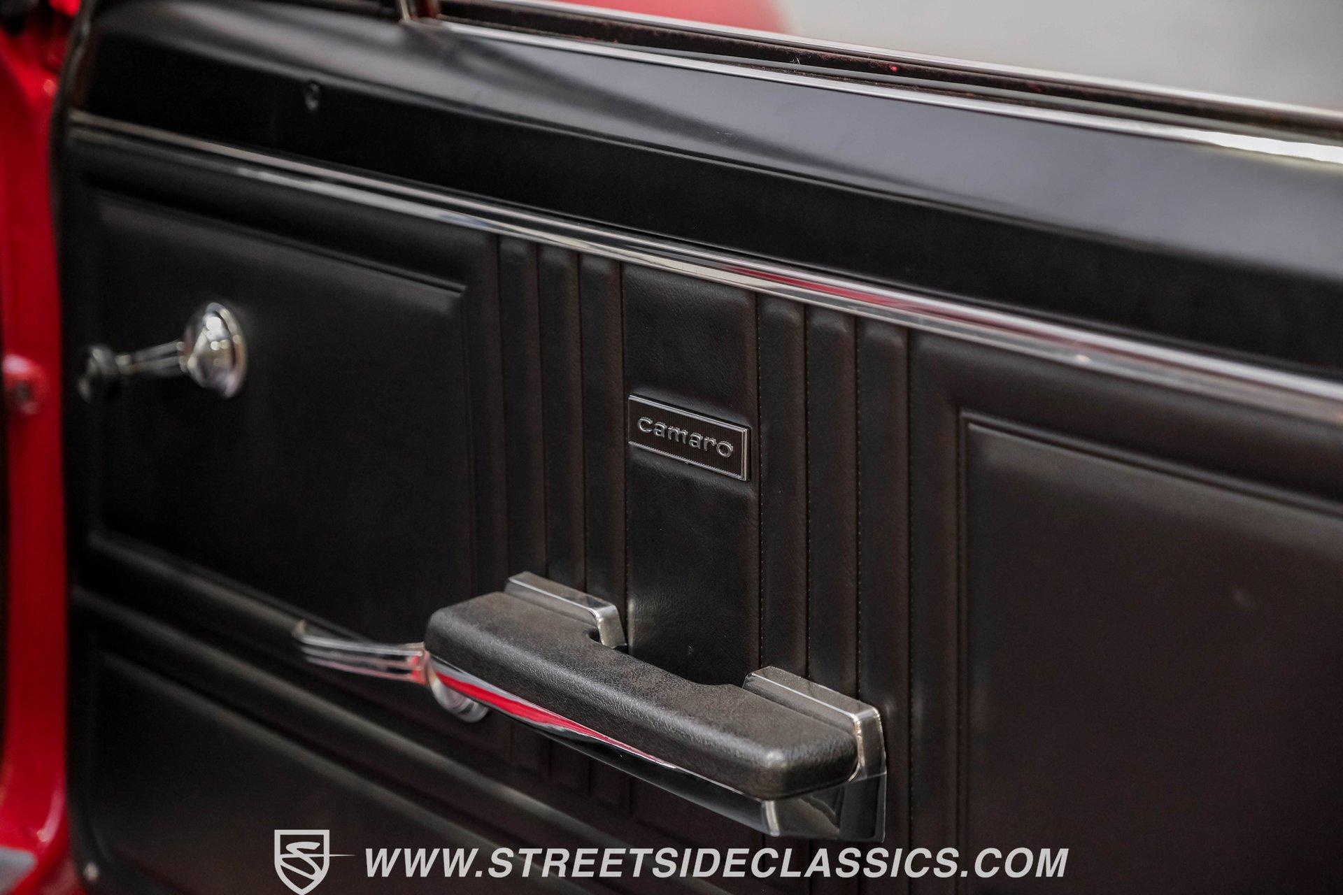 Kept by one family for 38 years, this 1967 Chevrolet Camaro SS Tribute displays a bold Bolero Red finish accented with crisp white painted stripes. The cowl hood adds muscle to the front end while completing the SS appearance package that makes first-generation Camaros so desirable. Chrome trim and SS badging throughout enhance the exterior's visual impact without overwhelming it. The 14" Rally wheels paired with 225/60R14 BFGoodrich tires give this Camaro its proper stance while the clean silhouette emphasizes its classic body lines. The black vinyl interior offers a pure performance aesthetic with bucket seats positioned for optimal control. The floor-mounted Hurst shifter connects to the Muncie 4-speed manual transmission for quick gear changes. A tilt steering column adds driver comfort while the Autogage cluster mounted below the dash provides additional vital information. The radio delete plate maintains the dash's clean layout, putting all focus on the driving experience. Black door panels and carpeting complete the factory-correct appearance throughout the cabin. A 350 cubic inch V8 engine gives this Camaro its go-fast credentials. The combination of a Holley intake and Quadrajet carburetor provides solid performance and throttle response. Dual exhaust with glasspack-style mufflers produces the aggressive sound that V8 enthusiasts crave. For added security, an ignition cut-off is cleverly hidden in the ashtray, while an electric cooling fan controlled by a dashboard toggle switch helps maintain optimal temperature. The 10-bolt rear axle with traction bars effectively transfers power to the ground, complemented by the coil spring front suspension. HIGHLIGHTS: 350 V8 Engine 4-Speed Muncie Manual Transmission Holley Intake Quadrajet Carburetor Dual Exhaust with Glasspack-Style Mufflers 10-Bolt Rear Axle Power Steering Bolero Red Paint w/ White Painted Stripes Cowl Hood SS Badging and Emblems 14" Rally Wheels 225/60R14 BFGoodrich Tires Black Vinyl Interior with Bucket Seats Hurst Shifter Tilt Steering Column Owner's Manual Some Miscellaneous Spare Parts First-generation Camaros rank among the most coveted American muscle cars ever made. With its powerful 350 V8, 4-speed manual, and authentic SS styling cues, this 1967 Camaro SS Tribute offers the classic muscle car experience that collectors and enthusiasts value. Call today!