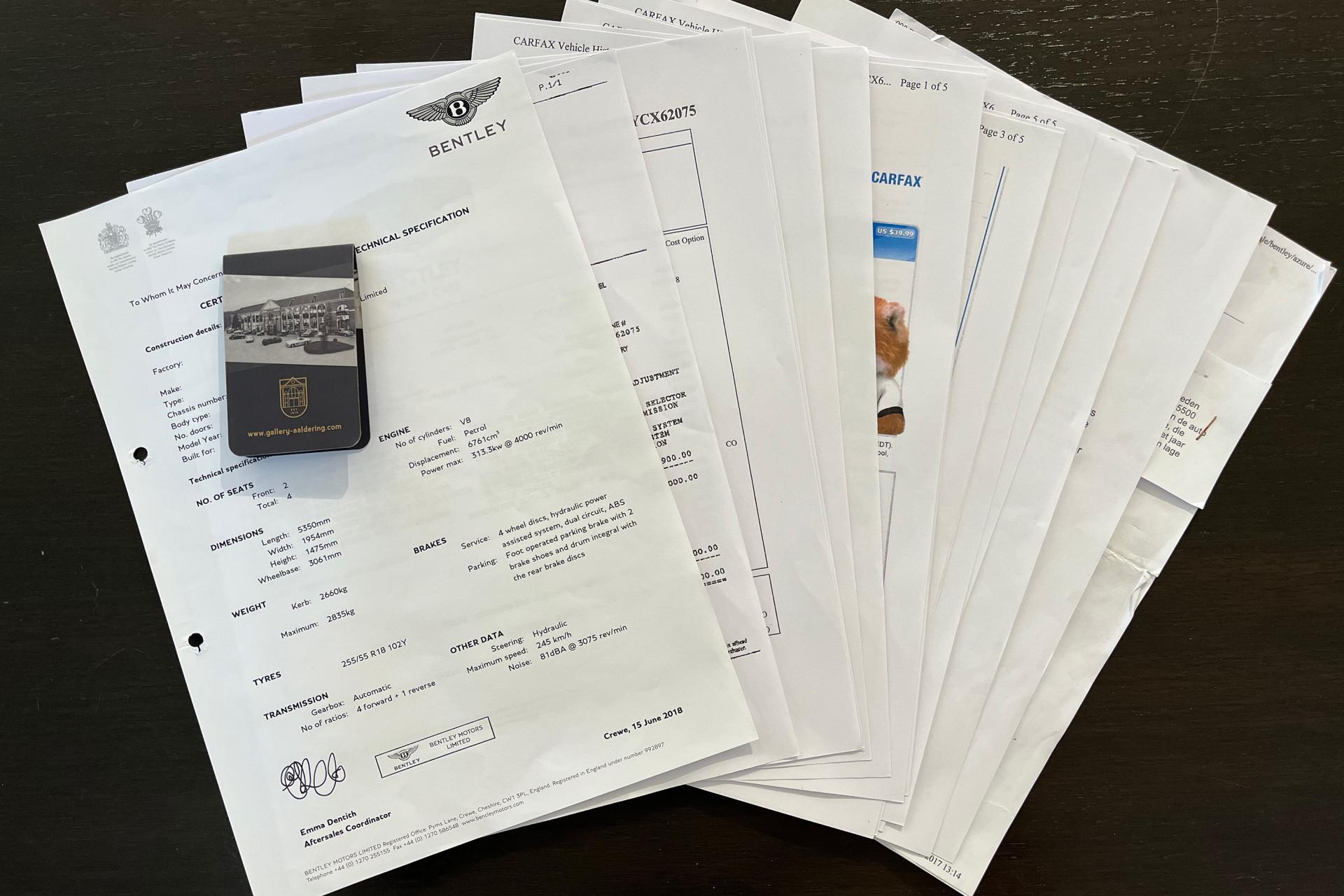 The underside is untouched and shows that the car has not suffered any damage. In terms of maintenance, the Bentley is fully up-to-date. The car comes with a Carfax report, invoices for the fantastic maintenance the car has had, a Certificate of Construction from Bentley itself, and the complete option list from when the car was ordered.