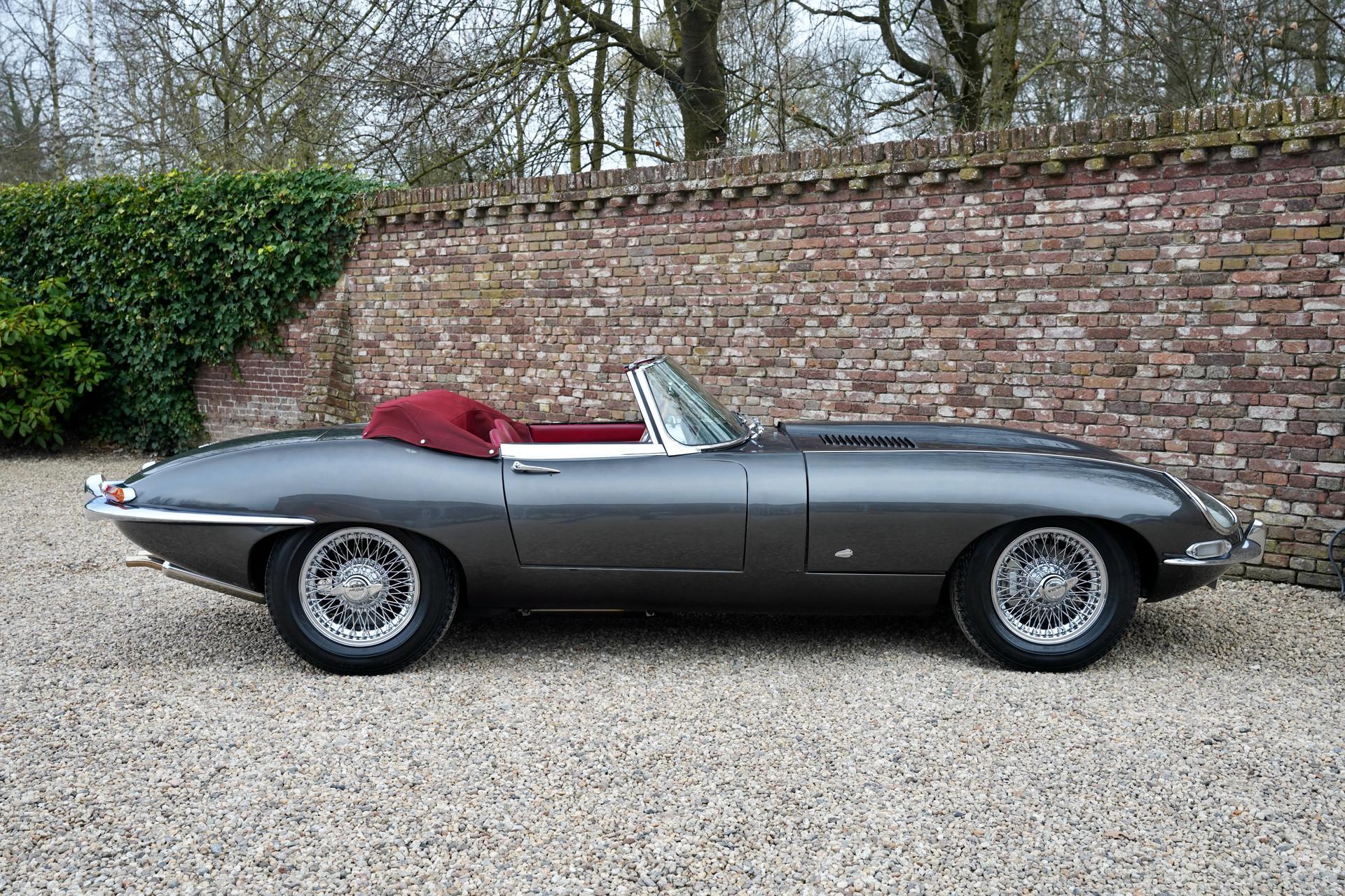 You know what's special? A Jaguar E-Type with one of those rare details only true connoisseurs appreciate: the outside bonnet locks. These external hood latches were exclusive to the very first E-Types to roll off the line in 1961. Fewer than 500 were ever built, making this a genuine collector's gem.