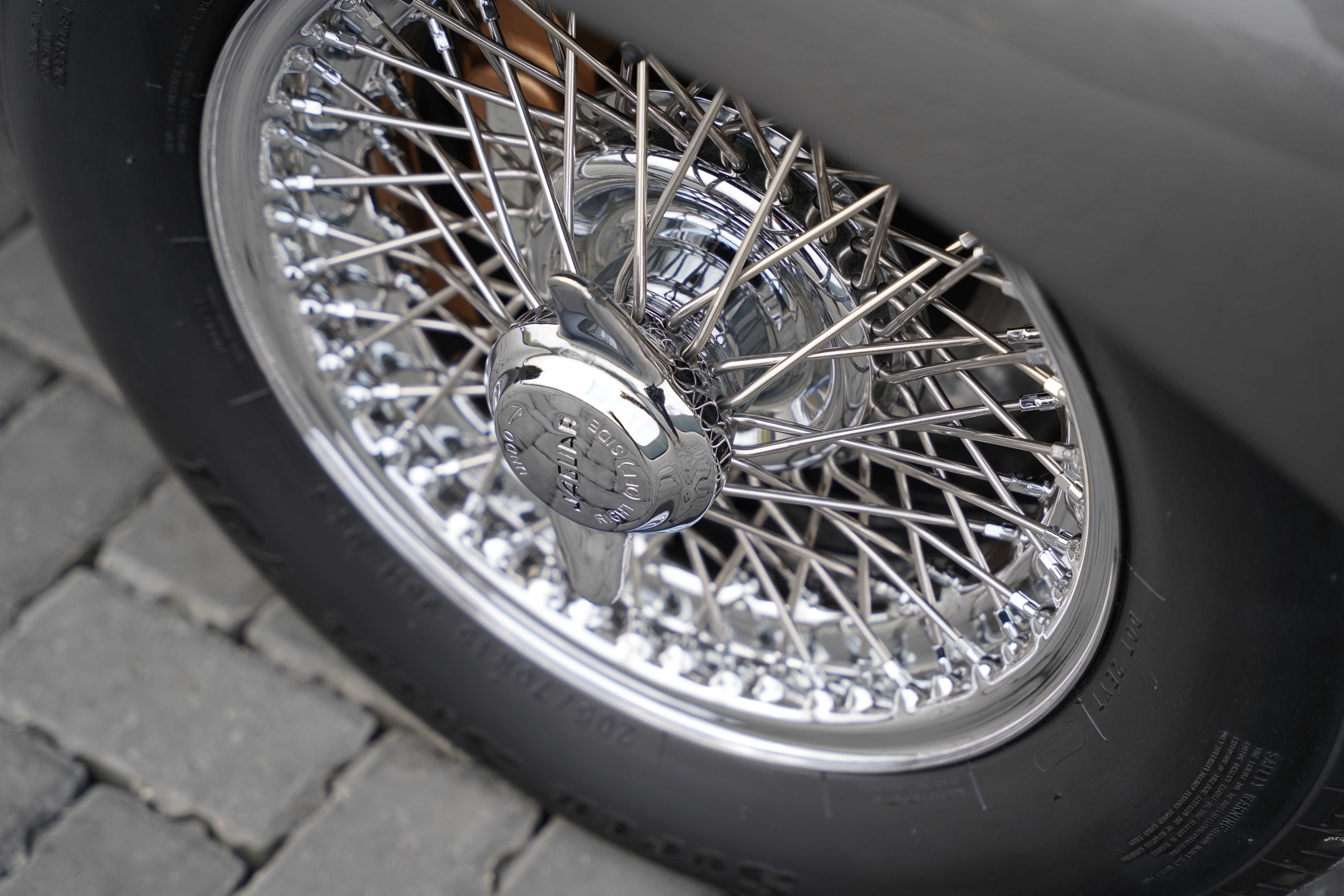 Designed by Malcolm Sayer, its aerodynamic shape features a long bonnet, glass-covered headlights, and a sleek fastback roofline. The interior combines classic British sports car aesthetics with luxurious touches, including leather scallop bucket seats and a wooden-rimmed steering wheel.