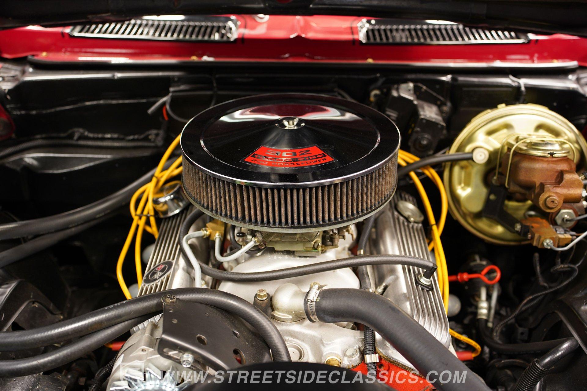 A 302 DZ V8 engine gives this Z28 its signature Chevrolet performance. Rebuilt to factory specifications with added roller cam technology, the small block V8 runs through a single 4-barrel carburetor. Long tube headers connect to a MagnaFlow dual exhaust system that produces classic muscle car sounds. The Muncie M21 4-speed manual transmission sends power to a 12-bolt rear axle. Power steering and power disc brakes add modern control to this classic Chevy, making it enjoyable for both weekend cruises and longer drives.