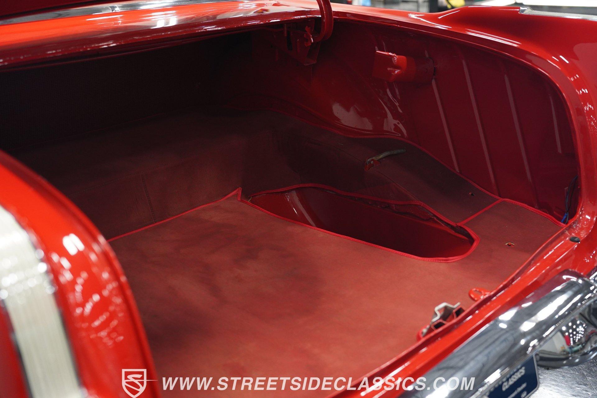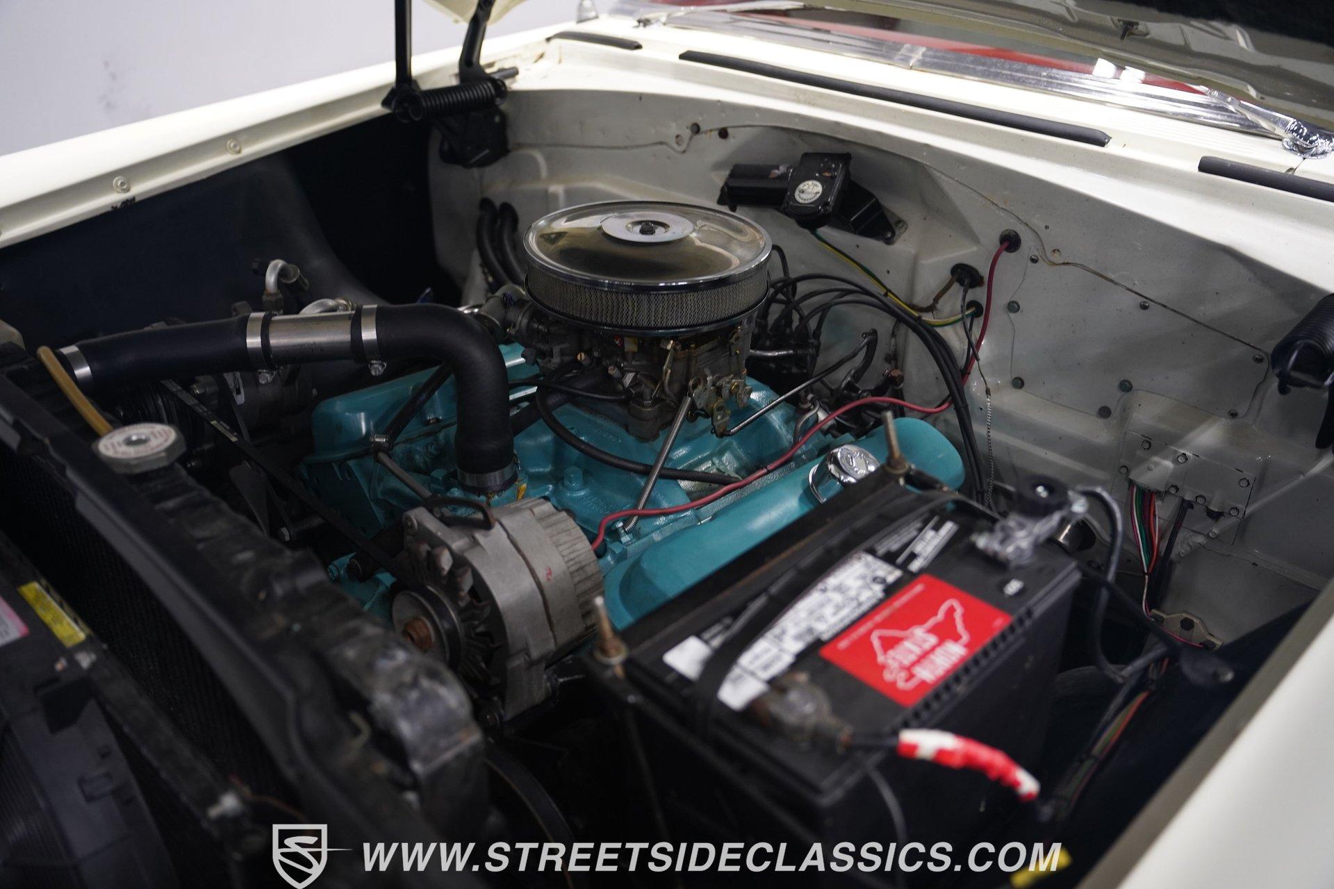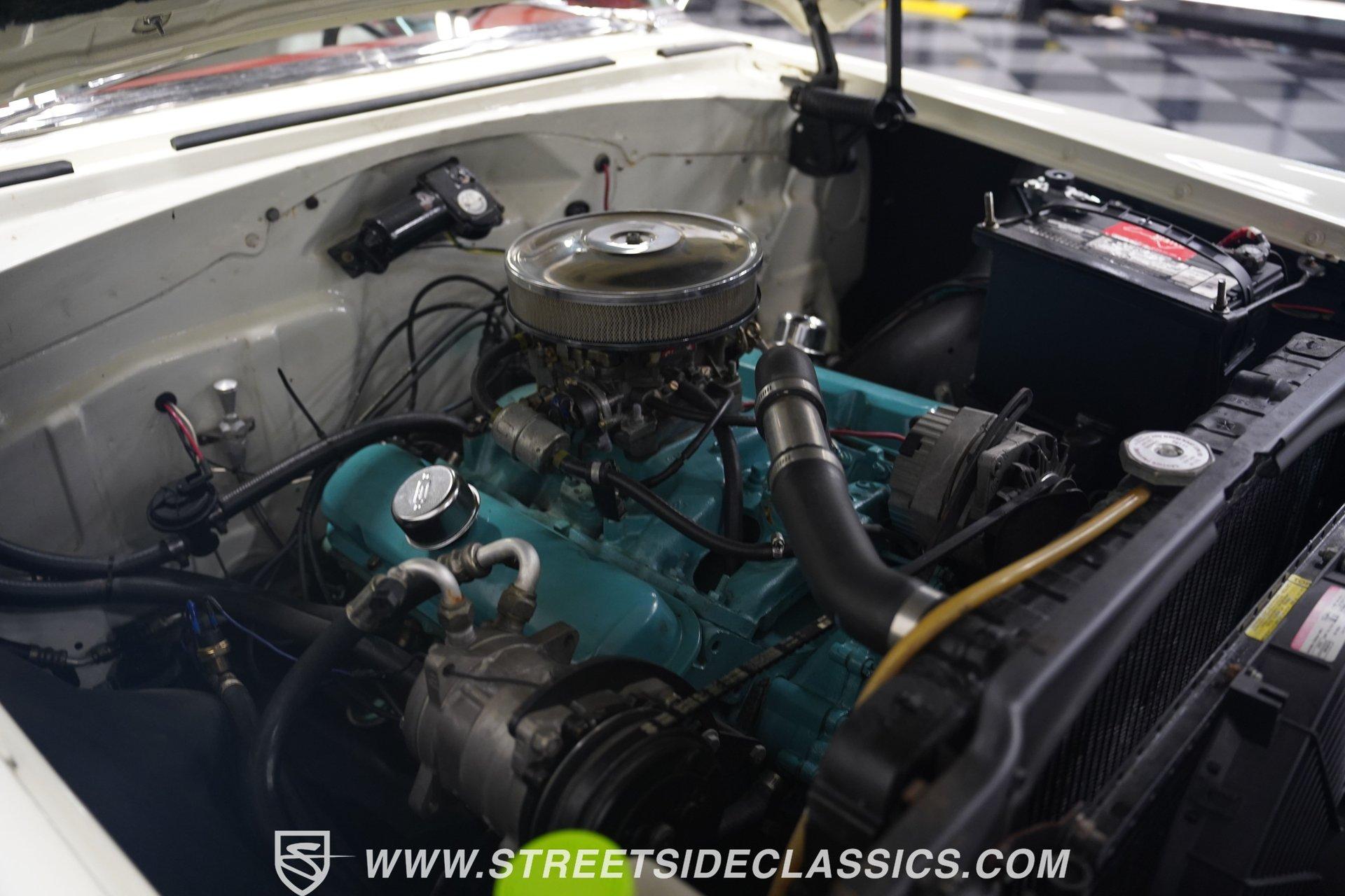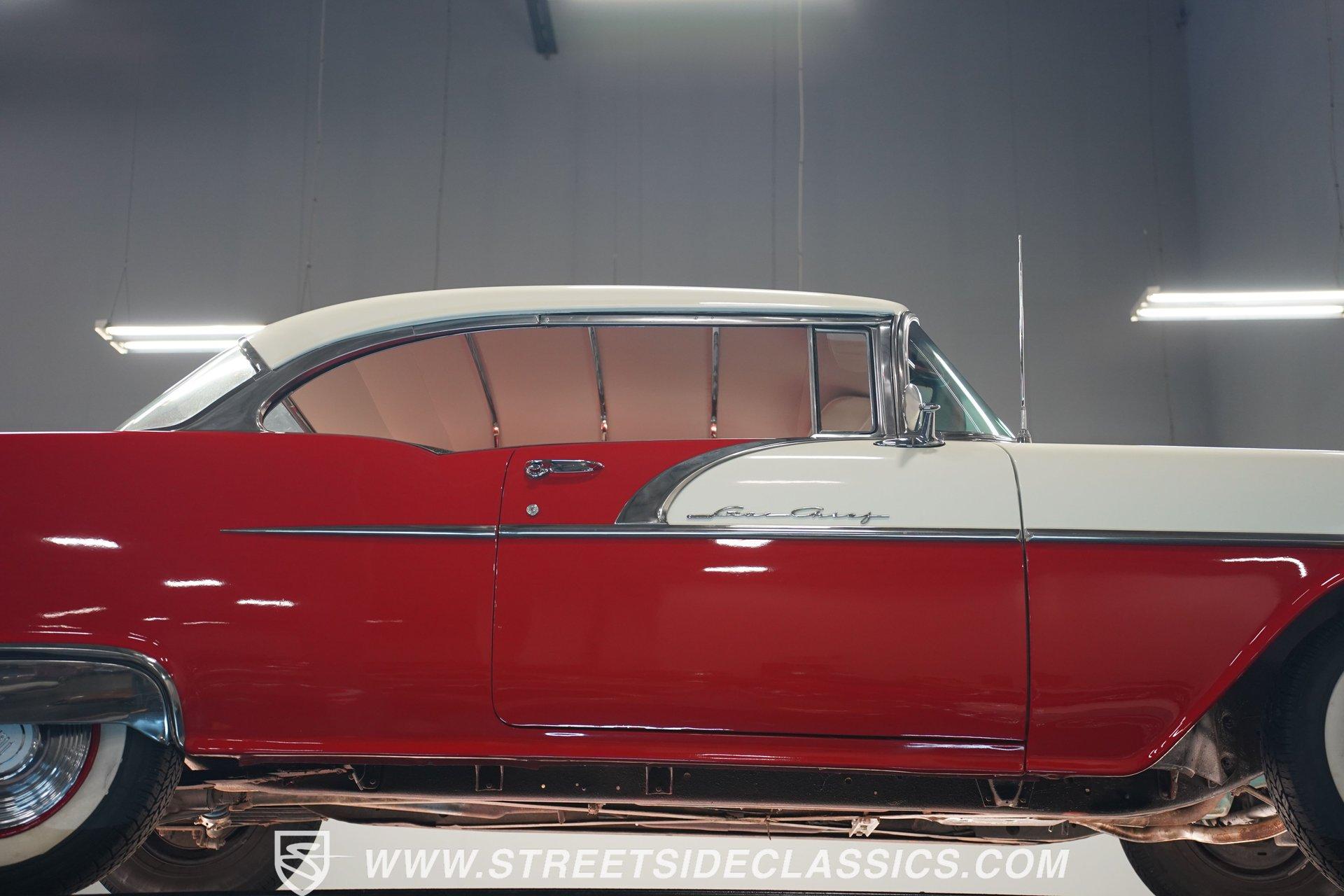 Once Pontiac's top-of-the-line model, the 1956 Star Chief wears a two-tone Bolero Red and White exterior that amplifies the car's grand dimensions. Long, flowing body lines run the length of this vehicle while abundant chrome trim decorates the sides, grille, and bumpers - hallmarks of 1950s American automotive styling. From the front to the back, this Star Chief has a solid presence with 15-inch wheels wrapped in P225/75R15 tires completing the classic profile. The well-appointed White vinyl interior matches the exterior theme with ample bench seating for comfortable cruising. An aftermarket steering wheel adds modern control while maintaining classic looks. For added comfort, this Star Chief comes equipped with power steering for light handling and air conditioning to beat the summer heat. Climate controls and vents have been added beneath the dash, and an AM radio remains in place for that authentic driving atmosphere. For propulsion, a 1974 Pontiac 400 V8 with ZH suffix code sits in the engine bay, connected to a TH400 3-speed automatic transmission. An Edelbrock 1411 single 4-barrel carburetor supplies the fuel mixture for optimal performance. The suspension features front coils with shocks and rear leaf springs paired with coilovers for a balanced ride. The dual exhaust system produces a deep tone while an electric pusher fan helps maintain proper operating temperatures. HIGHLIGHTS: 400 V8 Engine TH400 3-Speed Automatic Transmission Edelbrock 1411 Single 4-Barrel Carburetor Dual Exhaust System Electric Pusher Fan Drum Brakes Coil Springs with Shocks (Front) Leaf Springs & Coilovers (Rear) Bolero Red & White Two-Tone Paint 15" Wheels P225/75R15 Tires Chrome Trim White Interior with Bench Seats Power Steering Air Conditioning Tilt Steering Wheel AM Radio Aftermarket Climate Controls & Vents Column Shifter American automotive craftsmanship comes alive in this 1956 Pontiac Star Chief. With its impressive two-tone finish, luxurious interior, and powerful 400 V8 engine, this vehicle offers a unique blend of classic styling and enhanced performance that's increasingly hard to find today. Call today!