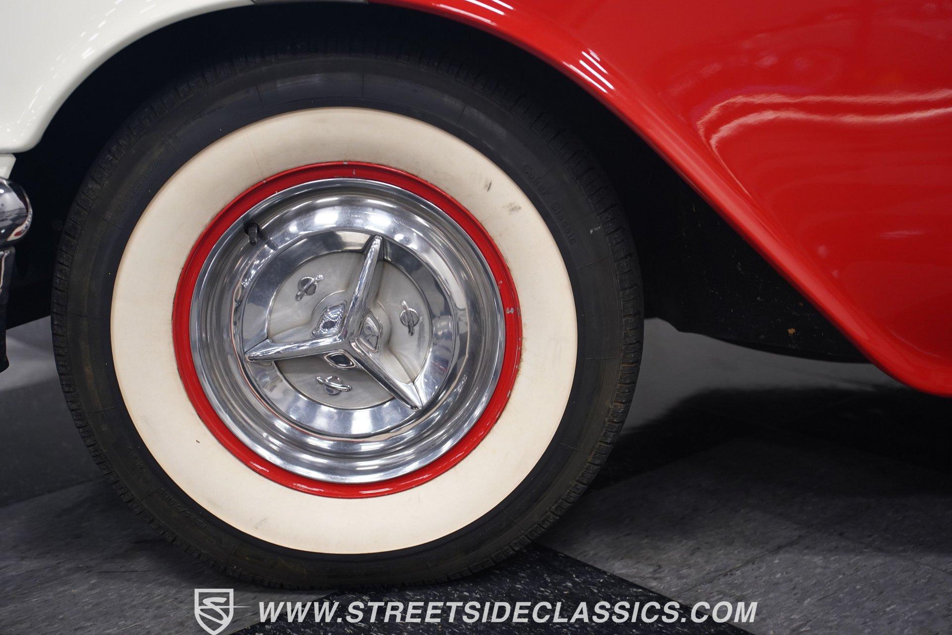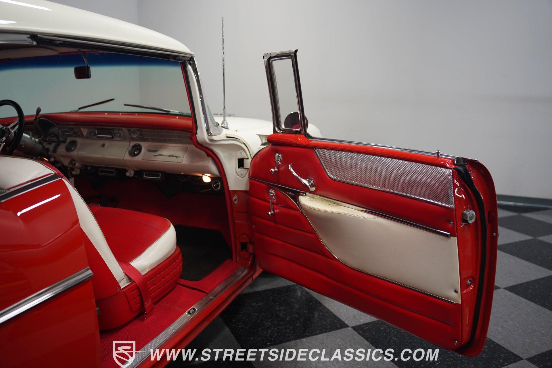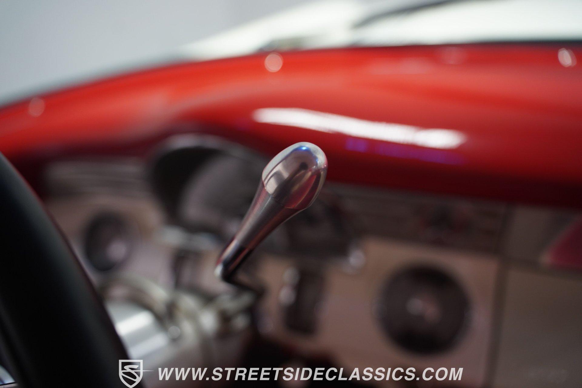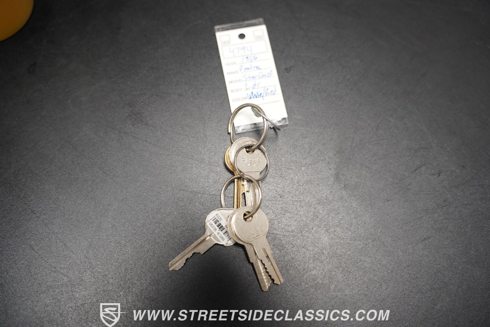 Once Pontiac's top-of-the-line model, the 1956 Star Chief wears a two-tone Bolero Red and White exterior that amplifies the car's grand dimensions. Long, flowing body lines run the length of this vehicle while abundant chrome trim decorates the sides, grille, and bumpers - hallmarks of 1950s American automotive styling. From the front to the back, this Star Chief has a solid presence with 15-inch wheels wrapped in P225/75R15 tires completing the classic profile. The well-appointed White vinyl interior matches the exterior theme with ample bench seating for comfortable cruising. An aftermarket steering wheel adds modern control while maintaining classic looks. For added comfort, this Star Chief comes equipped with power steering for light handling and air conditioning to beat the summer heat. Climate controls and vents have been added beneath the dash, and an AM radio remains in place for that authentic driving atmosphere. For propulsion, a 1974 Pontiac 400 V8 with ZH suffix code sits in the engine bay, connected to a TH400 3-speed automatic transmission. An Edelbrock 1411 single 4-barrel carburetor supplies the fuel mixture for optimal performance. The suspension features front coils with shocks and rear leaf springs paired with coilovers for a balanced ride. The dual exhaust system produces a deep tone while an electric pusher fan helps maintain proper operating temperatures. HIGHLIGHTS: 400 V8 Engine TH400 3-Speed Automatic Transmission Edelbrock 1411 Single 4-Barrel Carburetor Dual Exhaust System Electric Pusher Fan Drum Brakes Coil Springs with Shocks (Front) Leaf Springs & Coilovers (Rear) Bolero Red & White Two-Tone Paint 15" Wheels P225/75R15 Tires Chrome Trim White Interior with Bench Seats Power Steering Air Conditioning Tilt Steering Wheel AM Radio Aftermarket Climate Controls & Vents Column Shifter American automotive craftsmanship comes alive in this 1956 Pontiac Star Chief. With its impressive two-tone finish, luxurious interior, and powerful 400 V8 engine, this vehicle offers a unique blend of classic styling and enhanced performance that's increasingly hard to find today. Call today!