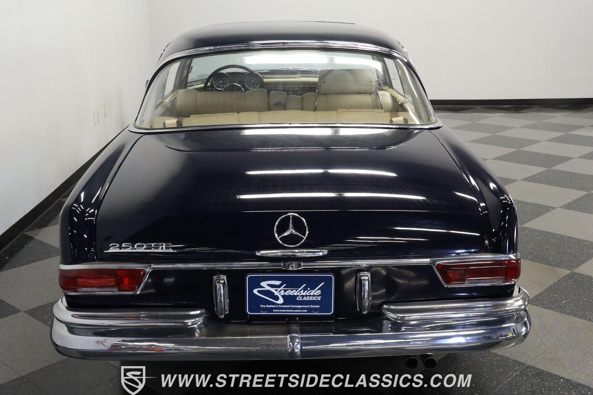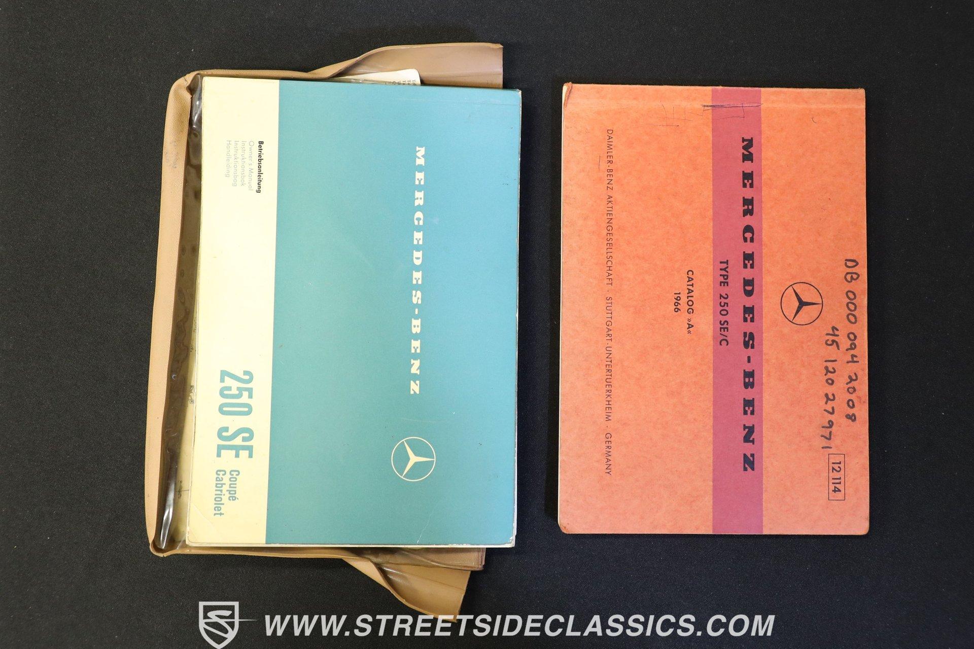 4928-TPA 1966 MERCEDES-BENZ 250SE COUPE Rare European luxury comes alive in this 1966 Mercedes-Benz 250SE Coupe, finished in dark blue that accentuates its elegant, flowing lines. The sculpted profile carries distinctive Mercedes-Benz styling with perfect proportions between the long hood and passenger compartment. Chrome bumpers add a brilliant contrast against the blue paint, while the factory-style 14" wheels maintain the sophisticated German aesthetic. Trim around headlights and windows shows excellent craftsmanship, representative of Mercedes-Benz's legendary build quality. The glass remains clear throughout, and the 195/75R14 tires provide proper stance to this prestigious coupe. The tan interior blends vinyl and cloth materials in true Mercedes-Benz fashion with bucket seats that offer both comfort and support. Wood trim adorns the dashboard, bringing natural warmth to the cabin's environment. The floor shifter for the 4-speed manual transmission sits readily accessible to the driver, while the functional gauges display essential information with classic Mercedes clarity. The AM/FM radio adds entertainment options for long drives. Power steering makes maneuvering this German luxury machine effortless, even in tight spaces. The overall layout shows thoughtful German engineering with controls placed intuitively. The 2.5 liter inline-six engine represents Mercedes-Benz engineering excellence with fuel injection for smooth power delivery. The 4-speed manual transmission provides direct control over the rear-wheel drivetrain. Four-wheel power disc brakes bring confident stopping ability to match the car's performance capabilities. The dual exhaust system enhances engine breathing with an aftermarket muffler. Suspension comprises A-arms with coil springs and shocks up front, while trailing arms with coil springs and shocks maintain stability at the rear. The engine bay shows excellent presentation with factory-correct appearance and good condition of all belts and hoses. HIGHLIGHTS: 2.5 Liter Inline-Six Engine Fuel Injection 4-Speed Manual Transmission 4-Wheel Power Disc Brakes Power Steering Dual Exhaust with Aftermarket Muffler A-Arm Front Suspension with Coil Springs and Shocks Trailing Arm Rear Suspension with Coil Springs and Shocks Dark Blue Paint Chrome Bumpers 14" Factory-Style Wheels with 195/75R14 Tires Tan Interior with Bucket Seats Wood Dash Trim Floor Shifter AM/FM Radio Original Owner's Manual Car Cover in Trunk This 1966 Mercedes-Benz 250SE Coupe offers distinguished German craftsmanship, a refined driving experience, and classic styling that made Mercedes-Benz a symbol of automotive excellence. With an inline-six engine, 4-speed manual, and sharp styling, this rare German coupe awaits its next admirer. Call today! We can assist you with getting an Extended Vehicle Service Plan from Freedom Warranty, which provides comprehensive coverage that can save thousands of dollars on unexpected repairs. Inquire for more details and pricing!