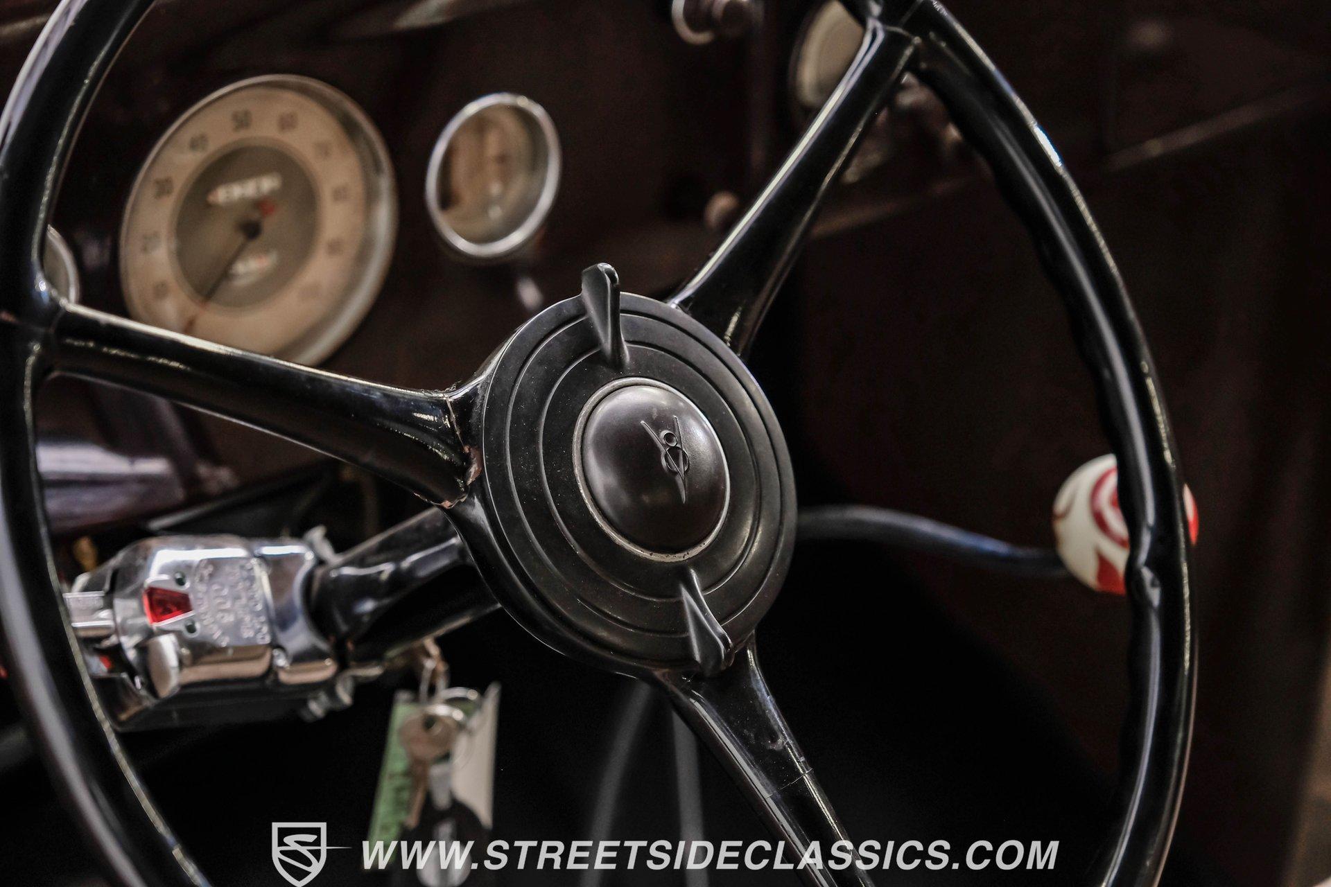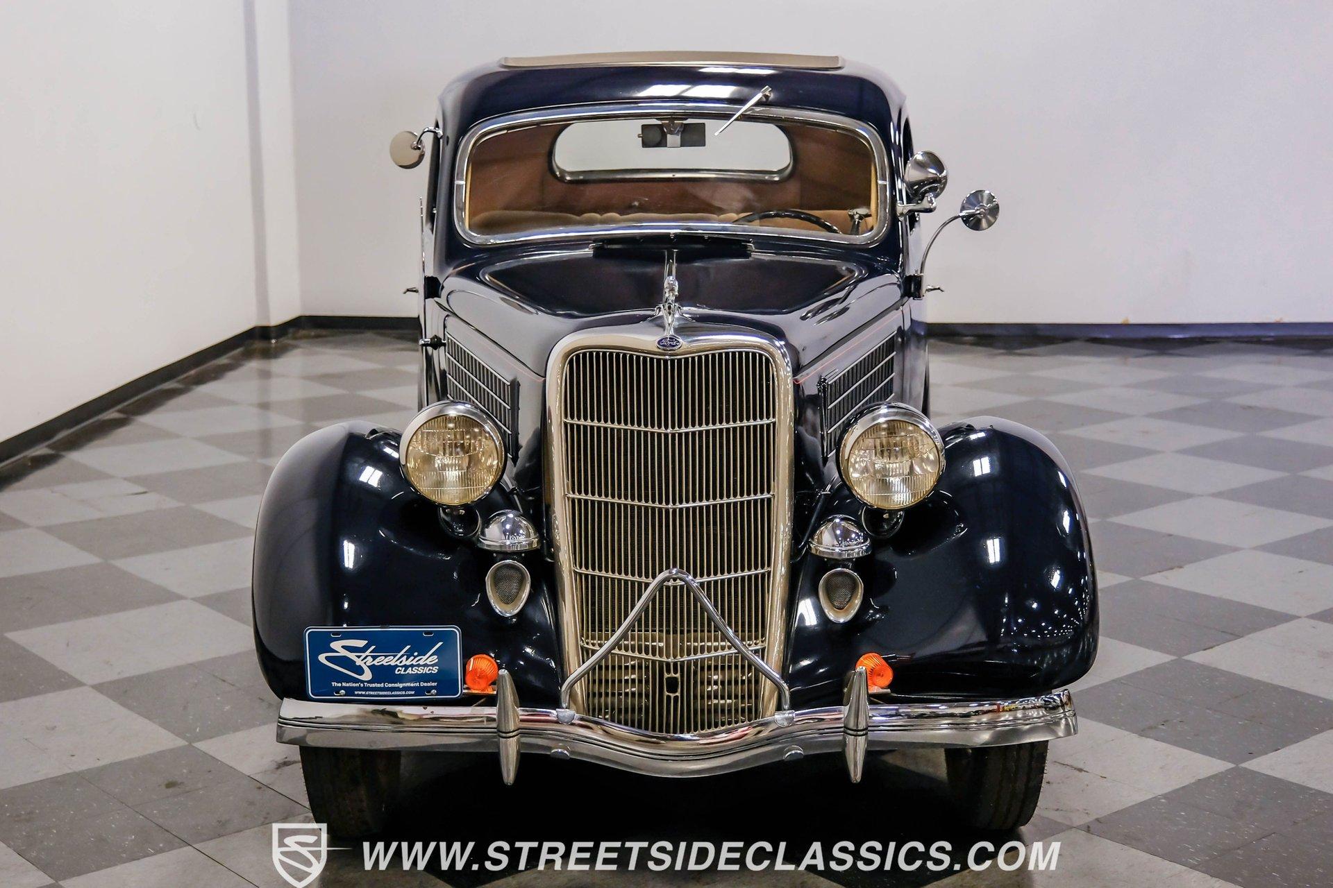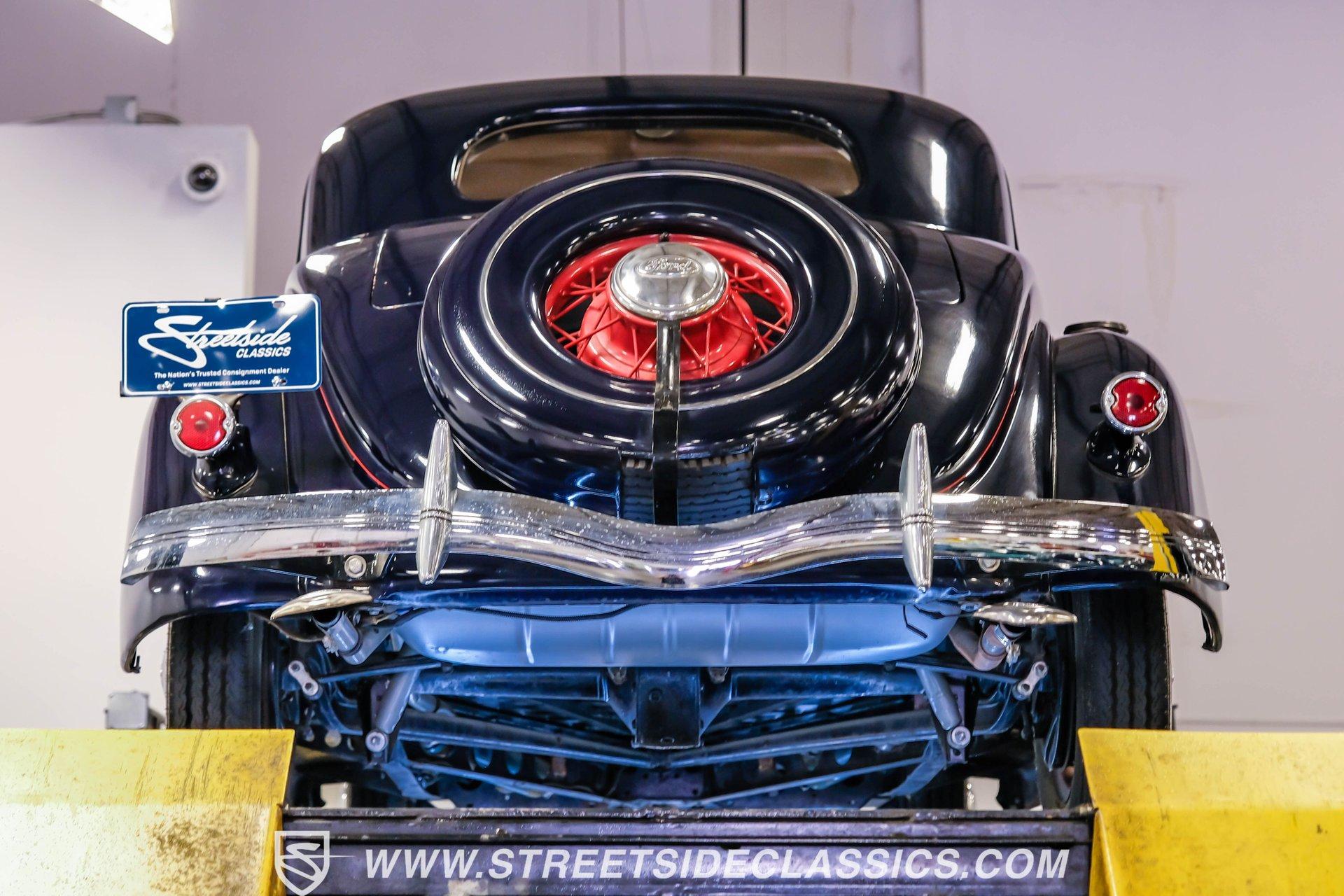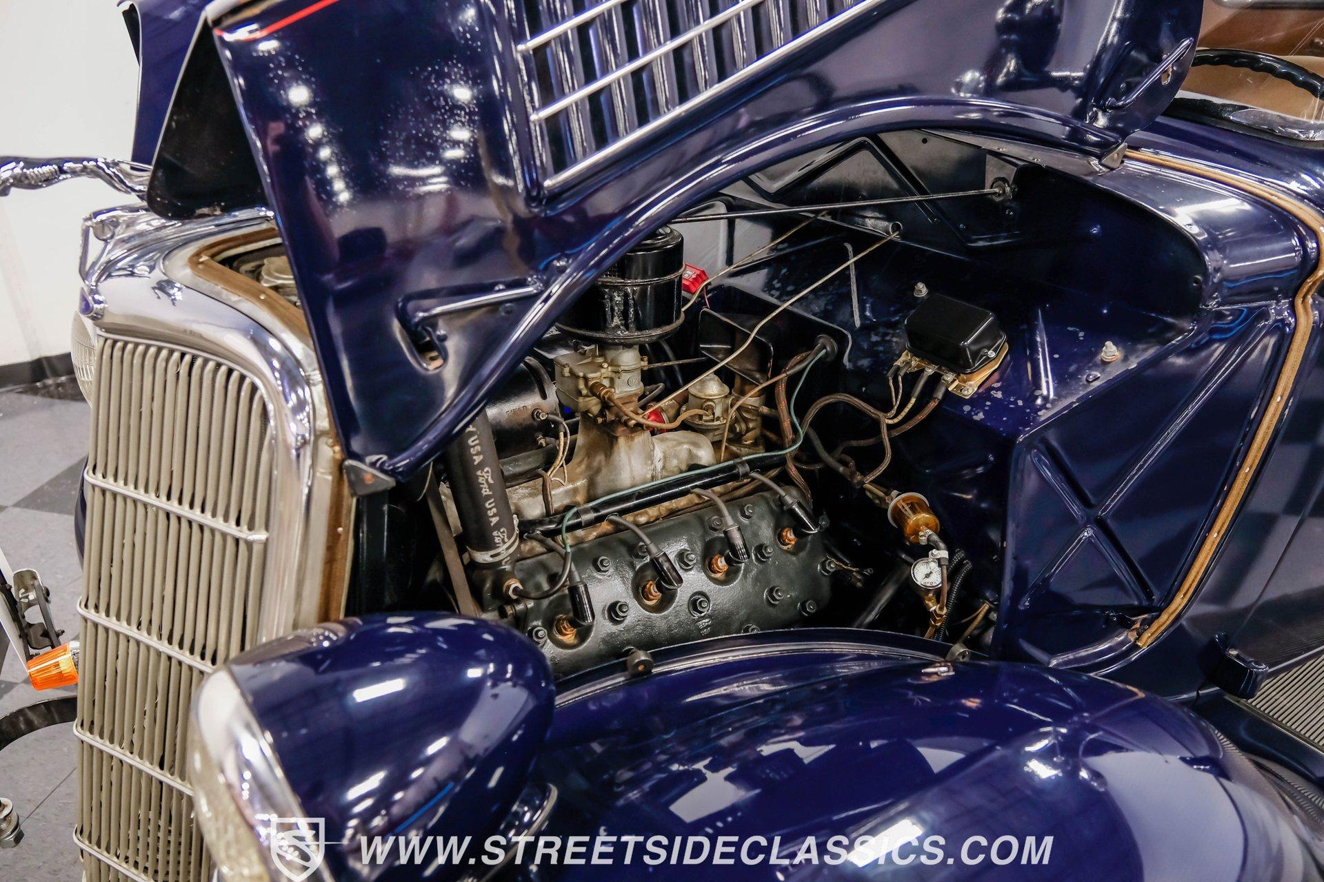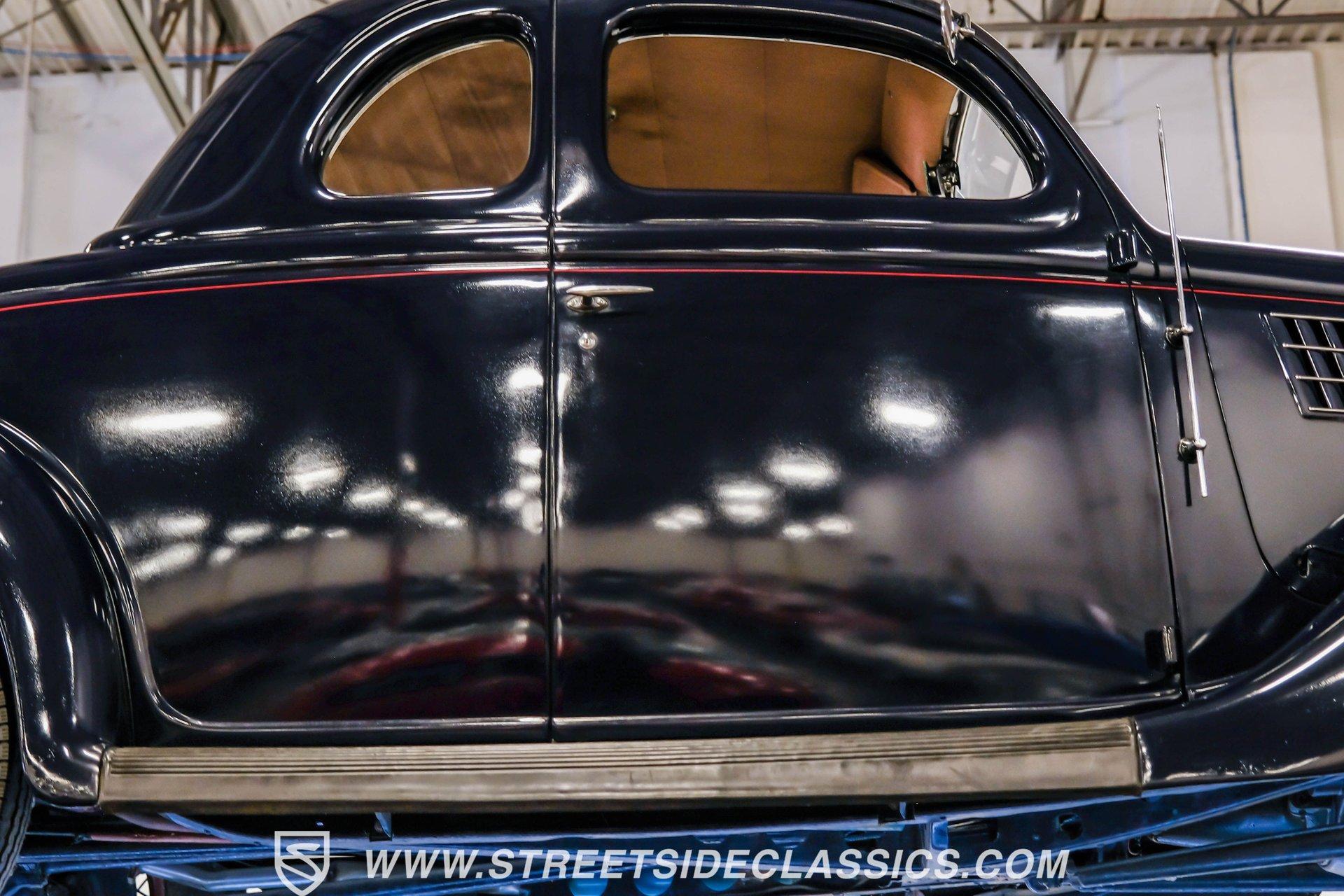 Rare and sought-after, this 1935 Ford 5-Window Rumble Seat Coupe comes finished in Dark Blue with red pinstriping. The roll-down rear window allows for easy communication with passengers seated in the back - an ingenious design feature from the era. Red-painted 16" wire wheels contrast nicely against the blue exterior while 6.00R16 Coker Classic whitewall tires complete the authentic pre-war look. The vinyl roof insert remains in good condition, and the driver's side spotlight adds a touch of period-correct detail to this all steel classic Ford's silhouette. Tan cloth covers the bench seat and door panels, creating a warm, inviting interior space. The stock dashboard houses original gauges and a custom shifter knob tops the floor-mounted transmission lever, adding a personalized element to the driving experience. The rearview mirror contains an integrated clock - a clever factory touch from Ford's engineers. For improved safety in today's traffic, an aftermarket turn signal lever has been added without compromising the original interior aesthetic. The 221 Flathead V8 engine provides ample power through a 3-speed manual transmission. A single-barrel carburetor manages fuel delivery while dual glasspack-style exhaust produces the unmistakable sound that made these engines famous. Mono leaf springs support both front and rear suspension, while drum brakes handle stopping duties. HIGHLIGHTS: 221 Flathead V8 Engine 3-Speed Manual Transmission Dual Glasspack-Style Exhaust 12-Volt Electrical System Conversion Newer Gas Tank Dark Blue Paint with Red Pinstriping 16" Wire Wheels with Red Paint 6.00R16 Coker Classic Whitewall Tires Rumble Seat Tan Interior with Bench Seat Stock Dash with Original Gauges Stock Steering Wheel Clock in Rearview Mirror Aftermarket Turn Signal Lever Car Cover Owner's Manual Offering authentic pre-war American automobile engineering, this 1935 Ford combines the desirable 5-Window Coupe body style with the practical rumble seat configuration. The flathead V8 engine, classic styling, and upgraded 12V electrical system make this a drivable piece of automotive craftsmanship. Call today!