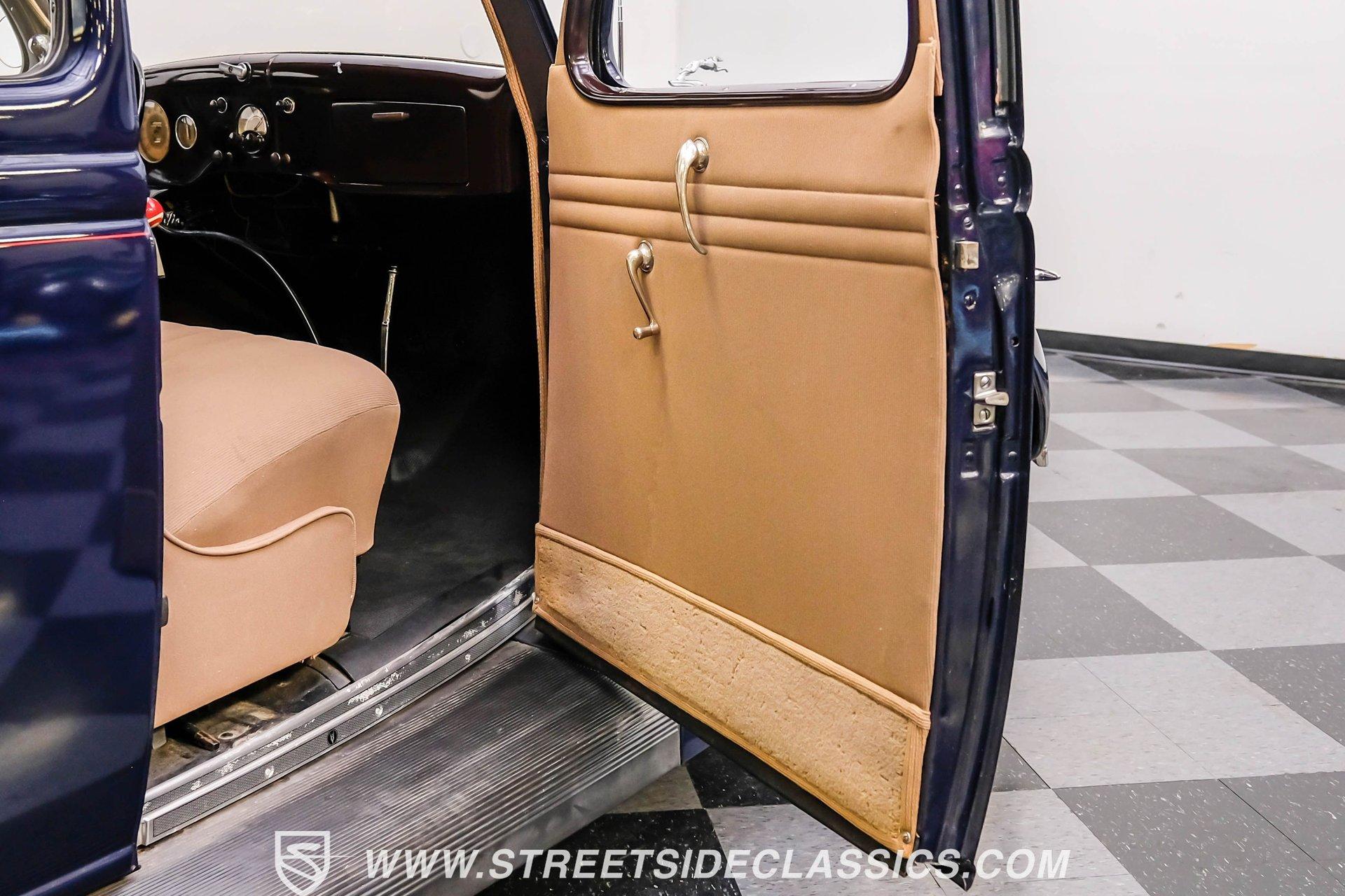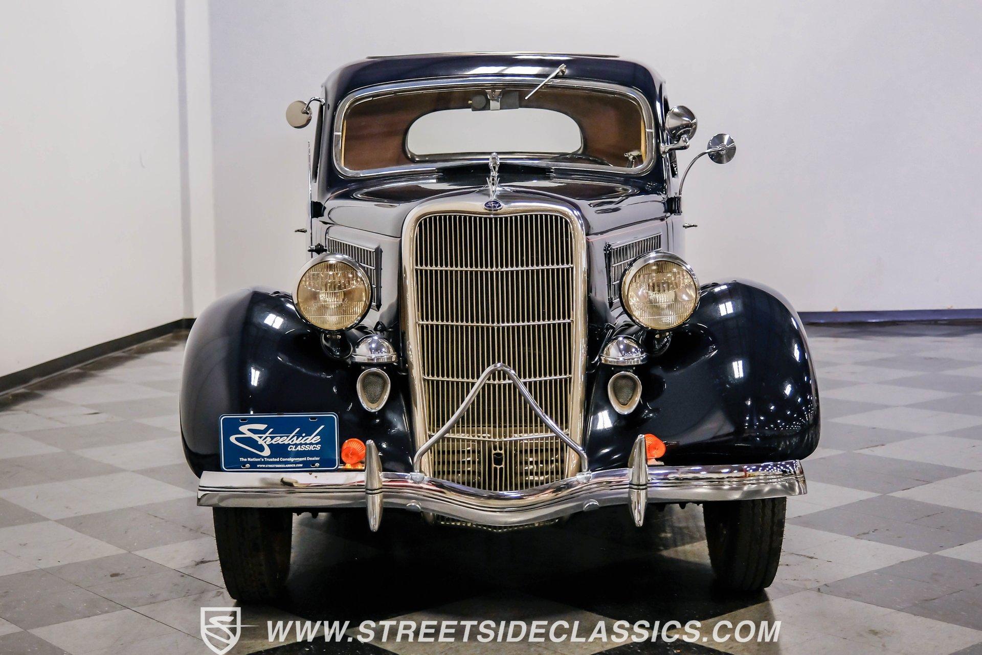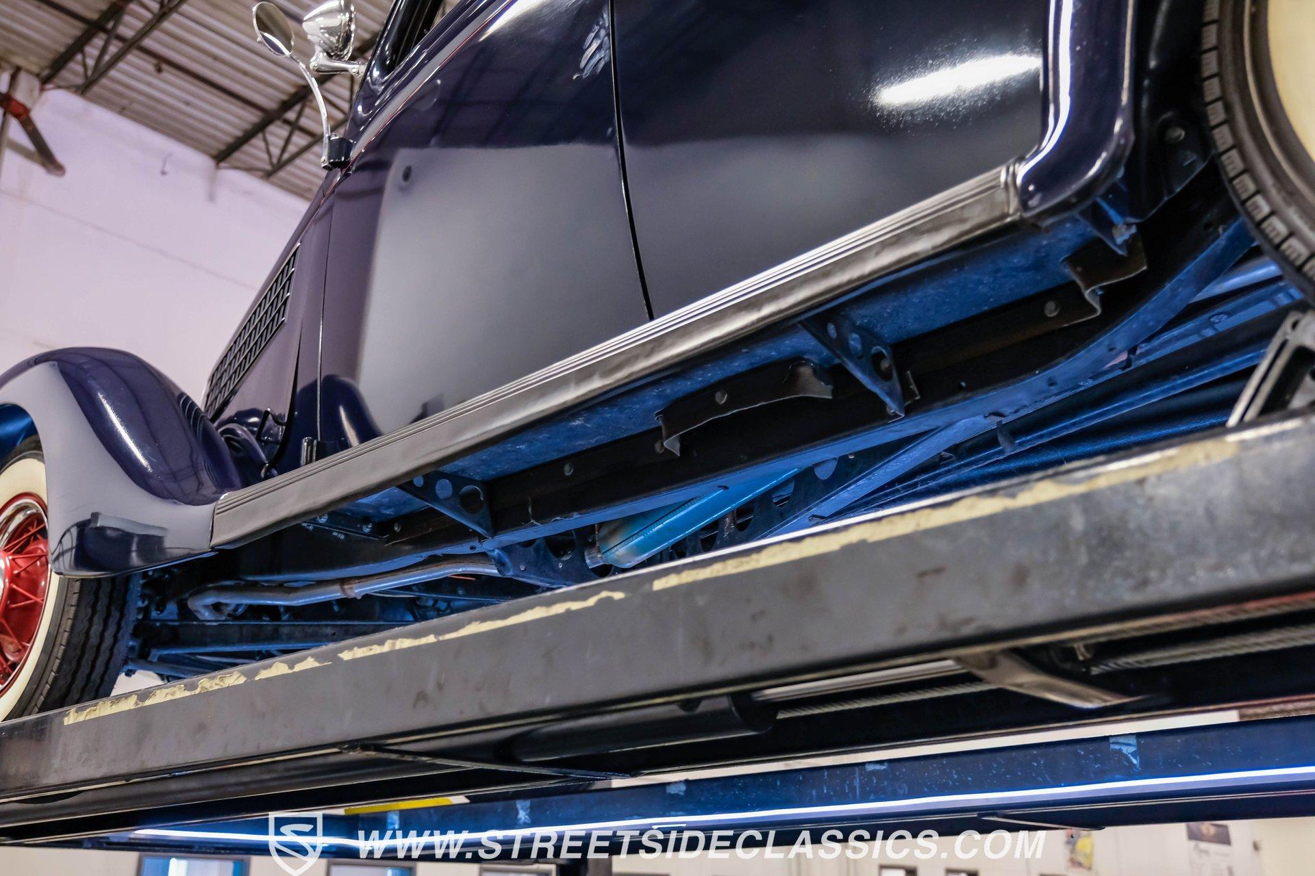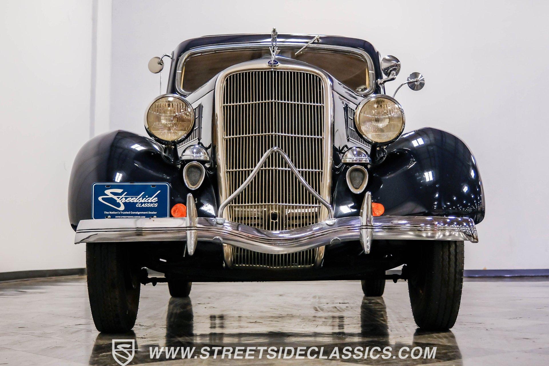 Rare and sought-after, this 1935 Ford 5-Window Rumble Seat Coupe comes finished in Dark Blue with red pinstriping. The roll-down rear window allows for easy communication with passengers seated in the back - an ingenious design feature from the era. Red-painted 16" wire wheels contrast nicely against the blue exterior while 6.00R16 Coker Classic whitewall tires complete the authentic pre-war look. The vinyl roof insert remains in good condition, and the driver's side spotlight adds a touch of period-correct detail to this all steel classic Ford's silhouette. Tan cloth covers the bench seat and door panels, creating a warm, inviting interior space. The stock dashboard houses original gauges and a custom shifter knob tops the floor-mounted transmission lever, adding a personalized element to the driving experience. The rearview mirror contains an integrated clock - a clever factory touch from Ford's engineers. For improved safety in today's traffic, an aftermarket turn signal lever has been added without compromising the original interior aesthetic. The 221 Flathead V8 engine provides ample power through a 3-speed manual transmission. A single-barrel carburetor manages fuel delivery while dual glasspack-style exhaust produces the unmistakable sound that made these engines famous. Mono leaf springs support both front and rear suspension, while drum brakes handle stopping duties. HIGHLIGHTS: 221 Flathead V8 Engine 3-Speed Manual Transmission Dual Glasspack-Style Exhaust 12-Volt Electrical System Conversion Newer Gas Tank Dark Blue Paint with Red Pinstriping 16" Wire Wheels with Red Paint 6.00R16 Coker Classic Whitewall Tires Rumble Seat Tan Interior with Bench Seat Stock Dash with Original Gauges Stock Steering Wheel Clock in Rearview Mirror Aftermarket Turn Signal Lever Car Cover Owner's Manual Offering authentic pre-war American automobile engineering, this 1935 Ford combines the desirable 5-Window Coupe body style with the practical rumble seat configuration. The flathead V8 engine, classic styling, and upgraded 12V electrical system make this a drivable piece of automotive craftsmanship. Call today!