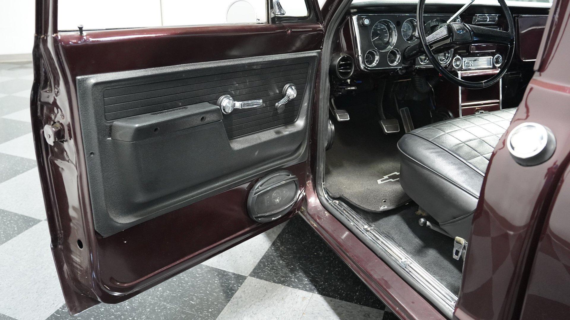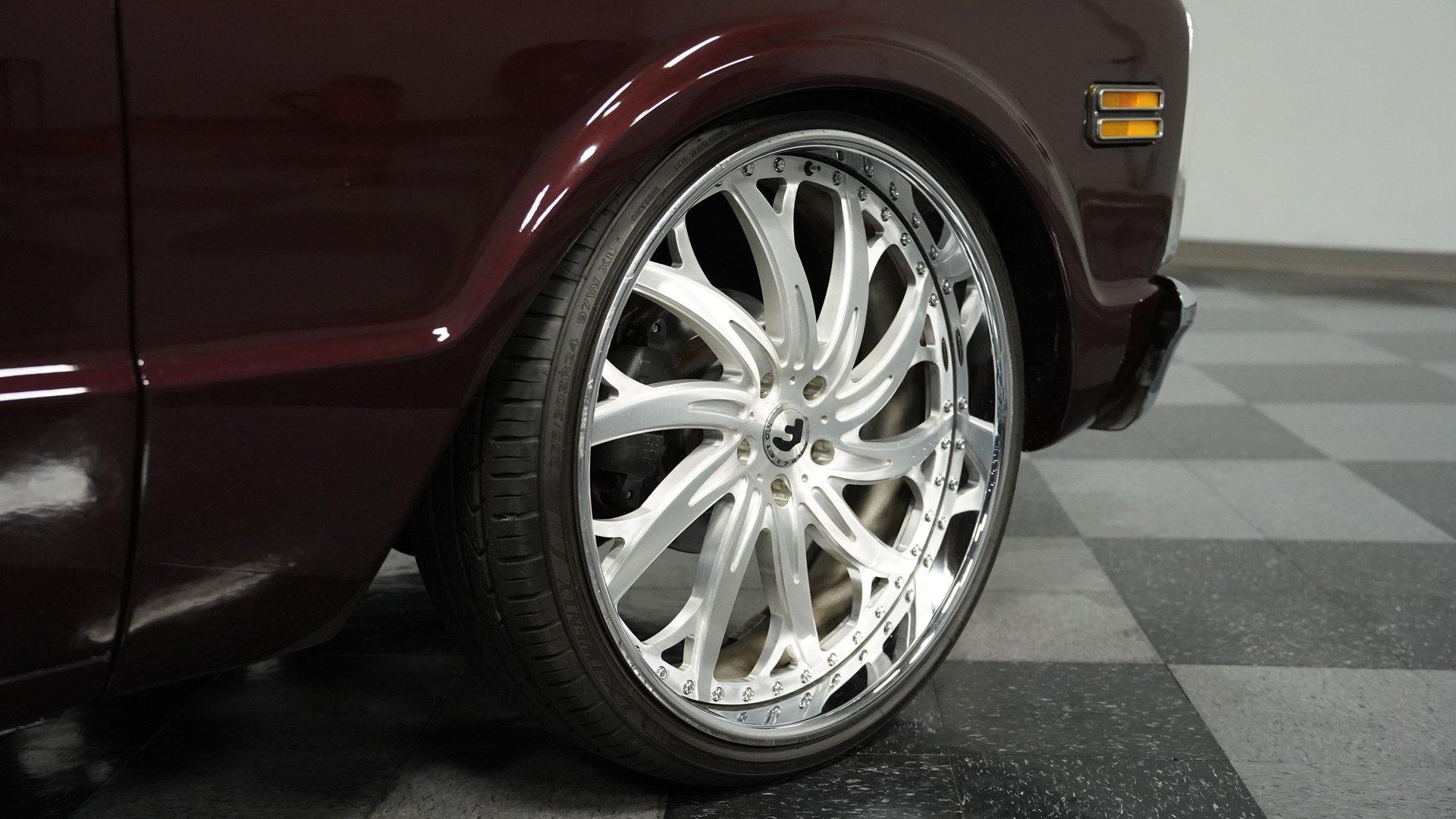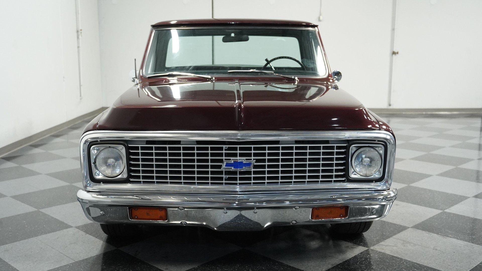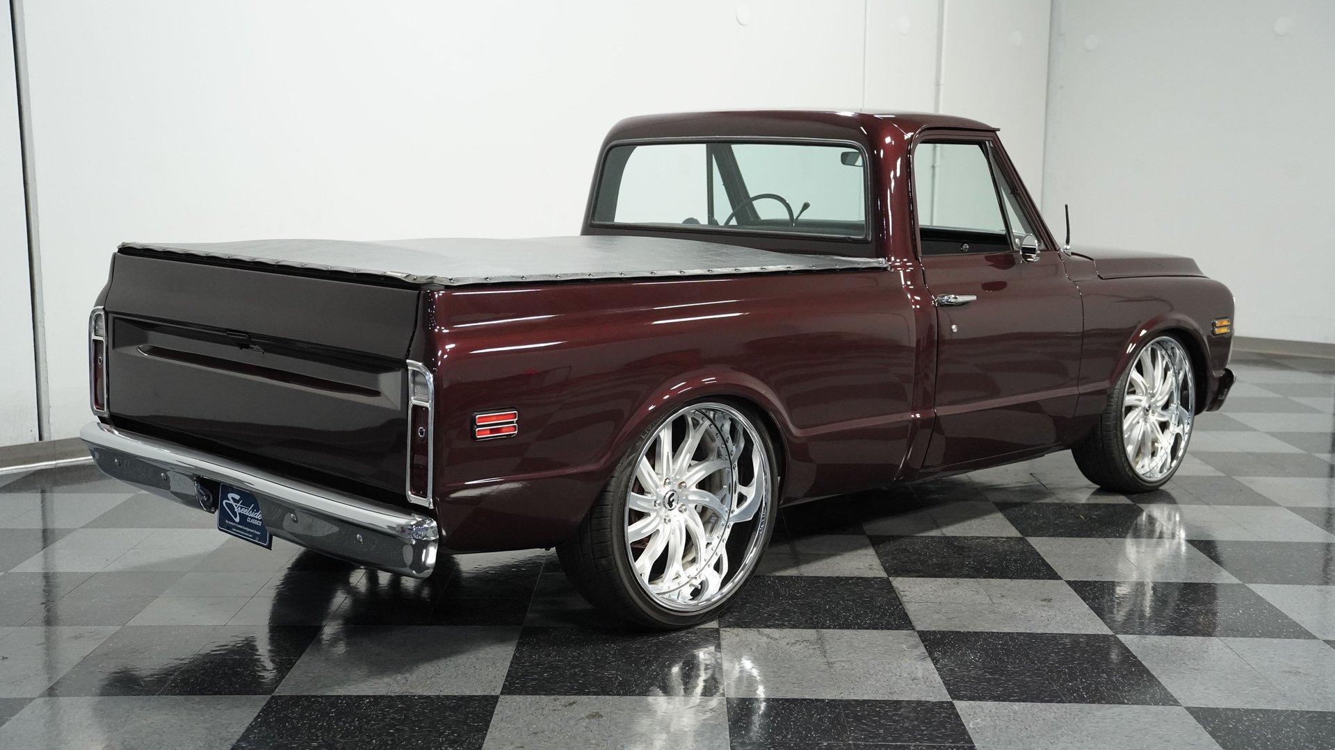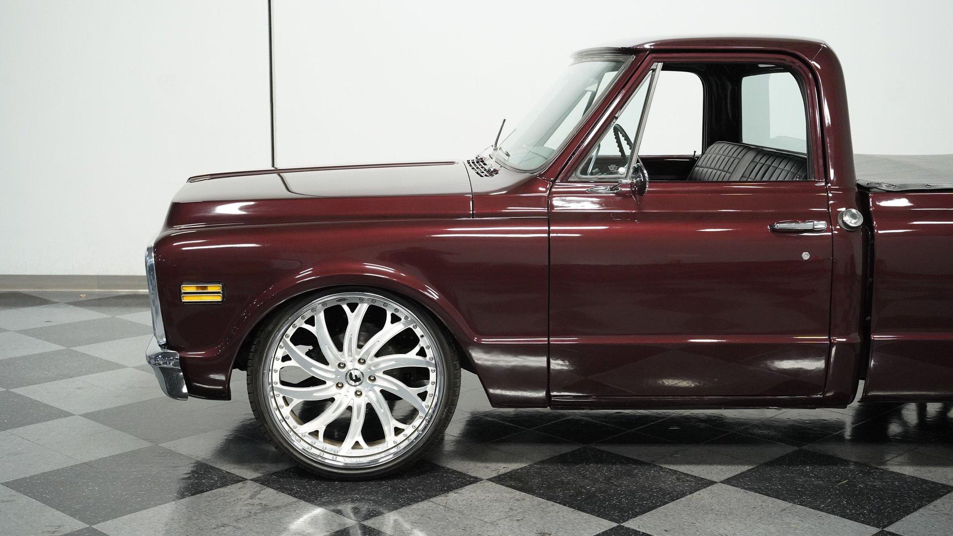 Chevrolet trucks produced between 1967 and 1972 are extremely popular with truck enthusiasts, and one look at this clean 1972 Chevrolet C10 truck explains why. Chevy made many different versions of these trucks, but most sought after today is the model featured here: the C/10 Fleetside short bed with a large back window. Never abused or heavily altered, this classic C/10 has thoughtful upgrades done in just the right areas to create a great looking truck that is still practical and enjoyable to drive. Finished brilliantly in Wild Cheery paint over a straight and solid body, subtle touches such as a soft tonneau bed cover, shaved emblems and side trim and custom headlights give this classic truck a very smooth and clean appearance. A set of 24-inch polished Forgiato wheels wrapped with Lionhart H-Five performance tires staggered 255/30ZR24 front and 295/30ZR24 rear achieve just the right stance. HIGHLIGHTS: 5.3-Litre LS Vortech V8 Engine 4L60E 4-Speed Automatic Transmission Headers 12-Bolt Rear End Power Front Disc Brakes Tubular Front Control Arms QA1 Coil Overs 24-Inch Forgiato Wheels Dual Exhaust Dakota Digital Gauges Custom Console Modern Air Conditioning Pioneer Stereo Smooth Tailgate Wild Cheery Paint Tonneau Bed Cover The cab features a black interior with a comfortable custom-upholstered seat and a custom color coordinated center console. Other interior amenities include cold modern air conditioning, a stock steering wheel, quality Dakota Digital dash gauges, bowtie logo floormats and a Pioneer AM/FM/CD/AUX/Bluetooth stereo with four 6x9 Pioneer speakers provide music for cruising. Power and performance are provided by a modern, smooth-running and powerful 5.3-liter LS Vortec V8 engine paired with a 4L60E 4-speed automatic transmission. The detailed engine bay is super-clean and looks great. Power steering and power front disc brakes add to the driving experience, as do tubular front control arms, QA-1 adjustable coil overs and exhaust headers that rumble through dual mufflers. This classic 1972 Chevy C/10 offers style, comfort and drivability that is hard to beat. Call today!