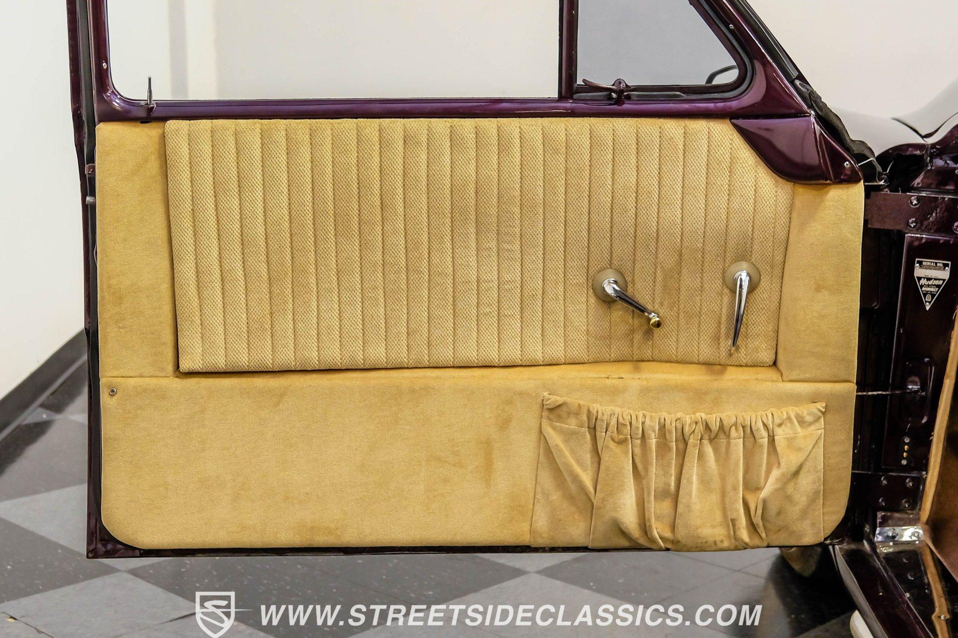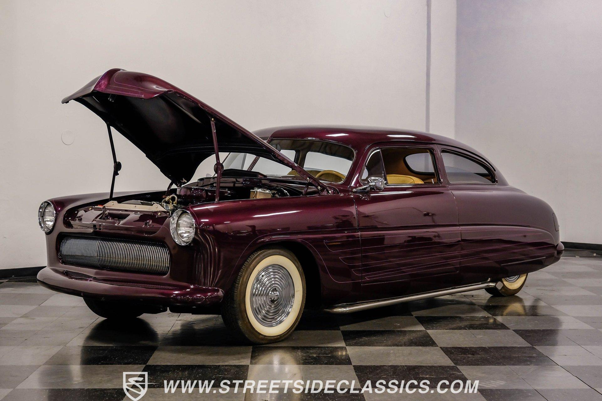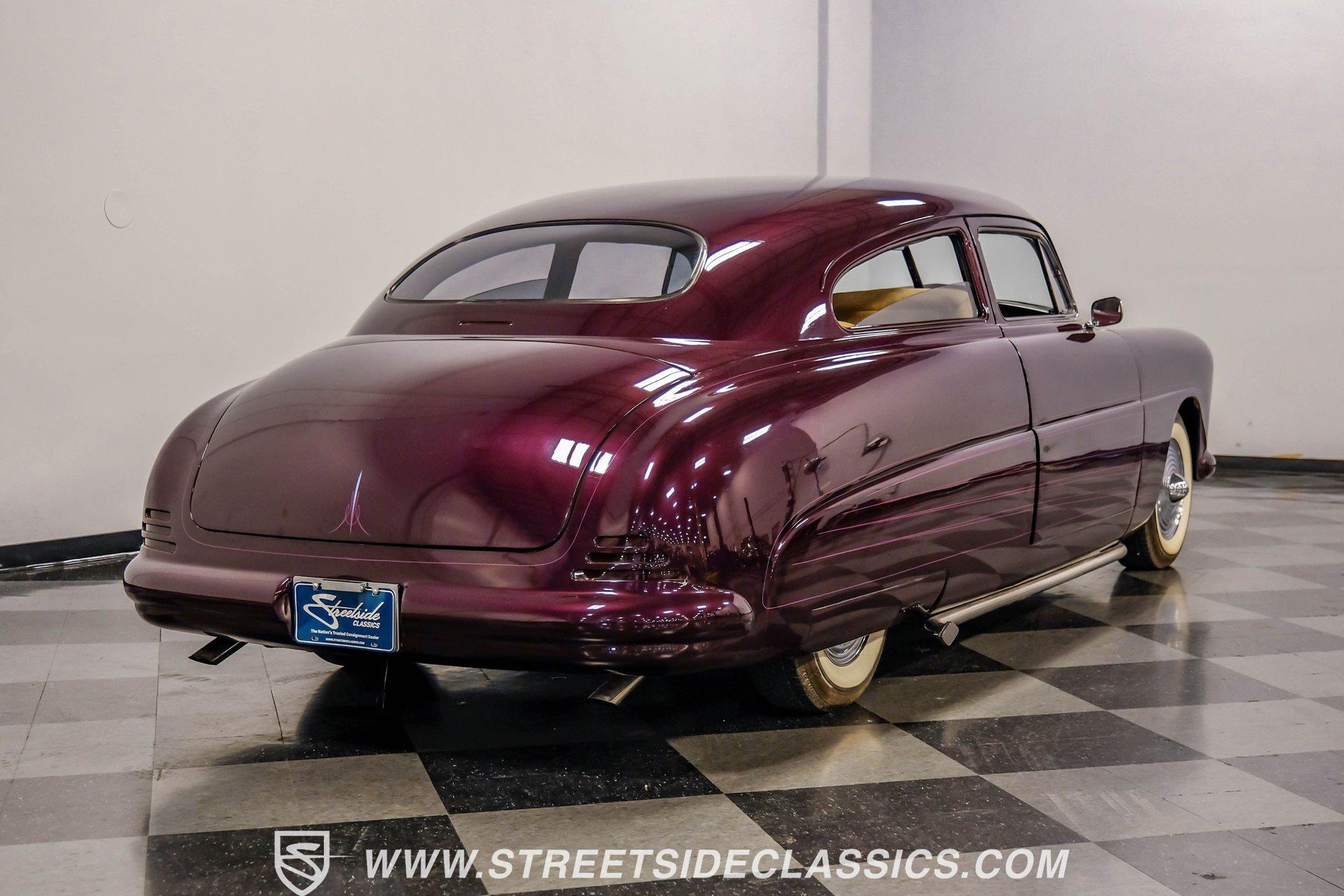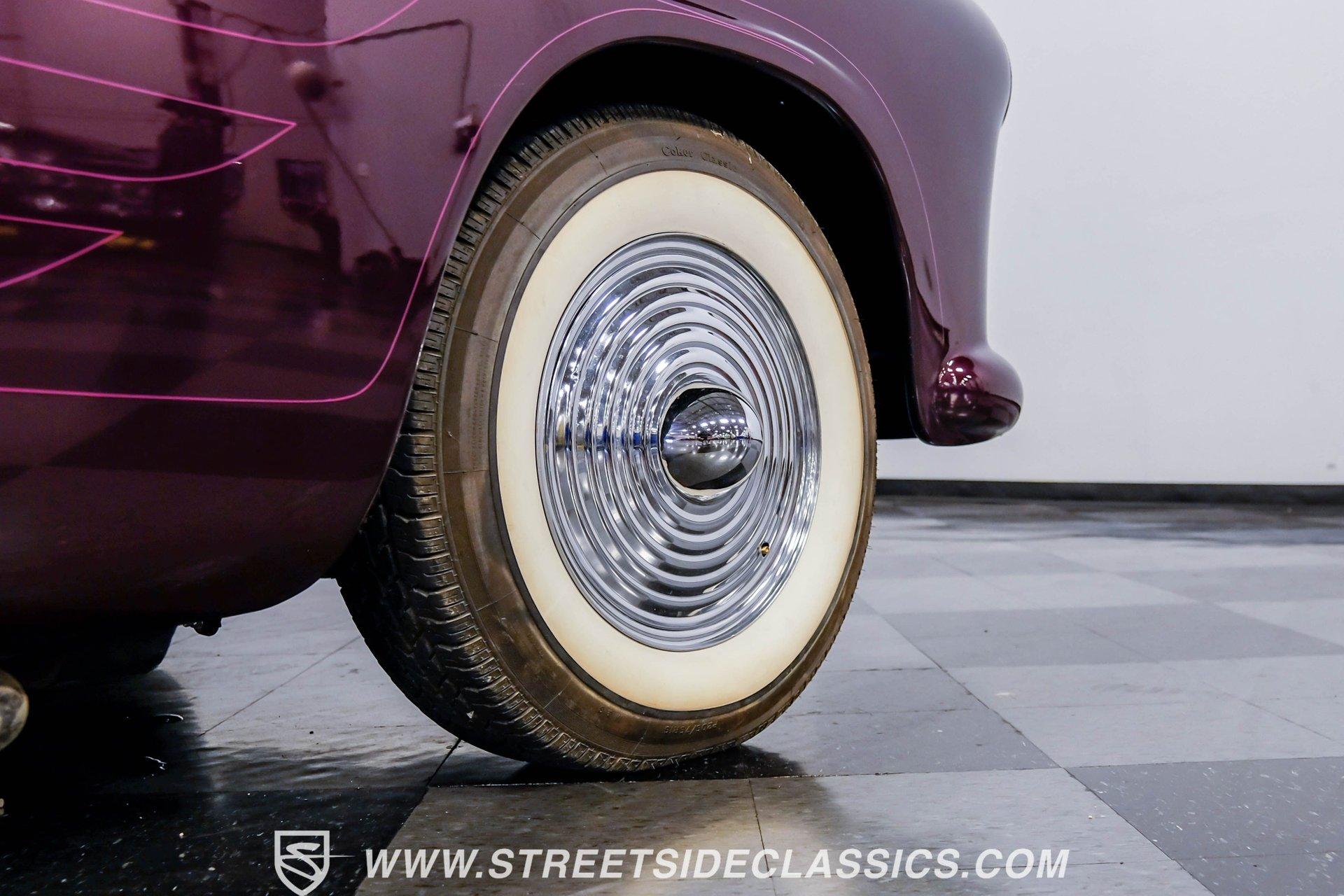 This 1949 Hudson Super 6 Brougham get's the full Lead Sled treatment resulting in extensive bodywork that transforms it original profile into an even sleeker appearance. Covered in PPG's Huckleberry (dark purple) paint with accenting pinstripes, the metalwork includes frenched headlights, a 1957 Buick grille, front and rear roll pans, and shaved hood, trunk, and door handles with electric openers. Custom tail lights complete the transformed exterior, while 15" wheels wrapped in 205/75R15 Coker Classic tires provide the proper stance. Inside, the tan cloth interior combines custom tweed upholstery with practical comfort throughout the cabin. A split bench with power driver seat combines with custom door panels and a suede headliner, while the painted dash houses VDO gauges which complement the overall color scheme. Pioneer AM/FM/CD player with auxiliary input and remote control handles the entertainment, while the Lokar floor shifter manages gear changes and air conditioning keeps things comfortable during warmer drives. Power comes from a transplanted 472 cubic inch Cadillac V8 engine paired with a TH400 3-speed automatic transmission. The Edelbrock 4-barrel carburetor feeds the V8, while chrome valve covers and a painted vintage Cadillac breather dress up the engine bay. An aluminum radiator handles cooling duties, and dual exhaust with aftermarket mufflers provides the soundtrack. Power steering makes maneuvering easy and power drum brakes front and rear handle stopping duties, with power assist for easier pedal effort. Coil spring front suspension with shocks and sway bar teams with a solid rear axle featuring leaf springs and shocks. HIGHLIGHTS: 472 Cubic Inch Cadillac V8 Engine TH400 3-Speed Automatic Transmission Edelbrock 4-Barrel Carburetor Aluminum Radiator Dual Exhaust with Aftermarket Mufflers Power Steering Power Drum Brakes Ford 8" Rear Axle PPG Huckleberry Paint with Pinstriping Frenched Headlights 1957 Buick Grille Front and Rear Roll Pans Shaved Hood, Trunk, and Door Handles Electric Door and Trunk Openers 15" Wheels with 205/75R15 Coker Classic Tires Tan Custom Cloth Interior Power Driver's Seat VDO Gauges Pioneer AM/FM/CD Player with Auxiliary Input and Remote Air Conditioning Restoration Photos Custom lead sled builds like this 1949 Hudson deliver serious street appeal with their extensive bodywork and modern drivetrain upgrades. The 472 Cadillac V8 provides reliable power, while the custom interior and exterior modifications create a unique ride that stands apart from typical restorations. Call today!