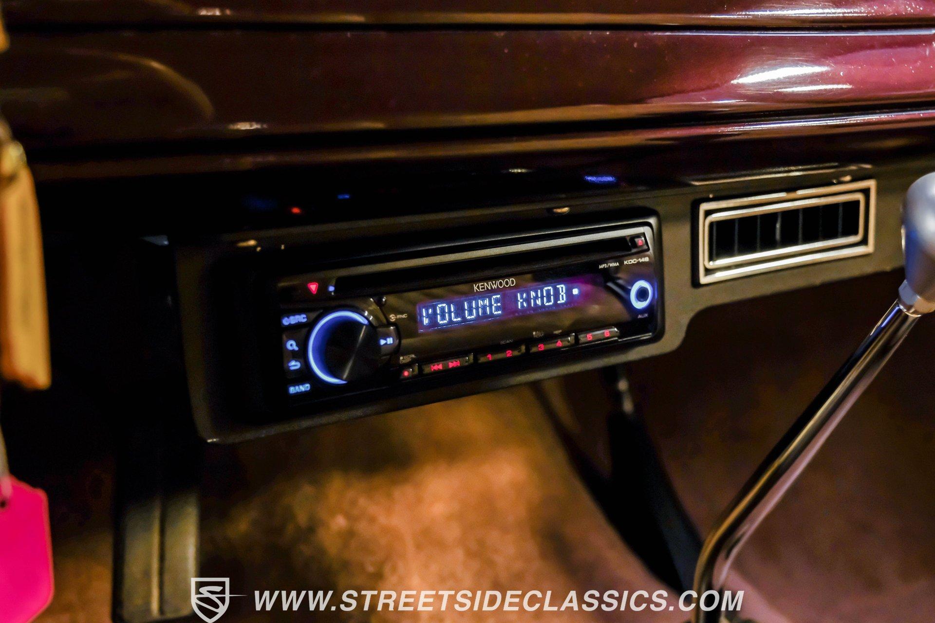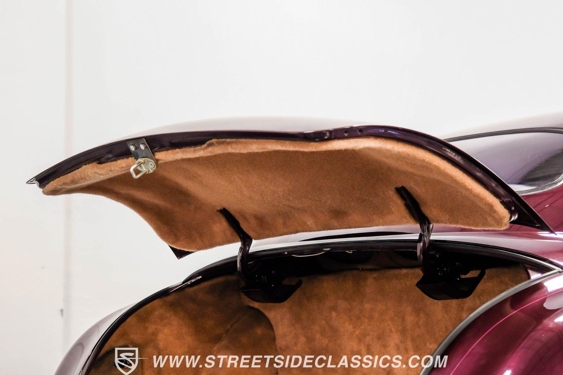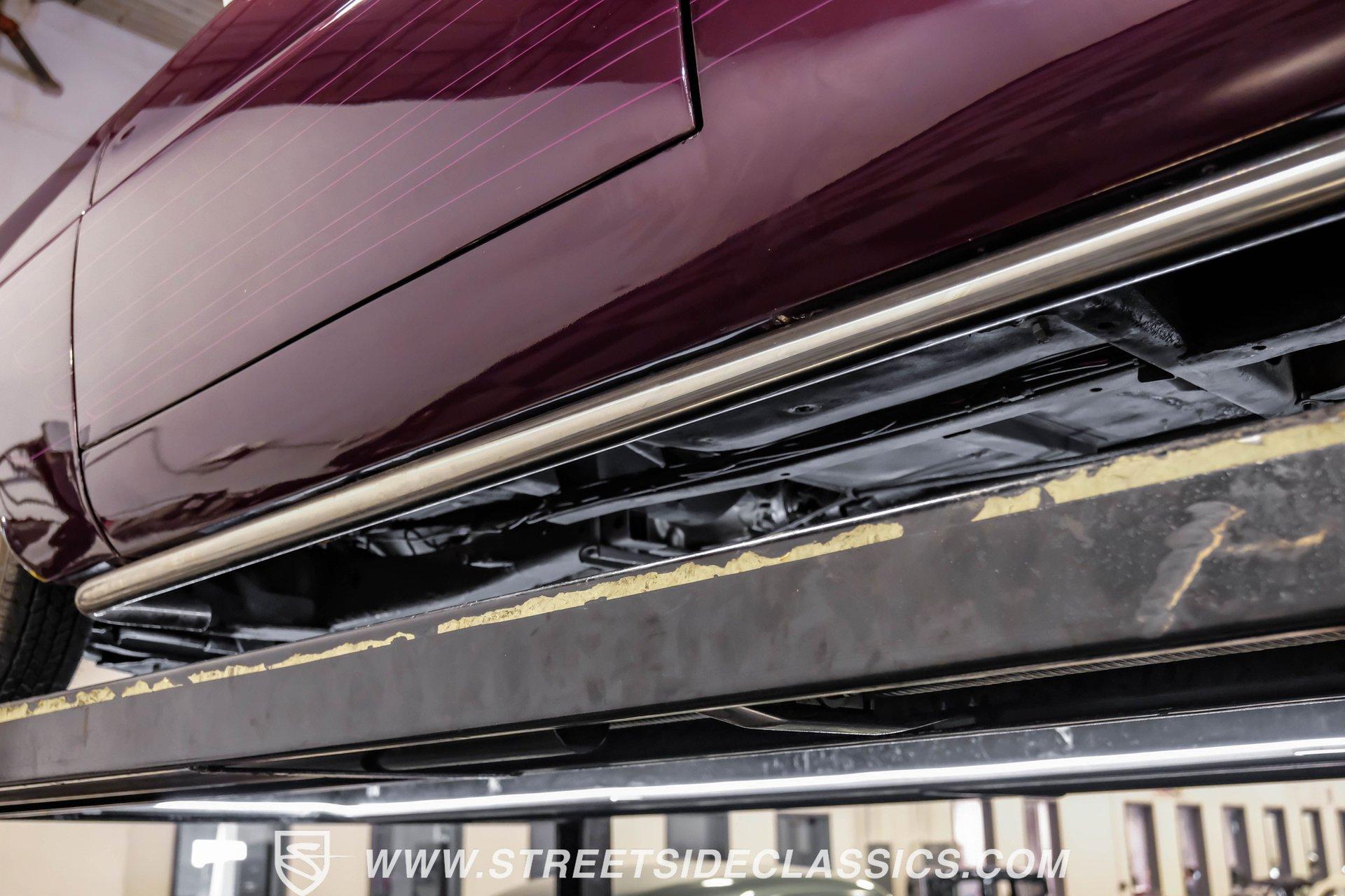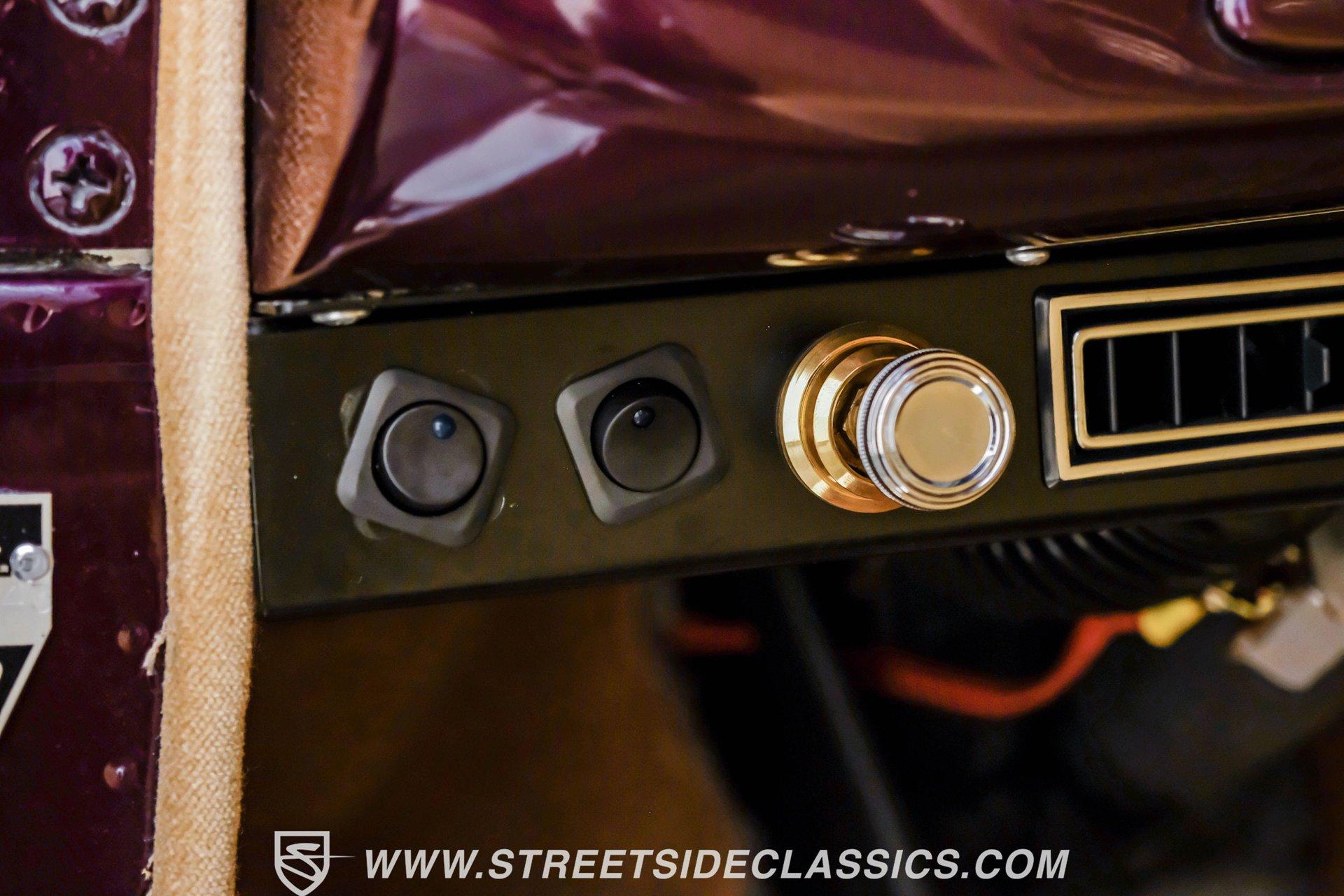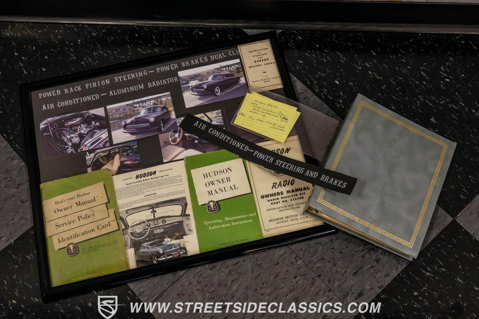 This 1949 Hudson Super 6 Brougham get's the full Lead Sled treatment resulting in extensive bodywork that transforms it original profile into an even sleeker appearance. Covered in PPG's Huckleberry (dark purple) paint with accenting pinstripes, the metalwork includes frenched headlights, a 1957 Buick grille, front and rear roll pans, and shaved hood, trunk, and door handles with electric openers. Custom tail lights complete the transformed exterior, while 15" wheels wrapped in 205/75R15 Coker Classic tires provide the proper stance. Inside, the tan cloth interior combines custom tweed upholstery with practical comfort throughout the cabin. A split bench with power driver seat combines with custom door panels and a suede headliner, while the painted dash houses VDO gauges which complement the overall color scheme. Pioneer AM/FM/CD player with auxiliary input and remote control handles the entertainment, while the Lokar floor shifter manages gear changes and air conditioning keeps things comfortable during warmer drives. Power comes from a transplanted 472 cubic inch Cadillac V8 engine paired with a TH400 3-speed automatic transmission. The Edelbrock 4-barrel carburetor feeds the V8, while chrome valve covers and a painted vintage Cadillac breather dress up the engine bay. An aluminum radiator handles cooling duties, and dual exhaust with aftermarket mufflers provides the soundtrack. Power steering makes maneuvering easy and power drum brakes front and rear handle stopping duties, with power assist for easier pedal effort. Coil spring front suspension with shocks and sway bar teams with a solid rear axle featuring leaf springs and shocks. HIGHLIGHTS: 472 Cubic Inch Cadillac V8 Engine TH400 3-Speed Automatic Transmission Edelbrock 4-Barrel Carburetor Aluminum Radiator Dual Exhaust with Aftermarket Mufflers Power Steering Power Drum Brakes Ford 8" Rear Axle PPG Huckleberry Paint with Pinstriping Frenched Headlights 1957 Buick Grille Front and Rear Roll Pans Shaved Hood, Trunk, and Door Handles Electric Door and Trunk Openers 15" Wheels with 205/75R15 Coker Classic Tires Tan Custom Cloth Interior Power Driver's Seat VDO Gauges Pioneer AM/FM/CD Player with Auxiliary Input and Remote Air Conditioning Restoration Photos Custom lead sled builds like this 1949 Hudson deliver serious street appeal with their extensive bodywork and modern drivetrain upgrades. The 472 Cadillac V8 provides reliable power, while the custom interior and exterior modifications create a unique ride that stands apart from typical restorations. Call today!