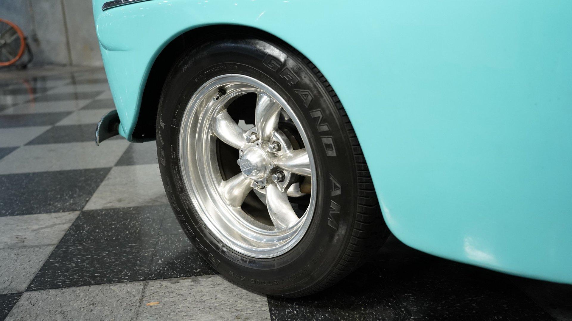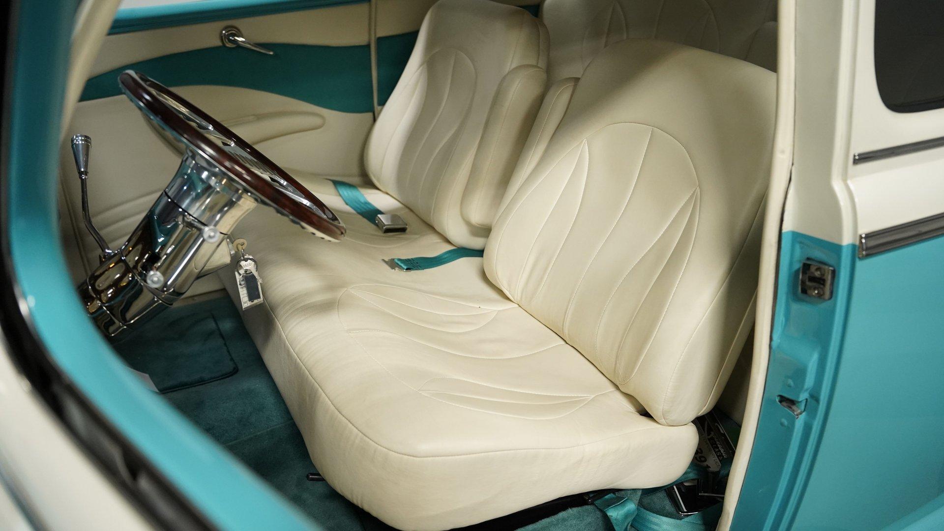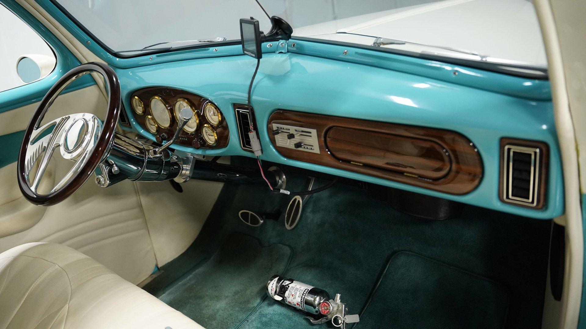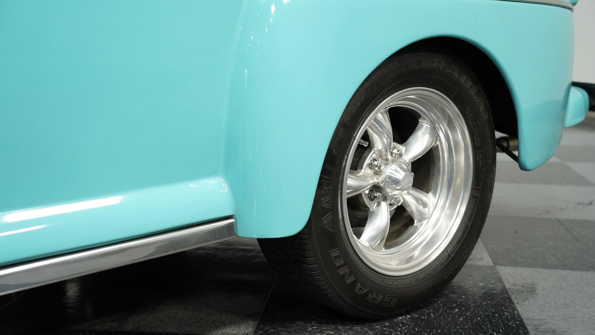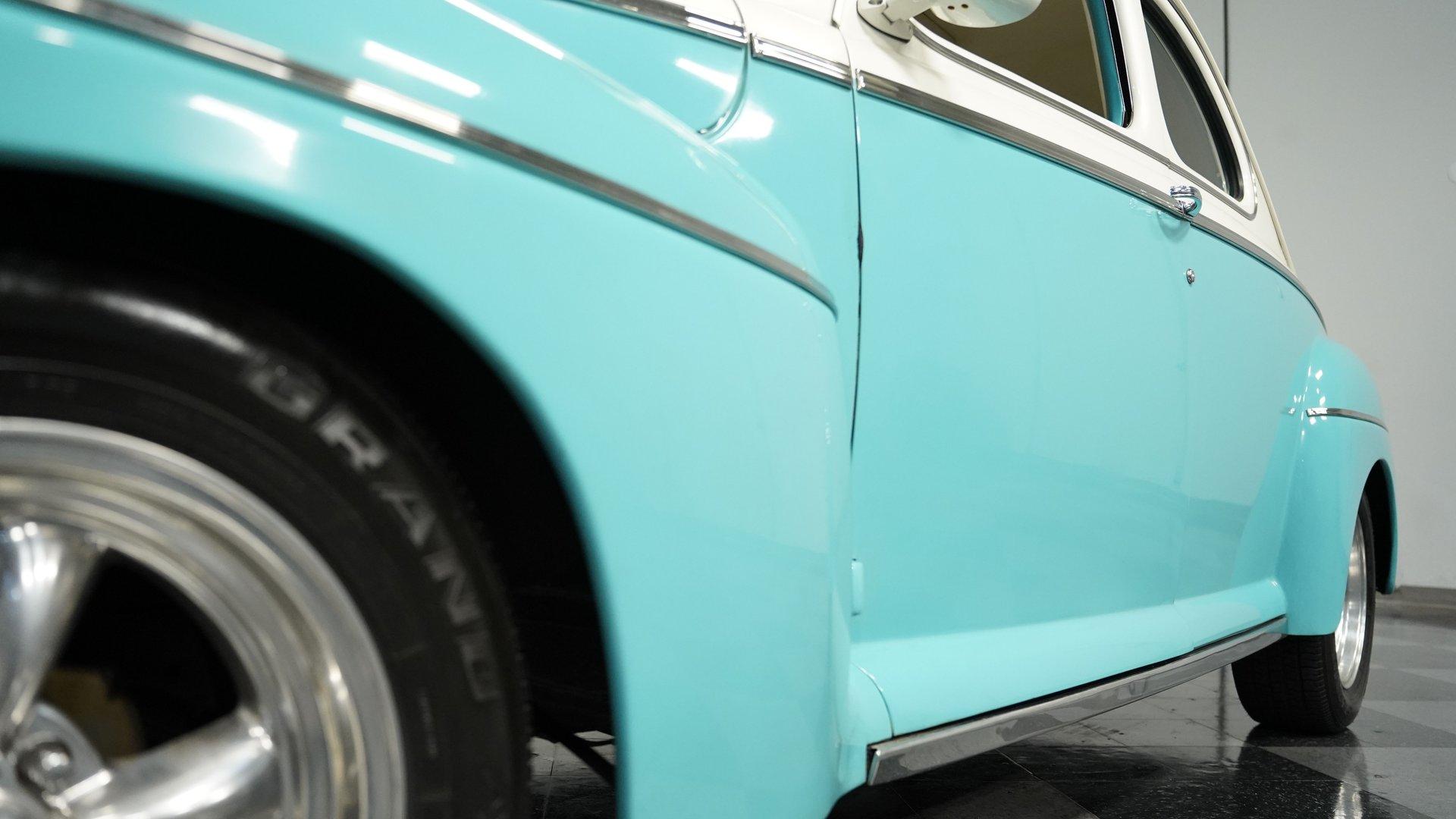 Right out of Detroit's first post-war assembly line, this 1946 Ford Custom Coupe has been transformed into a street rod that knows how to get down to business. The turquoise and white two-tone combination gives it that classic hot rod vibe while tri-bar clear headlights cut through the darkness with modern efficiency. Those sport mirrors and V-butt windshield aren't just for looks - they're functional upgrades that separate this ride from the trailer queens. Single-piece door glass keeps the lines clean by ditching those old side vents. Sitting on legendary 16" American Racing Torq Thrust wheels wrapped in 225/60R16 front and meaty 255/60R16 rear rubber, this coupe has the stance that says it's built to run. Dual exhaust tips finish off the package with authority. Crack open the doors and you'll find a cream and turquoise interior that screams vintage hot rod cool without sacrificing comfort. Split-bench leather seating keeps things period-correct while giving you a place to settle in for some serious road time. The column shifter maintains that traditional Ford feel, but don't think this ride is stuck in the past. Air conditioning keeps you cool when the asphalt gets hot, power steering makes threading through traffic effortless, and power windows mean no cranking handles here. That AM/FM single CD player provides the soundtrack for your adventures, while the tilt wheel lets you dial in your perfect driving position. What really makes this Ford move is the 350 small block V8 breathing through electronic fuel injection courtesy of a FAST system. Fresh aluminum heads from March 2025 with cooling system upgrades mean this motor is ready to run hard and stay cool doing it. The TH350 3-speed automatic handles the power transfer duties with smooth, reliable shifts every time. That 8" rear axle puts the power to the pavement while A-arm front suspension and leaf spring rear setup keep everything planted and predictable. Power disc brakes up front provide the stopping power you need, and the dual exhaust system with Dynomax mufflers gives it that perfect hot rod rumble. Electronic fans keep temps in check so you can focus on driving instead of watching gauges. HIGHLIGHTS: 350 V8 Engine Electronic Fuel Injection (FAST System) 3 Speed Automatic TH350 Transmission New Aluminum Heads (3/2025) Edelbrock Manifold Electronic Cooling Fans A-Arm Front Suspension Leaf Springs with Shocks Rear Suspension 8" Rear Axle Power Disc Front Brakes Dual Exhaust with Dynomax Mufflers Turquoise and White Two-Tone Paint 16" American Racing Torq Thrust Wheels 225/60R16 Front, 255/60R16 Rear Tires Tri-Bar Clear Headlights Sport Mirrors V-Butt Windshield Cream and Turquoise Interior with Split-Bench Leather Seats Column Shifter Air Conditioning Power Steering Power Windows Tilt Wheel AM/FM Single CD Player Service Records and Receipts This 1946 Ford Custom Coupe brings together old-school cool with modern reliability - electronic fuel injection that starts every time, leather comfort, and documented upgrades that prove someone invested serious money in doing things right. Call today!