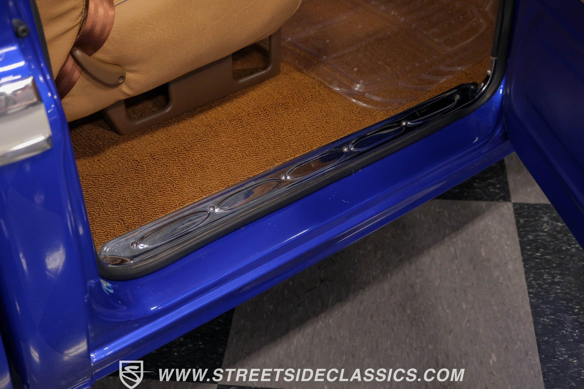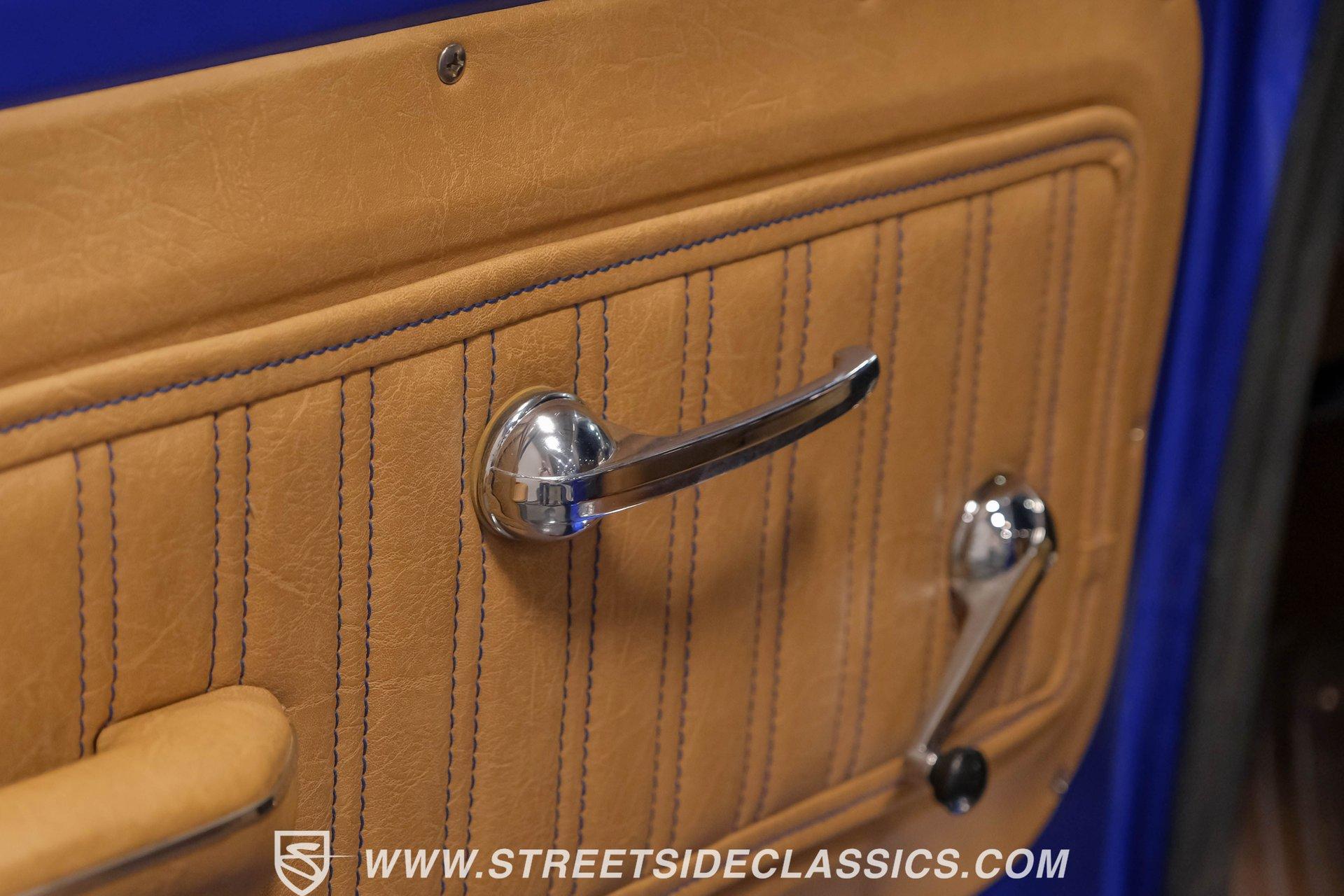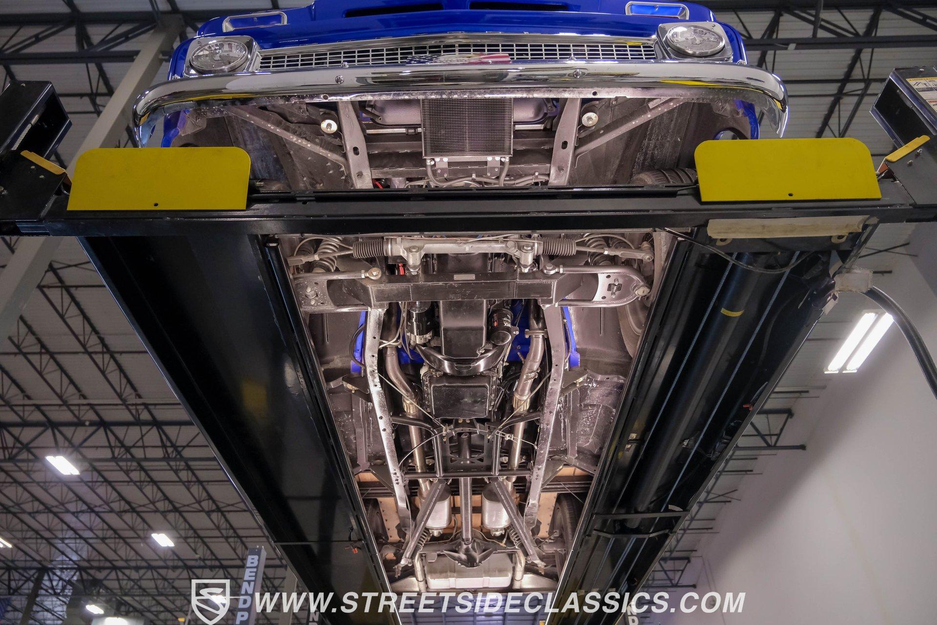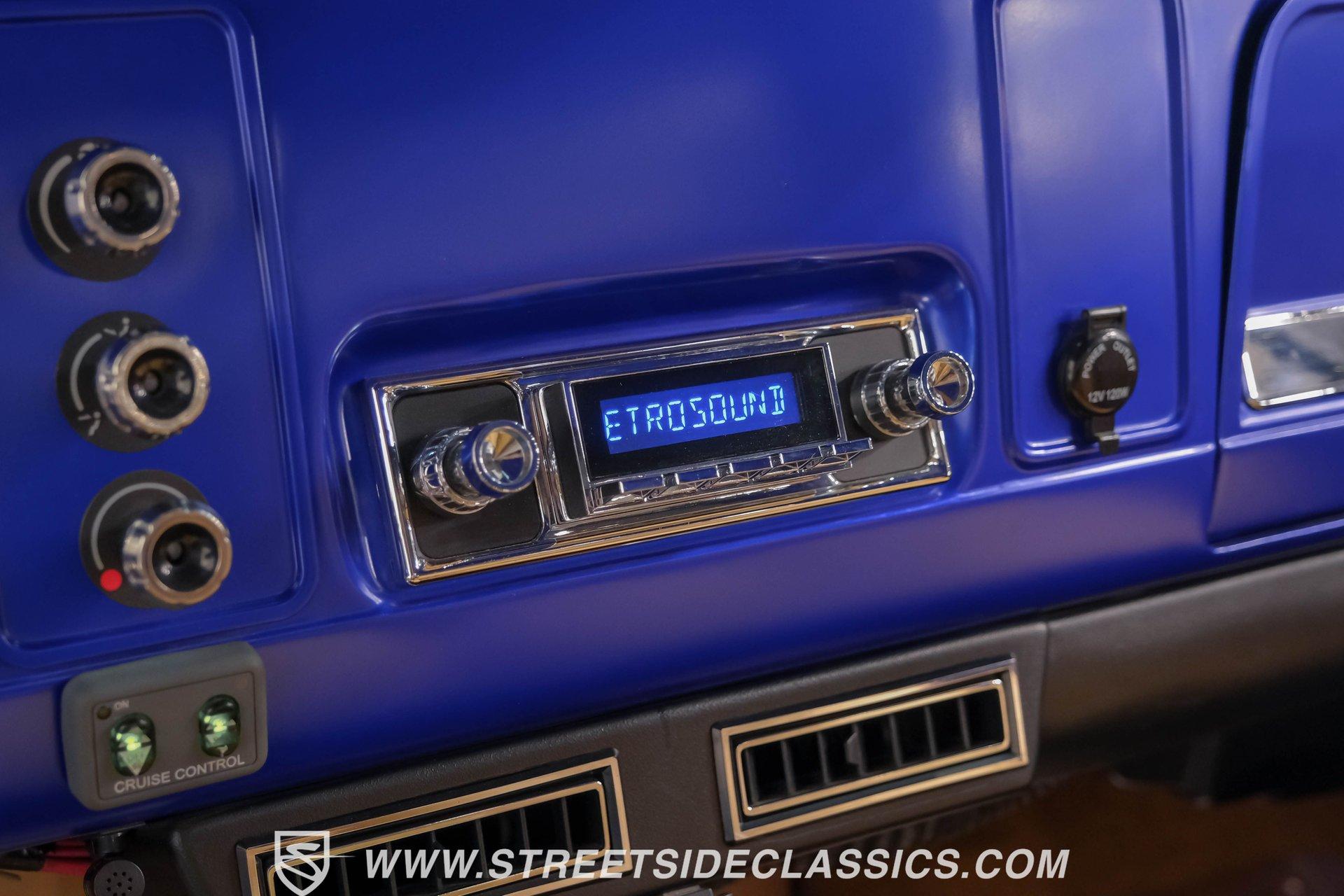 Big back windows make all the difference on classic trucks, and that's exactly what you'll find on this 1966 Chevrolet C10 Restomod. Gravity Blue Pearl with Pearl White accents creates a two-tone combination that looks fantastic against the clean lines of this pickup. Wood bed flooring adds natural warmth to the exterior package while chrome mirrors provide additional visual detail. The quality of the workmanship is evident throughout - excellent panel gaps, no dents or dings, and good glass all around. The overall look is completed by 18" U.S. Mags wheels and 255/55R18 tires that give this C10 the perfect stance. Inside, tan vinyl covers a custom 70/30 bench seat that offers both style and function. Digital gauges provide clear information at a glance, while the wood grain steering wheel mounted on a tilt column gives the driver optimal control. For added convenience, a flip-down center console is present along with clear floor mats that maintain the clean appearance of the interior. Modern upgrades include a Bluetooth radio for your favorite music, heated seats for cold mornings, and cruise control for long drives. The column shifter keeps the cabin layout true to the truck's heritage while adding modern comfort. Powering this C10 is a 383 Stroker V8 generating an estimated 480-500 horsepower. The engine utilizes Holley Sniper electronic fuel injection for consistent performance in any condition. A 700R4 4-speed automatic transmission transfers power to a 3.73 limited slip rear end. The suspension has been thoroughly updated with a Mustang II-type front setup featuring tubular A-arms and coilovers, matched with coilovers at the rear and aftermarket trailing arms. Braking is handled by slotted and drilled power disc brakes up front with power discs at the rear. Shorty headers connect to a MagnaFlow dual exhaust system that gives this truck an appropriate sound to match its capabilities. HIGHLIGHTS: 383 Stroker V8 Engine (480-500 hp) 700R4 4-Speed Automatic Transmission Electronic Fuel Injection - Holley Sniper Four Wheel Power Disc Brakes Slotted and Drilled Front Disc Brakes Shorty Headers MagnaFlow Dual Exhaust Mustang II Front Suspension Tubular A-Arms with Coilovers Rear Coilover Suspension Aftermarket Bolt-in Center Frame Bracing Aluminum Radiator Serpentine Belt System Gravity Blue Pearl with Pearl White Accents 18" U.S. Mags Wheels with 255/55R18 Tires Chrome Mirrors Wood Bed Tan Vinyl Interior with 70/30 Heated Bench Seat Digital Gauges Tilt Column Wood Grain Steering Wheel Power Steering Column Shifter Air Conditioning - Vintage Air Bluetooth Radio Cruise Control Flash Drive with Restoration Photos 1,596 Miles Since Build With just 1,596 miles since completion, this C10 offers the perfect blend of classic pickup style and modern drivability. A potent 383 Stroker V8, fully updated suspension, and comfortable interior make for an ideal combination of show and go. Call today!