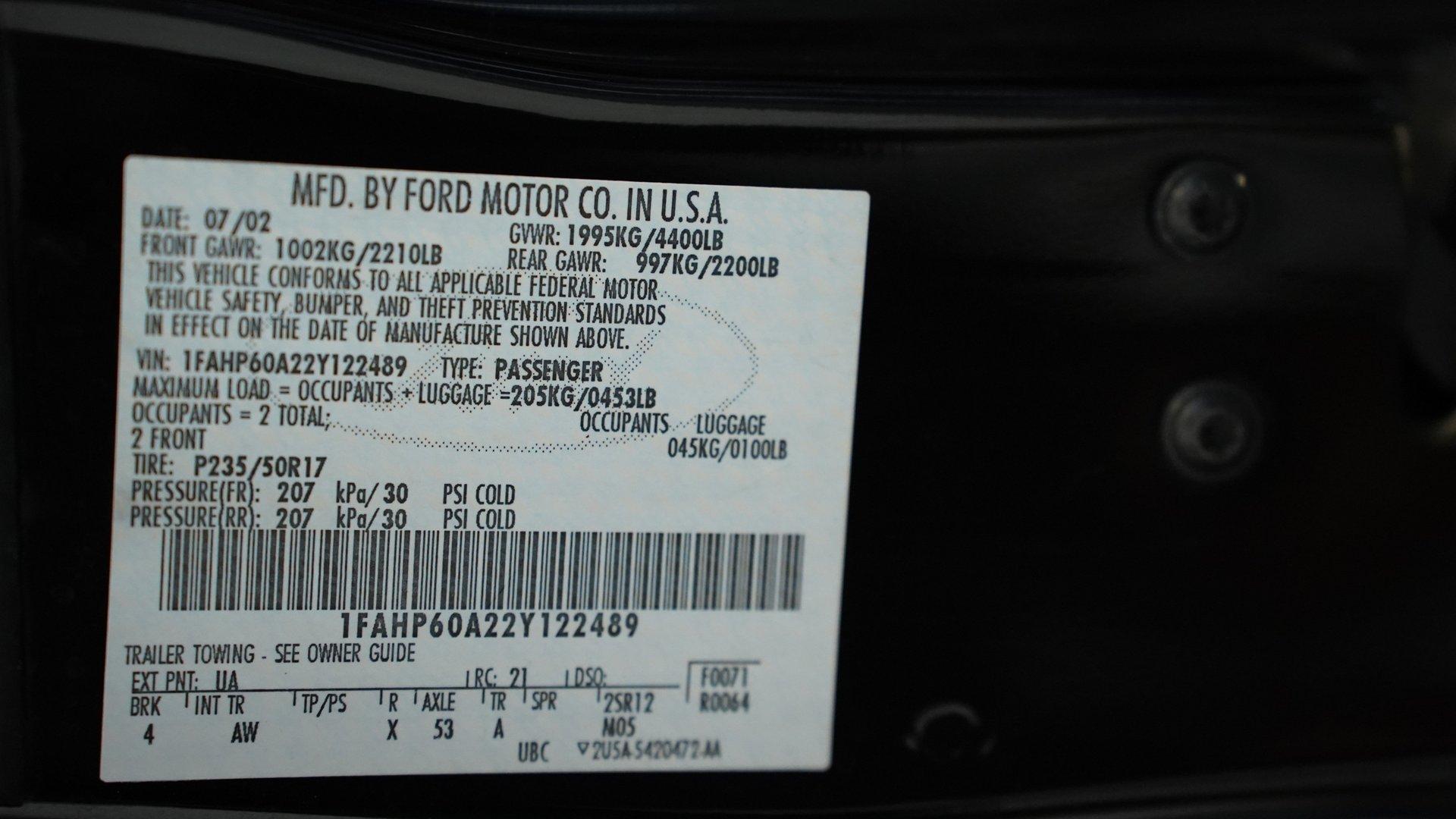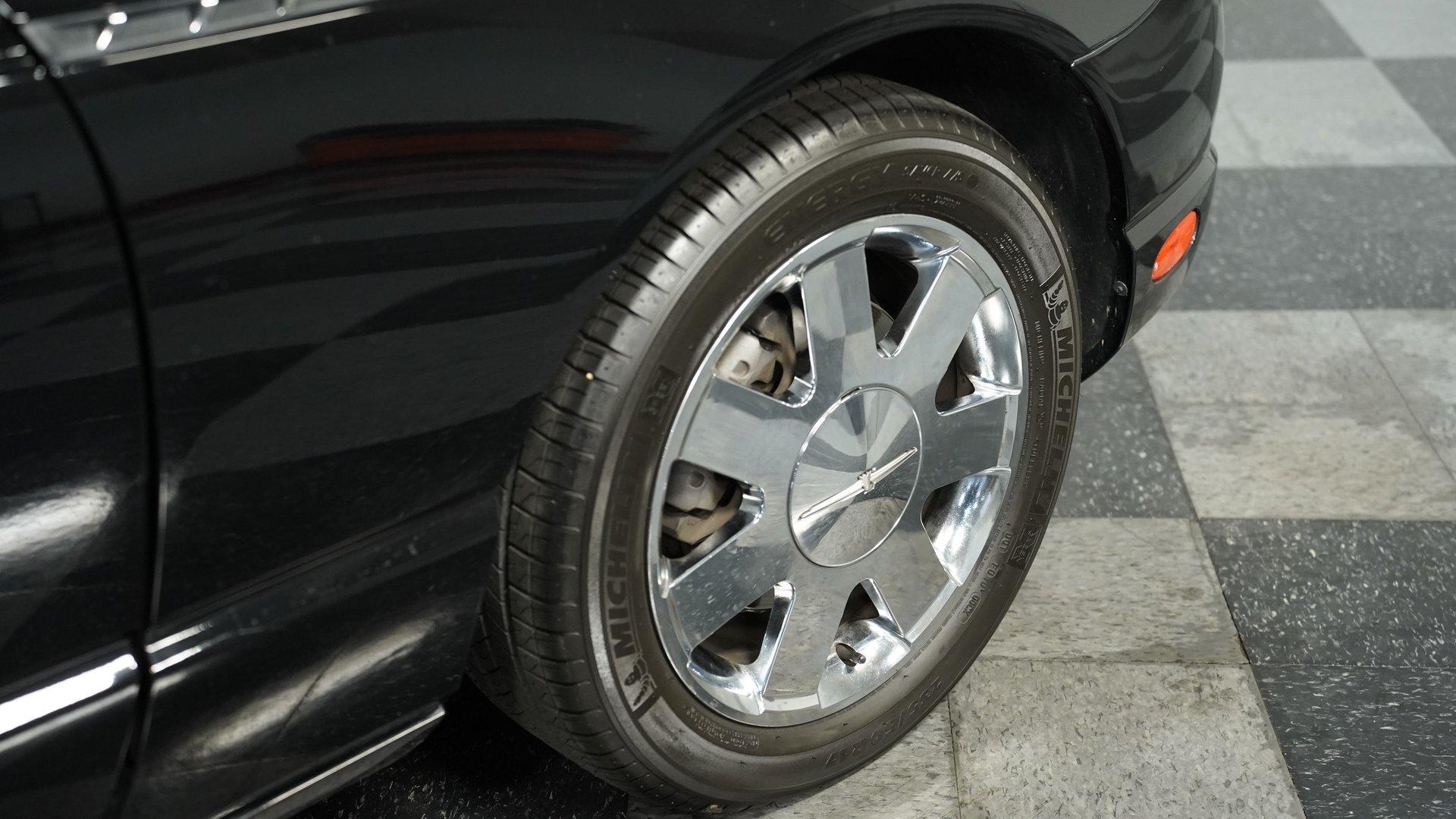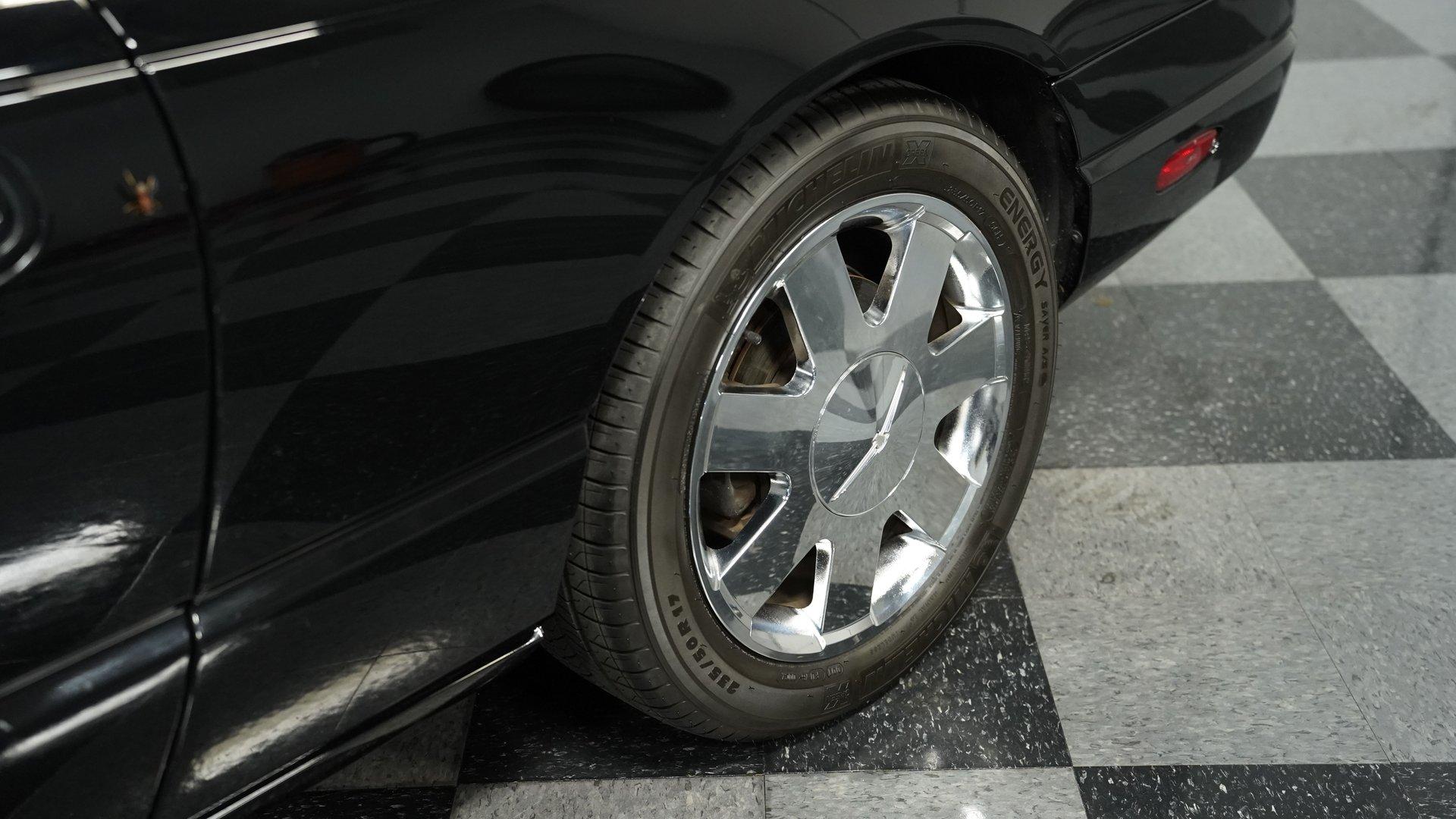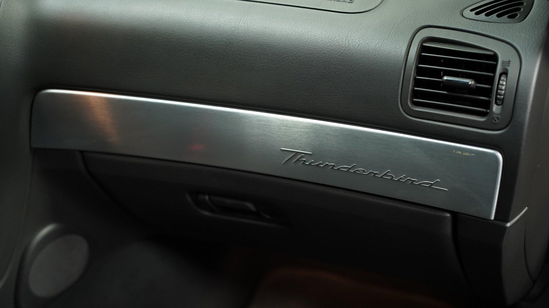 This generation Thunderbird, finished elegantly in Evening Black with a Midnight Black interior, features automatic A/C climate control and heated seats, allowing you to drive comfortably with the top down nearly all year round. This car was created to be a terrific cruiser loaded with power windows, power locks, keyless entry/alarm, dual front airbags, a premium AM/FM/6-CD changer stereo and cruise control. The leather seats feel comfy and have a well-respected style with the kind of use that goes with the low mileage. The power driver's seat gets you in the right position to really see nice details such as the steering wheel's classic turquoise streak in the Thunderbird logo that is coordinated with the needles on the gauges. HIGHLIGHTS: Only 46,503 miles from new One owner since new First year of the last generation of Thunderbirds Fuel-injected DOHC 3.9-liter V8 Automatic transmission Factory stereo with 6-CD changer Air conditioning Heated seats Rare triple black color scheme Removable hardtop and folding soft top While the looks of the car are meant to be retro-cool, the engine bay is a pure modern motor. It is a fuel-injected DOHC 3.9-liter V8 that fires up readily, idles smoothly and delivers plenty of power when you want it, making it the ideal smooth cruiser from day one. You will love using this Thunderbird to drive near or far with its smooth five-speed automatic transmission, power steering, four-wheel disc brakes and fully-independent suspension. This may look like a vintage car, but this 2002 Ford Thunderbird with just 46,503 miles certainly has modern moves. Call today!