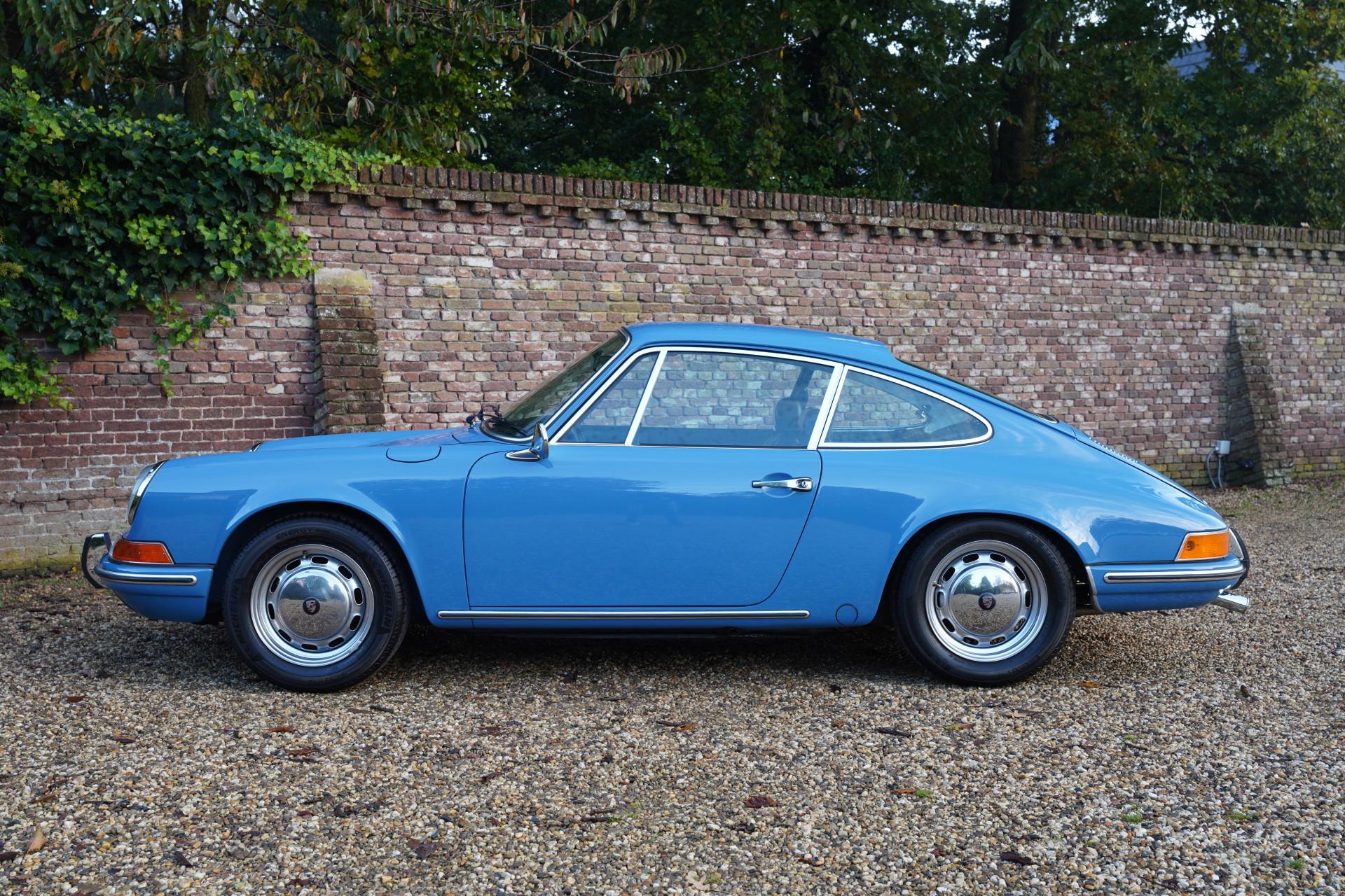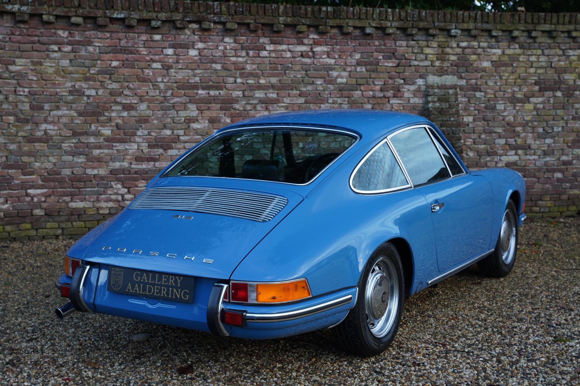The 912 we offer here is one from 1969. The bodywork of this beautiful blue 912 is very neat. The car has been restored and photos of this restoration and renovation are available. As you can see, a thorough approach was chosen, the only correct one if you ask us. The 912 connoisseur will immediately notice when getting in that this car is equipped with the optional extra meters in the dashboard. As standard, the four-cylinder was missing the two outer counters that the 911 does have.
