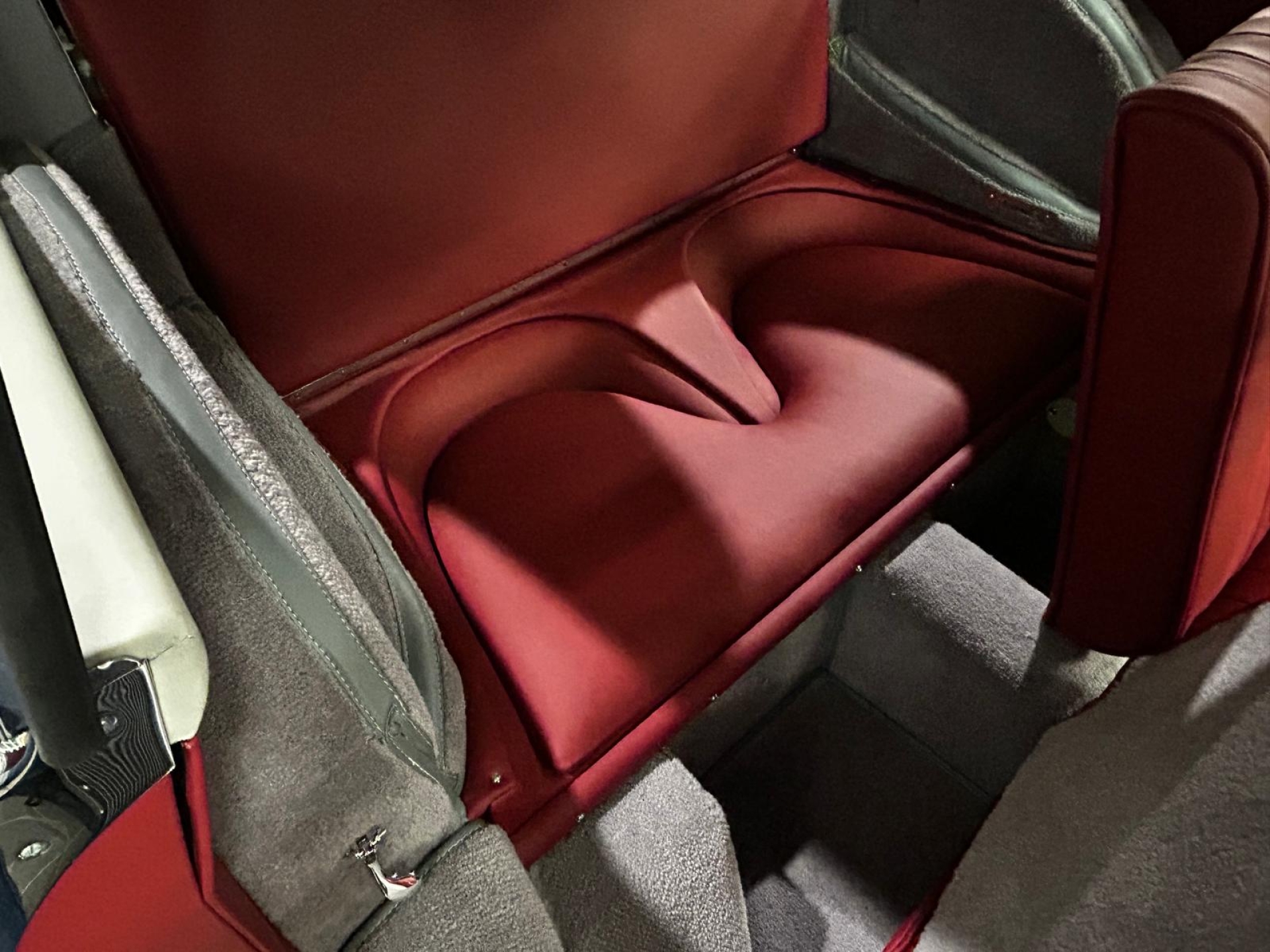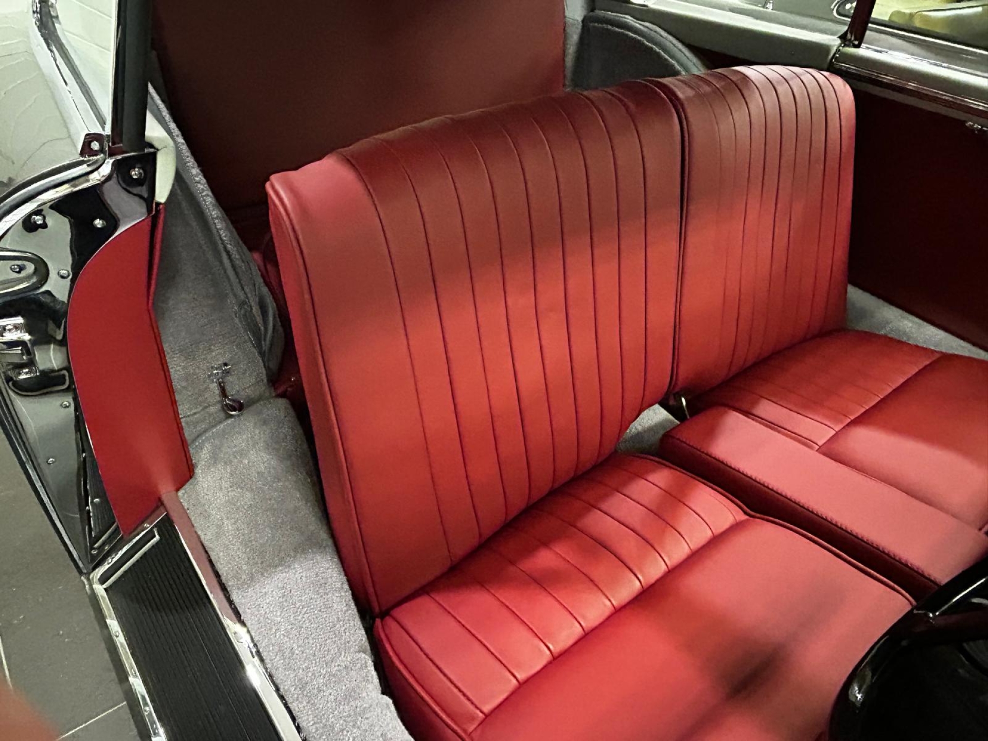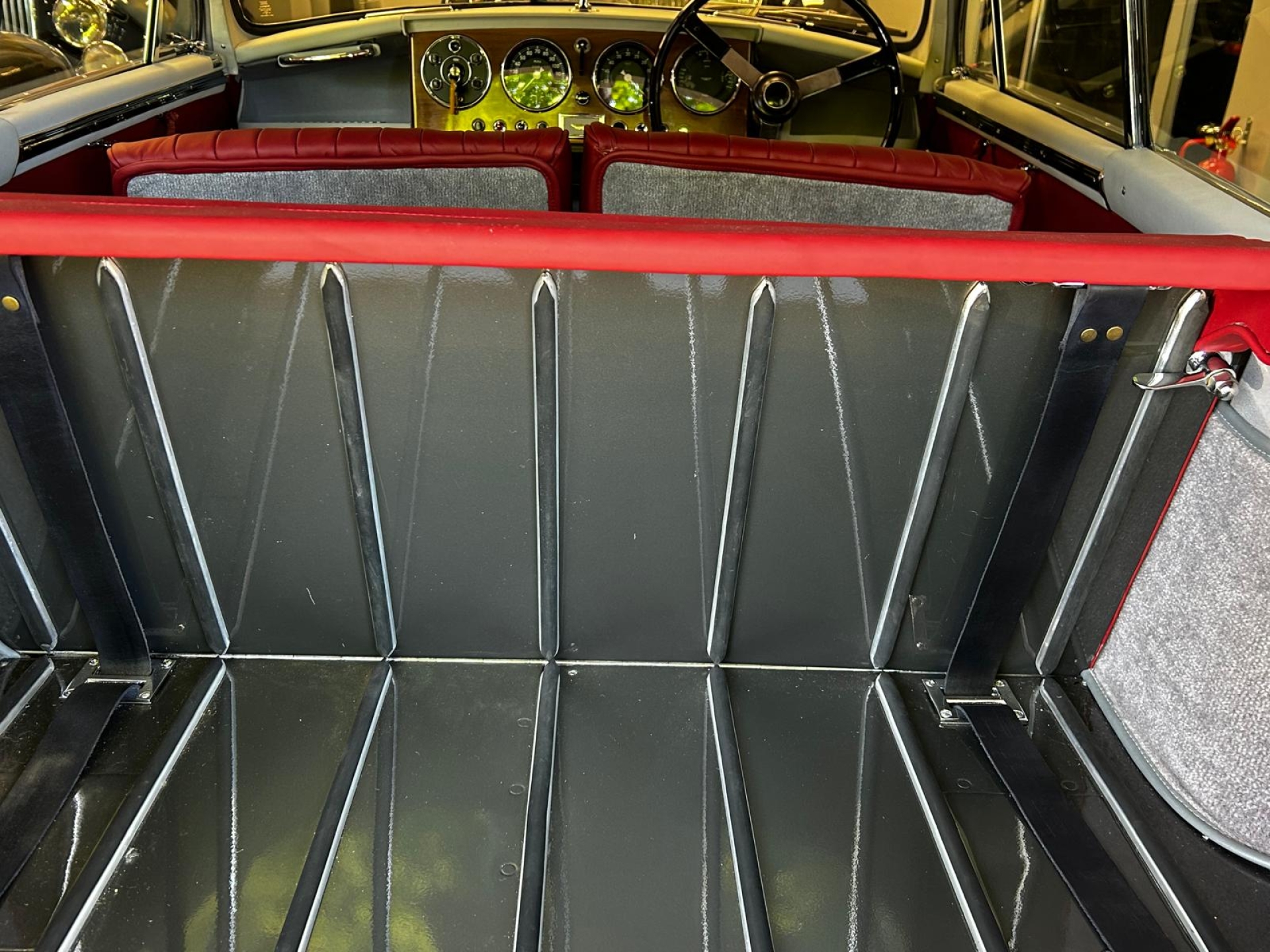 The car was repainted in its original colour of Moonbeam Grey and its interior redone in leather to original specification.