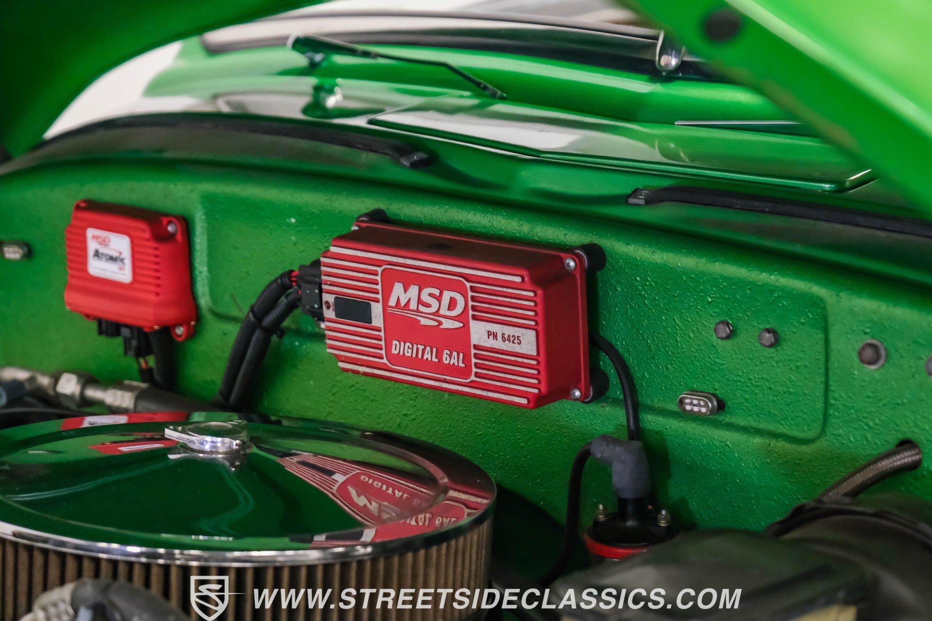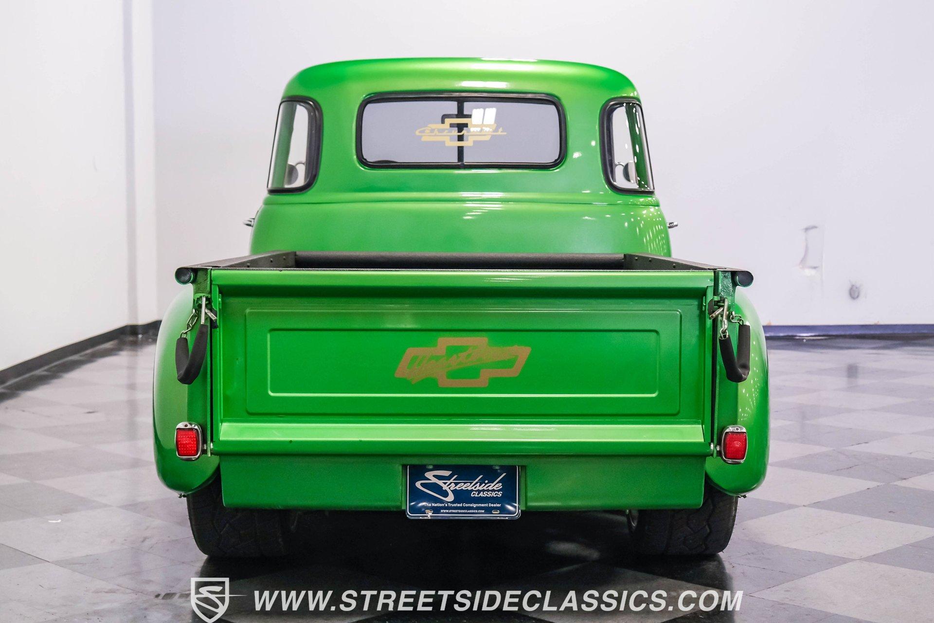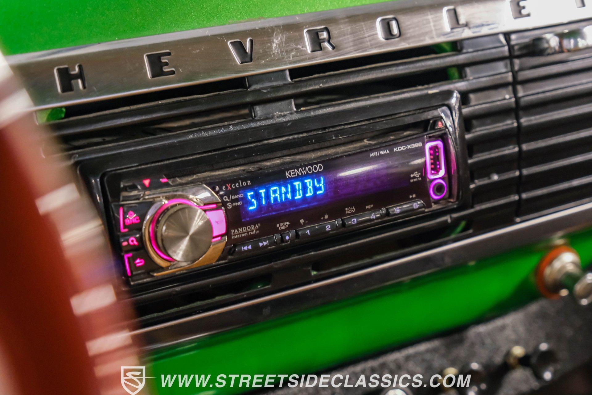 Crafted with precision, this 1950 Chevrolet 3100 5 Window Restomod wears a vibrant Green Metallic finish that accentuates its classic pickup lines. The upgraded stance comes from the muscular 22" American Racing wheels wrapped in 285/35R22 Nitto tires that fill the wheel wells perfectly. The truck's silhouette maintains the iconic 5-window design while the modern touches like custom side exit exhaust add contemporary flair. The bed features a durable liner that adds both protection and utility to this classic hauler. The Carmel interior balances vintage appeal with modern comfort. Supportive bucket seats flanked by a custom center console create an inviting cabin environment. The wood grip steering wheel mounted on a tilt column offers superior control and driving position. Jegs white-faced gauges provide clear readouts of vital information, while the underdash gauge cluster adds a custom touch. The Kenwood AM/FM/CD/MP3/USB head unit delivers quality sound, complemented by air conditioning for comfort in any weather. Powering this classic truck is a potent 350 V8 engine equipped with Atomic EFI by MSD for improved performance and reliability. The 700R4 four-speed automatic transmission transfers power smoothly to the 10-bolt rear end. The truck sits on an S10 frame with coil spring front suspension featuring shocks and a sway bar, while the rear utilizes a solid axle with leaf springs and shocks. The four-wheel power disc brake system provides superior stopping capability compared to the original drums. HIGHLIGHTS: 350 V8 Engine 700R4 4-Speed Automatic Transmission Atomic EFI by MSD Pro Comp Intake Manifold AFR Aluminum Heads Four-Wheel Power Disc Brakes S10 Frame Headers w/ Dual Flowmaster Mufflers Custom Side Exit Exhaust Champion Aluminum Radiator with Electric Fan 10-Bolt Rear Axle Green Metallic Paint 22" American Racing Wheels with 285/35R22 Nitto Tires Bed Liner Carmel Interior with Bucket Seats and Console Wood Grip Steering Wheel on Tilt Column Lokar Floor Shifter Jegs White-Faced Gauges Underdash Gauge Cluster Air Conditioning Power Steering Kenwood AM/FM/CD/MP3/USB Head Unit S10 Chassis This 1950 Chevrolet 3100 combines vintage appeal with modern performance upgrades. From its Green Metallic exterior to the powerful fuel-injected V8 and comfortable custom interior, this restomod pickup delivers an exceptional blend of classic style and contemporary function. Call today!