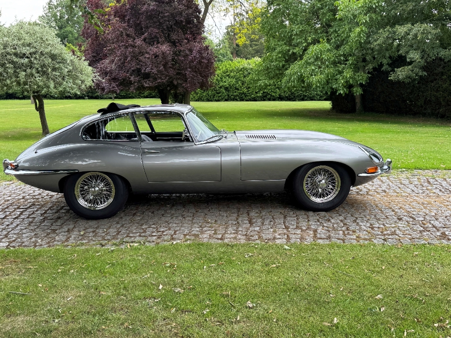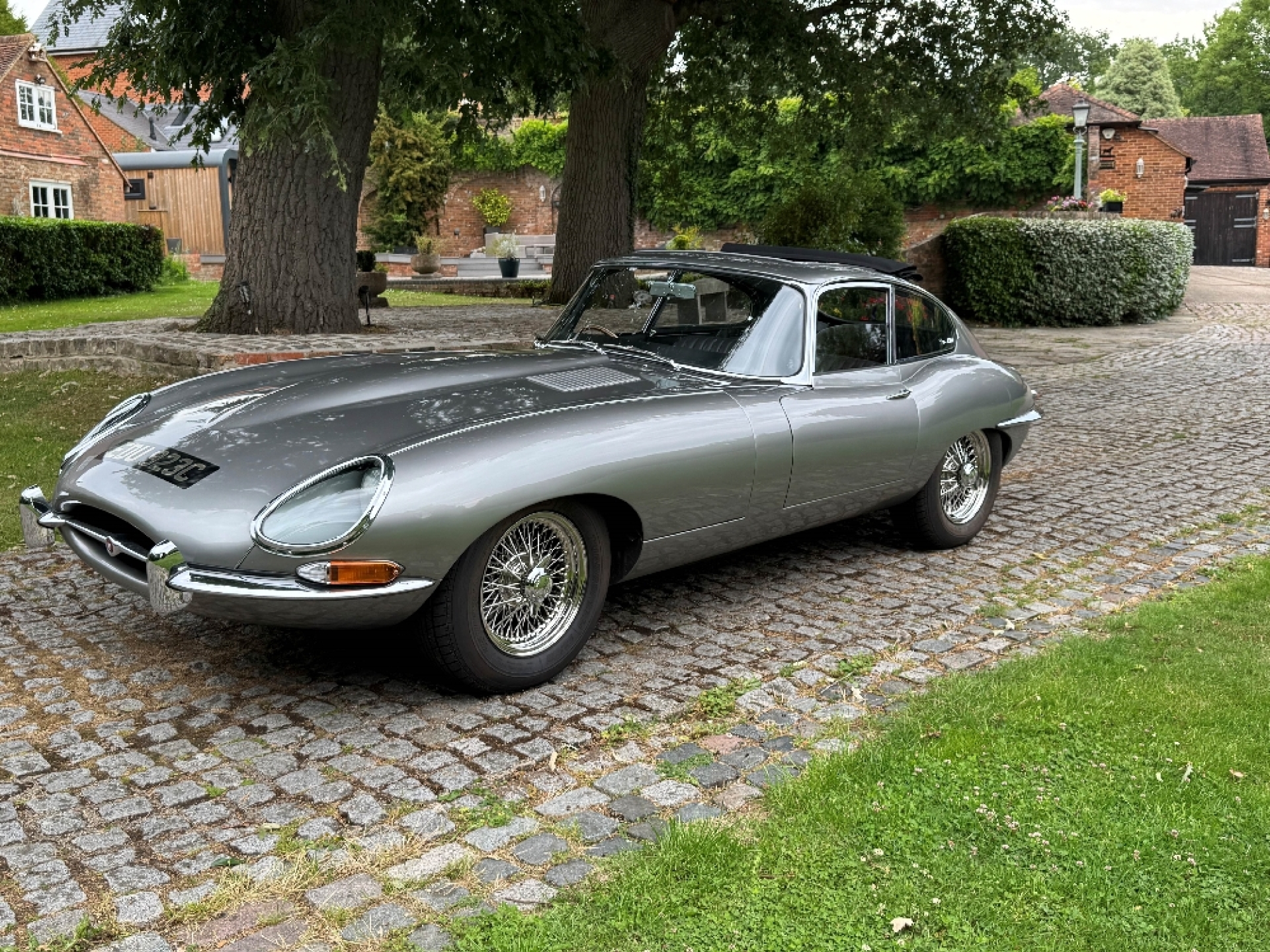 1965 Jaguar E type series 1 4.2 Fixed head coupe finished in Aston Martin in Sky Silver and tastefully trimmed with a perfect Black hide interior and the benefit of a full length Tudor Webasto Sunroof finished in black mohair. This is an original UK supplied example and the present owner commissioned the well-respected Jaguar restorers, Southern Classics to carry out a complete rebuild of this car back in 2011 to “Fast Road Specification”, mainly for the purpose of continental touring. This process included a full engine rebuild by Classic and Modern Engine services and enhancing the engine performance to include high compression pistons, a fully balanced crankshaft and con-rods and clutch assembly with further additional gas-flowing of the cylinder head, all of which has resulted in increased brake horse-power and low-down torque. The original 4 speed gearbox was also completely rebuilt which coupled with what we believe to be a high ratio rear axle has resulted a low engine revs when cruising at high speeds. The braking system was suitably improved with the use of Coopercraft brake calipers and an improved servo system. The original cast exhaust manifolds have been replaced with free flow stainless steel manifolds, coupled to a full stainless steel exhaust system . At the same time, the car was the subject of a bare metal repaint and a tasteful retrim in black leather. The car sits on slightly wider than standard stainless steel chrome wire wheels, shod with Avon Turbospeed radial tyres for improved road holding. With this beautiful and practical classic E type is a detailed history which records most of the vast expenditure over several years. Please call for a more detailed specification. One of the very best available at £120,000